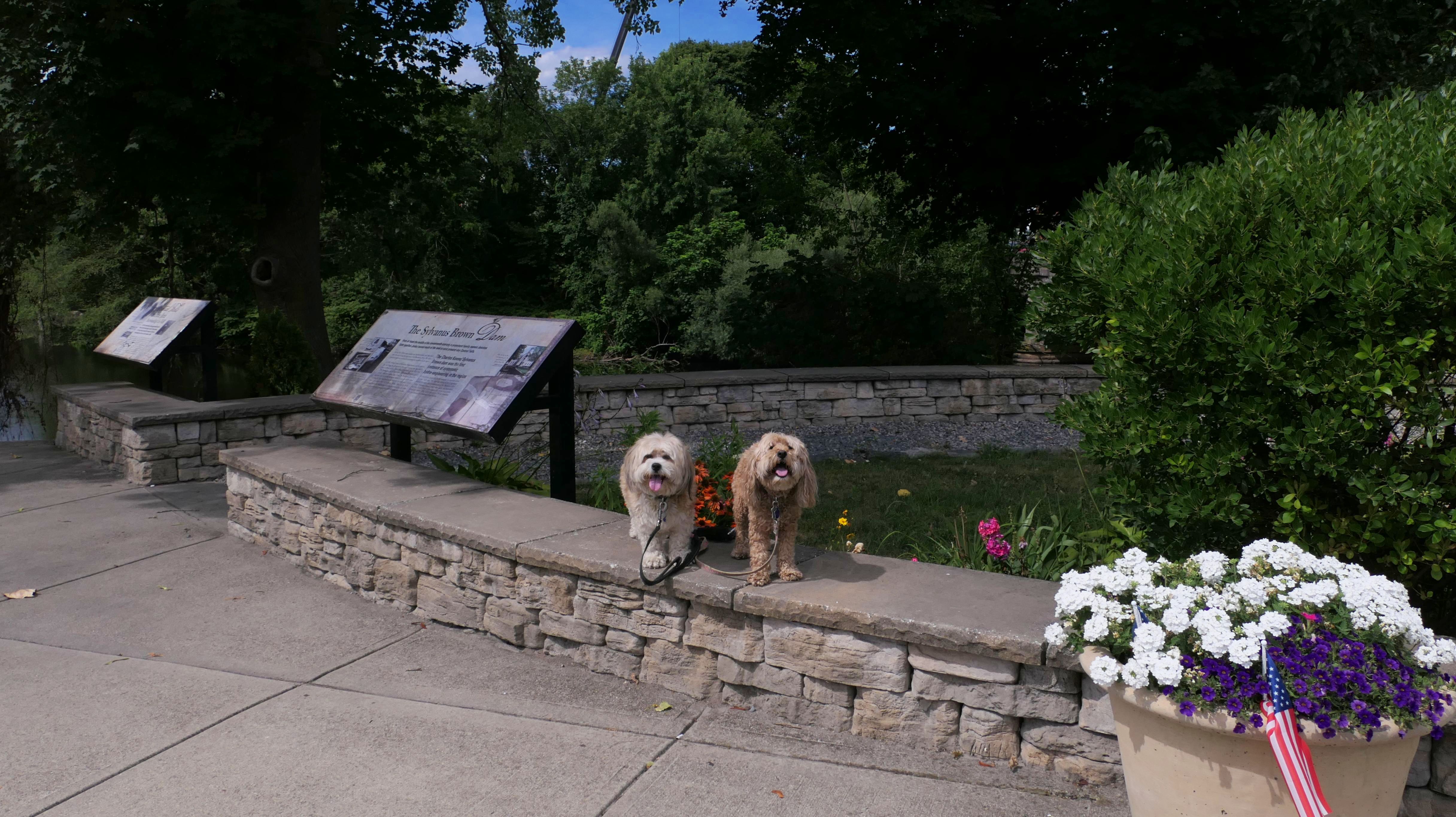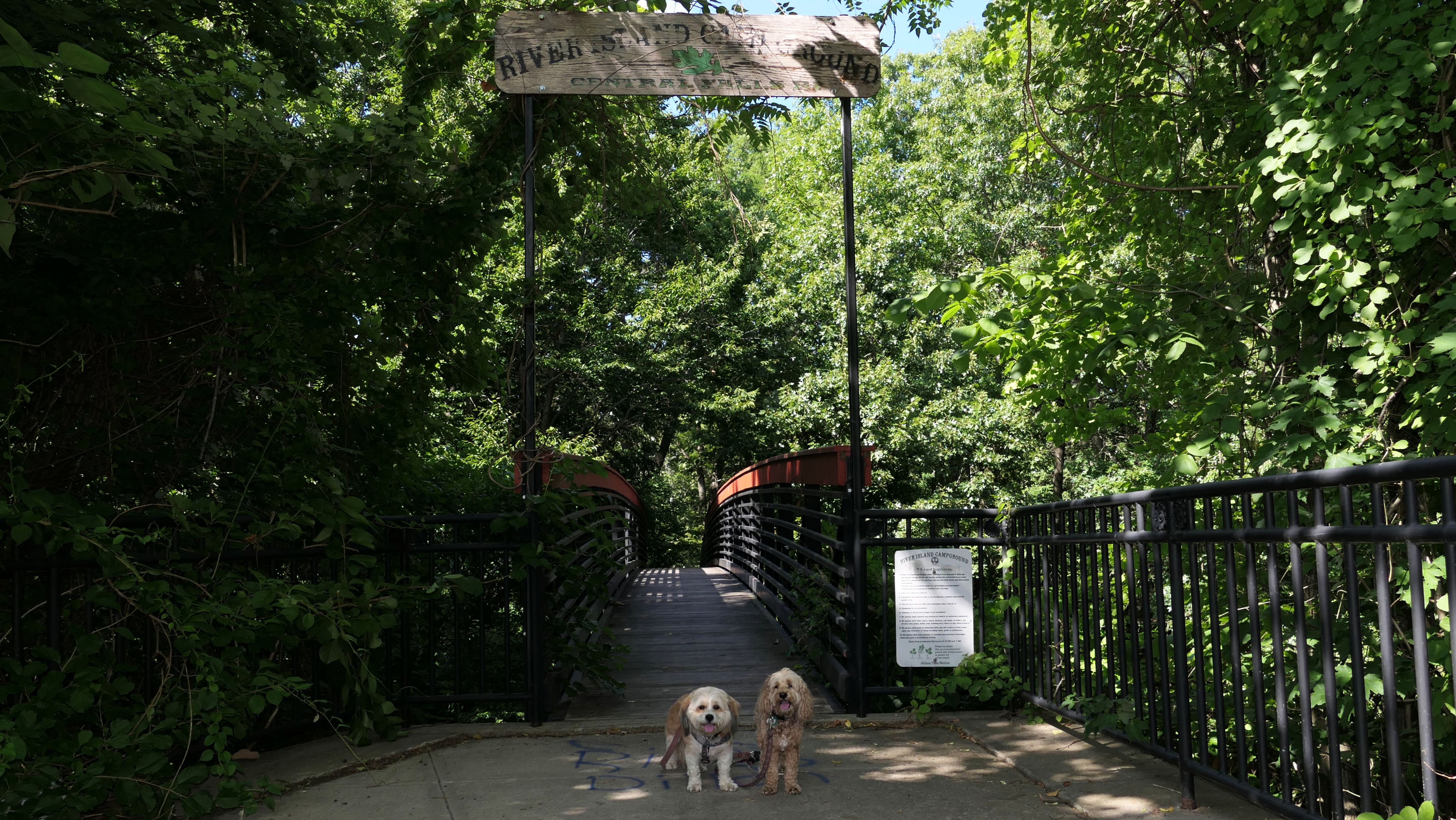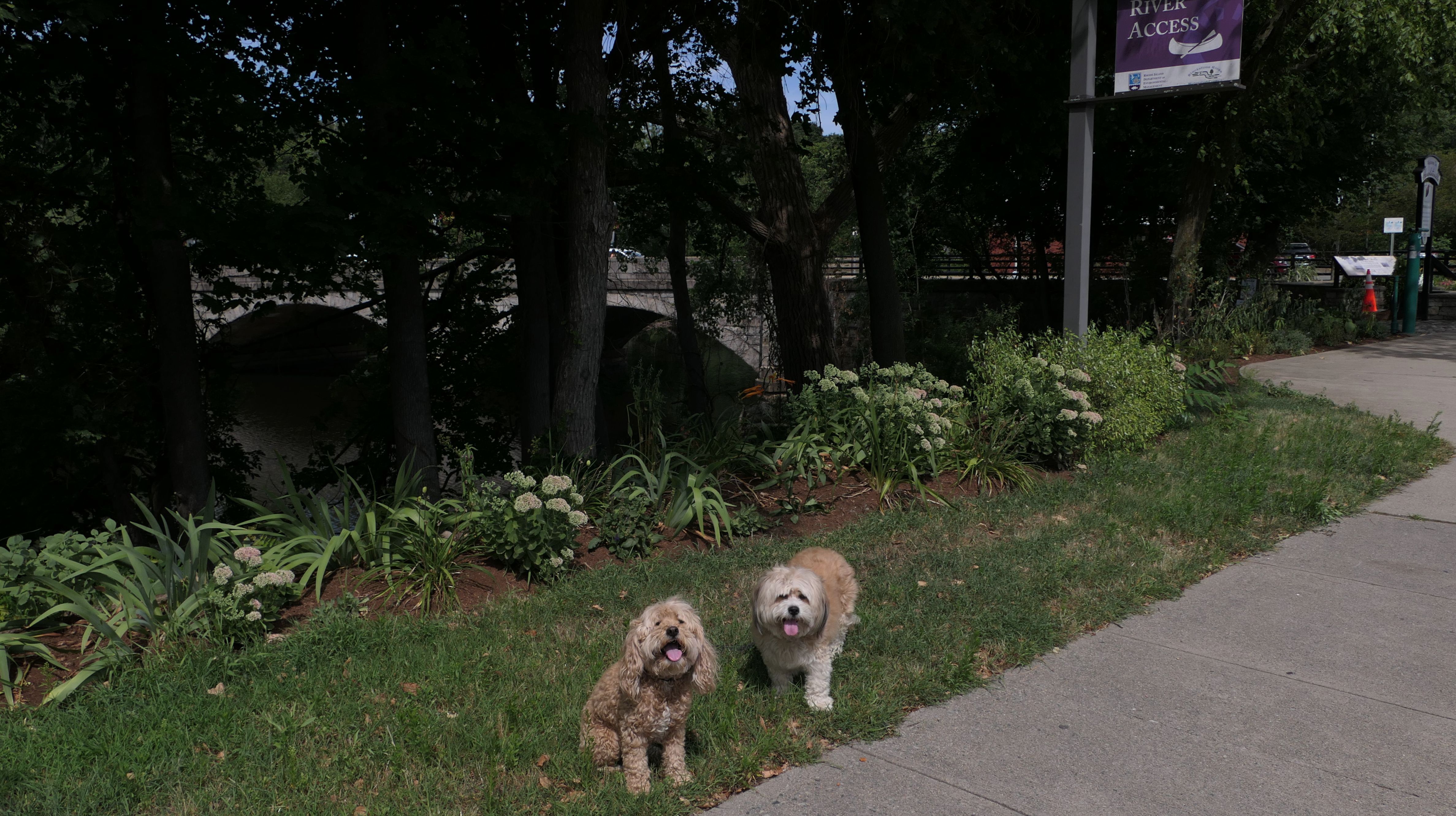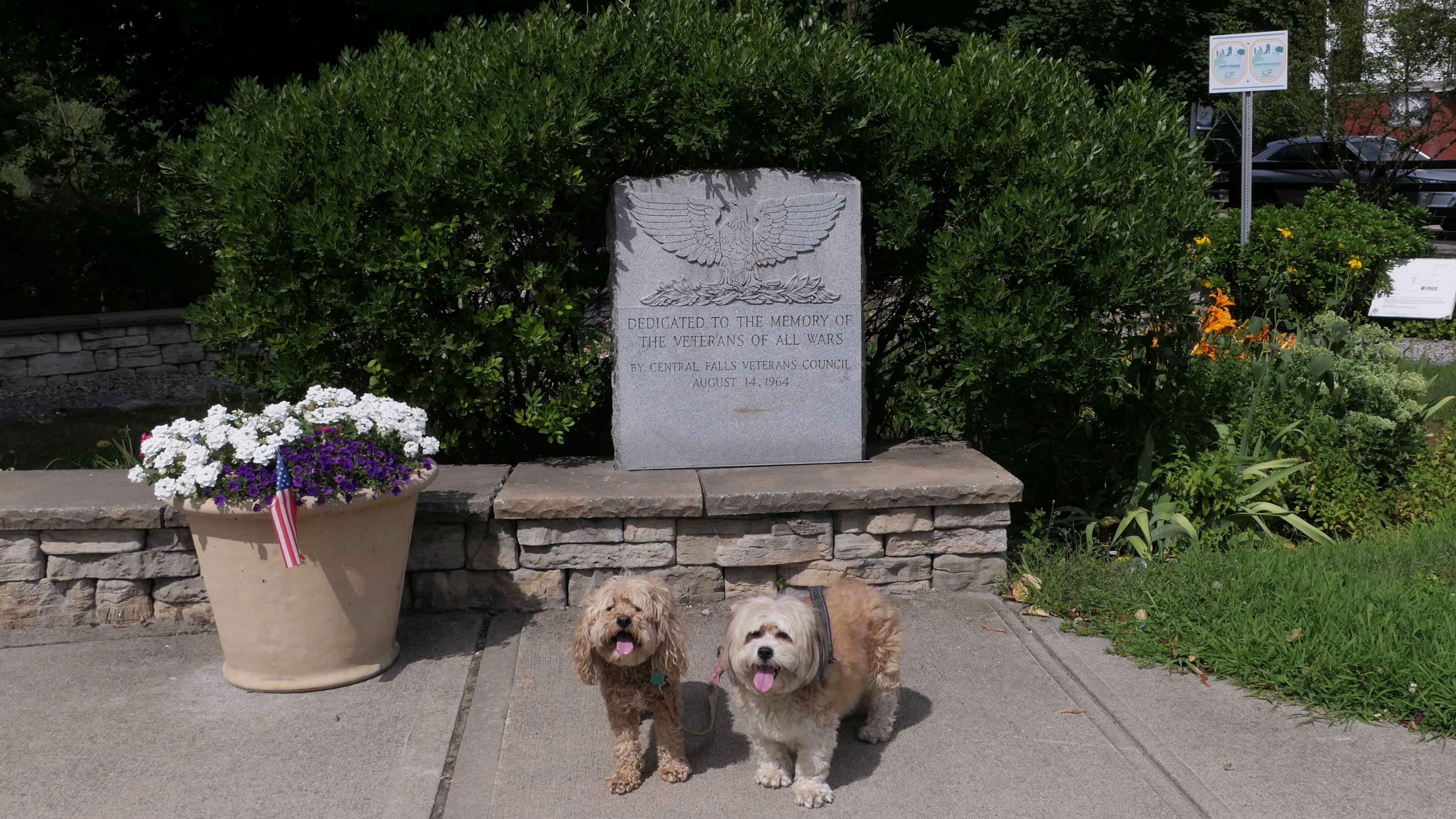 This is a small park on the site of one of the earliest water-powered chocolate mills in North America. Evidently, Central Falls used to be known as "Chocolateville". There are signs with historical information about the mills, and access to the Blackstone River for fishing, or launching small boats. There was also a fair amount of trash around, and the river looked too mucky to let Mandy and Lexi cool of in it. We also took the short walk, about a block west on Charles Street, to Sacred Heart Park.