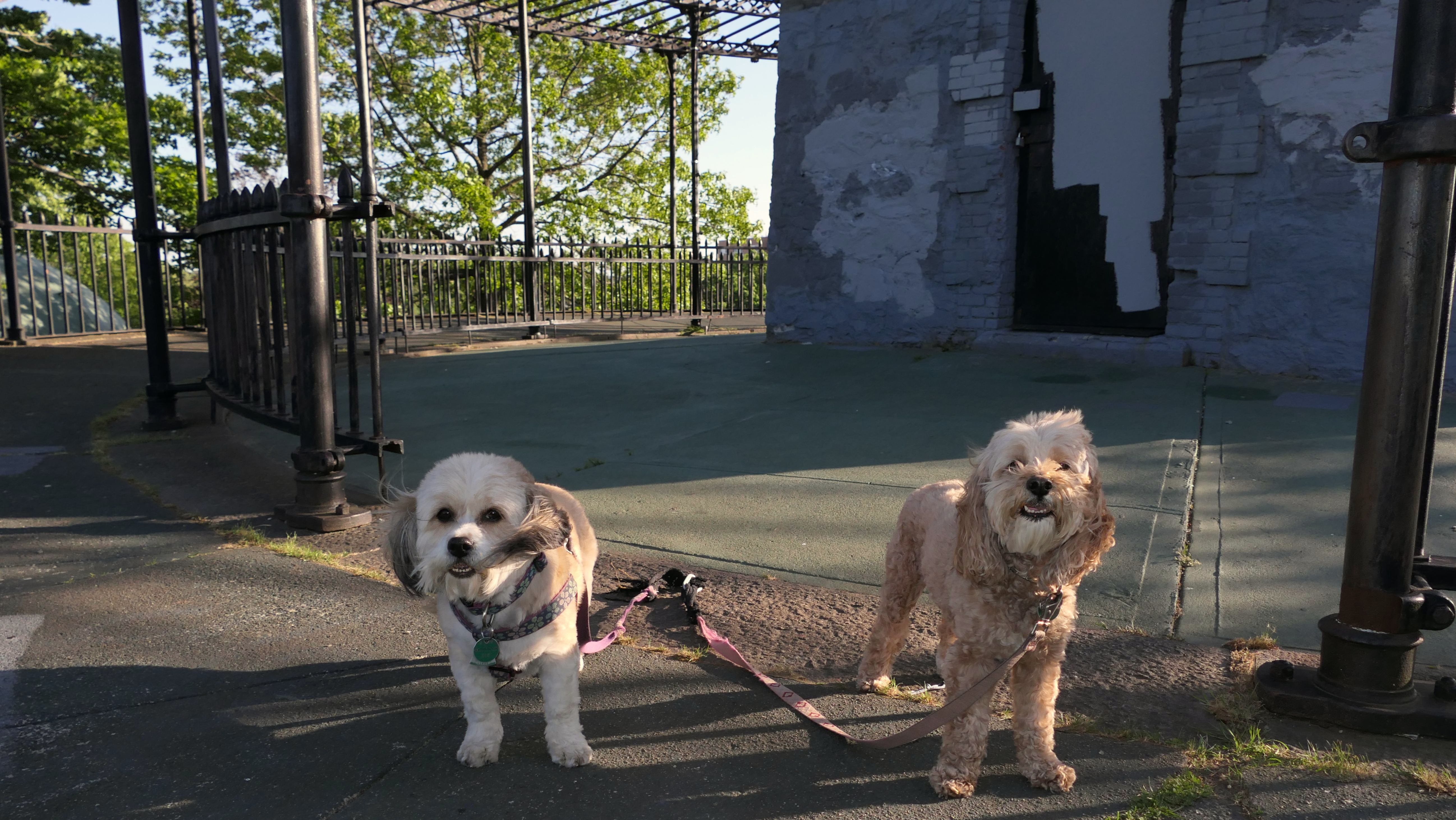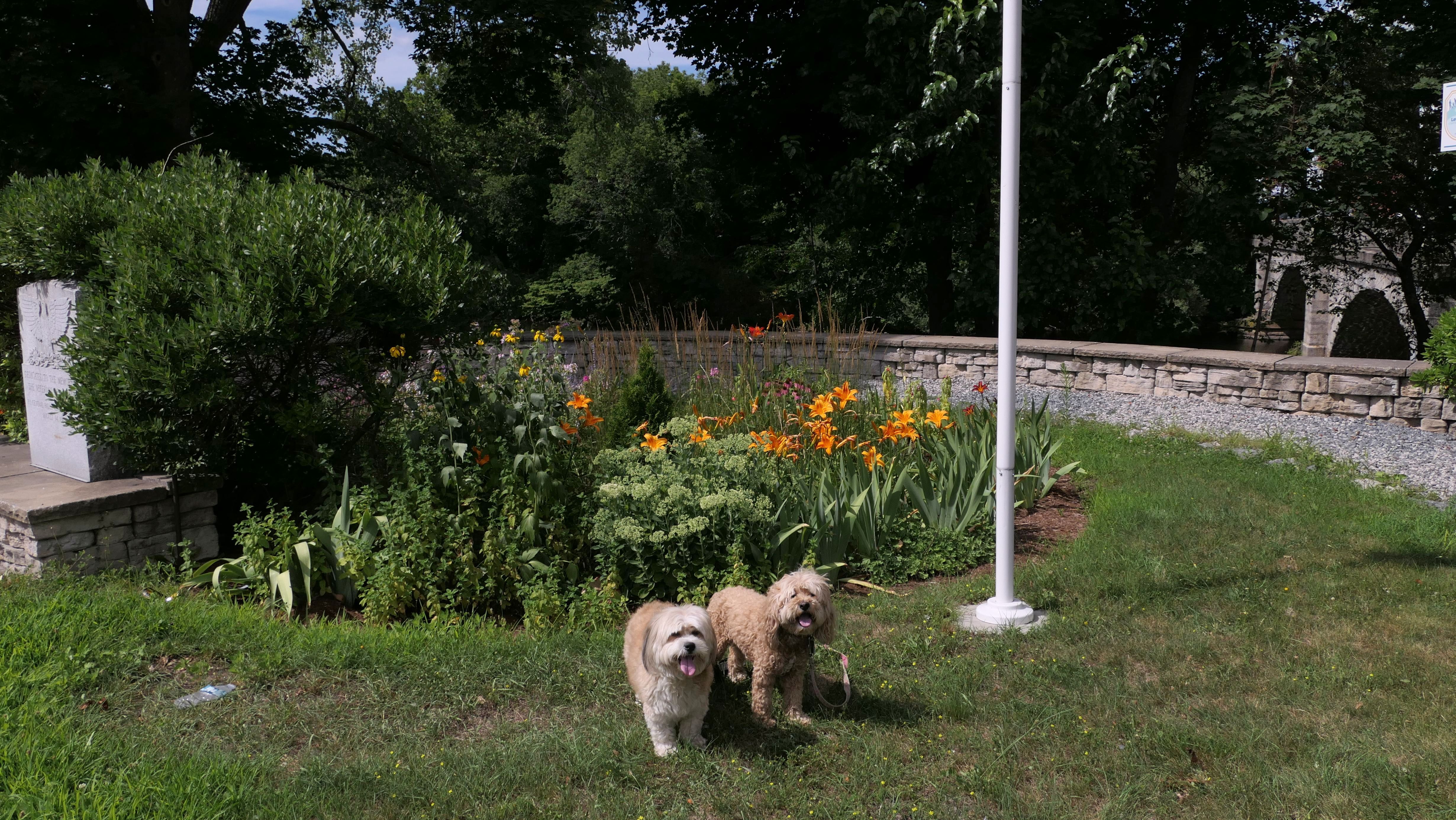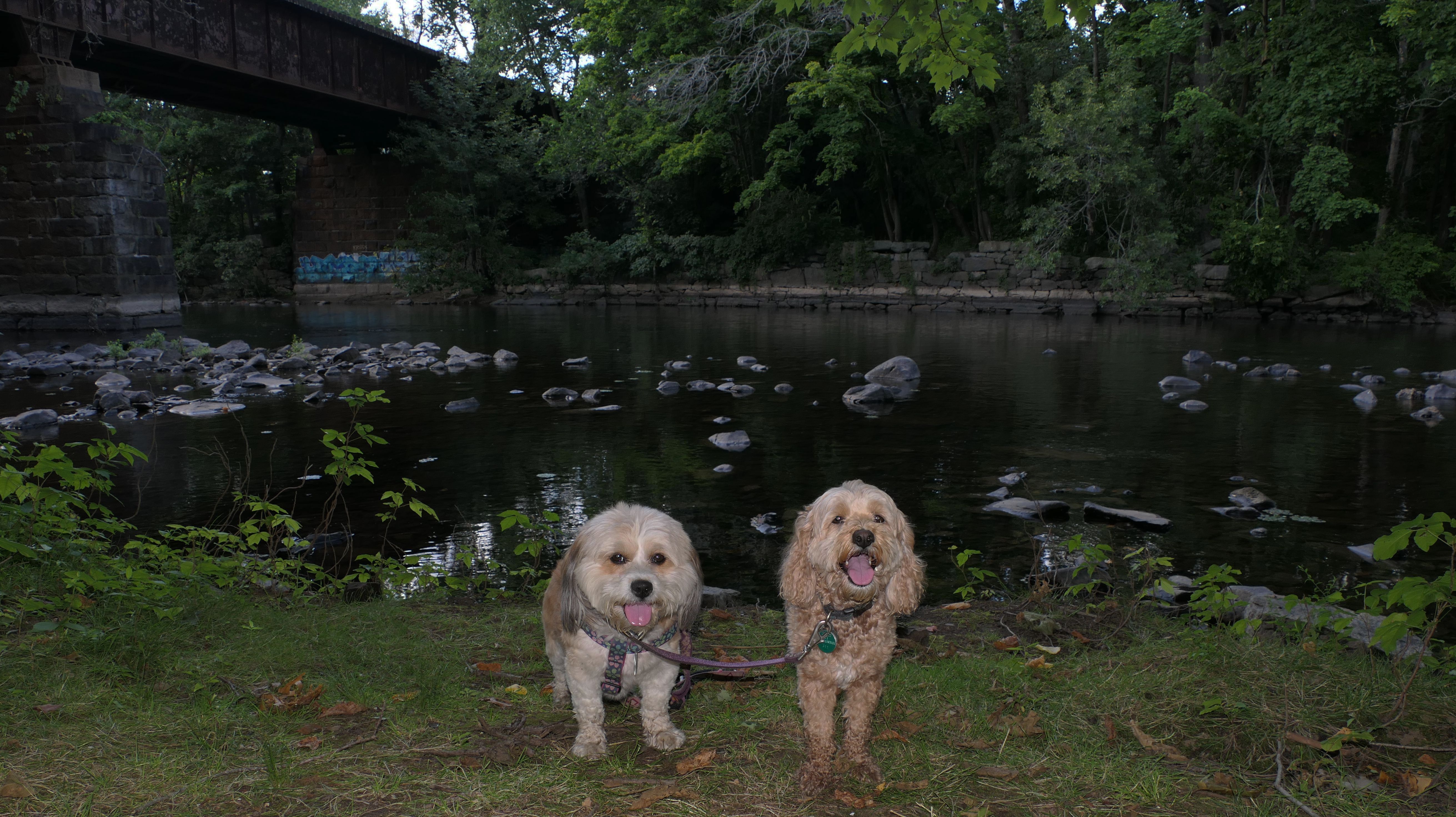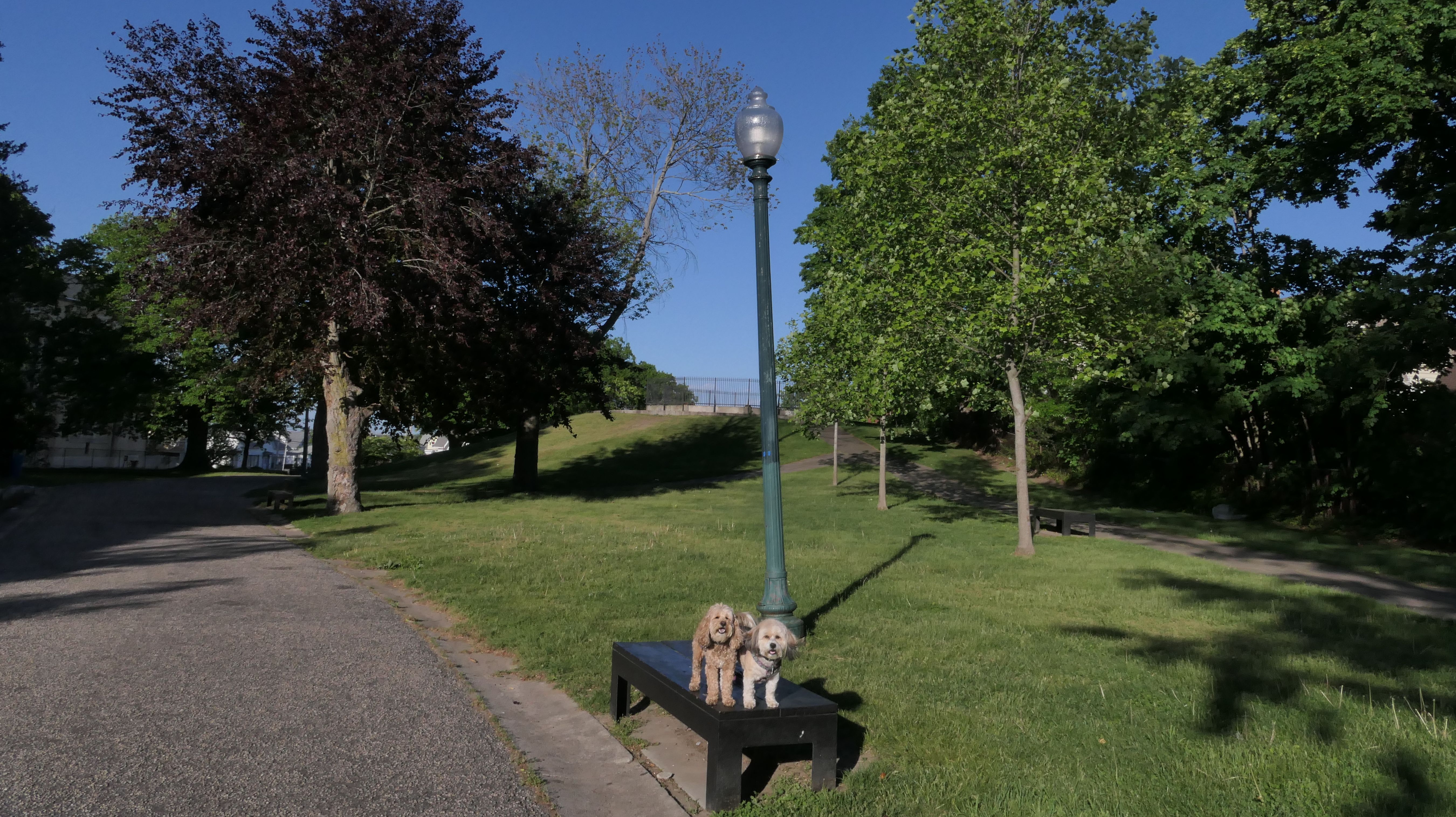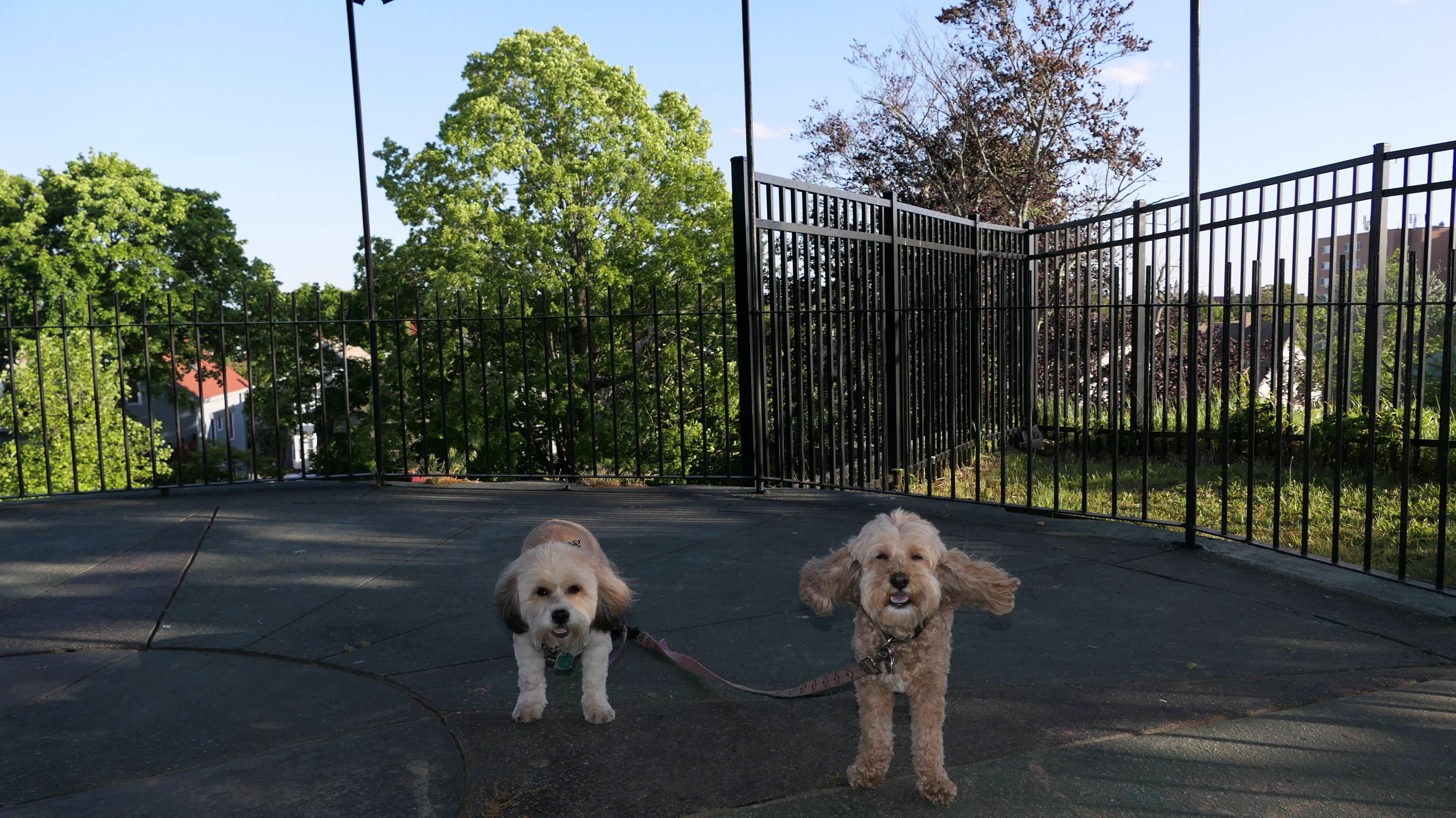 This is a small park on the site of one of the earliest water-powered chocolate mills in North America. Evidently, Central Falls used to be known as "Chocolateville". There are signs with historical information about the mills, and access to the Blackstone River for fishing, or launching small boats. There was also a fair amount of trash around, and the river looked too mucky to let Mandy and Lexi cool of in it. We also took the short walk, about a block west on Charles Street, to Sacred Heart Park.