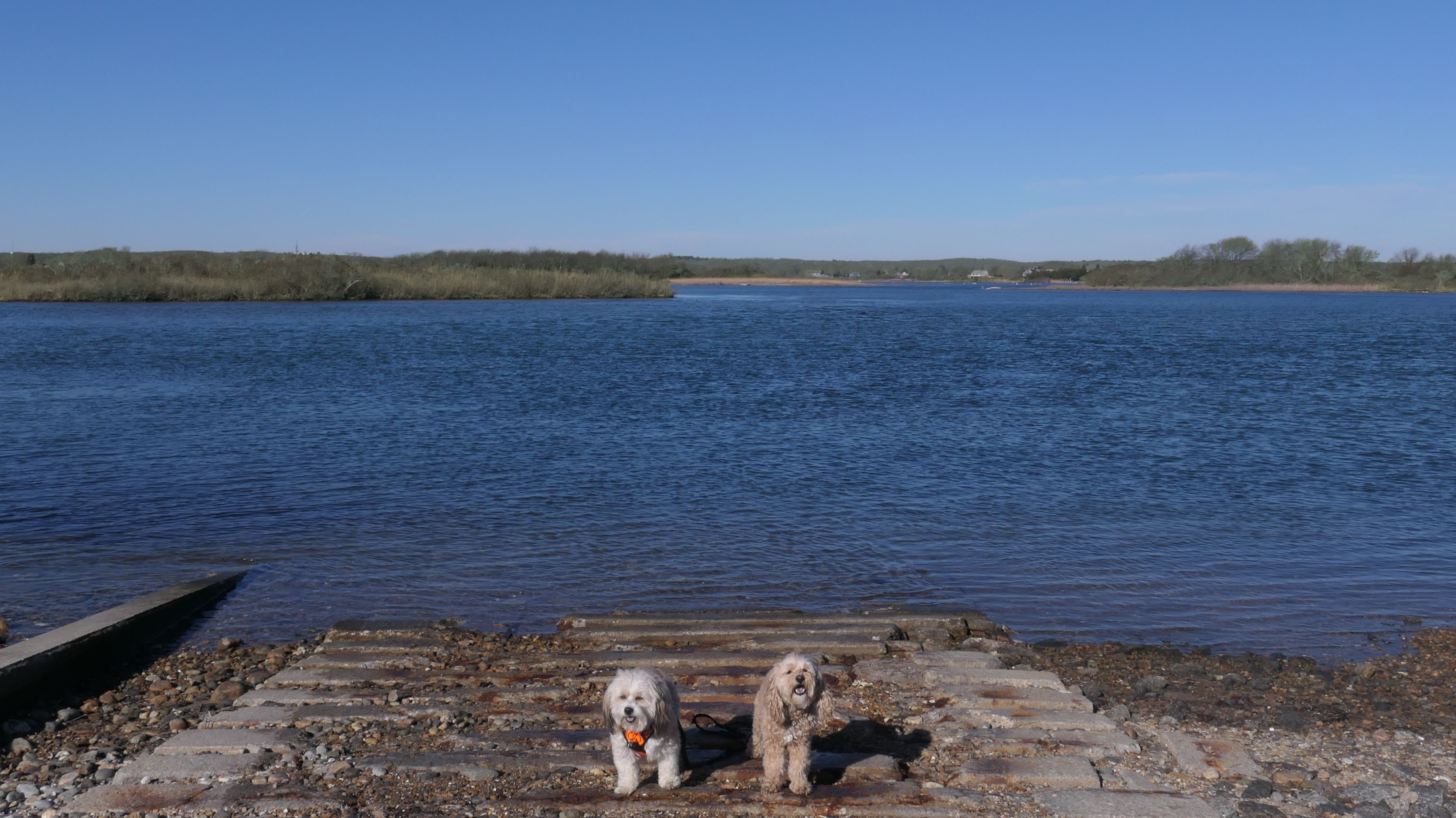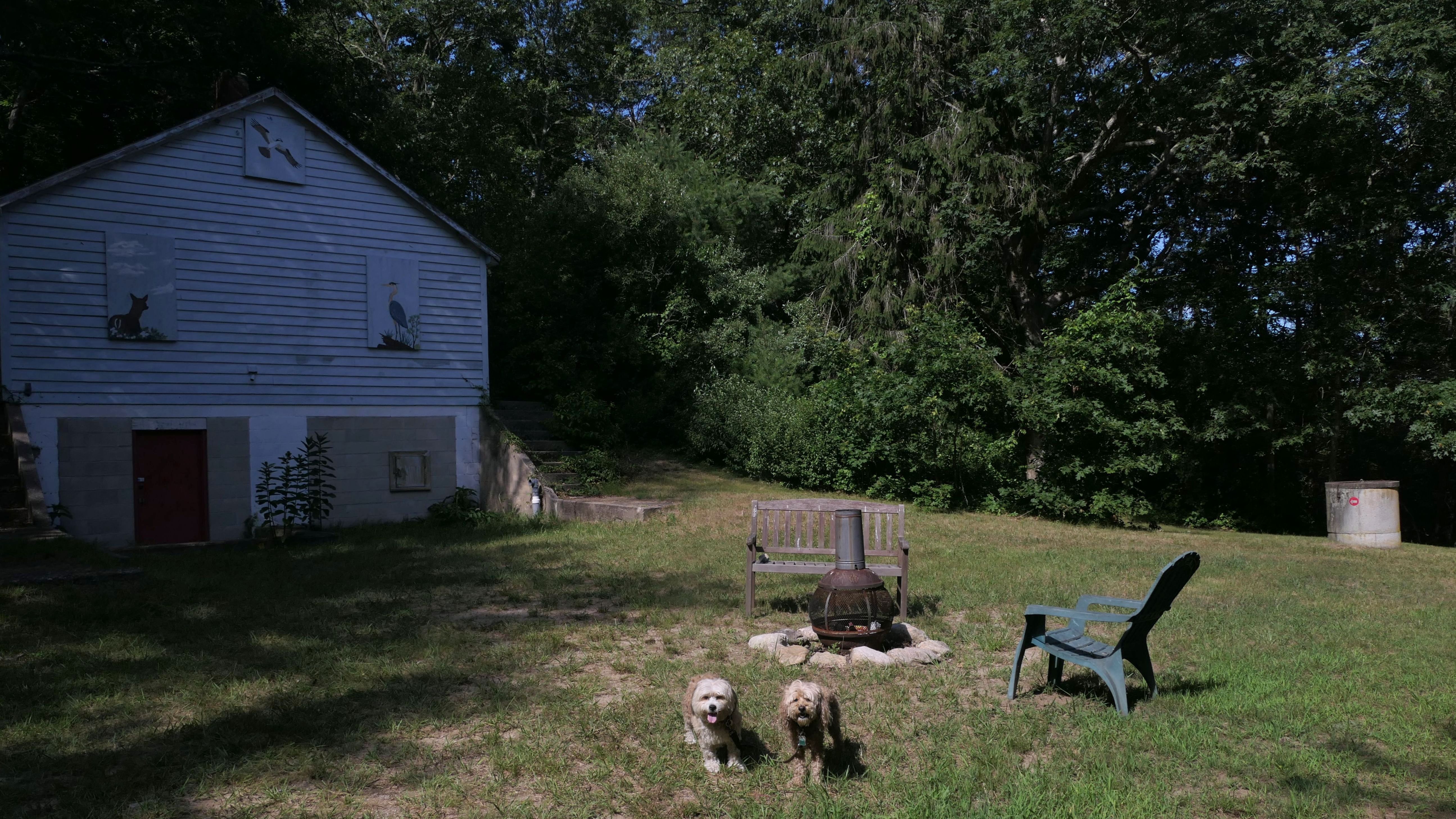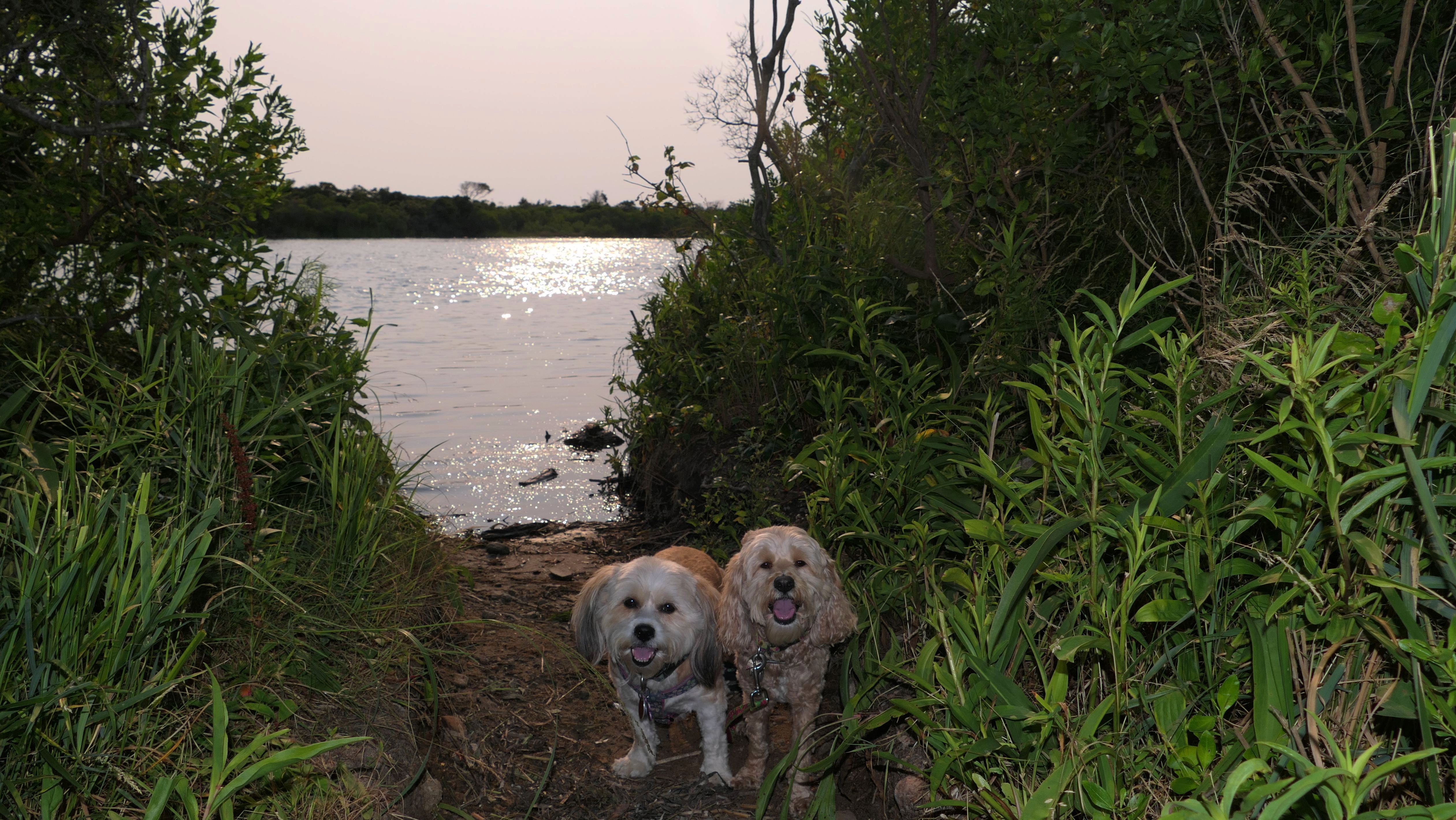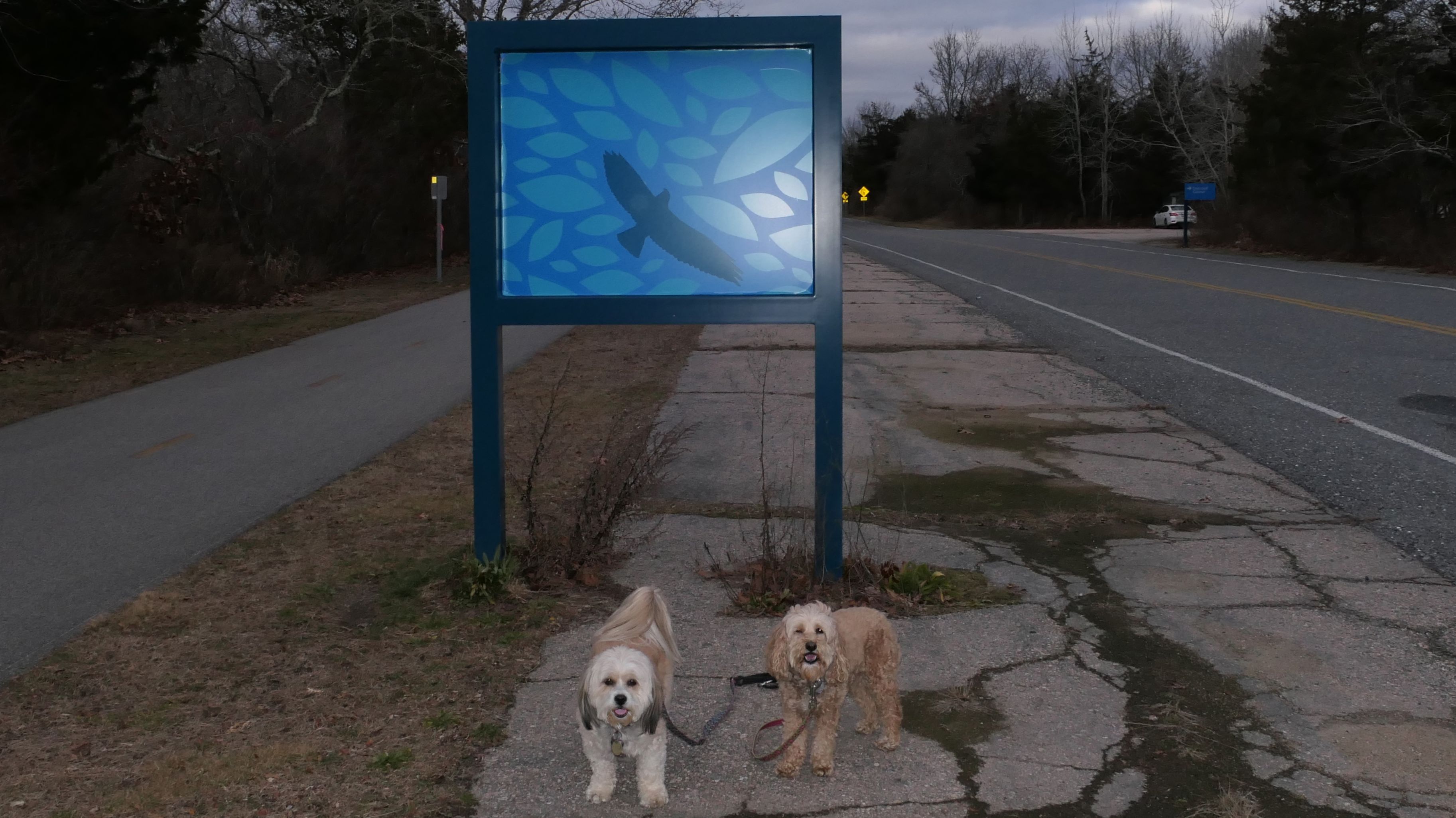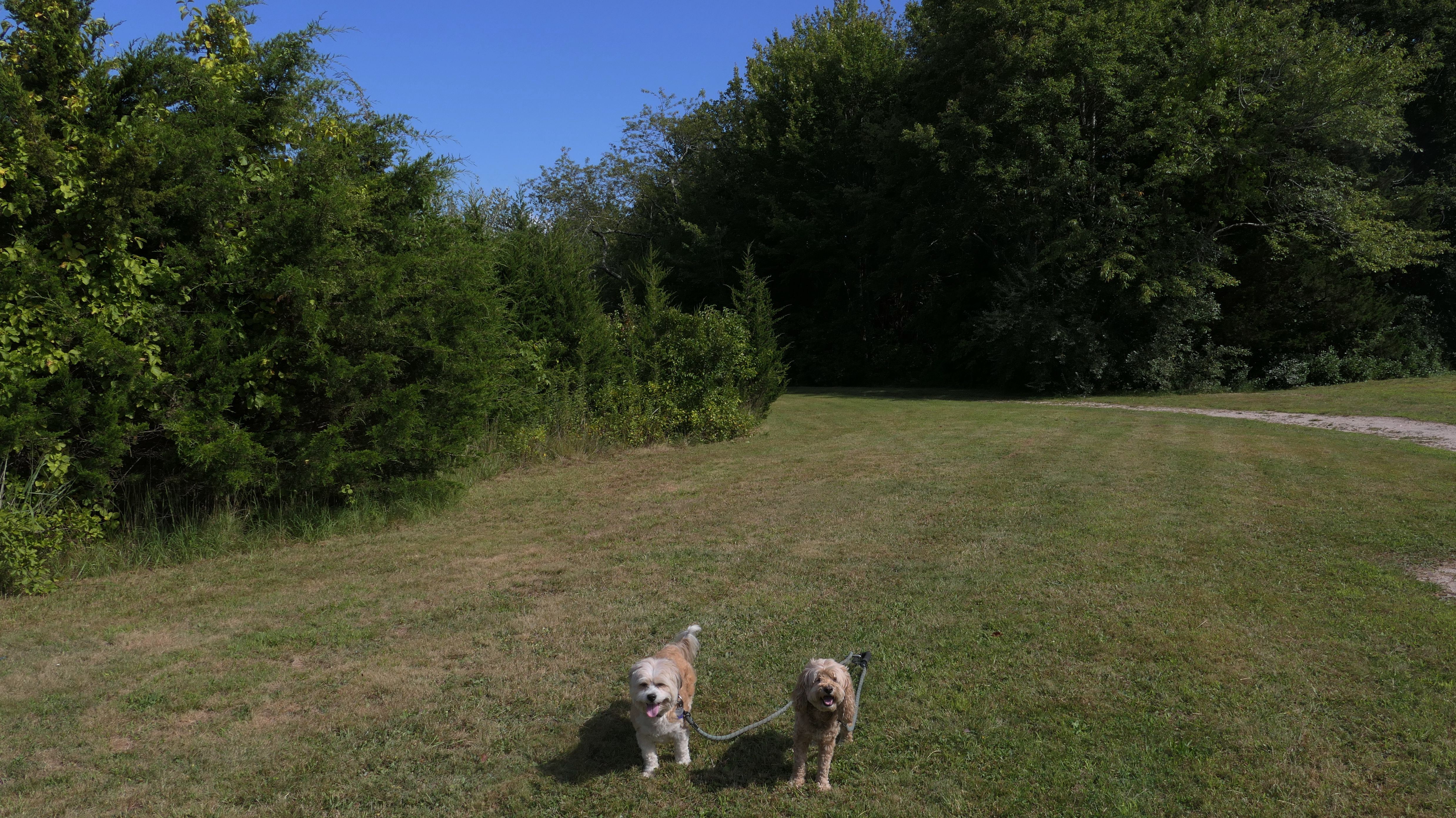 This is a fishing area and boat launch at Quonochontaug Breachway and Pond. Google Maps shows a hiking area here, but I don't think it's there anymore. There is a section near the pond that is closed for salt marsh restoration, and I think a trail used to be there. Even though there wasn't a cloud in the sky, it was super hazy from Canadian wildfire smoke. That and the lack of any real trail made this a disappointing trip. There were a few spots where the dogs could get in the water, so they enjoyed it regardless. The parking area is about a third of a mile down a dirt road from West Beach Road. We wound up walking about a mile down the dirt road and onto West Beach Road, before turning around and heading back. I was hoping that maybe West Beach would be accesible, but no luck there either. It seems to be completely private. I shouldn't complain, the awesome Blue Shutters Beach is right around the corner, and dogs are allowed in the summer after five there. It's not like there's no ocean access at all! At any rate, the dogs seemed to enjoy the trip, so I guess that is what counts!