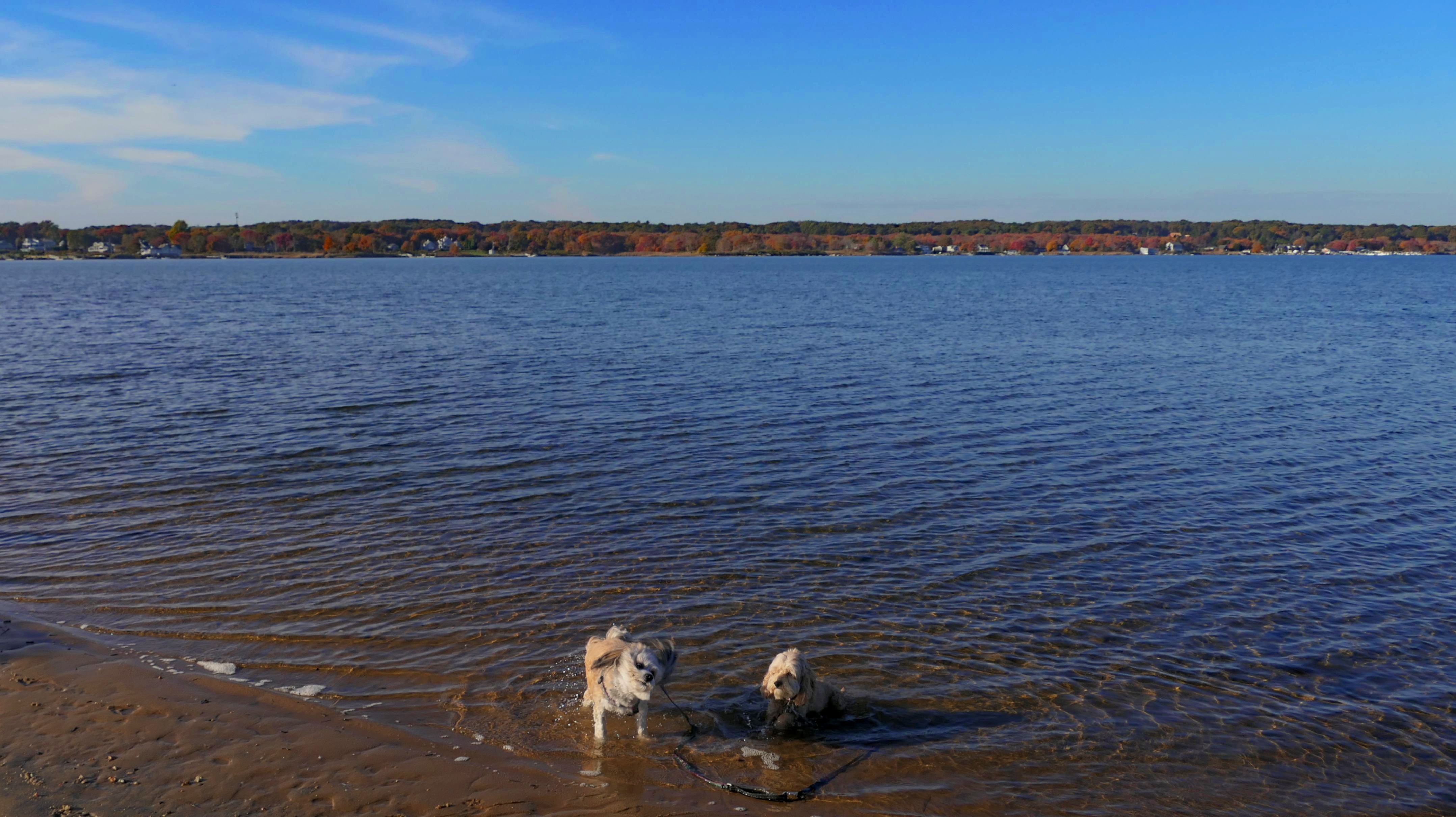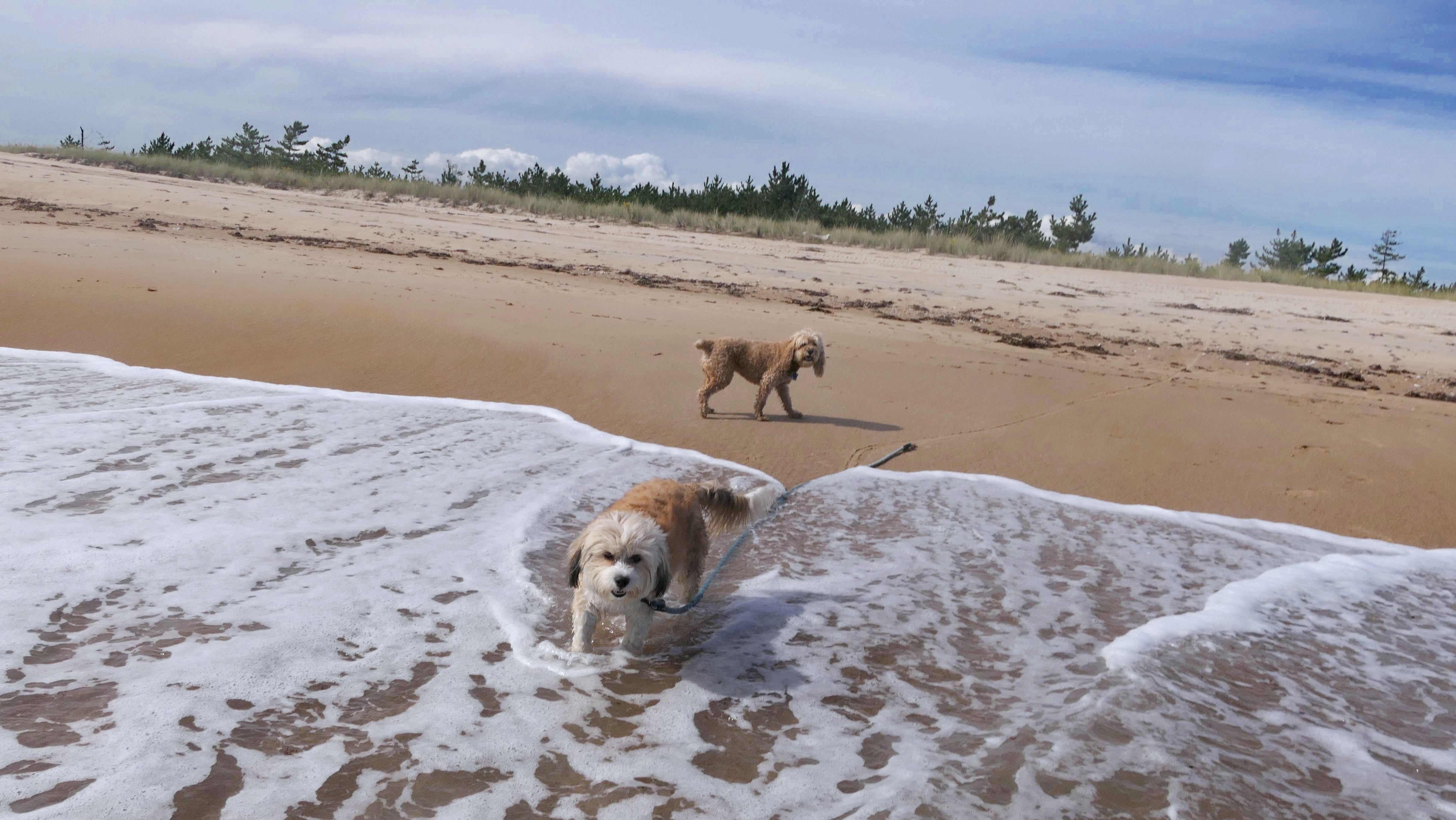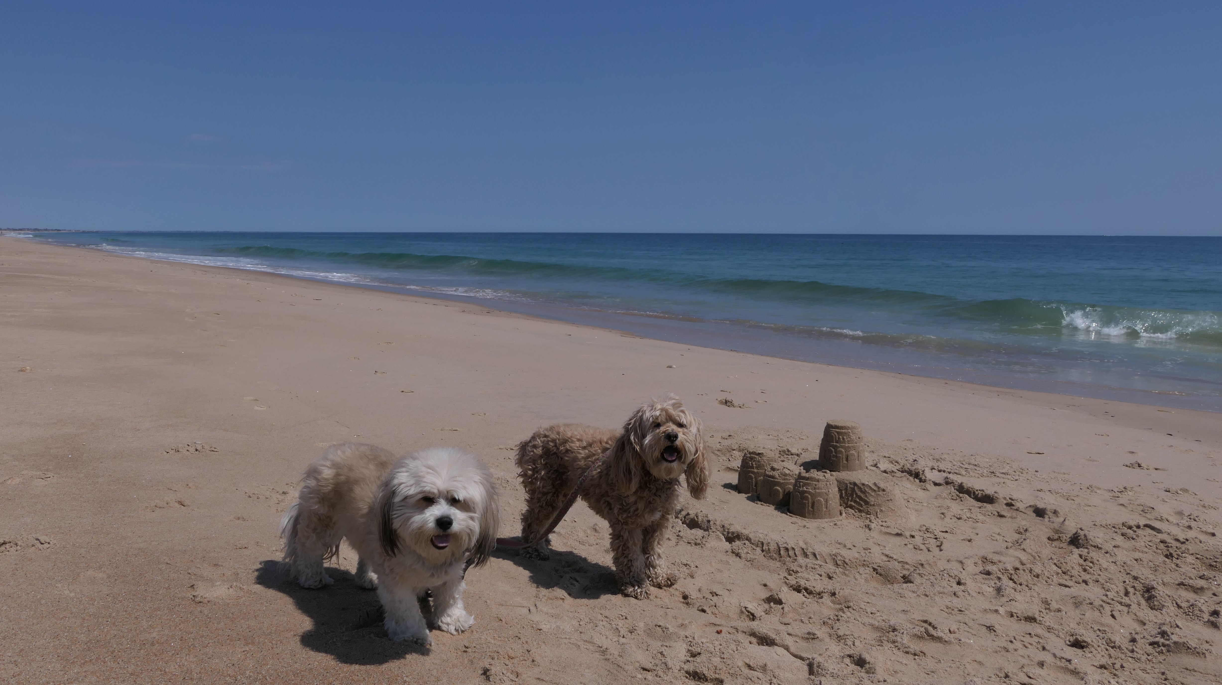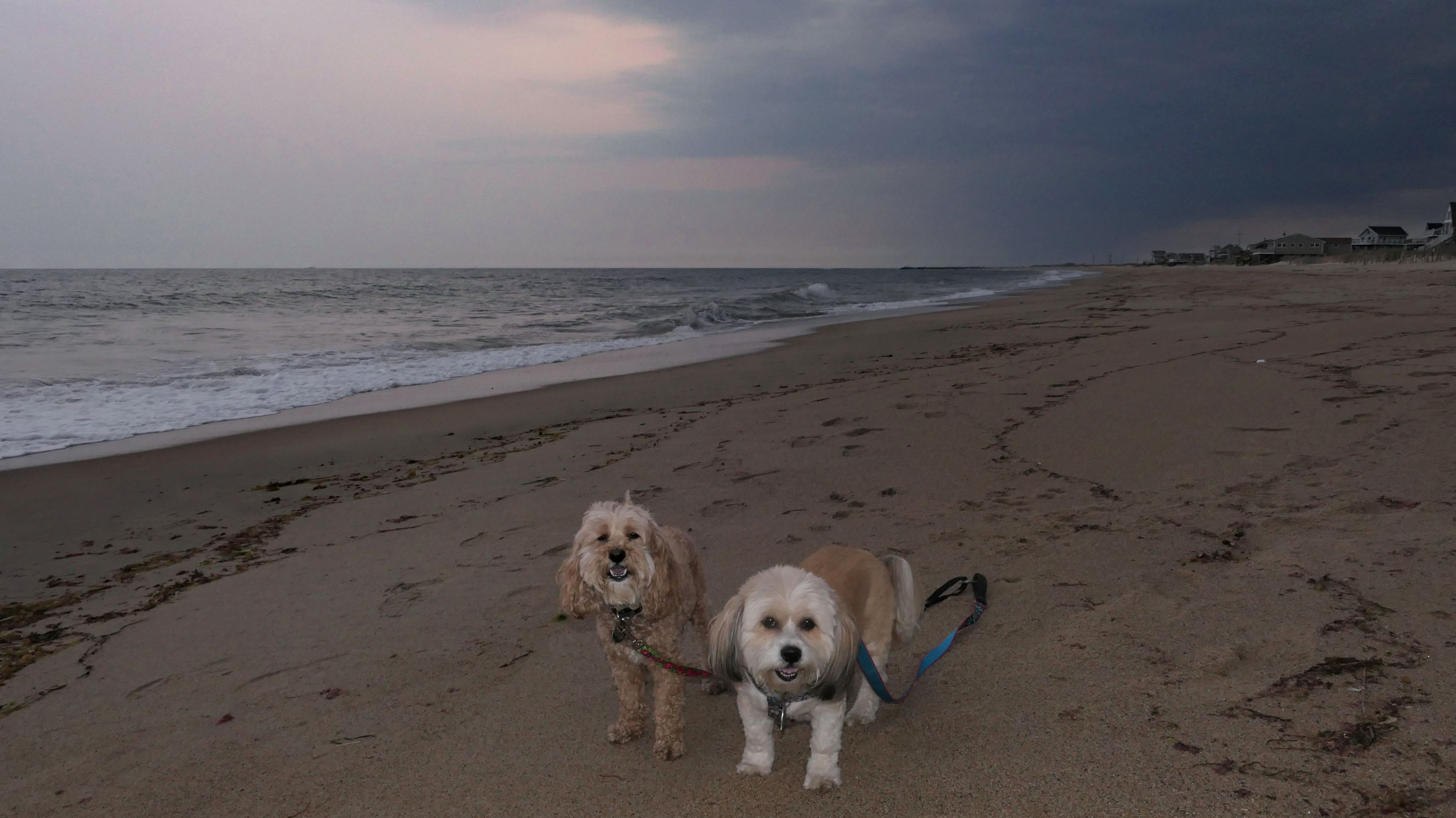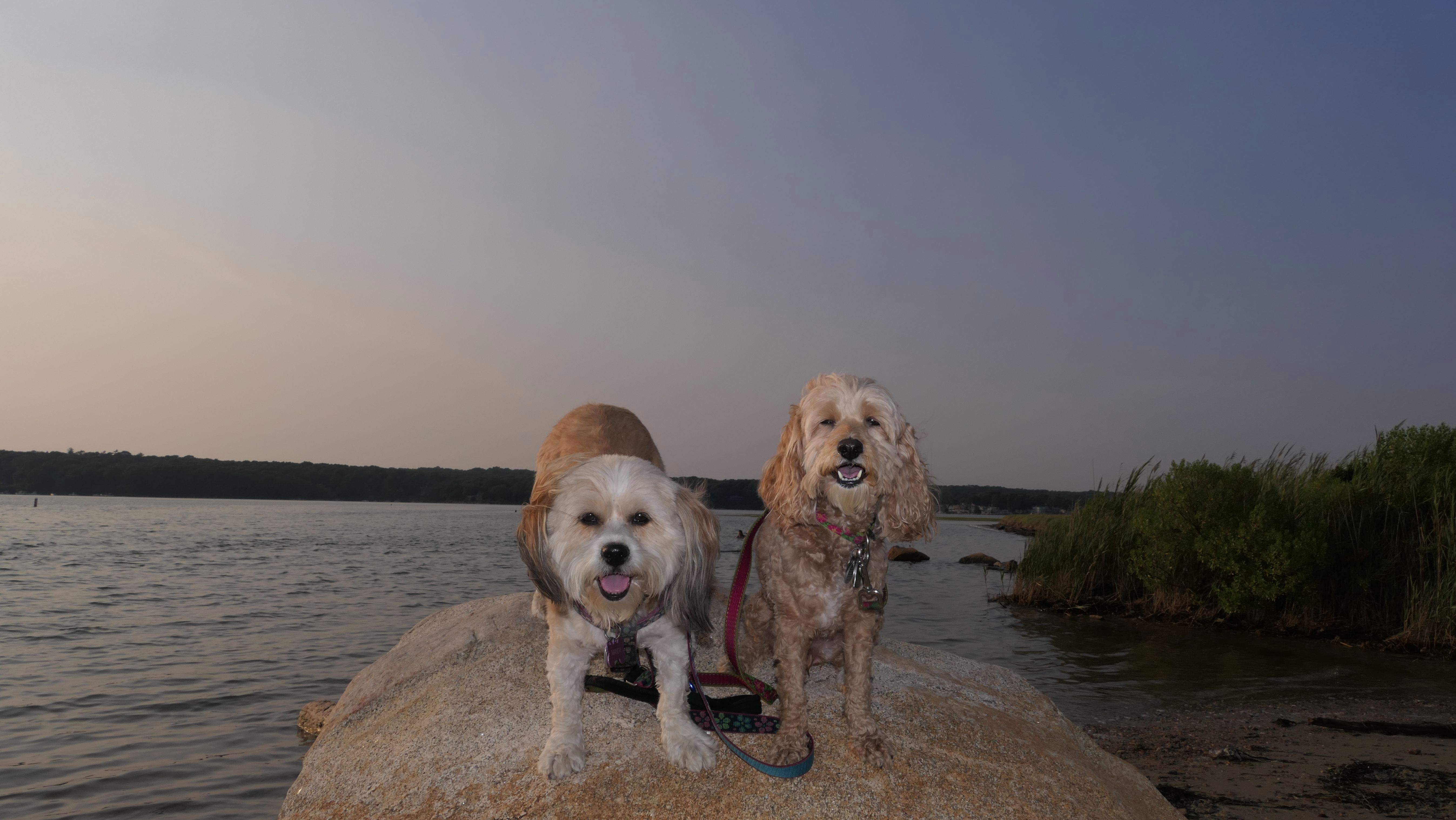 This is Day 2 of our late June heat wave. I mentioned on the write-up for our previous trip that if we go on adventures during this hot spell, it would probably be dog-friendly beaches in Rhode Island, where it's a little bit cooler. Dogs are allowed here after 5PM, and we arrived around 5:30. We went for a short walk, wading through the edge of the waves on a hazy and hot day.