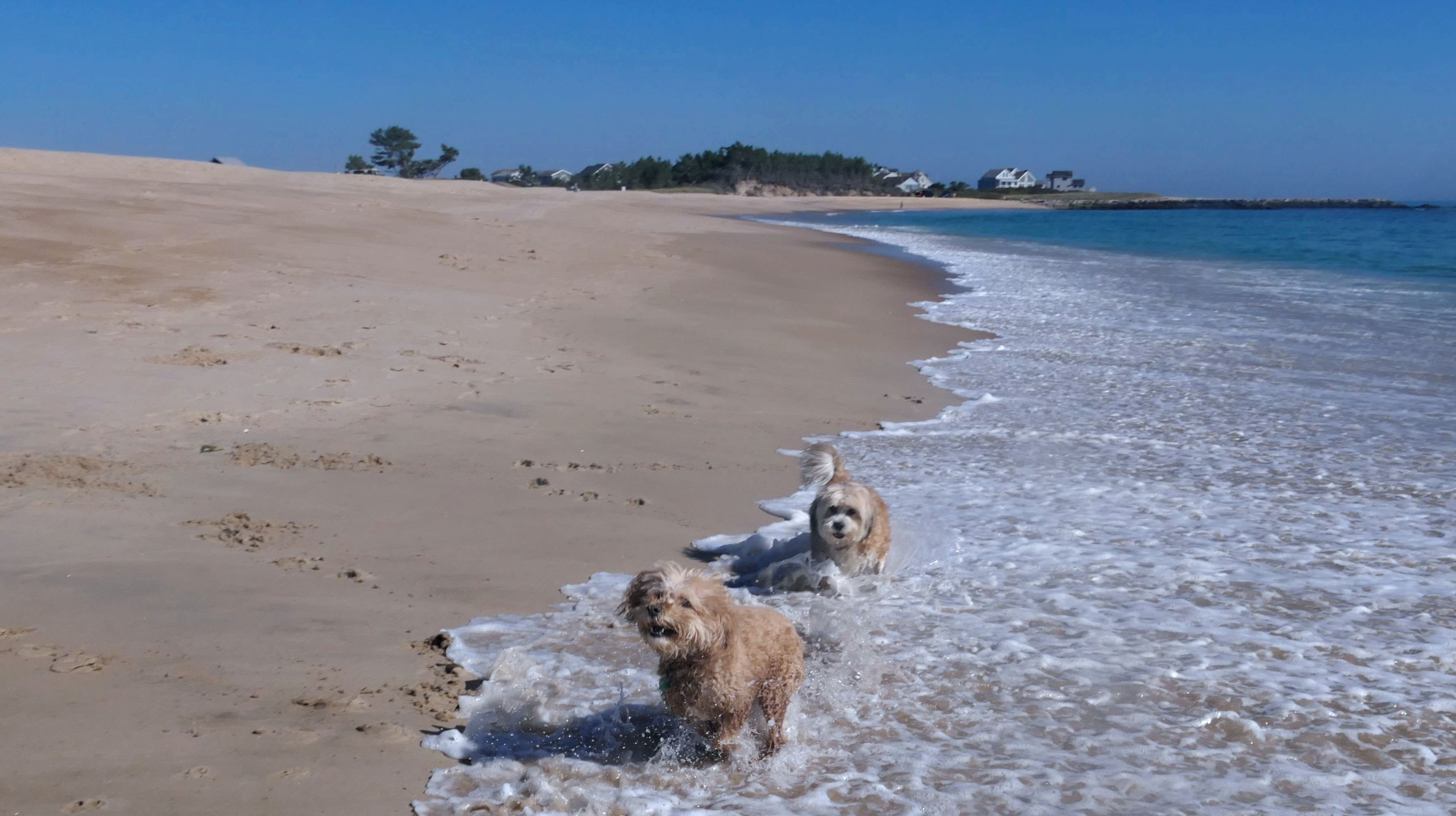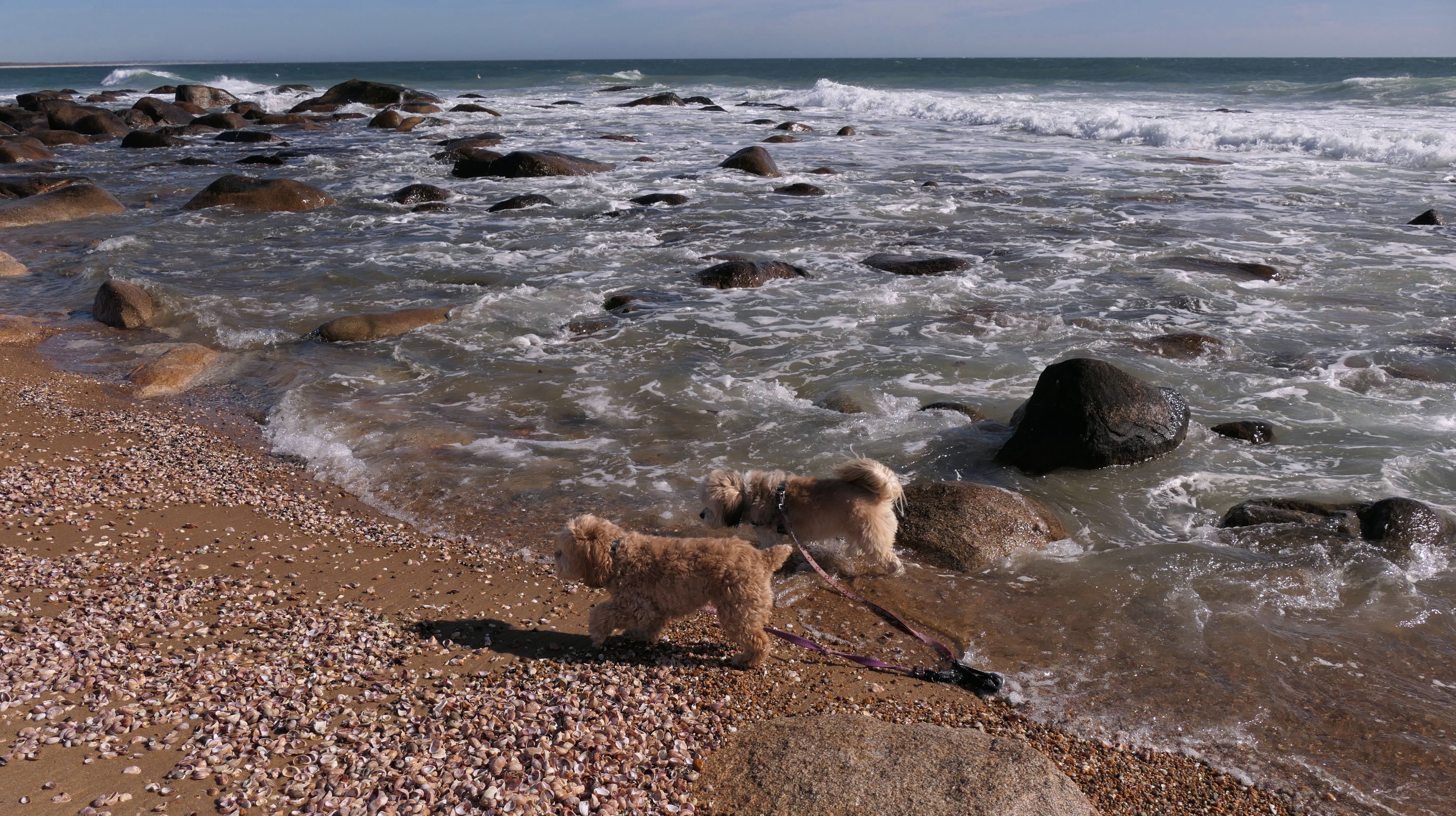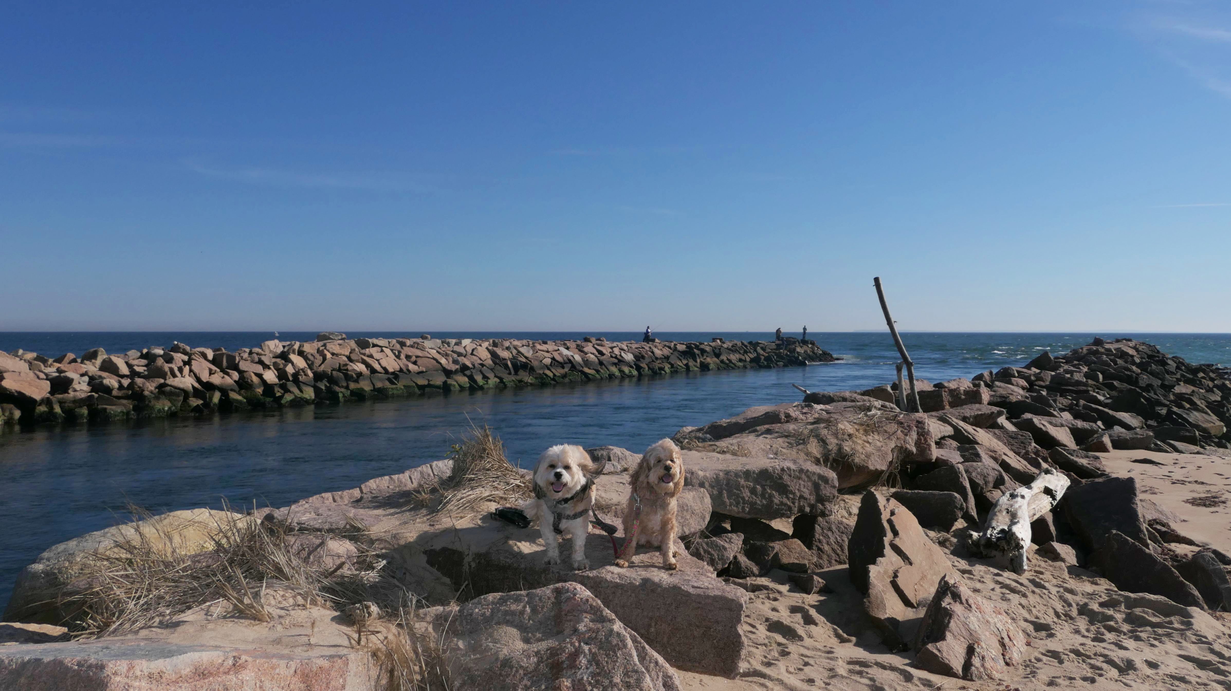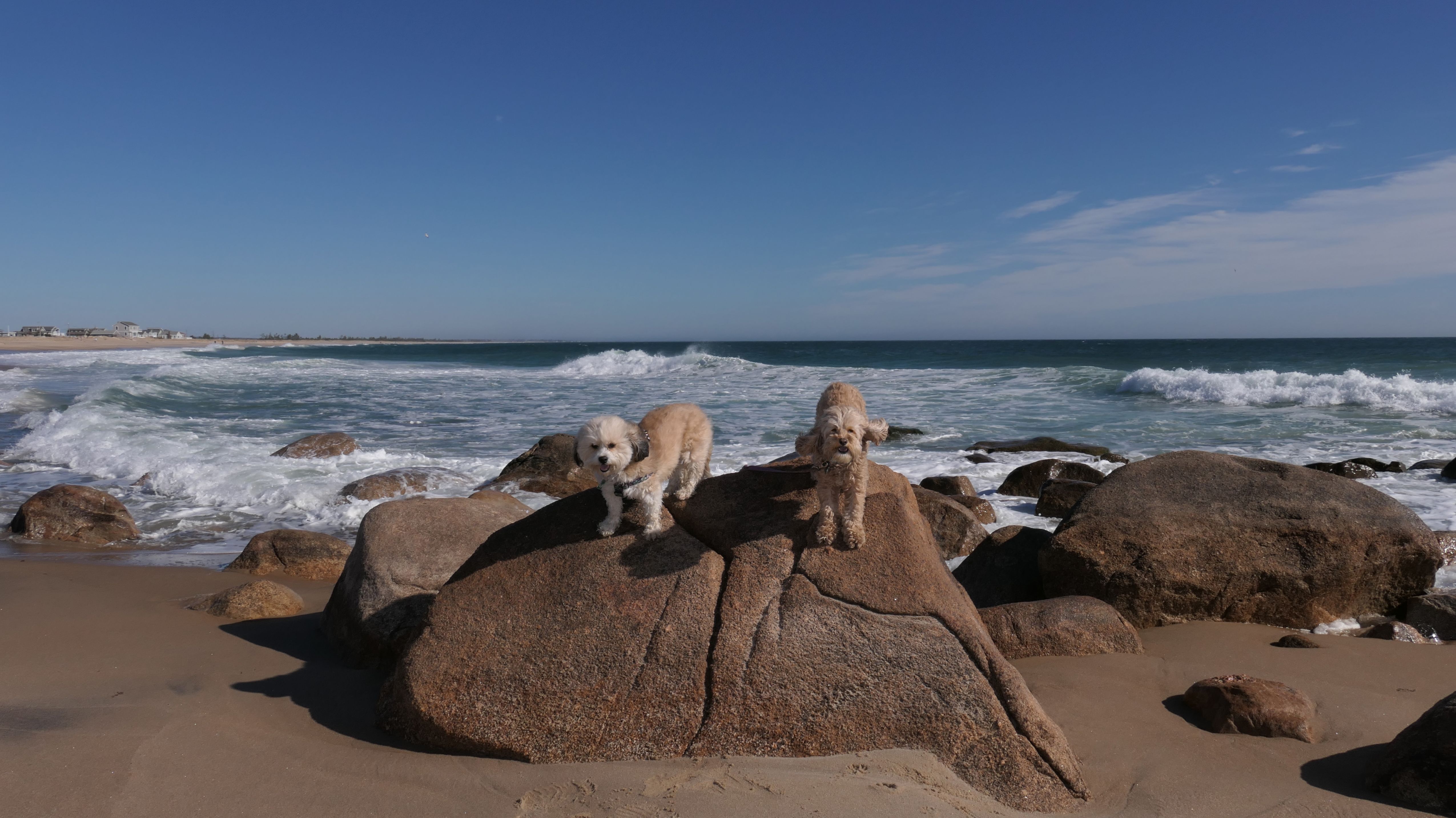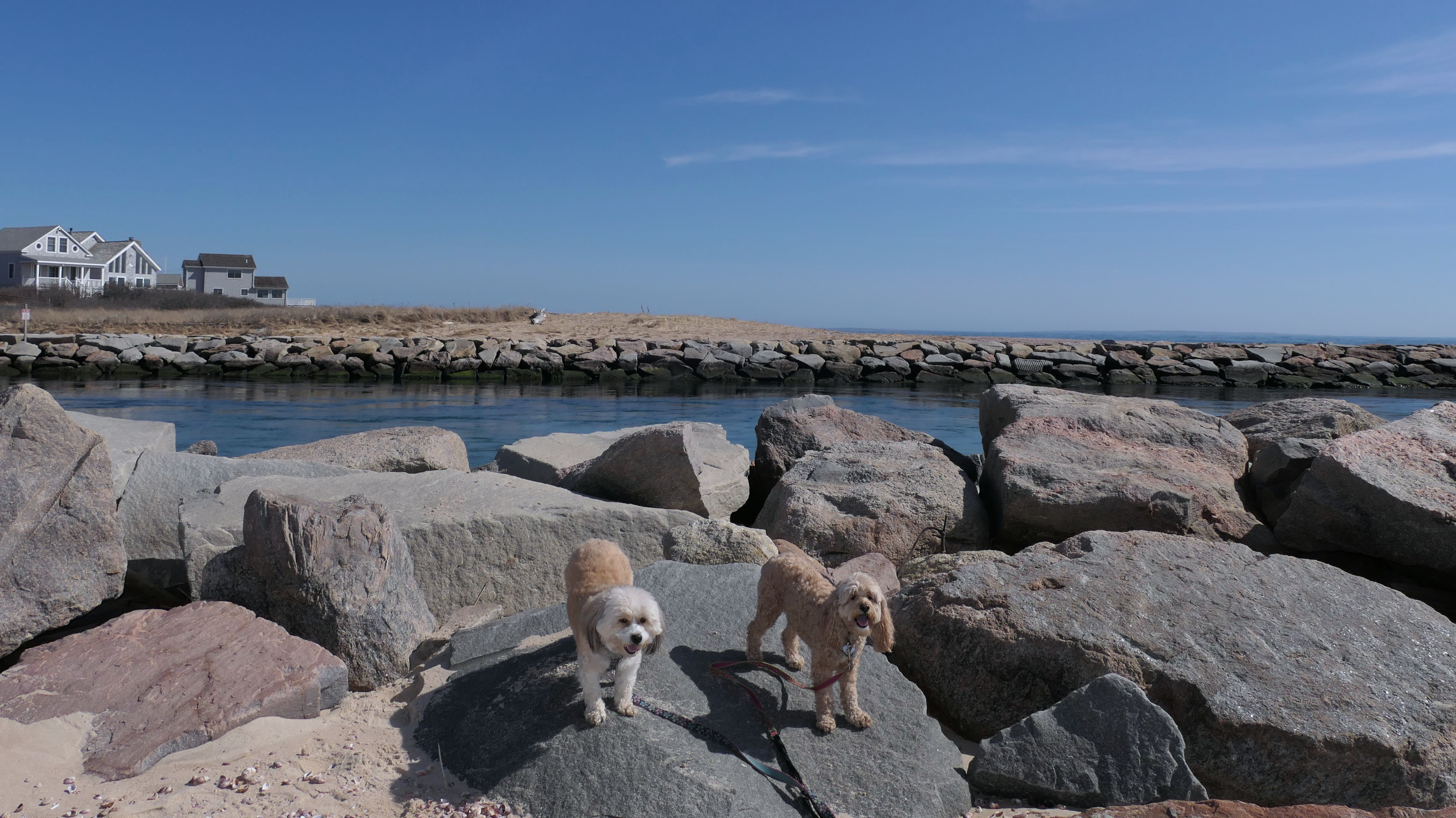 We repeated our adventure from the previous November, where we started at Blue Shutters Beach, and climbed over the rocks to get to this beach. Despite it being in the 50's, the dogs thought it was much warmer, and decided to go in the water multiple times. We went all the way out to the breachway again, before turning around and heading back, on a gorgeous spring afternoon.