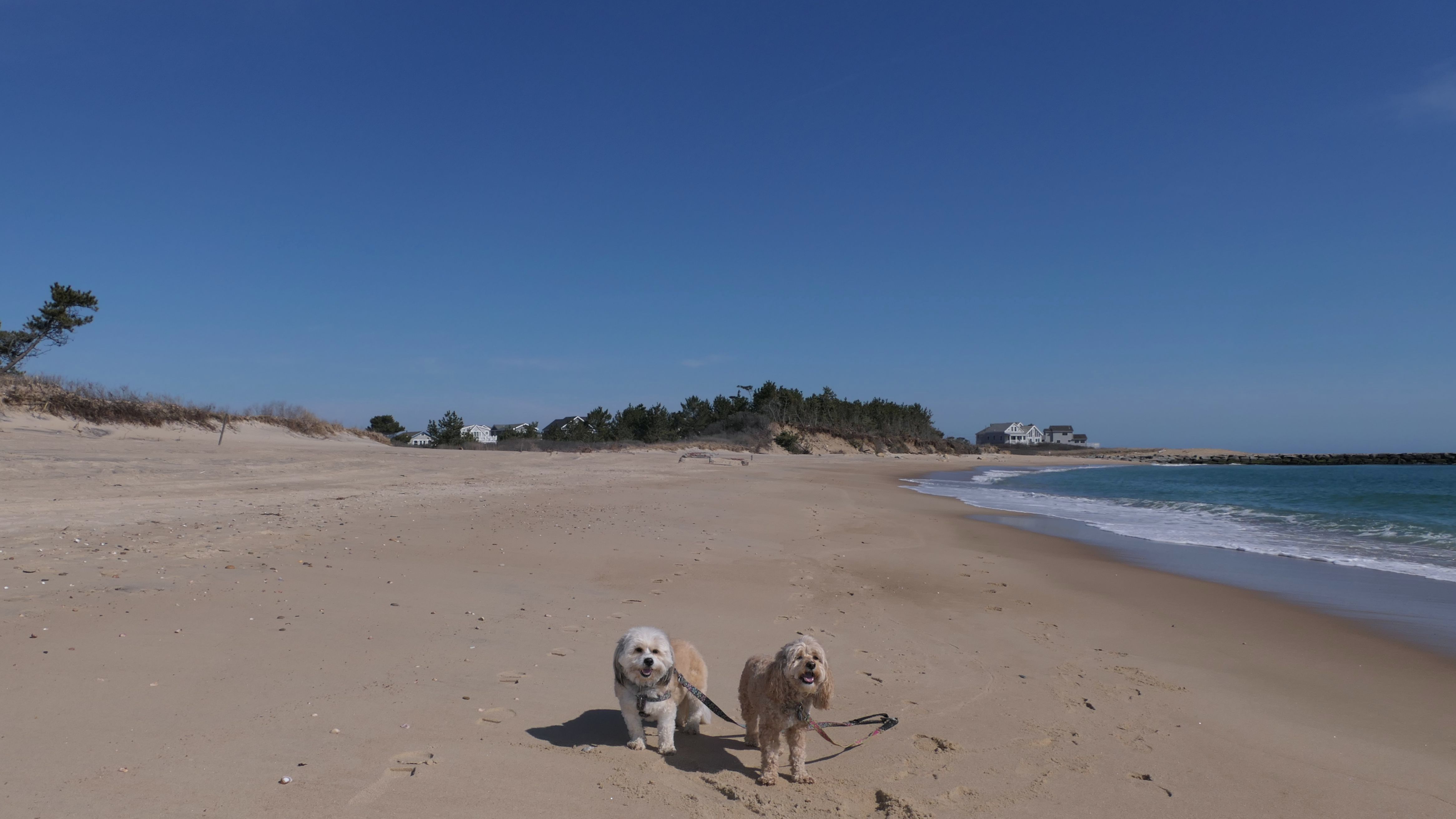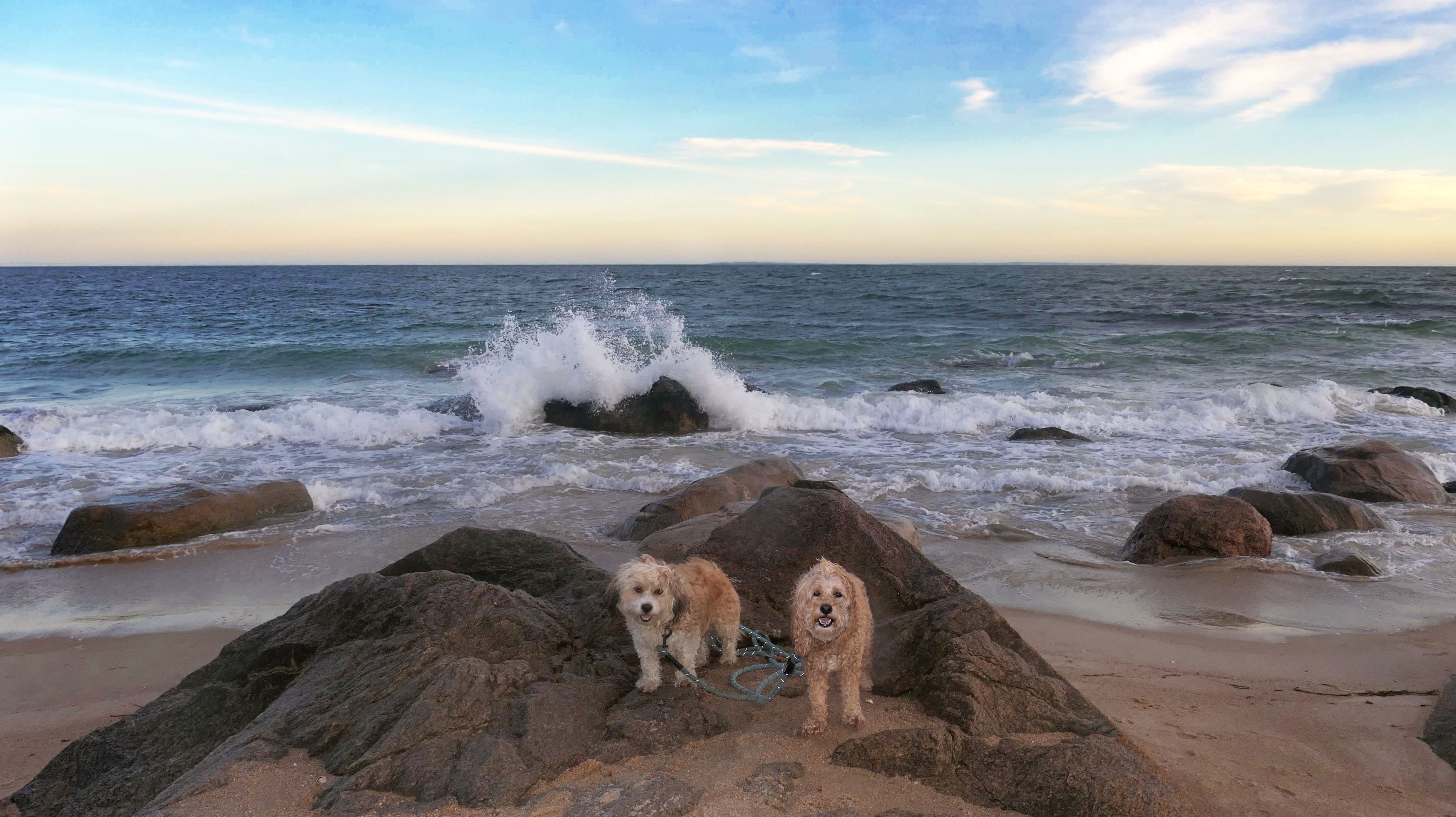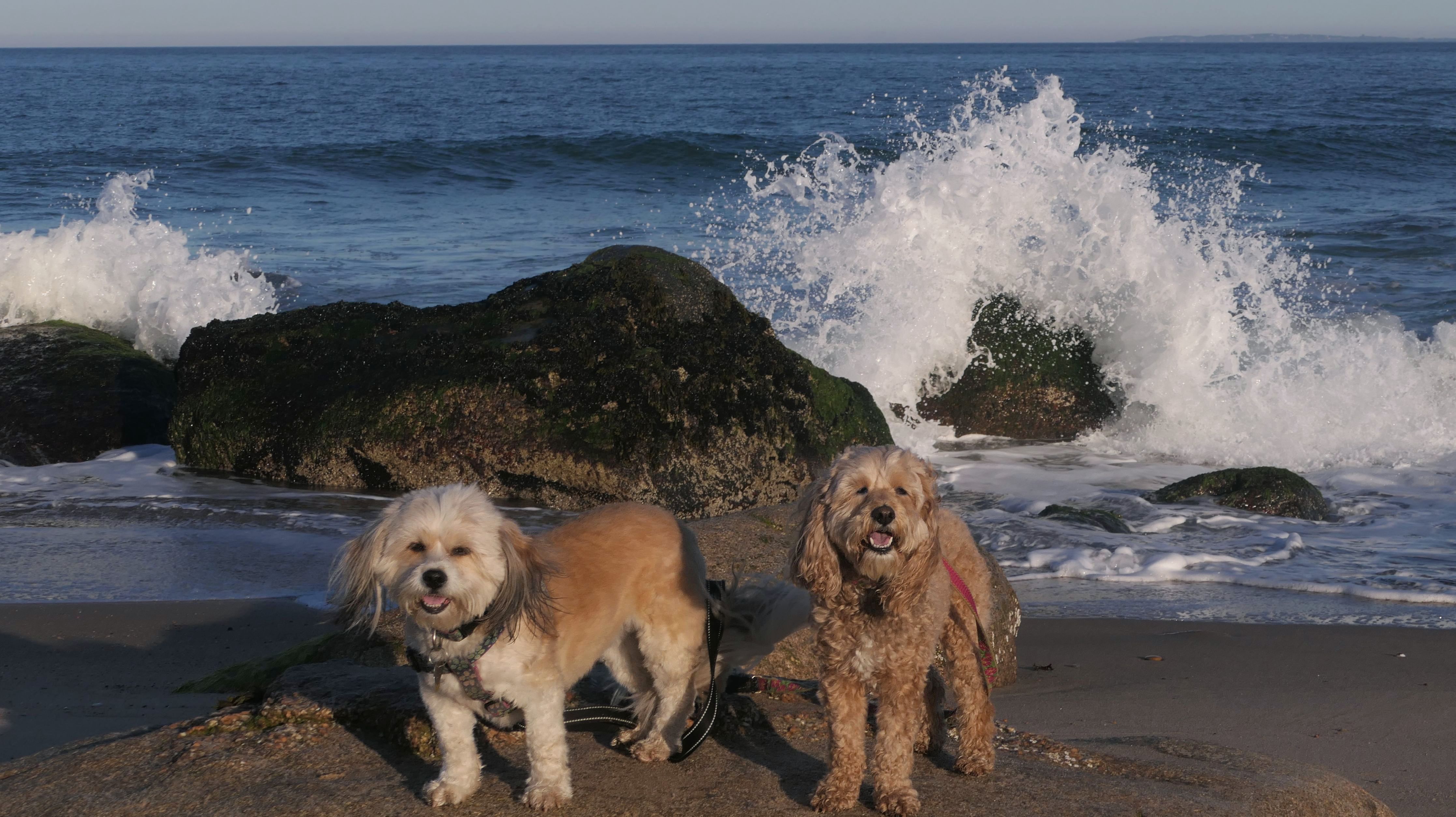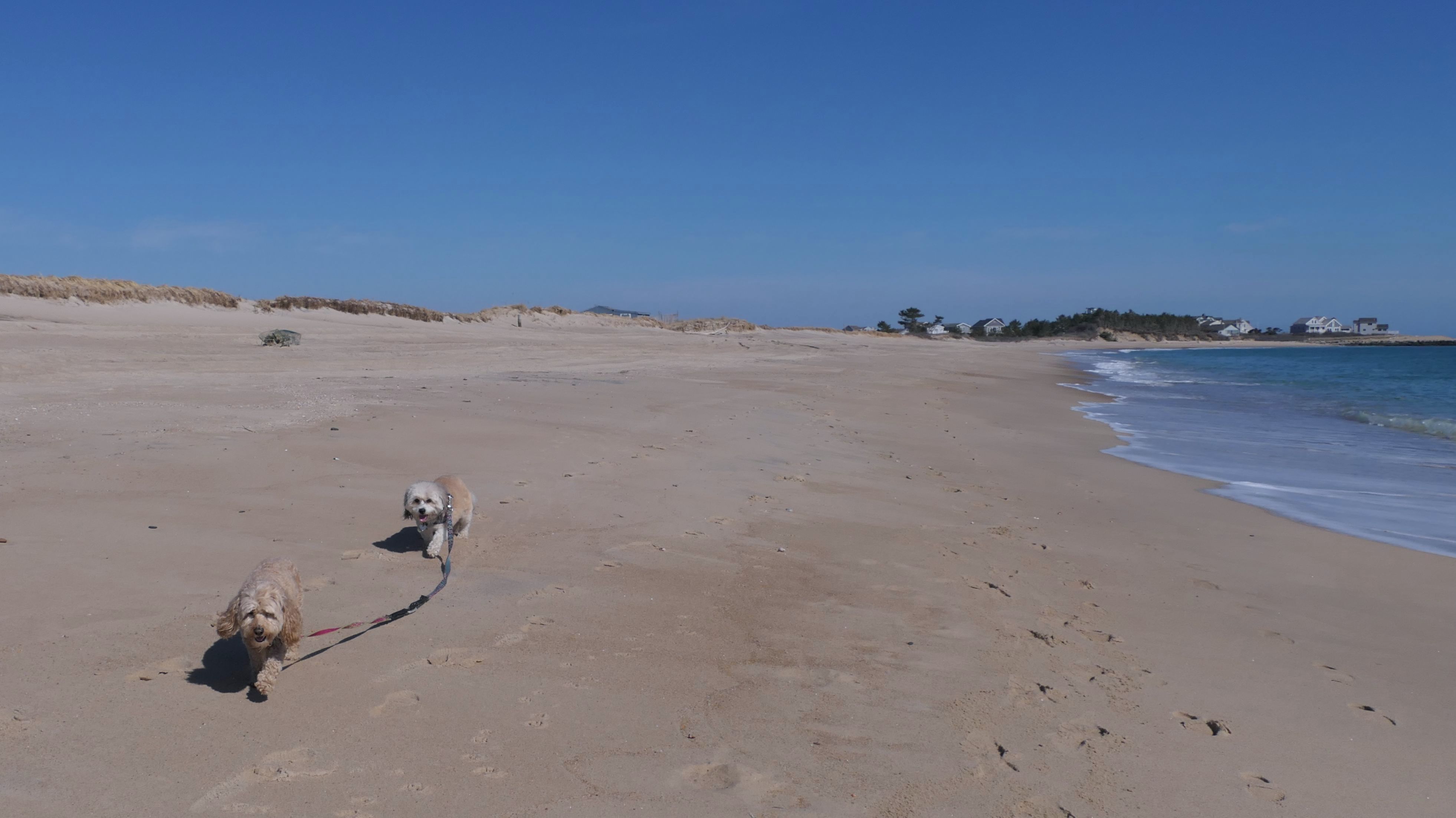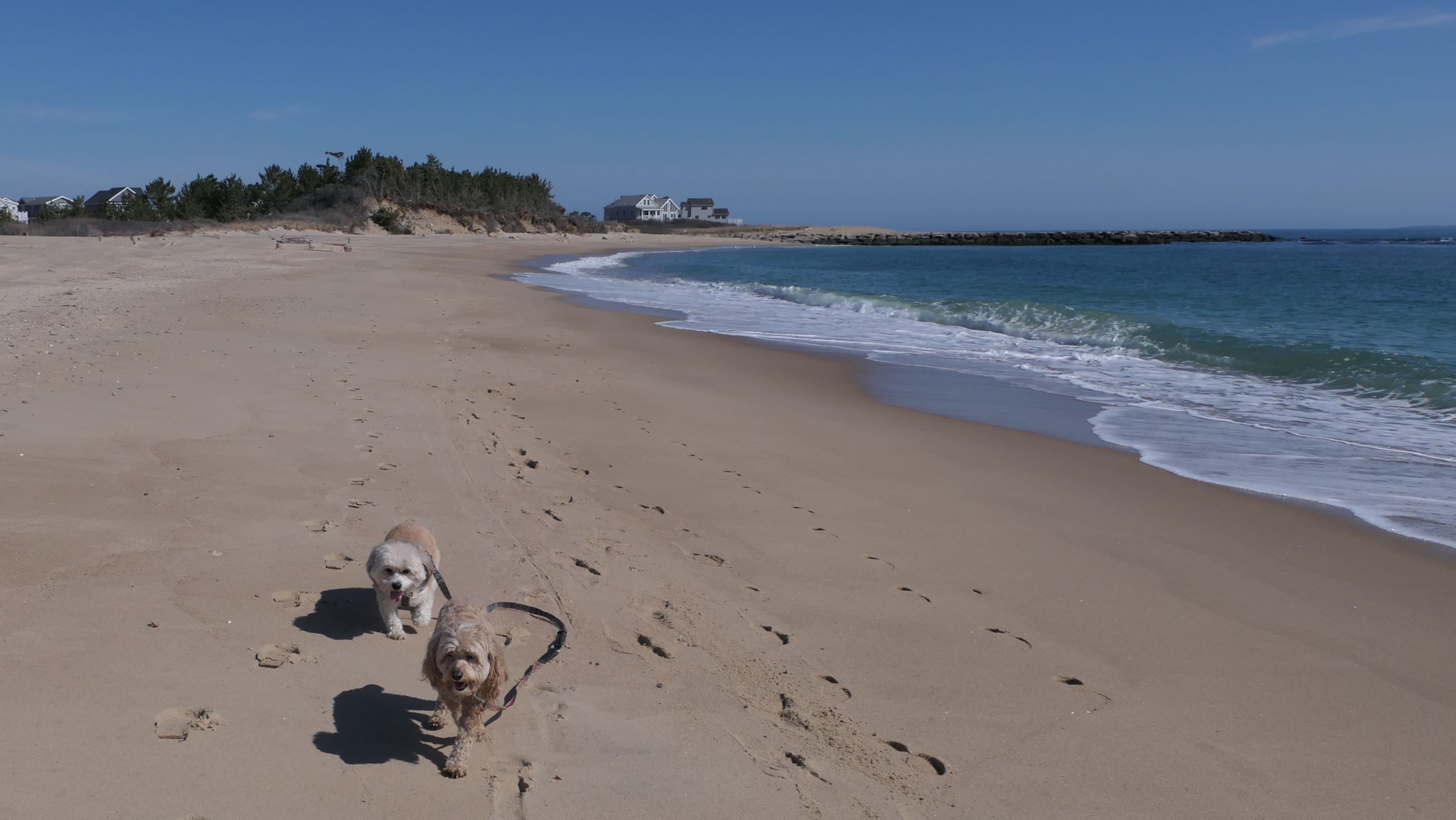We repeated our adventure from the previous November, where we started at Blue Shutters Beach, and climbed over the rocks to get to this beach. Despite it being in the 50's, the dogs thought it was much warmer, and decided to go in the water multiple times. We went all the way out to the breachway again, before turning around and heading back, on a gorgeous spring afternoon.