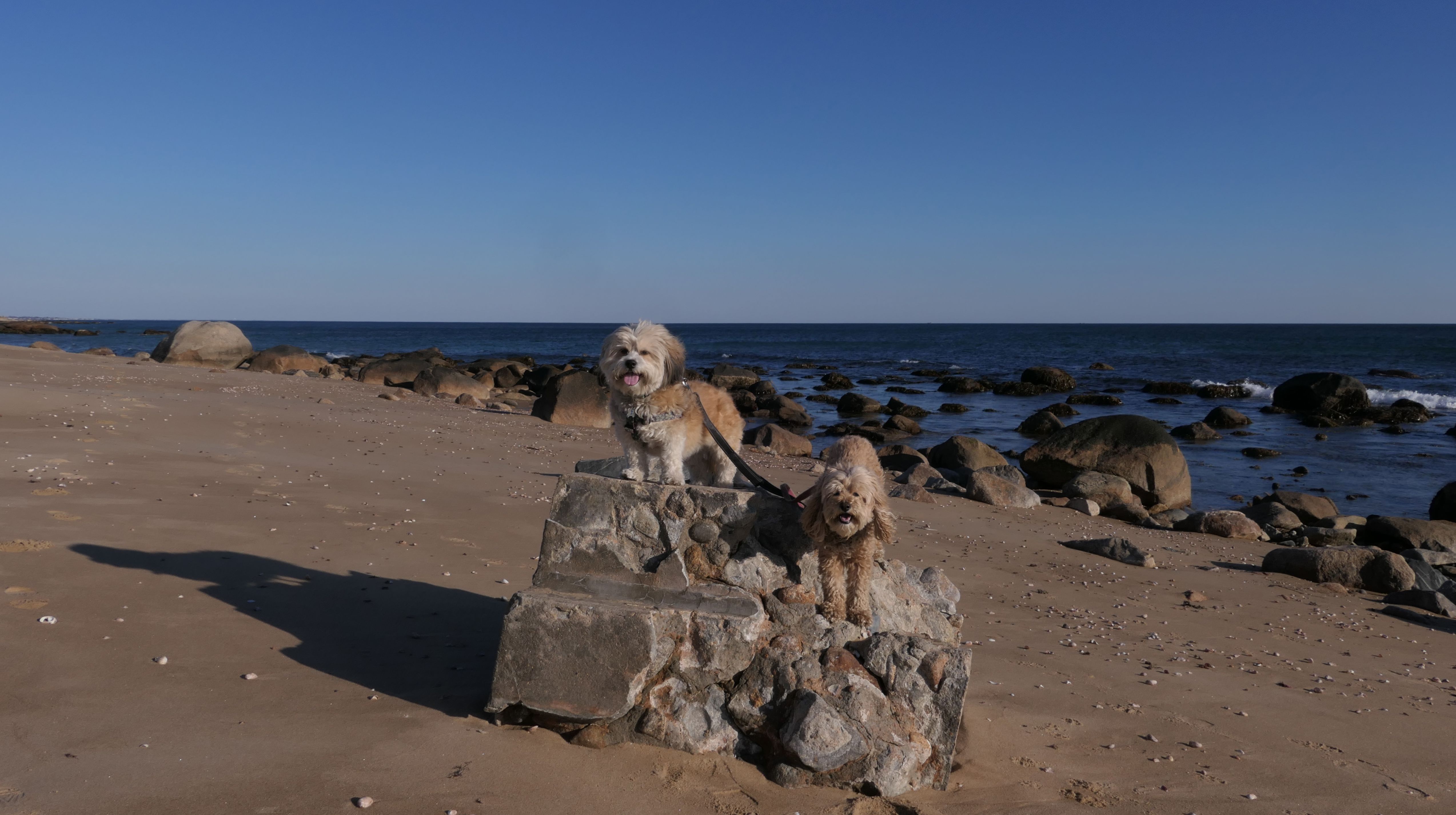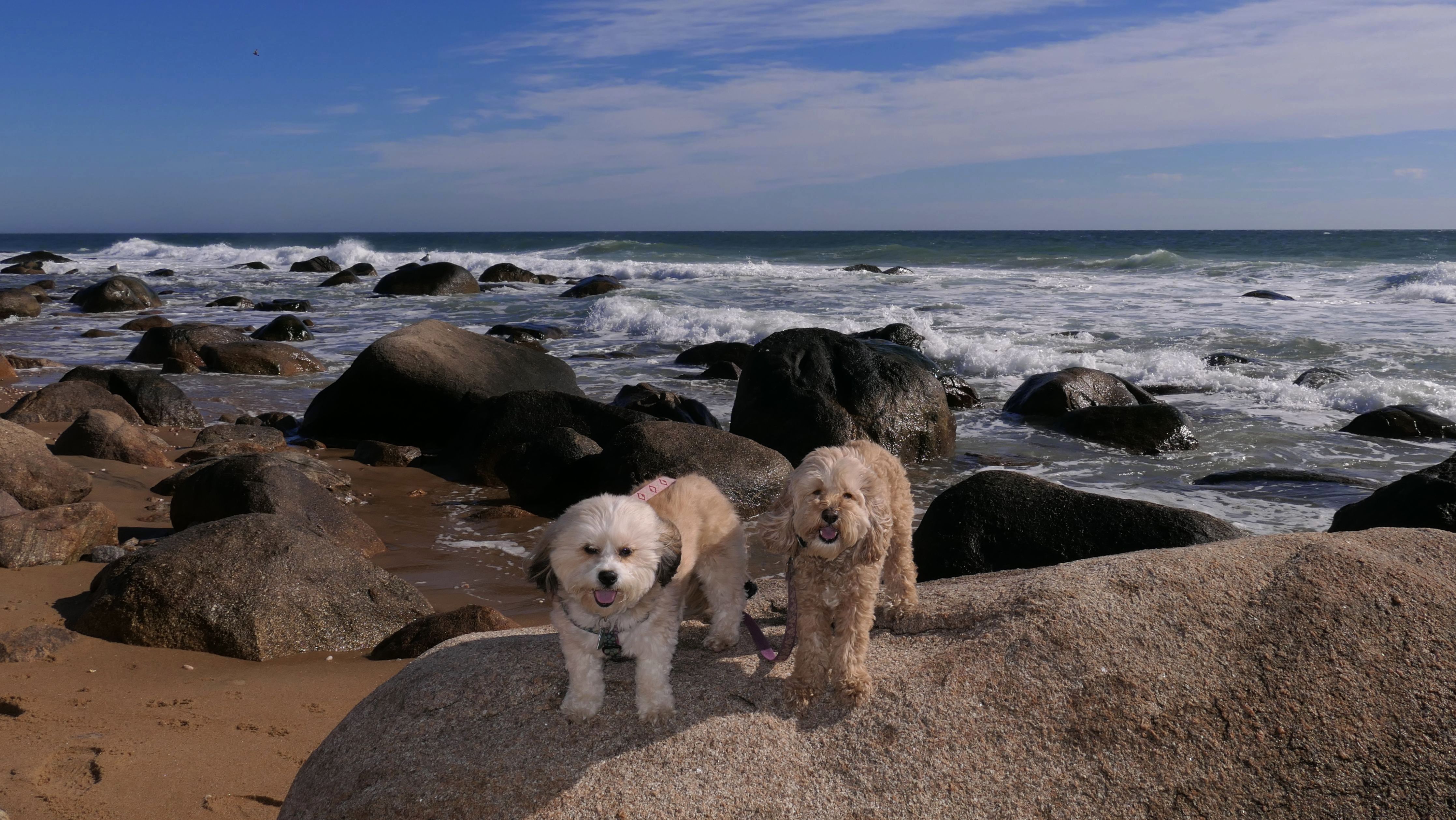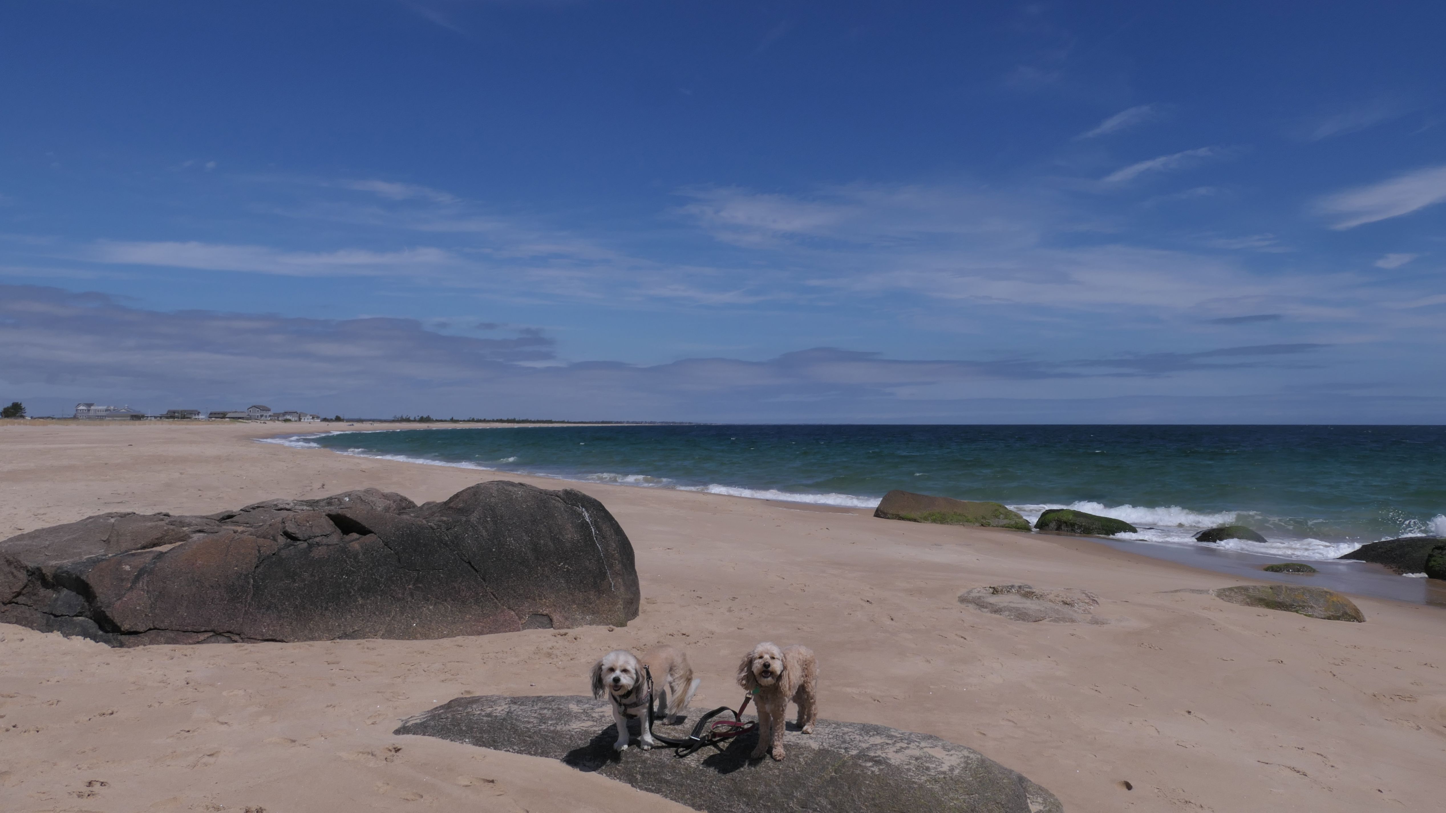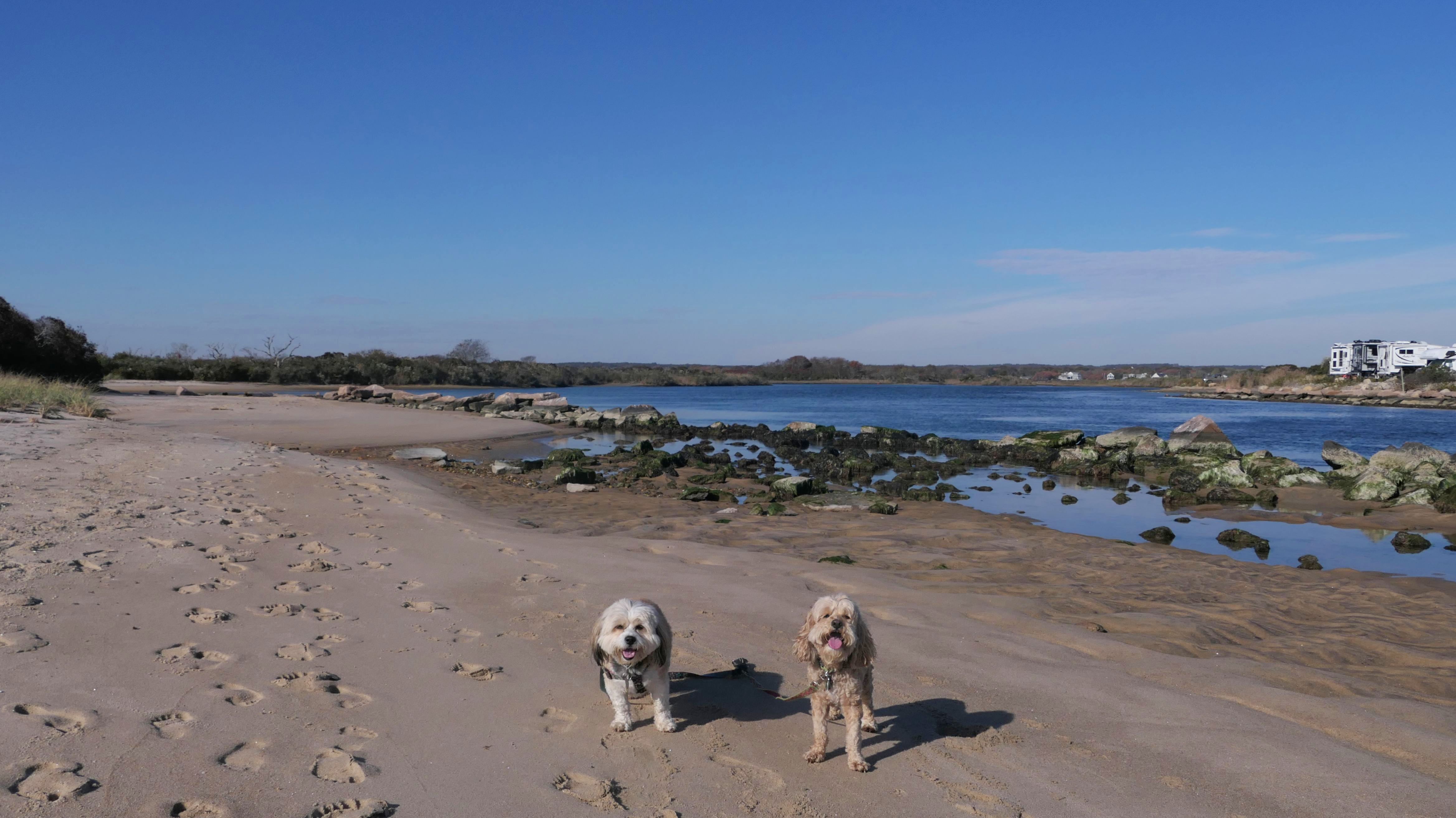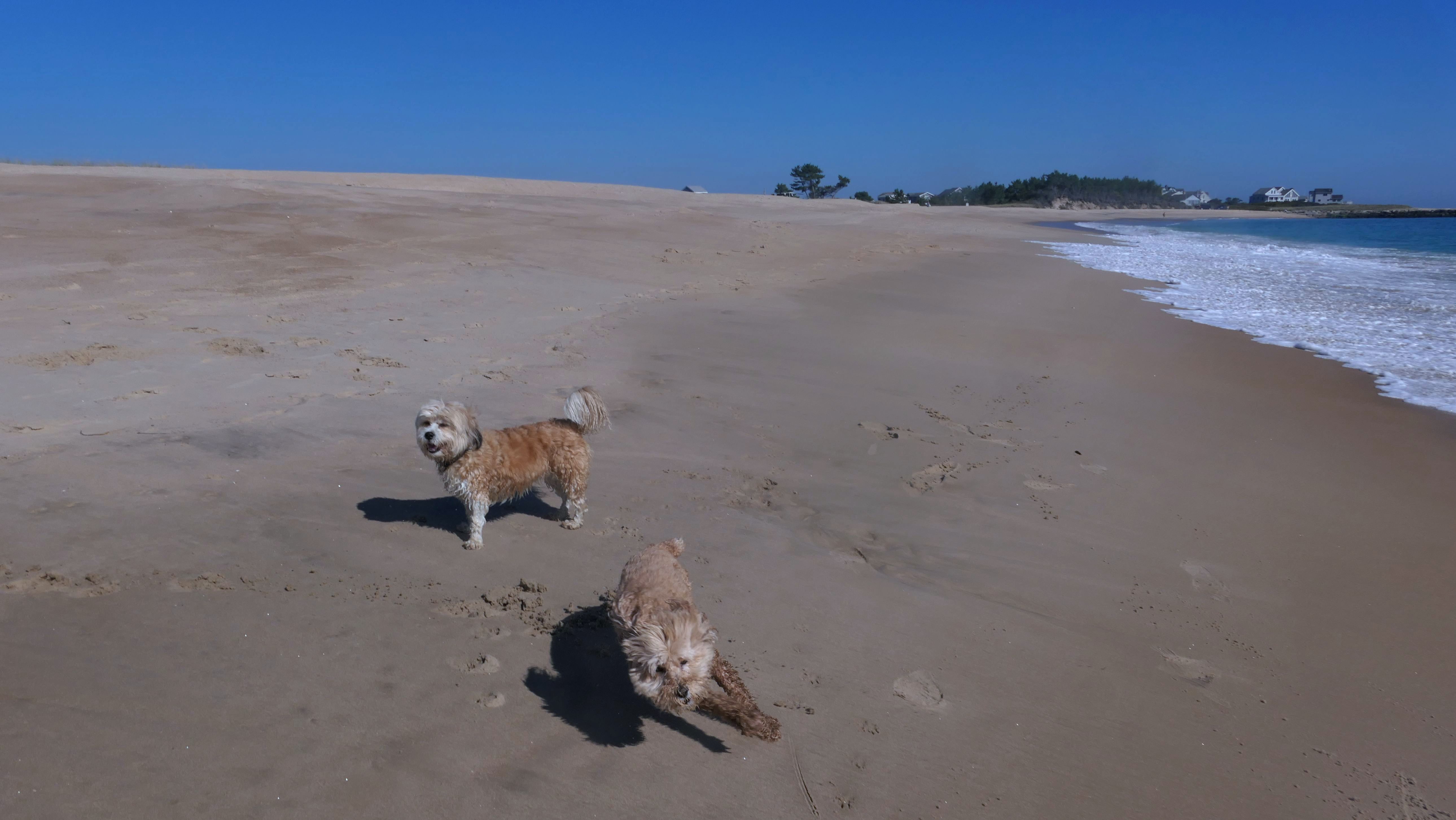 We repeated our adventure from the previous November, where we started at Blue Shutters Beach, and climbed over the rocks to get to this beach. Despite it being in the 50's, the dogs thought it was much warmer, and decided to go in the water multiple times. We went all the way out to the breachway again, before turning around and heading back, on a gorgeous spring afternoon.