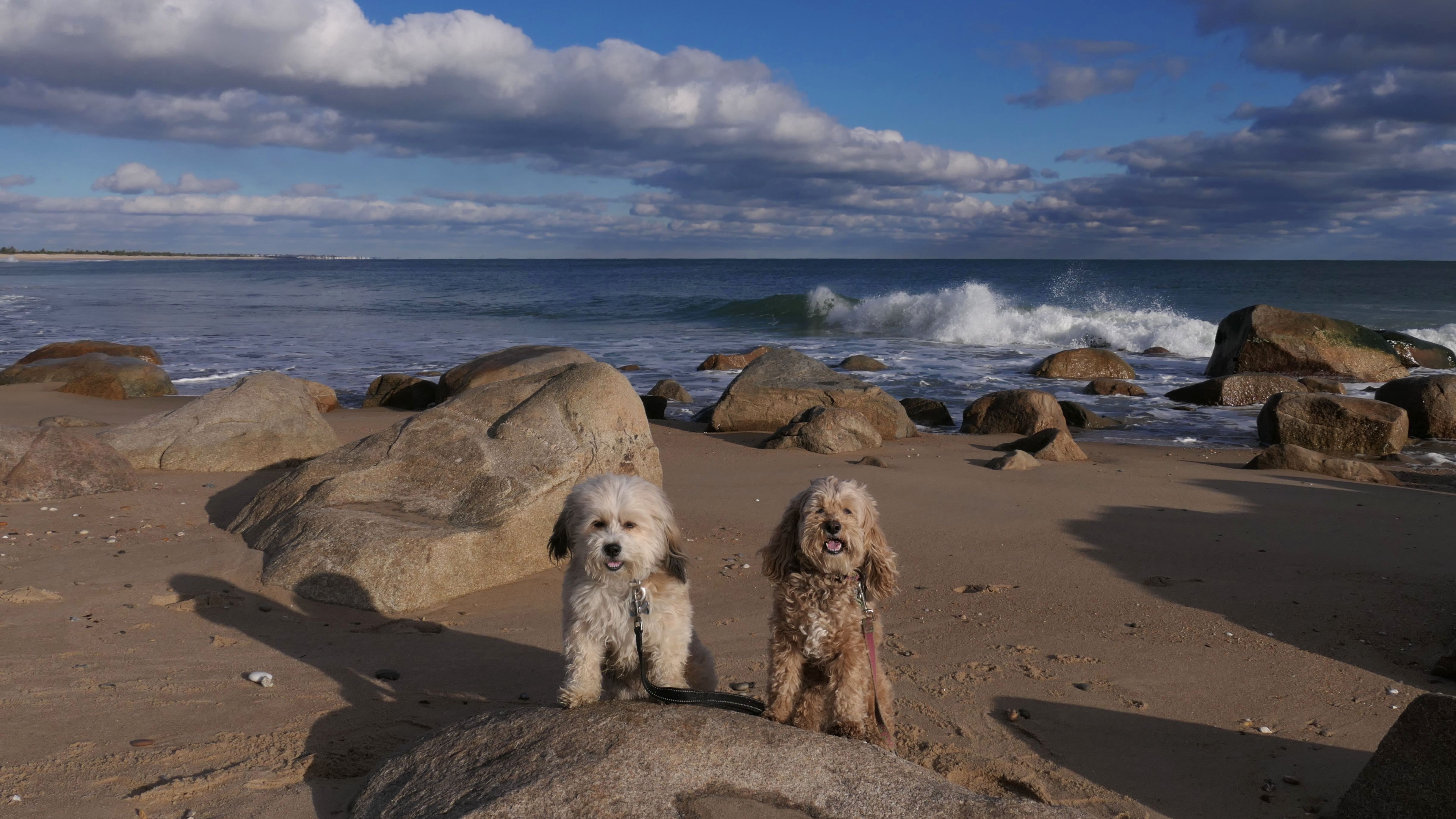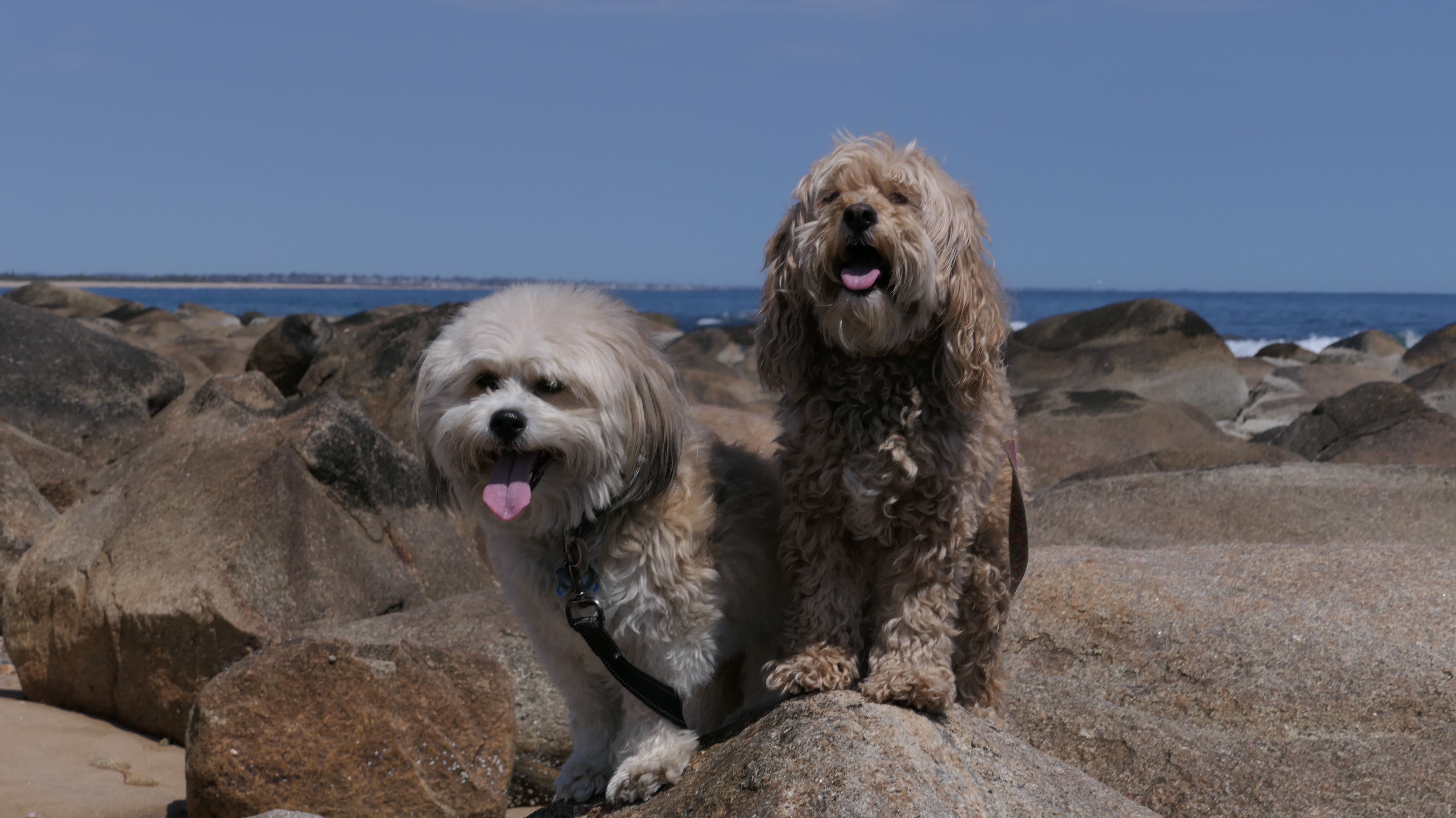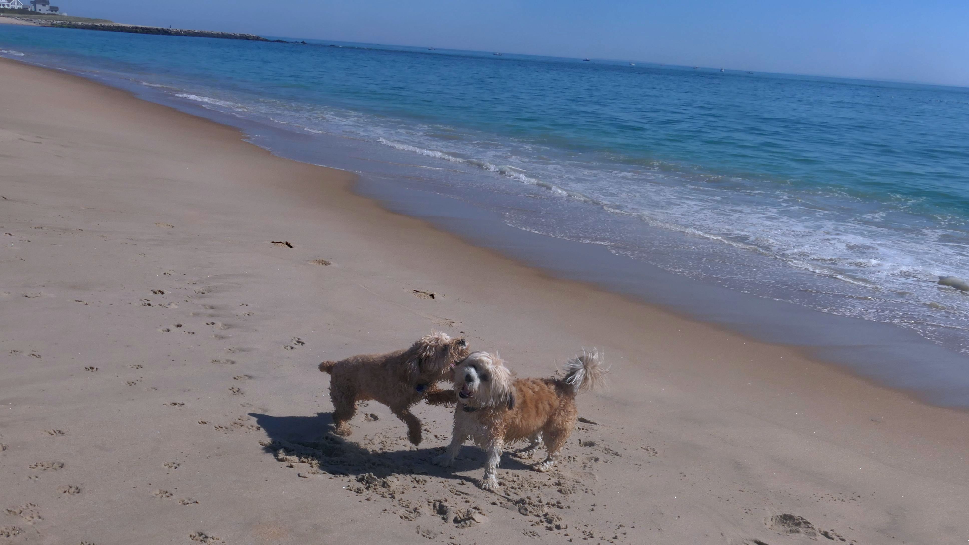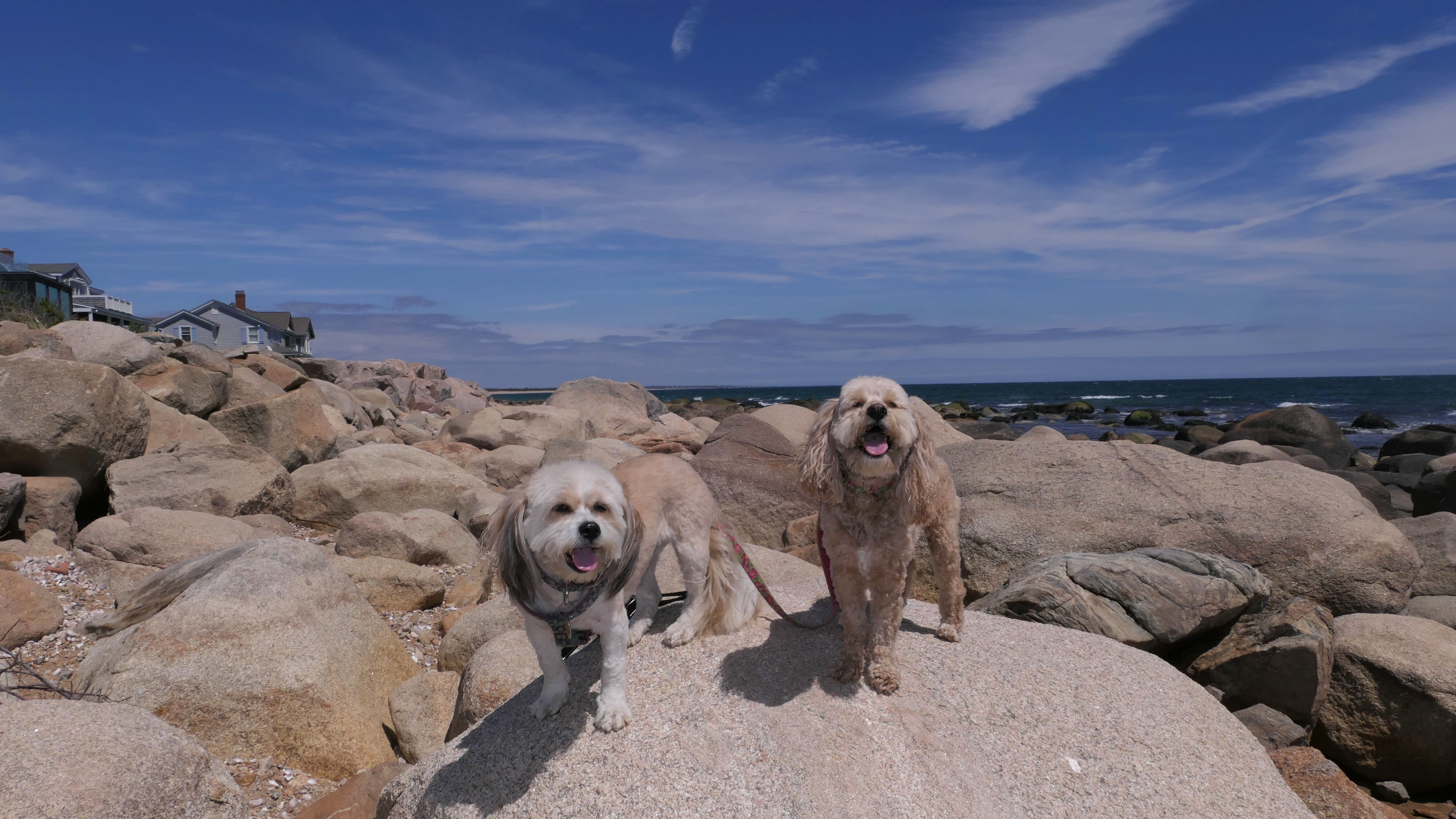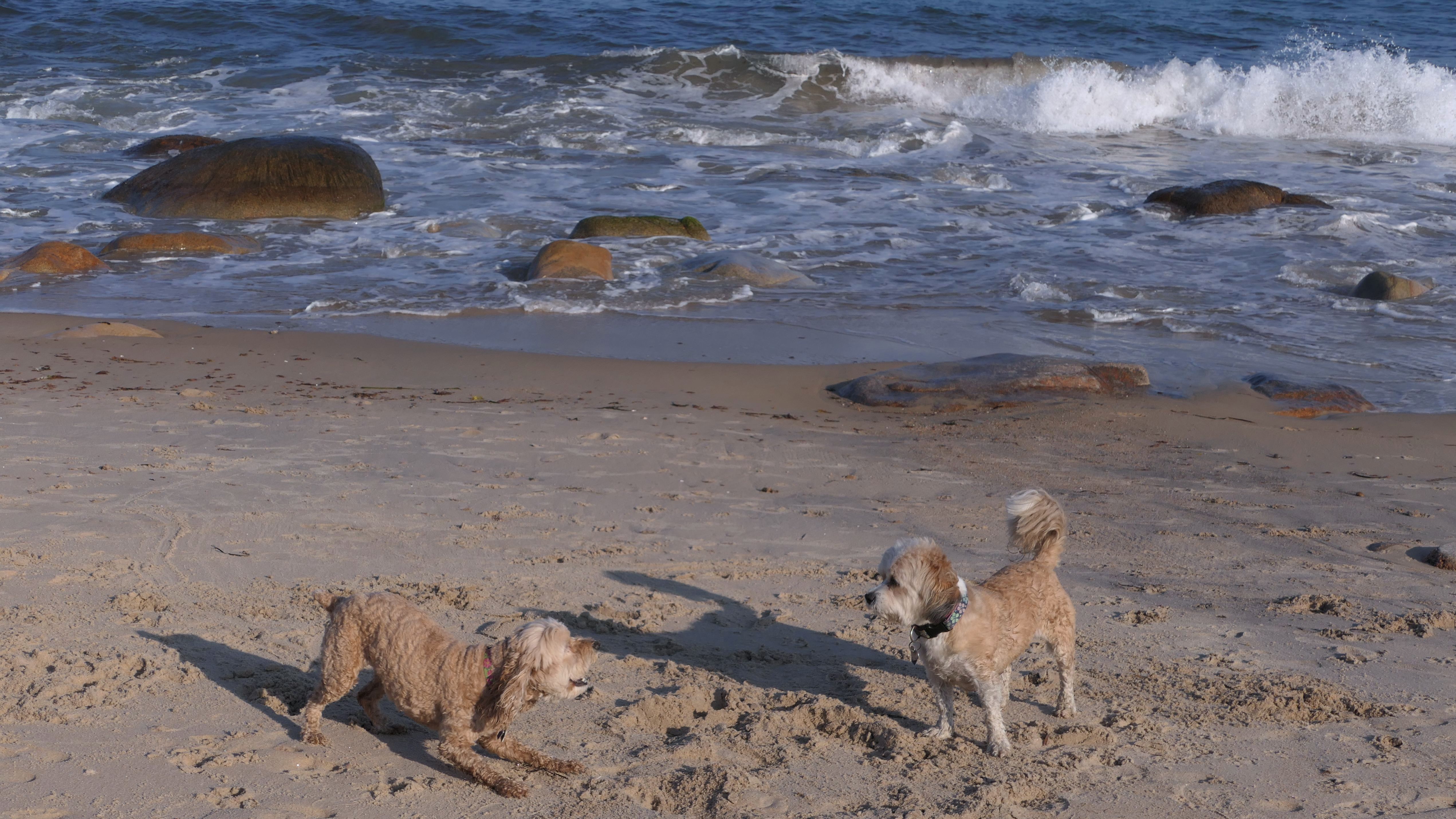 We repeated our adventure from the previous November, where we started at Blue Shutters Beach, and climbed over the rocks to get to this beach. Despite it being in the 50's, the dogs thought it was much warmer, and decided to go in the water multiple times. We went all the way out to the breachway again, before turning around and heading back, on a gorgeous spring afternoon.