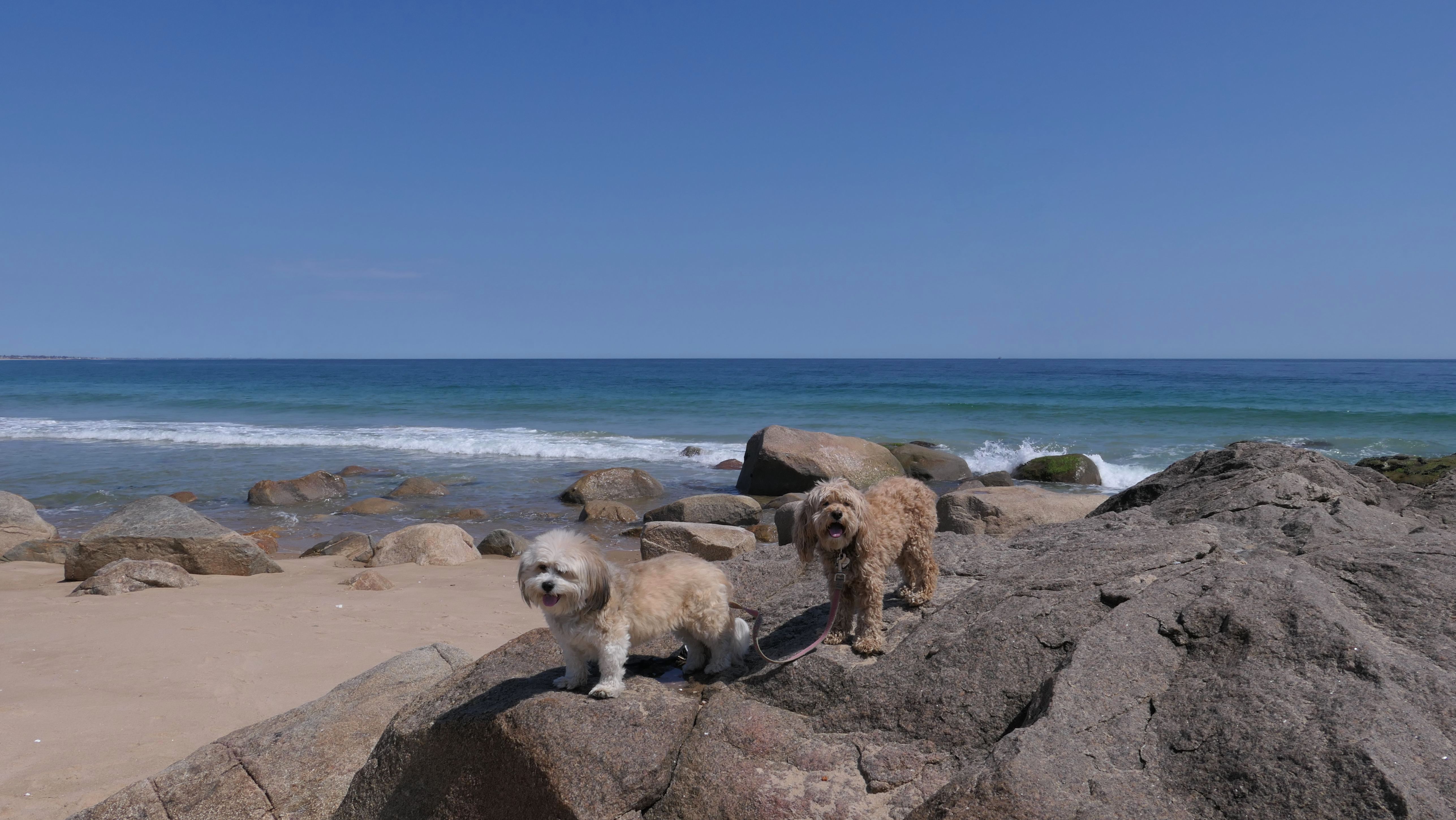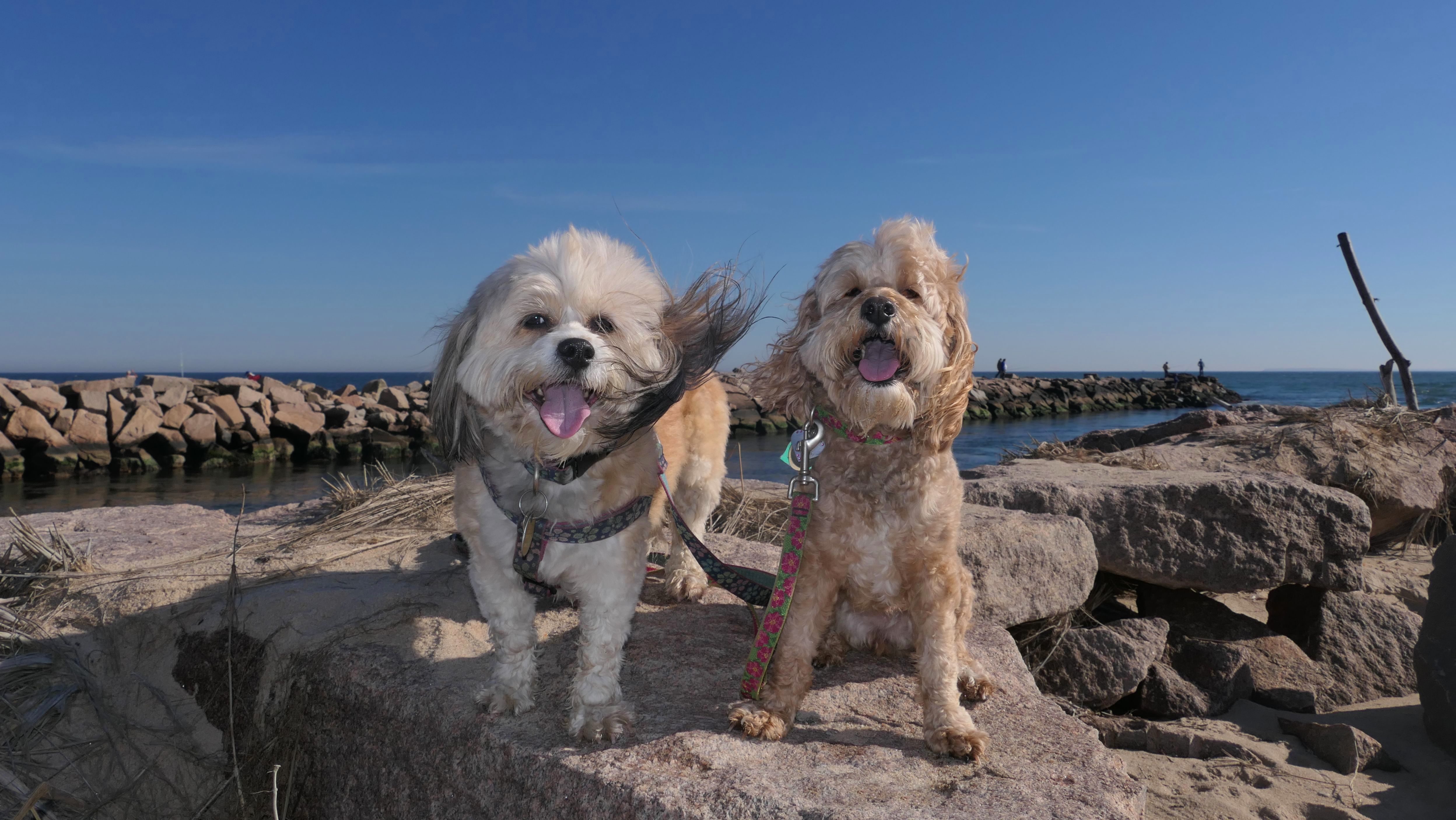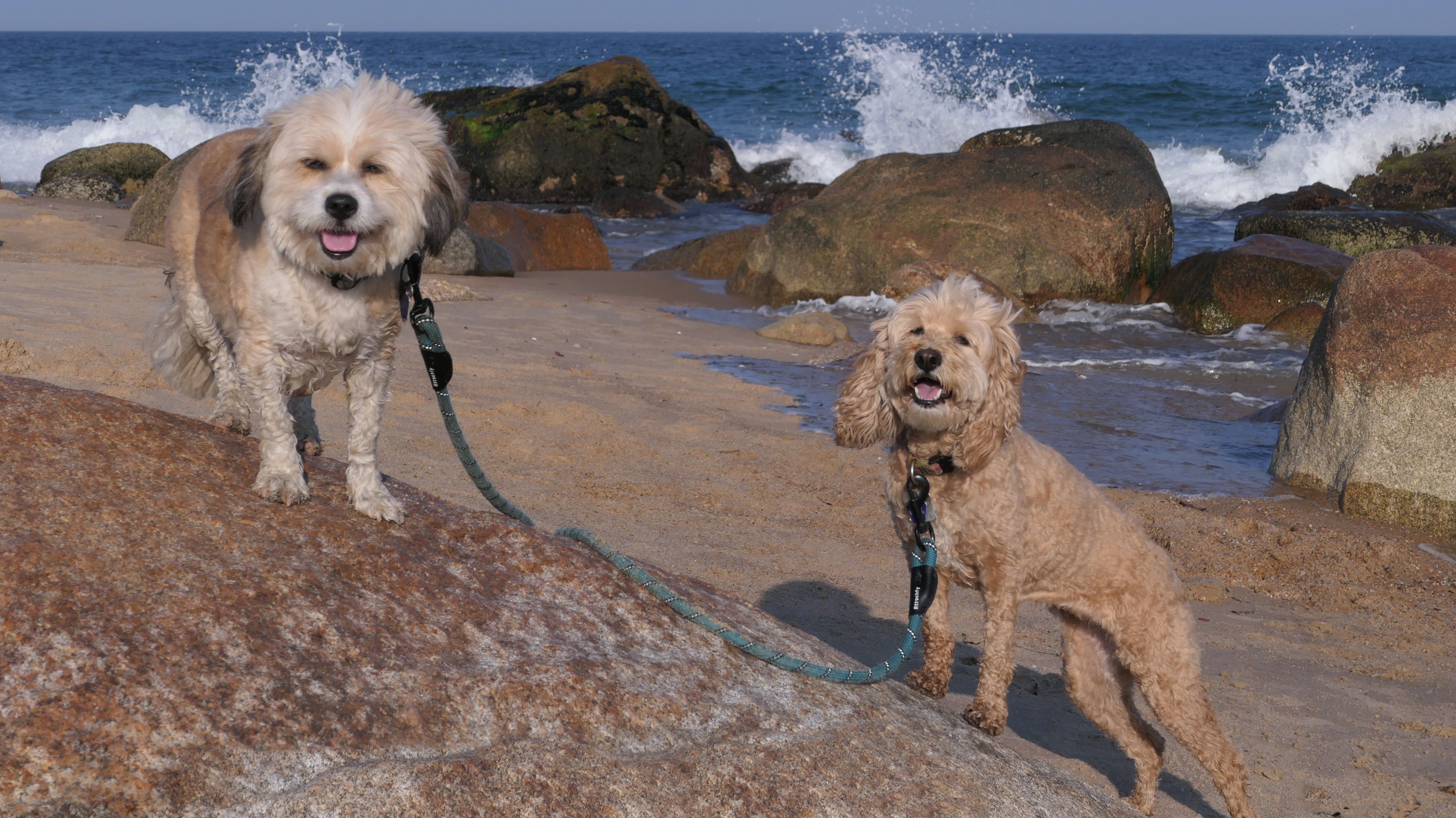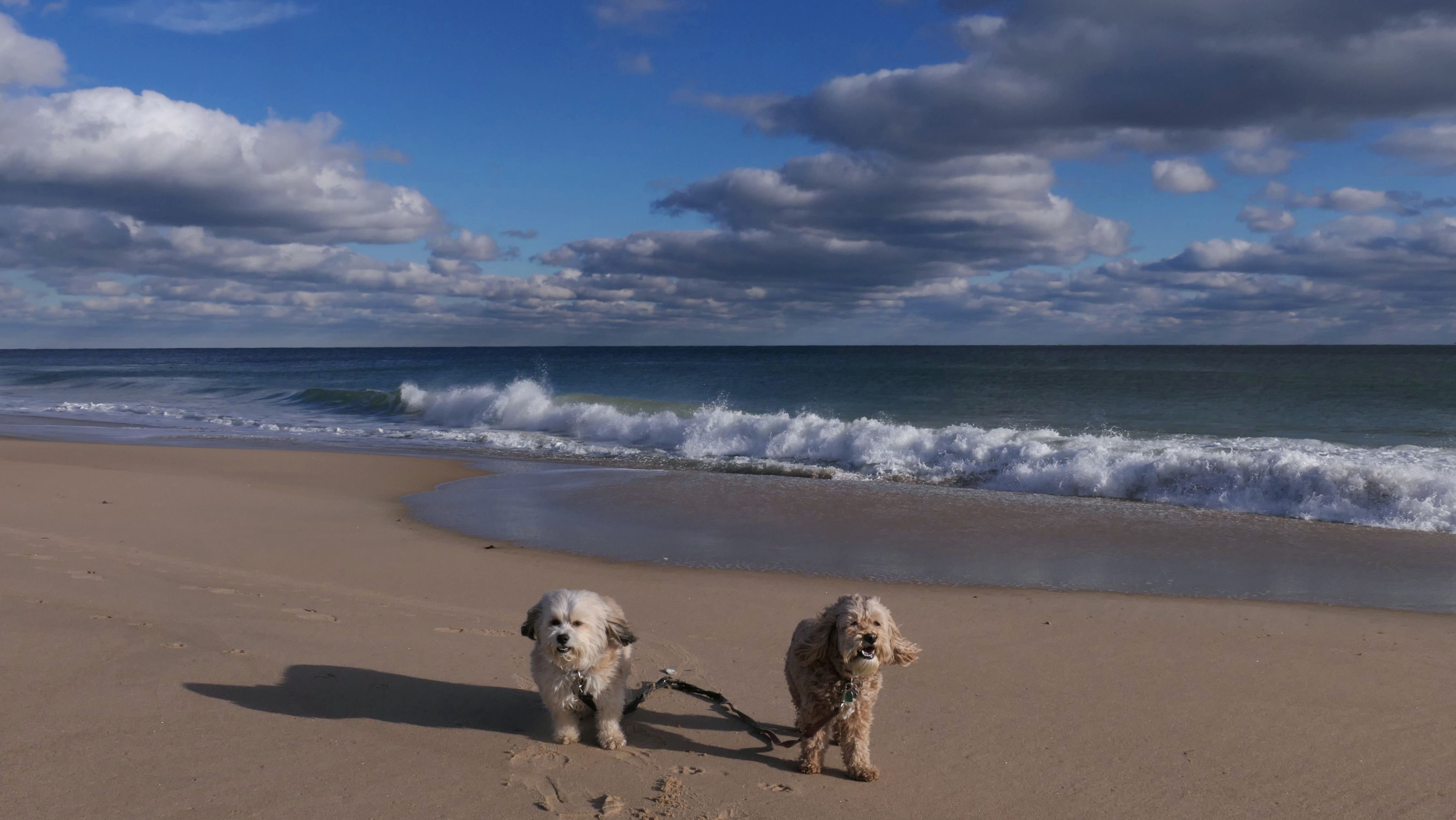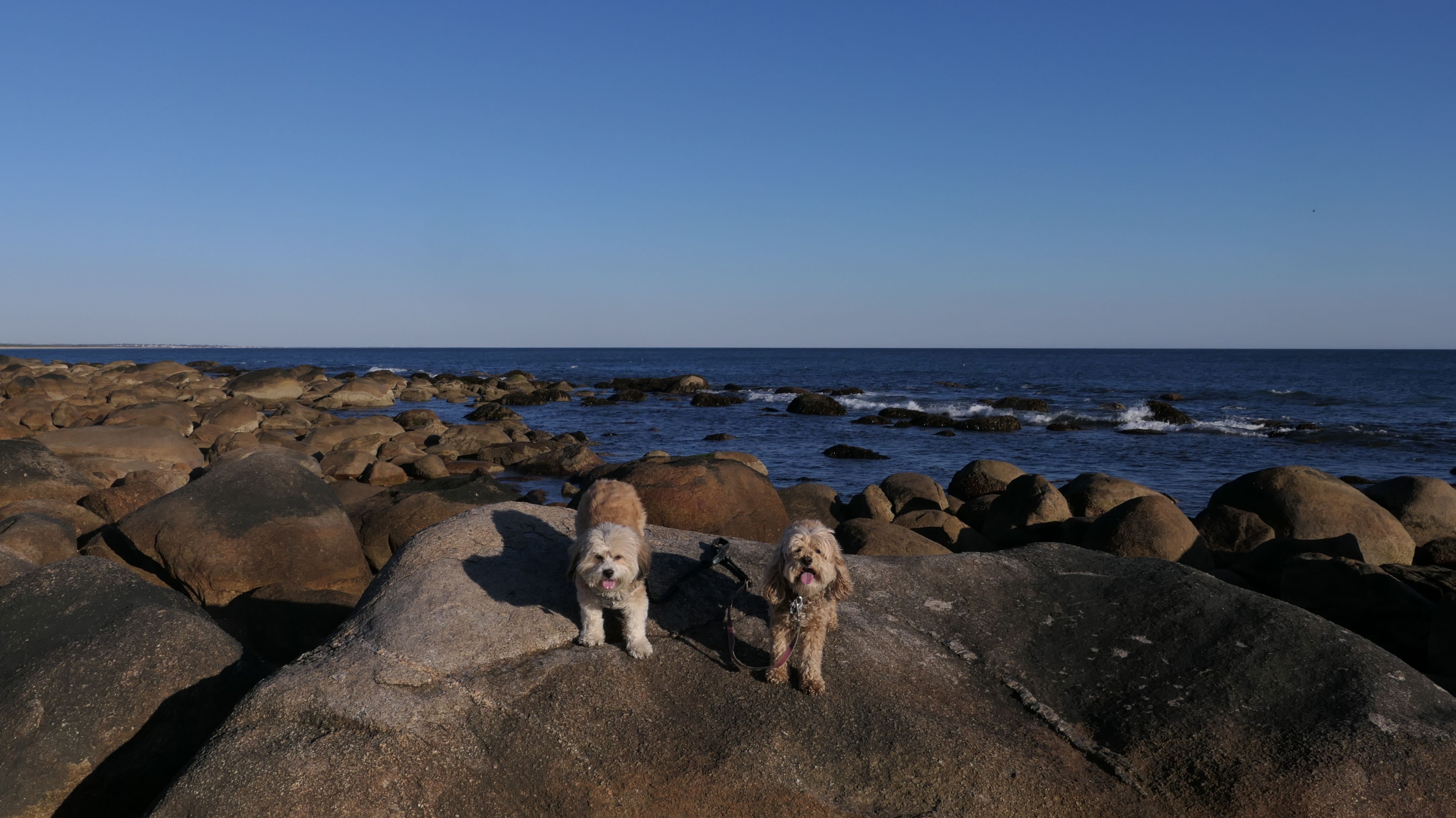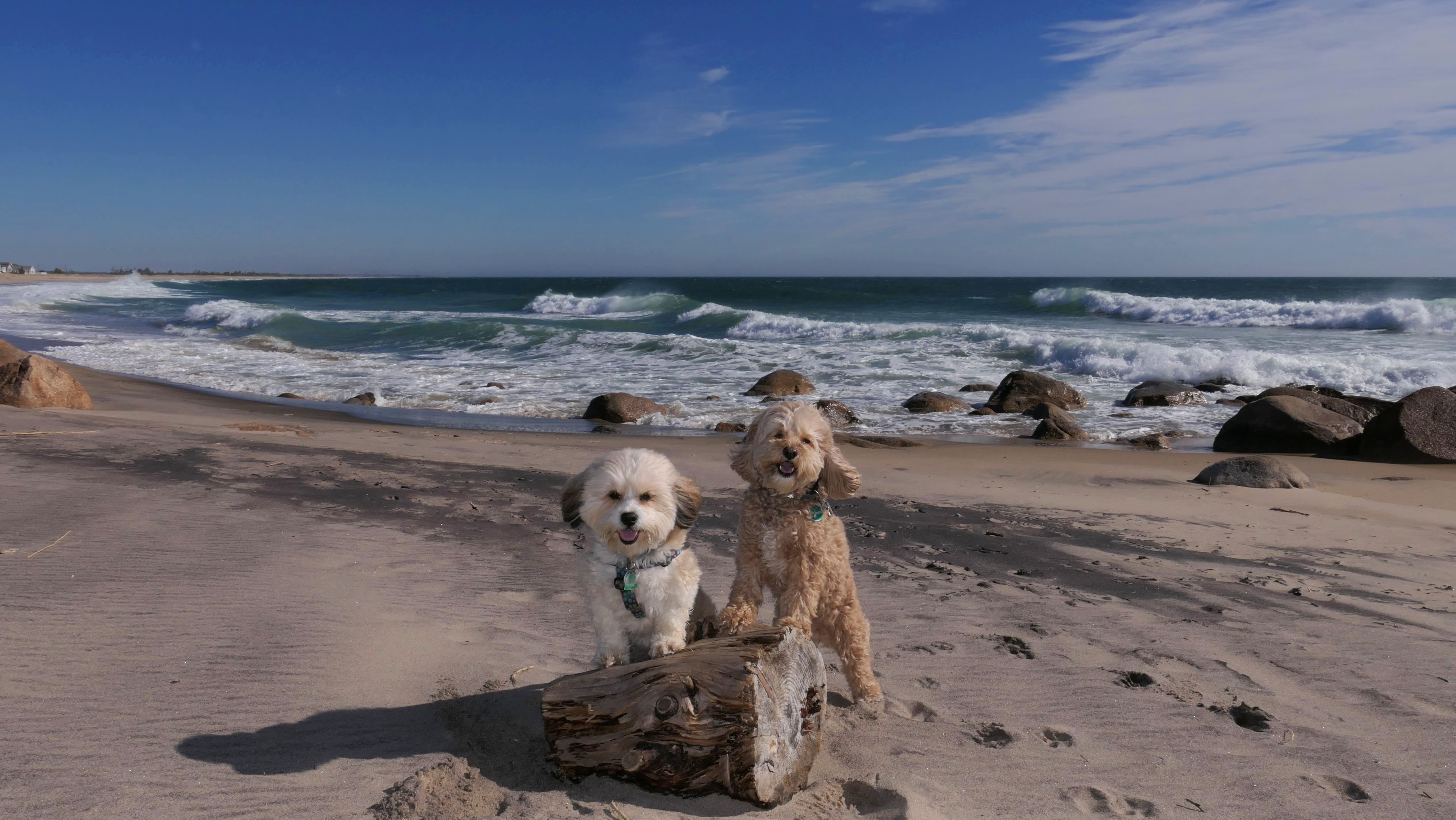 We repeated our adventure from the previous November, where we started at Blue Shutters Beach, and climbed over the rocks to get to this beach. Despite it being in the 50's, the dogs thought it was much warmer, and decided to go in the water multiple times. We went all the way out to the breachway again, before turning around and heading back, on a gorgeous spring afternoon.