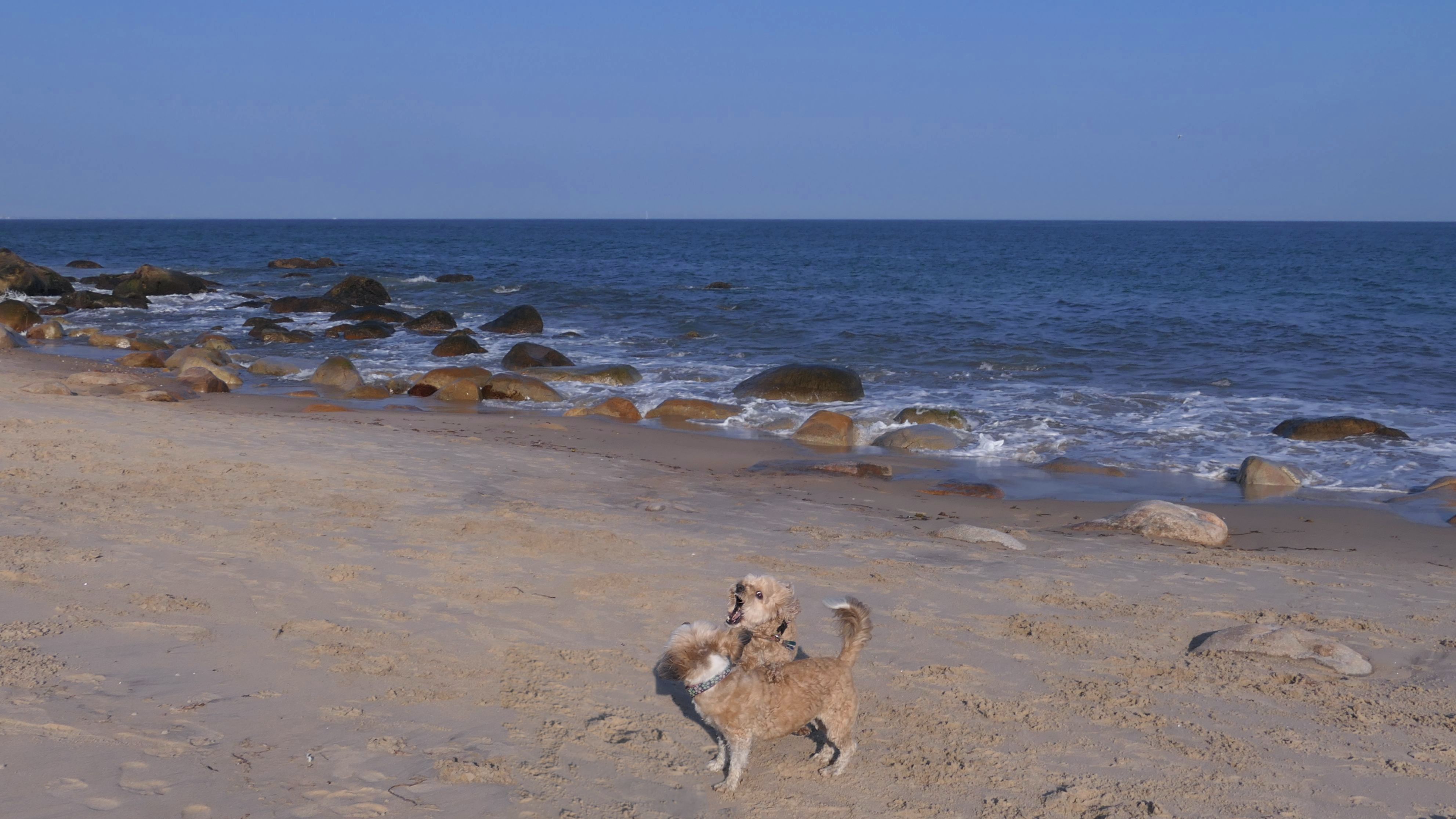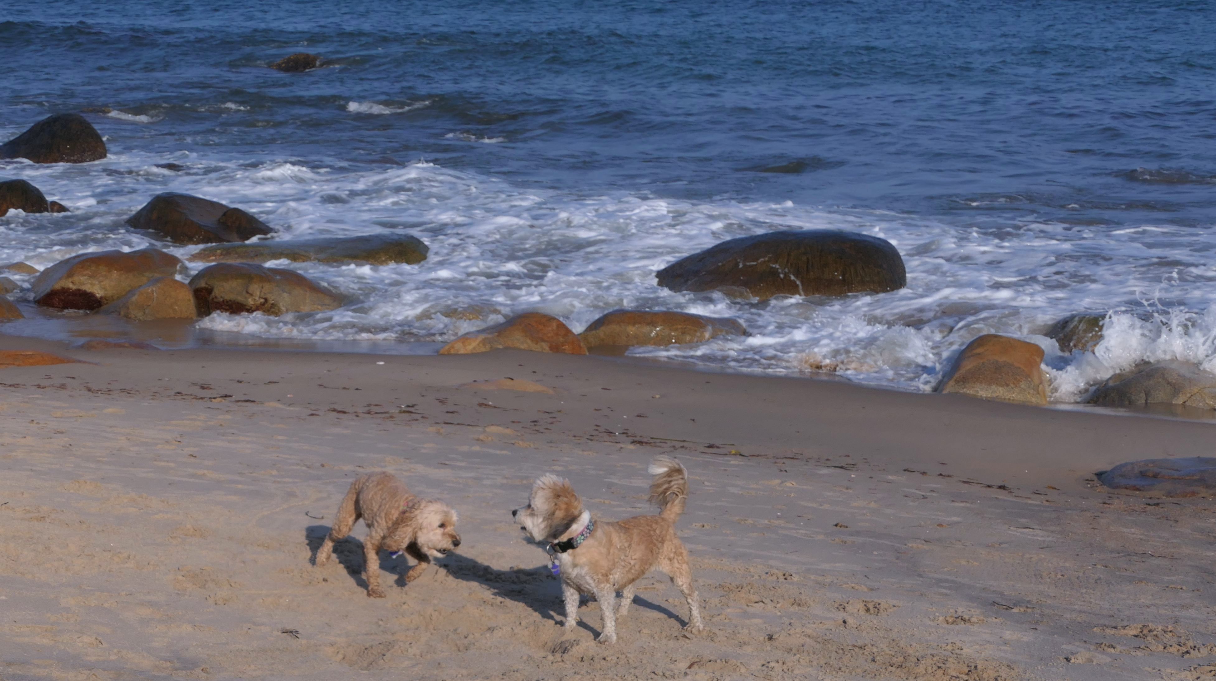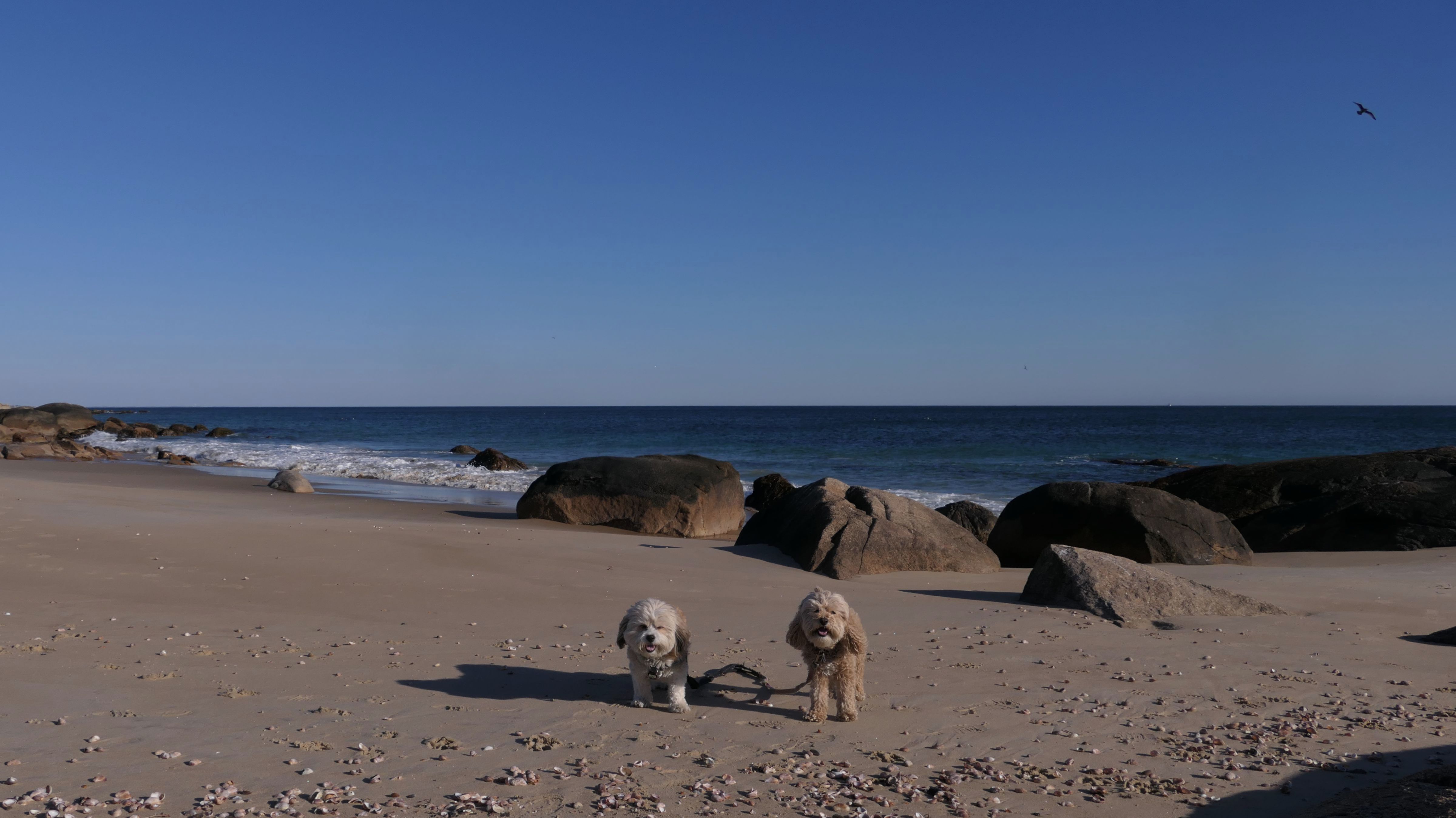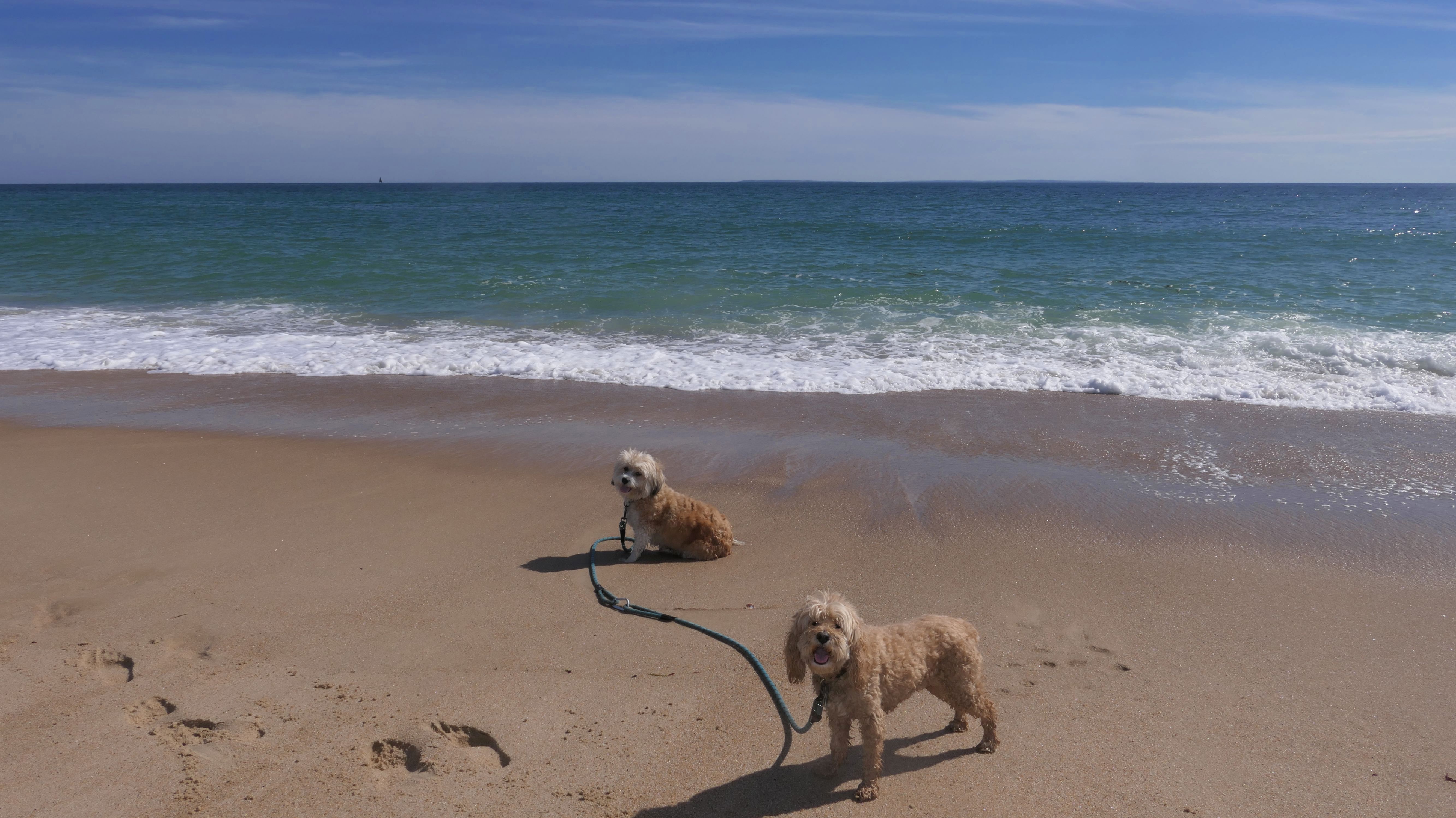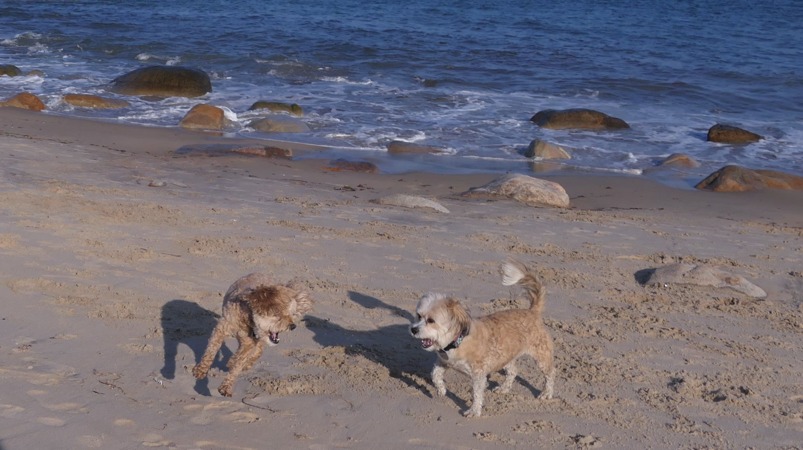 We repeated our adventure from the previous November, where we started at Blue Shutters Beach, and climbed over the rocks to get to this beach. Despite it being in the 50's, the dogs thought it was much warmer, and decided to go in the water multiple times. We went all the way out to the breachway again, before turning around and heading back, on a gorgeous spring afternoon.