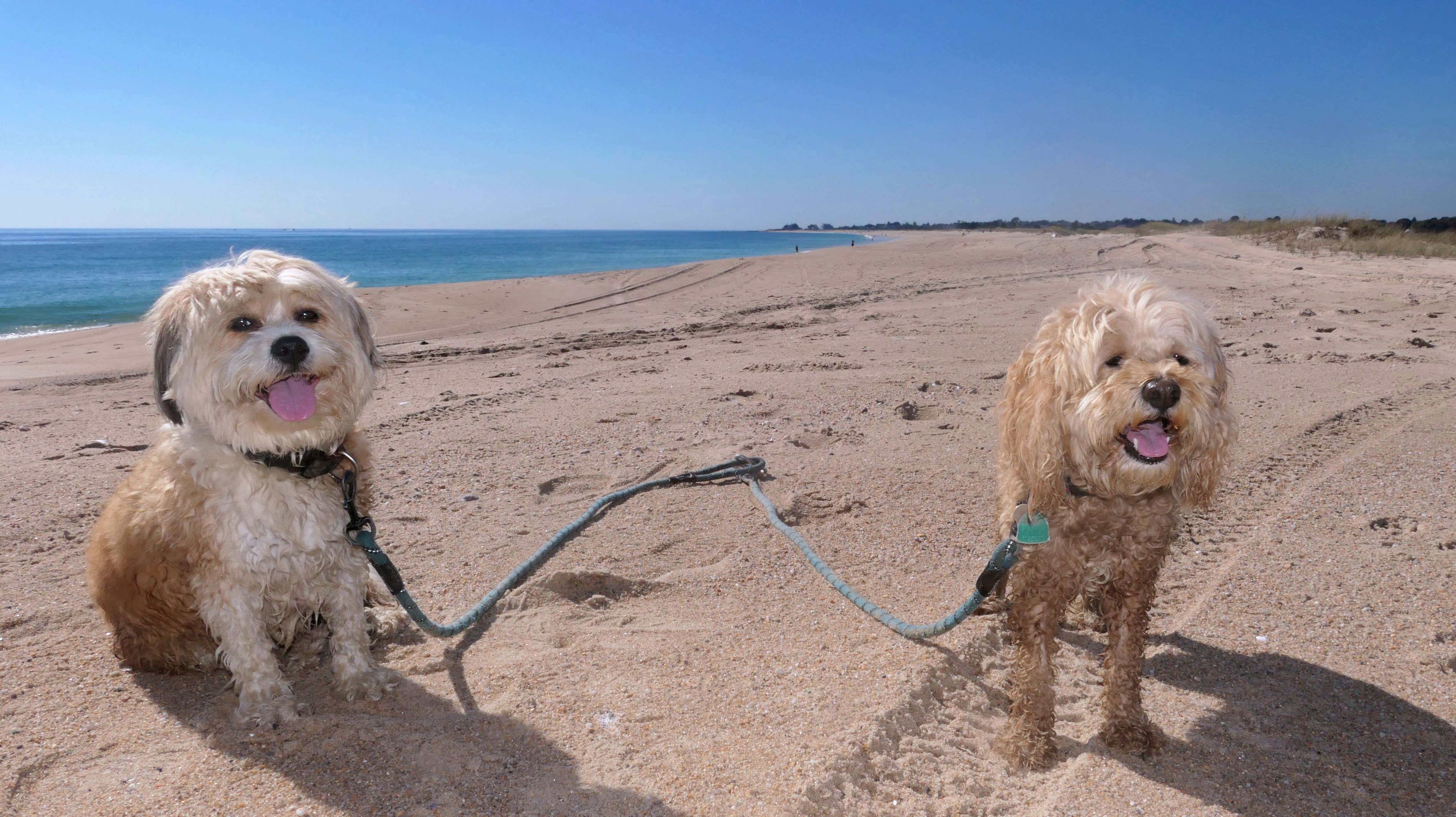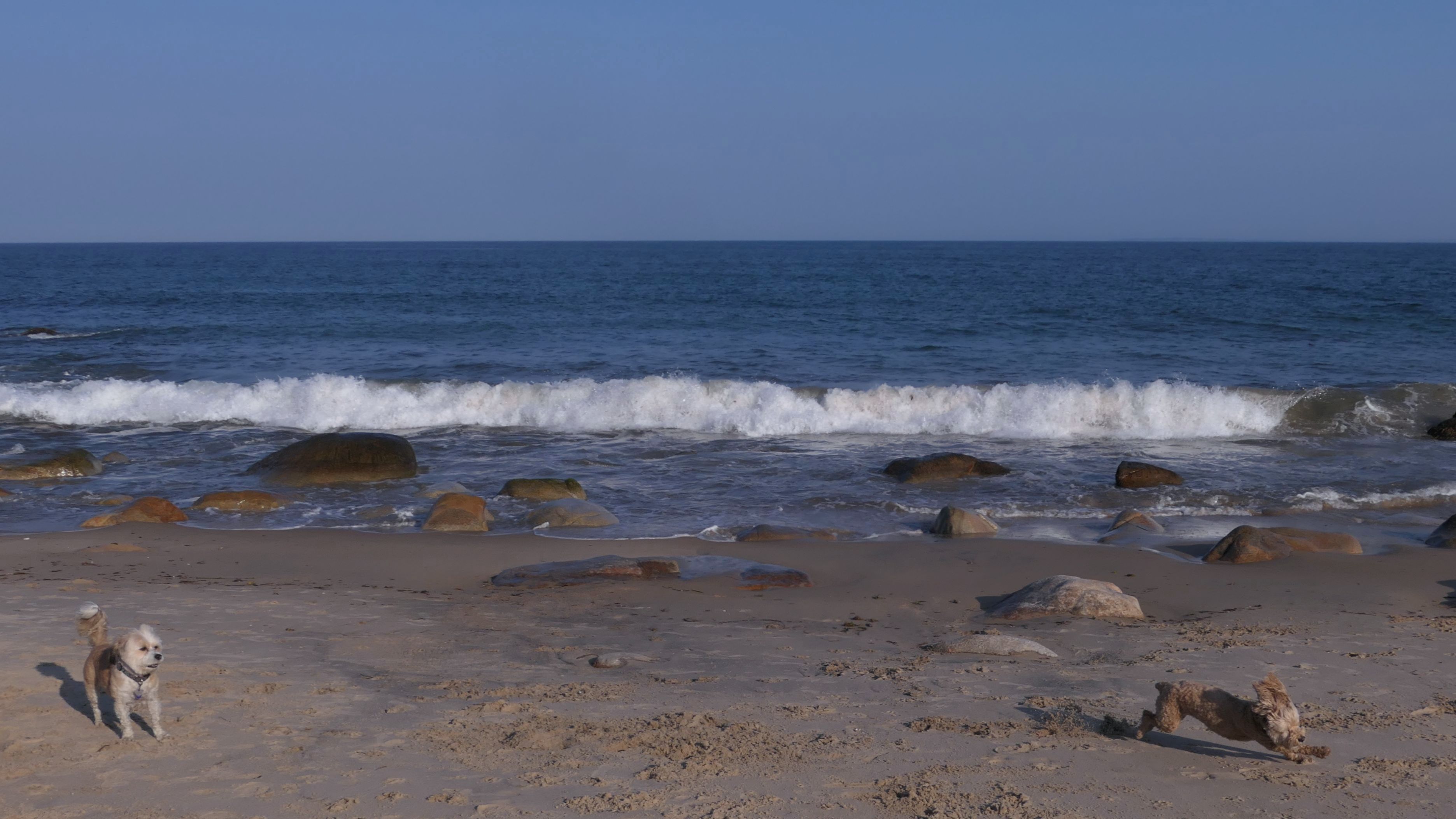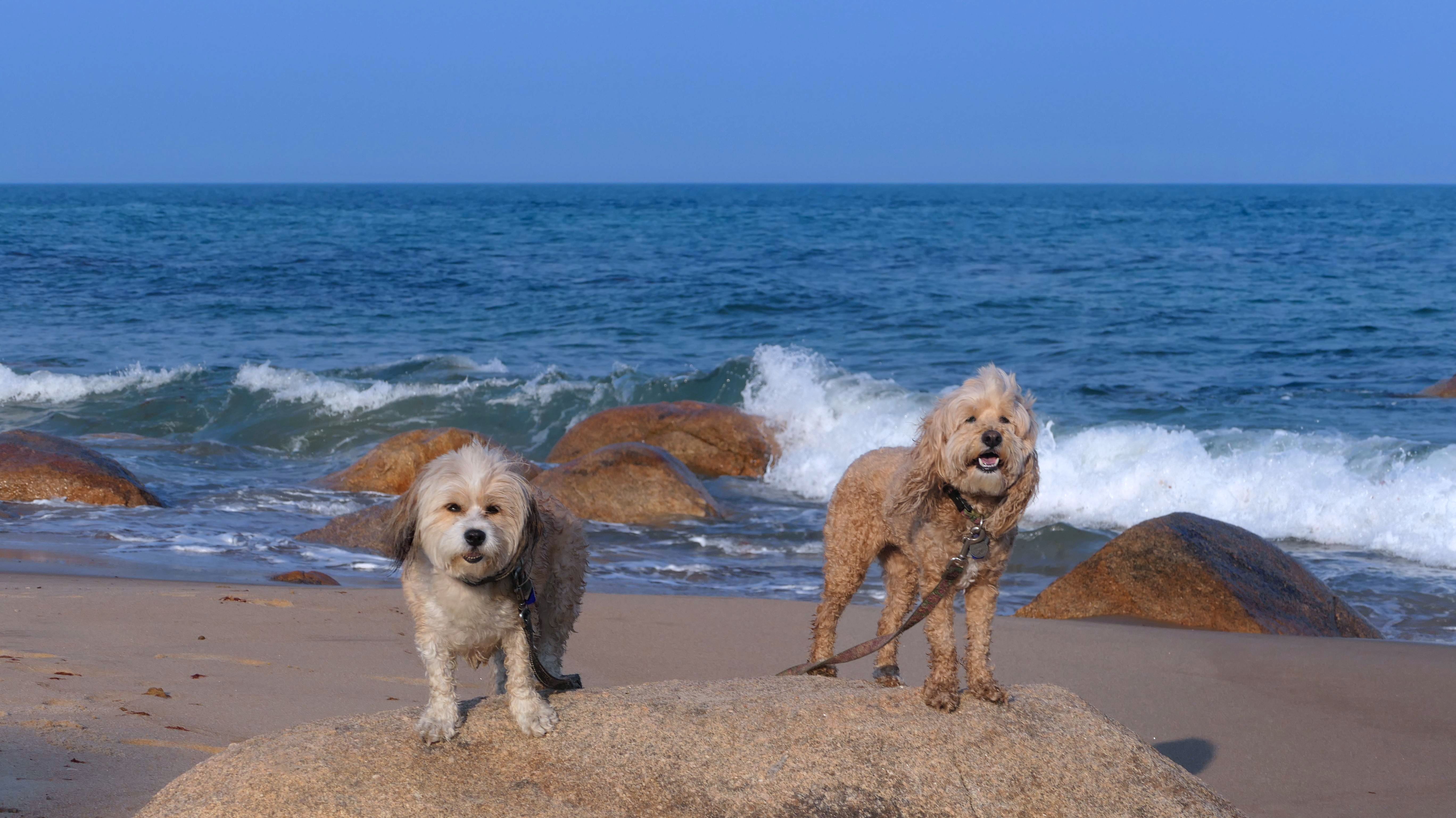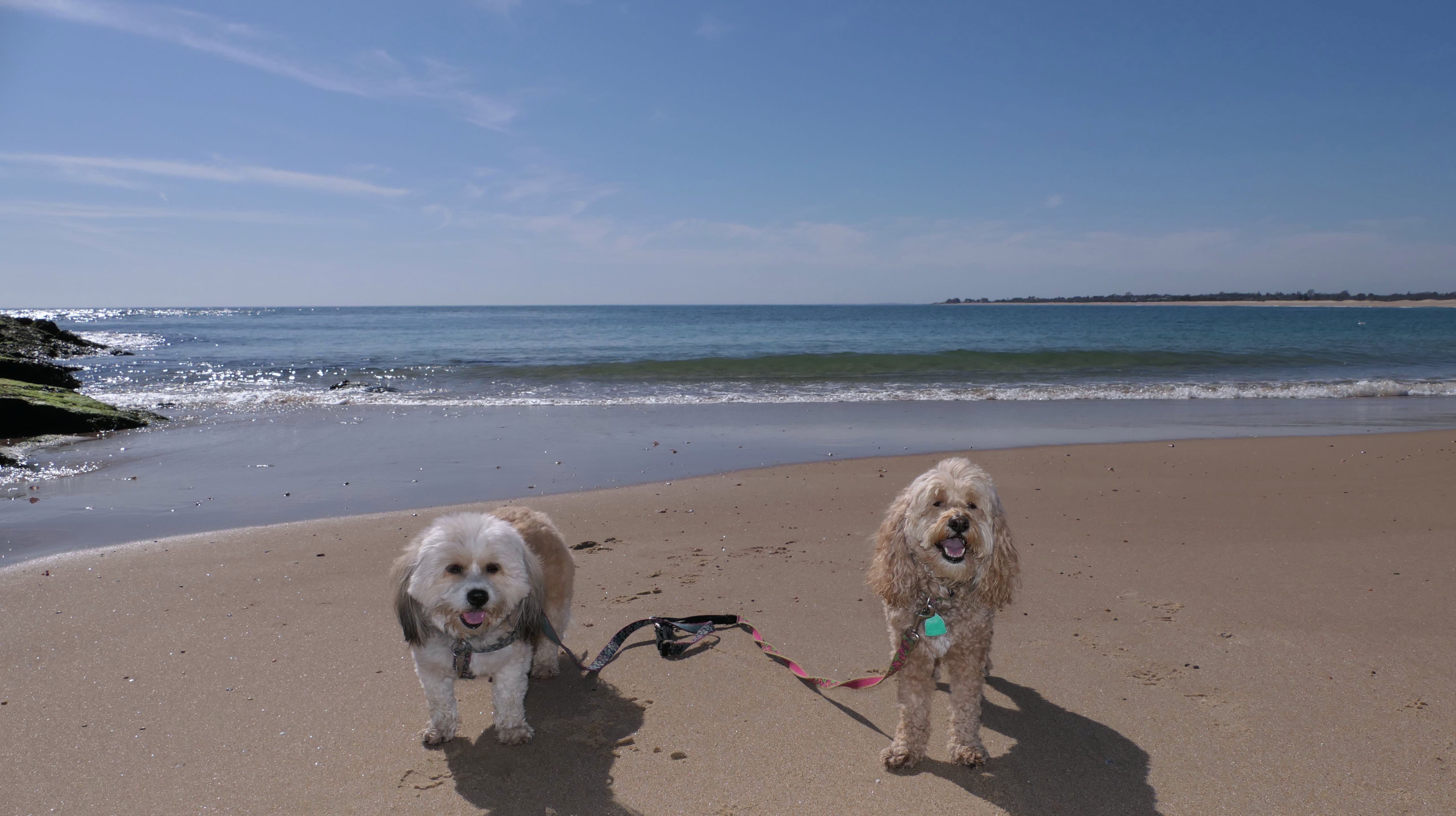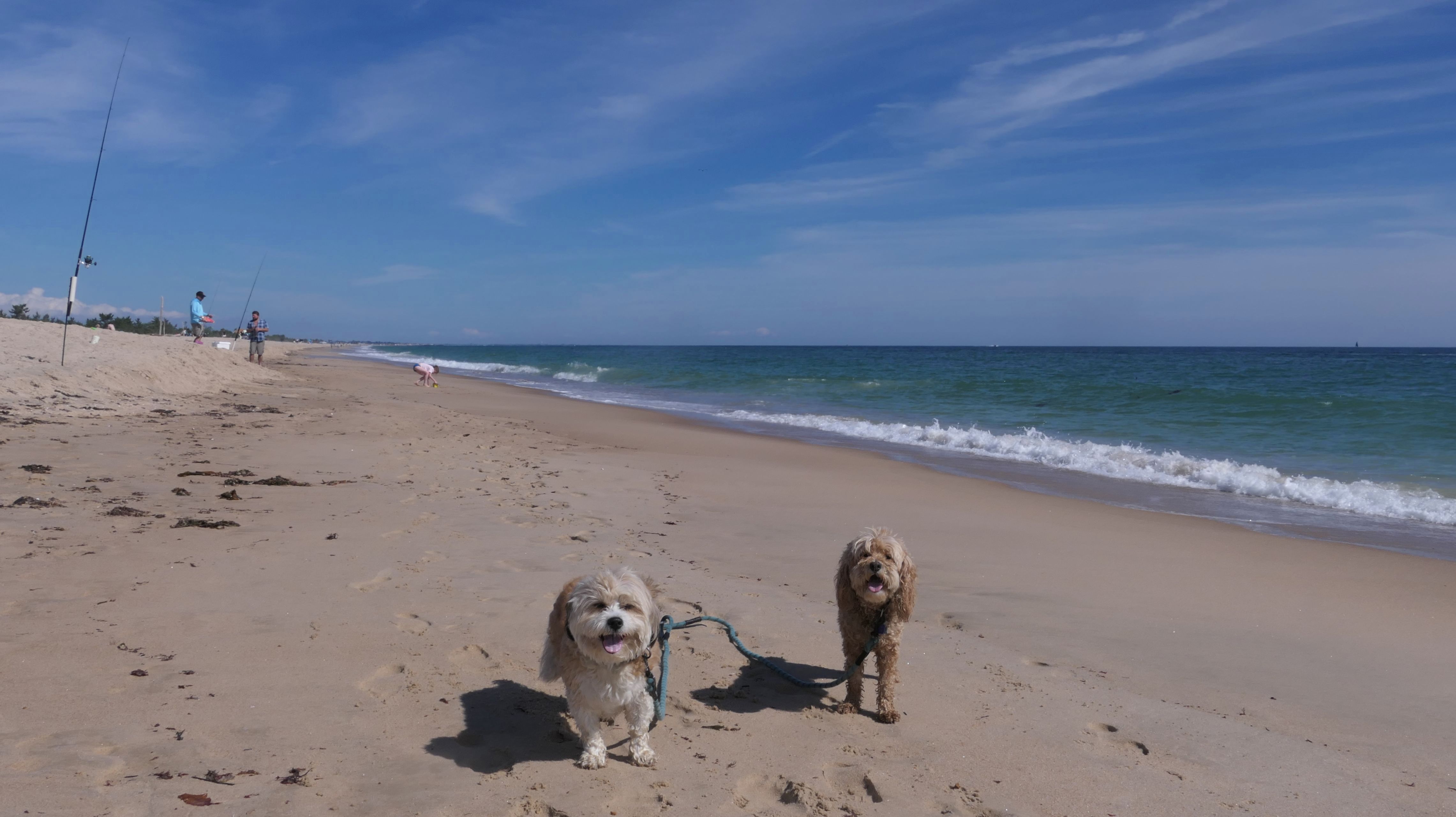 We repeated our adventure from the previous November, where we started at Blue Shutters Beach, and climbed over the rocks to get to this beach. Despite it being in the 50's, the dogs thought it was much warmer, and decided to go in the water multiple times. We went all the way out to the breachway again, before turning around and heading back, on a gorgeous spring afternoon.