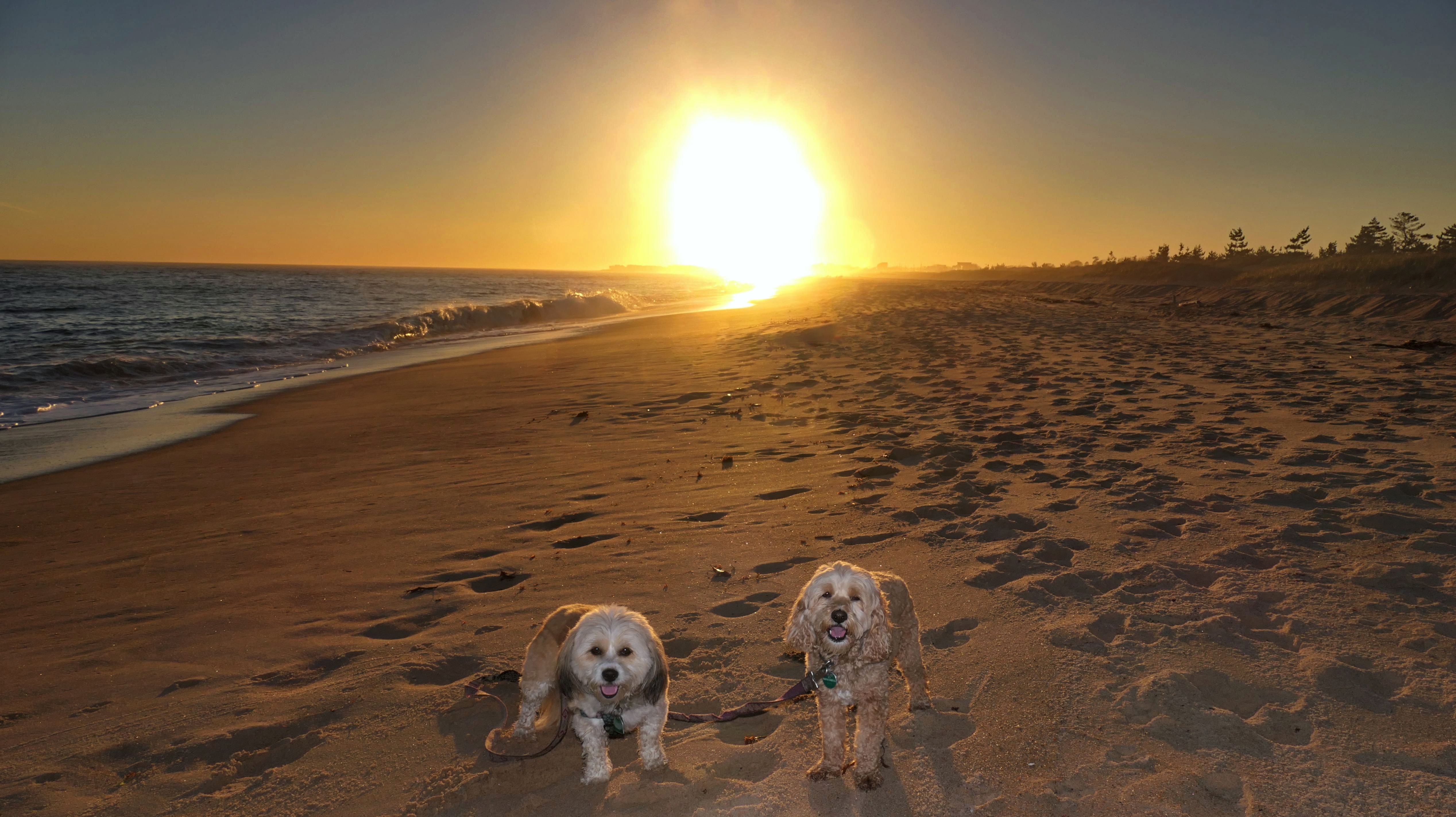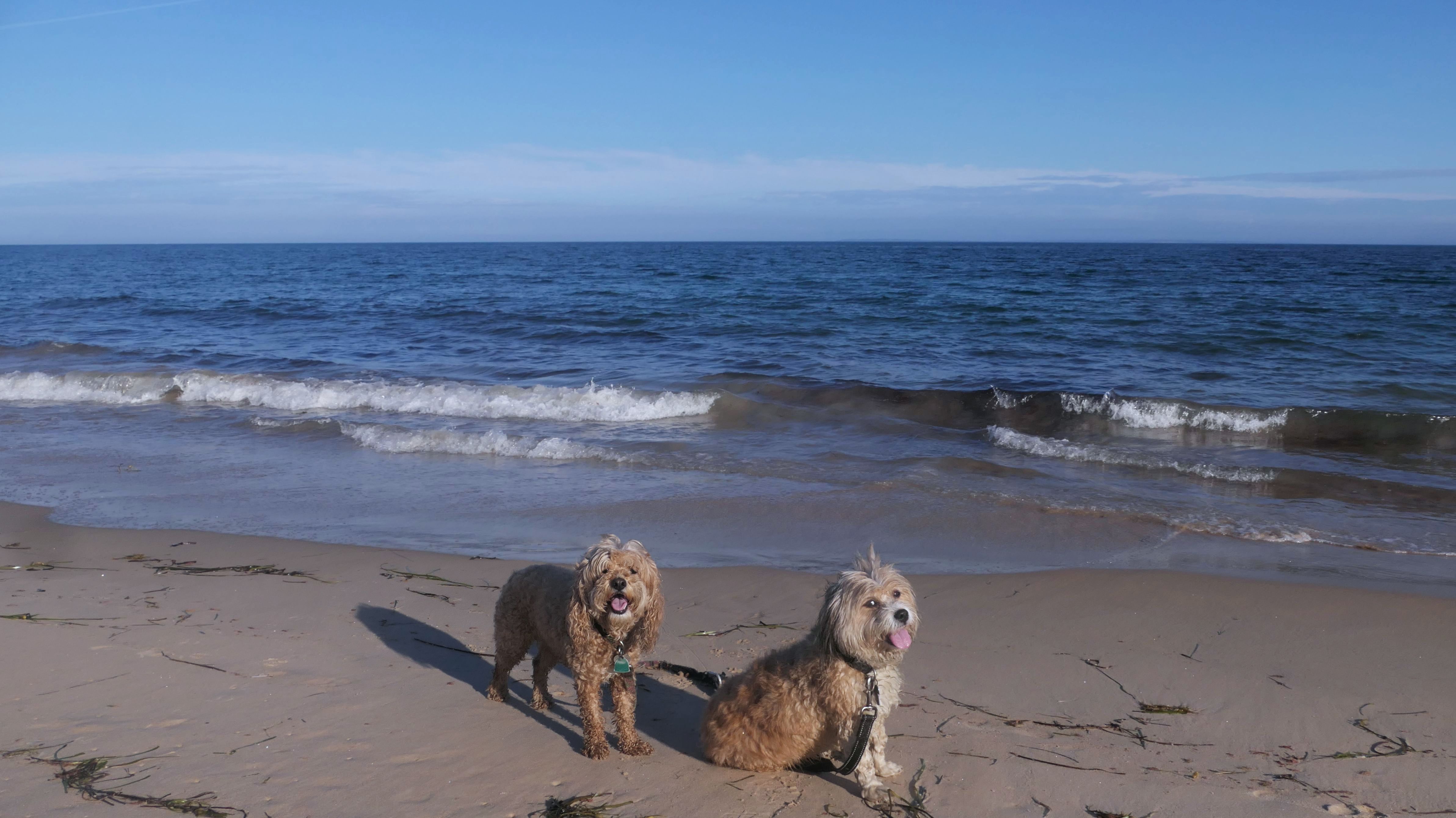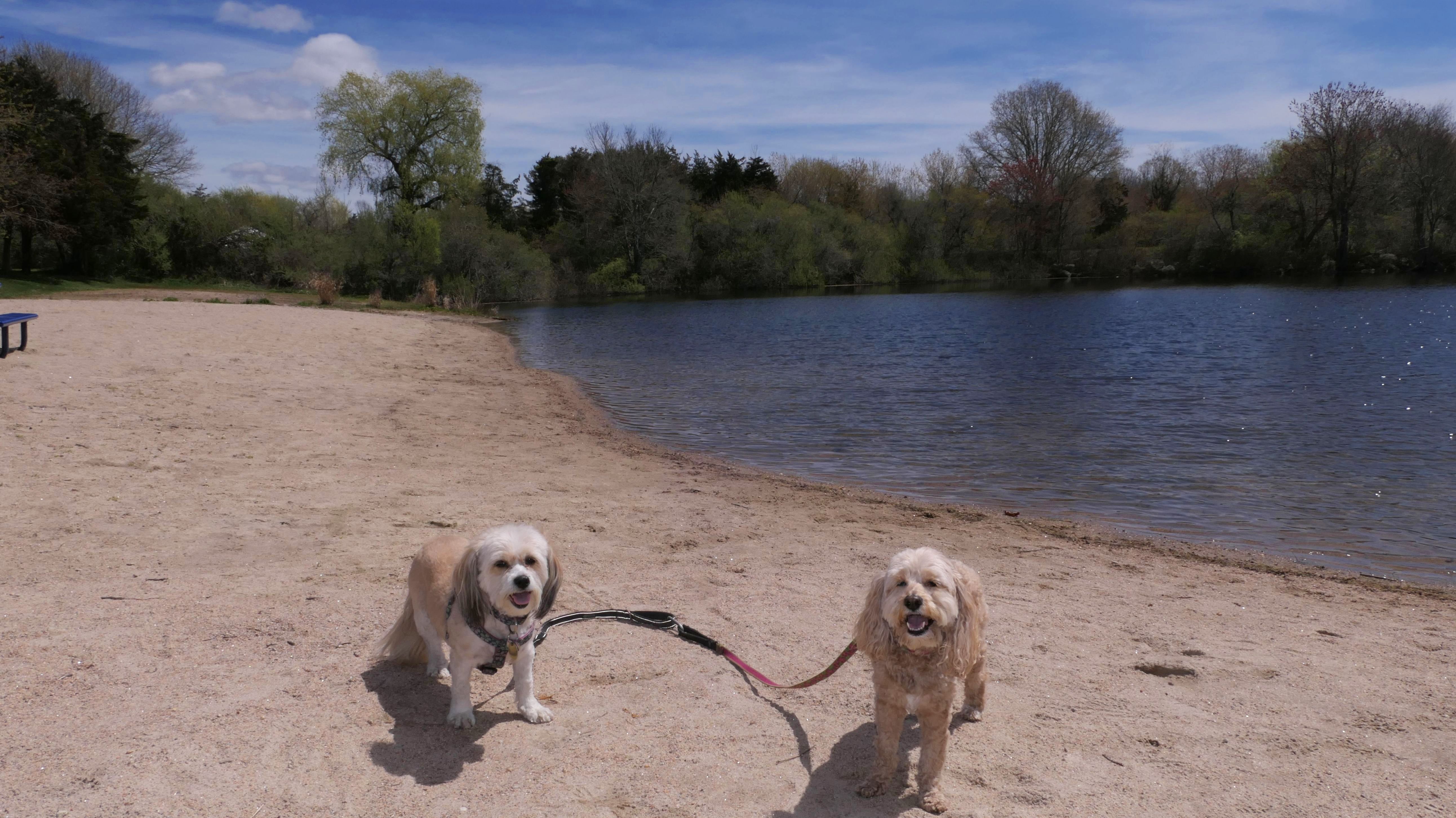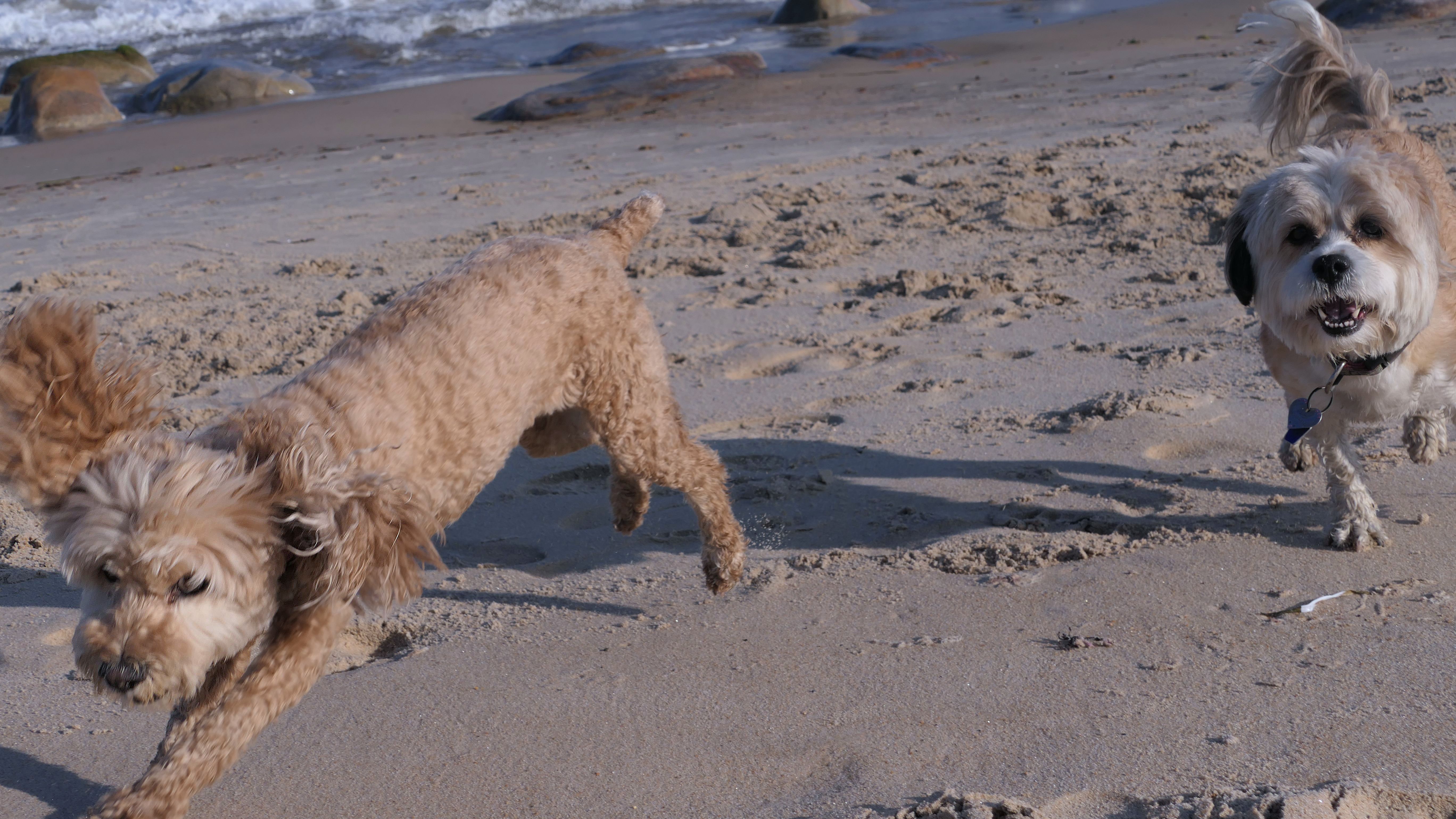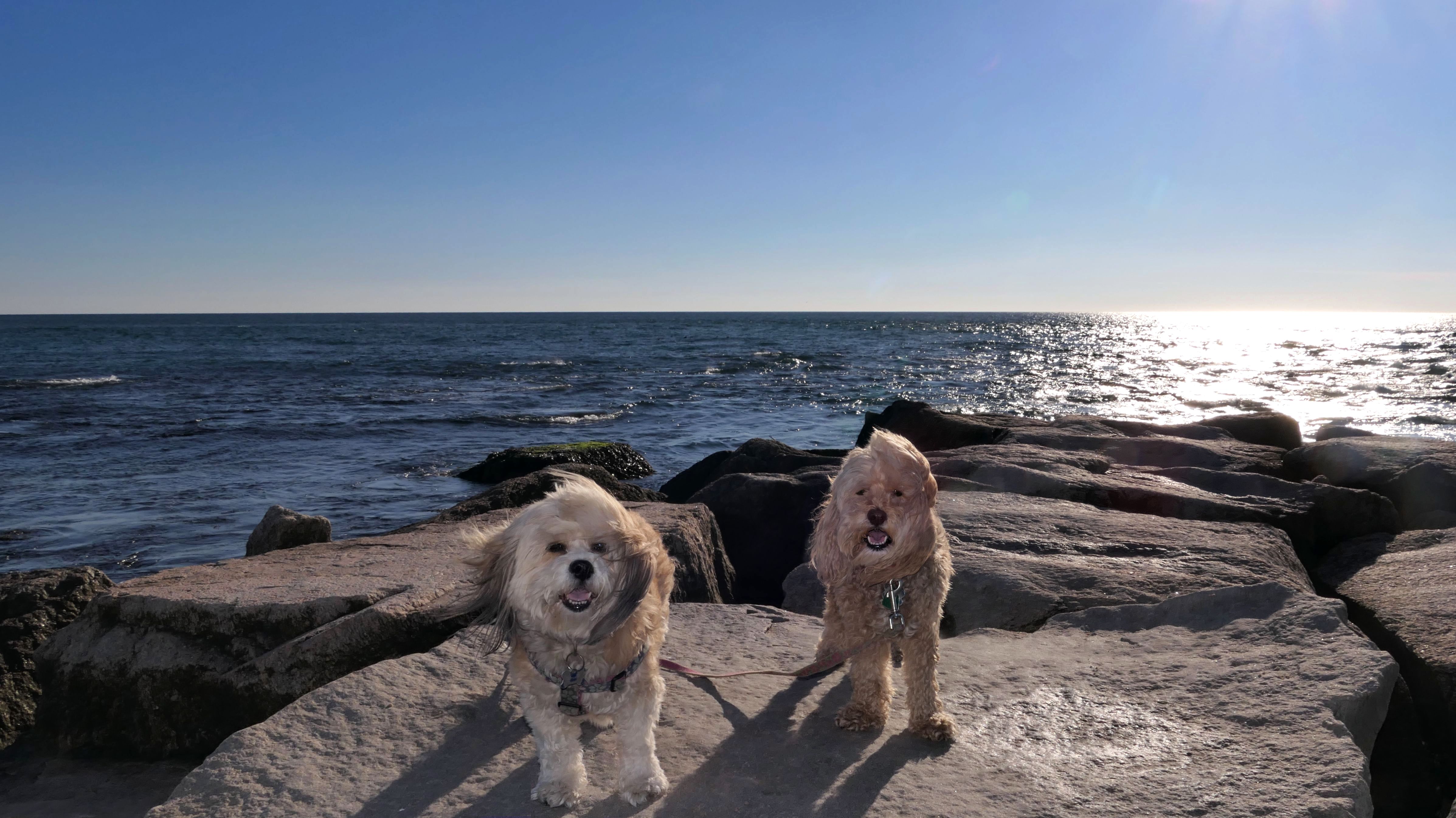 We repeated our adventure from the previous November, where we started at Blue Shutters Beach, and climbed over the rocks to get to this beach. Despite it being in the 50's, the dogs thought it was much warmer, and decided to go in the water multiple times. We went all the way out to the breachway again, before turning around and heading back, on a gorgeous spring afternoon.