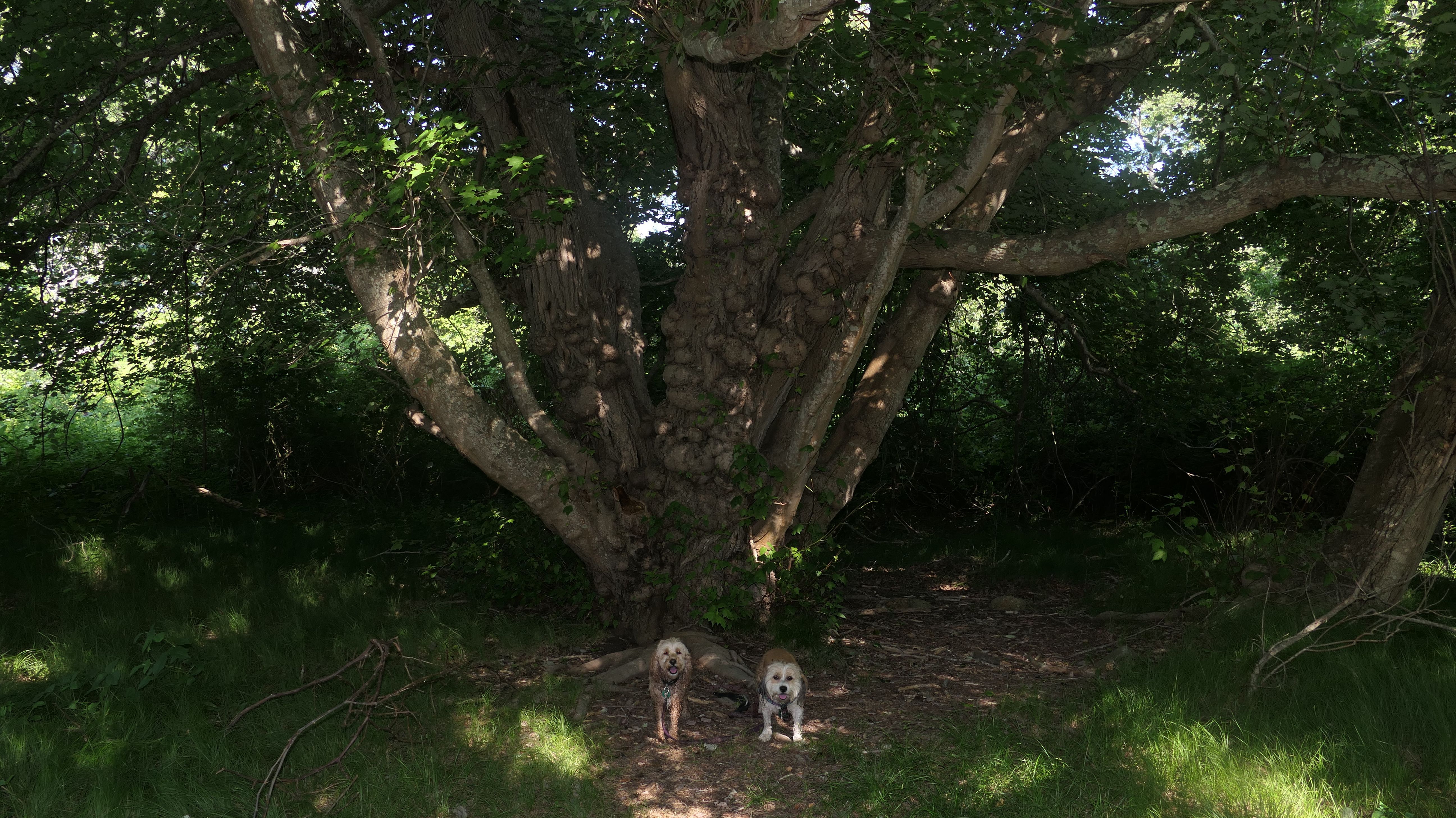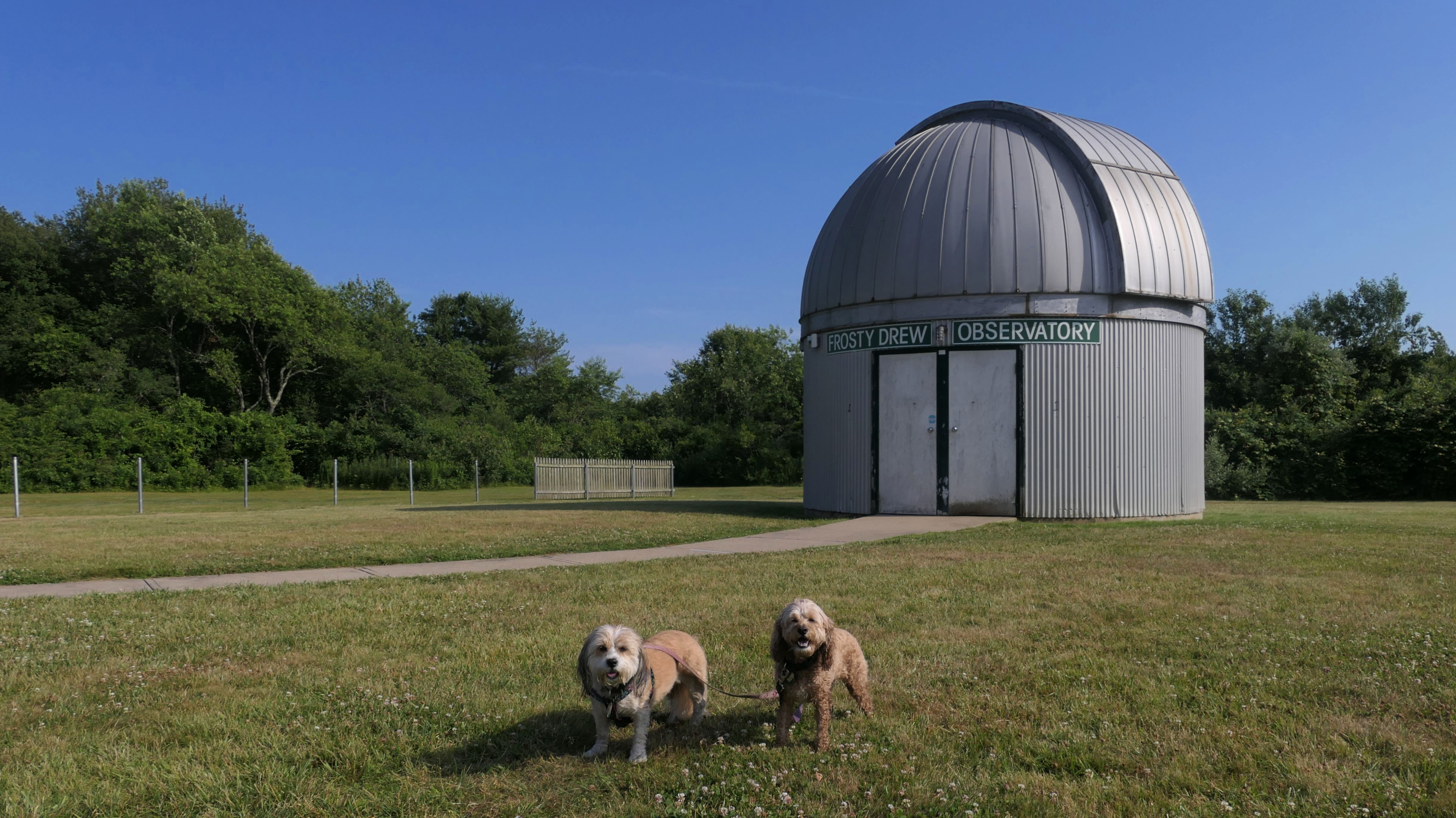 I passed this place on my previous trip to Rhode Island, and decided to look it up to see if I could bring the dogs. I went to the website, and saw that dogs were allowed, but evidently I misread the site, and the site I read wasn't the official website. They are only allowed on the Visitor Center trails which is in a different section of the park. We did encounter a couple other dogs here, but it's probably not a good idea to bring your dogs to this section of the park. At any rate, it was a very nice short hike. The heat and humidity were brutal in the Hartford area, but it was pleasant here. The main feature here is the salt water pond. There were a few places on the trail where the dogs were able to get into Ninigret Pond to cool off. We passed the observatory on our way out, so we stopped briefly to take a picture there as well.