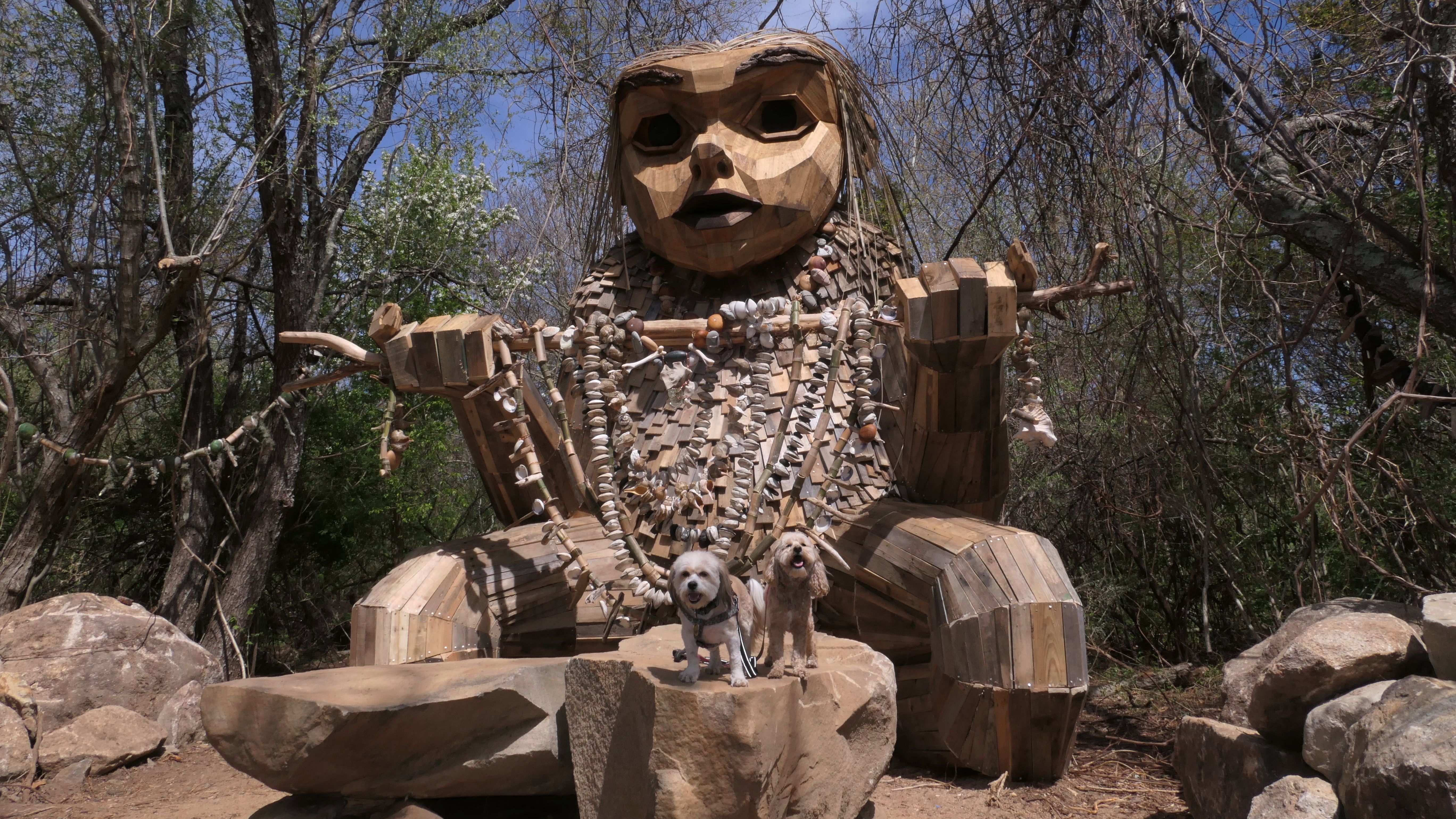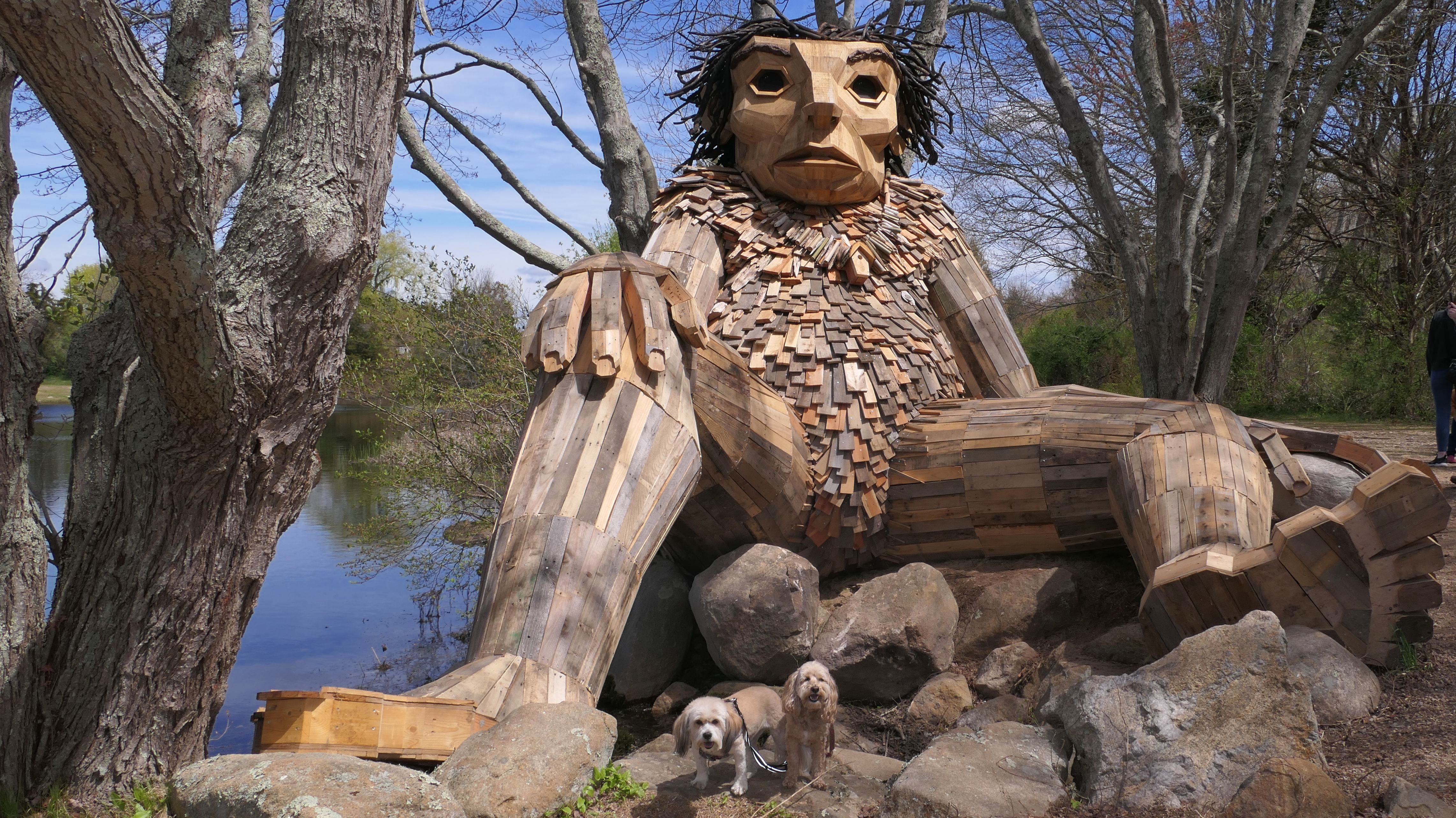 We returned to this park for the trolls! Just the day before our visit, Danish artist Thomas Danbo unveiled the two giant troll sculptures, which now live at this park. The first one, the male troll, named Erik Rock, is pretty easy to find, but the female troll, Greta Granite, is hidden better. It requires a walk in the woods. There are clues as to which path you need to take. (The pictures below are GPS tagged, so you can actually use the GPS coordinates on the photos to see exactly where they were taken). These are the first of five planned trolls, with the other three being located in different sections of Rhode Island. This was only the second day of the troll display, but kids were climbing on the male troll. I had to wait for them to get down in order to take my photos. Besides the trolls, we walked part of the main paved bike path that we also walked last time we were here for the New Years Eve bonfire. It was a much nicer day this time around!