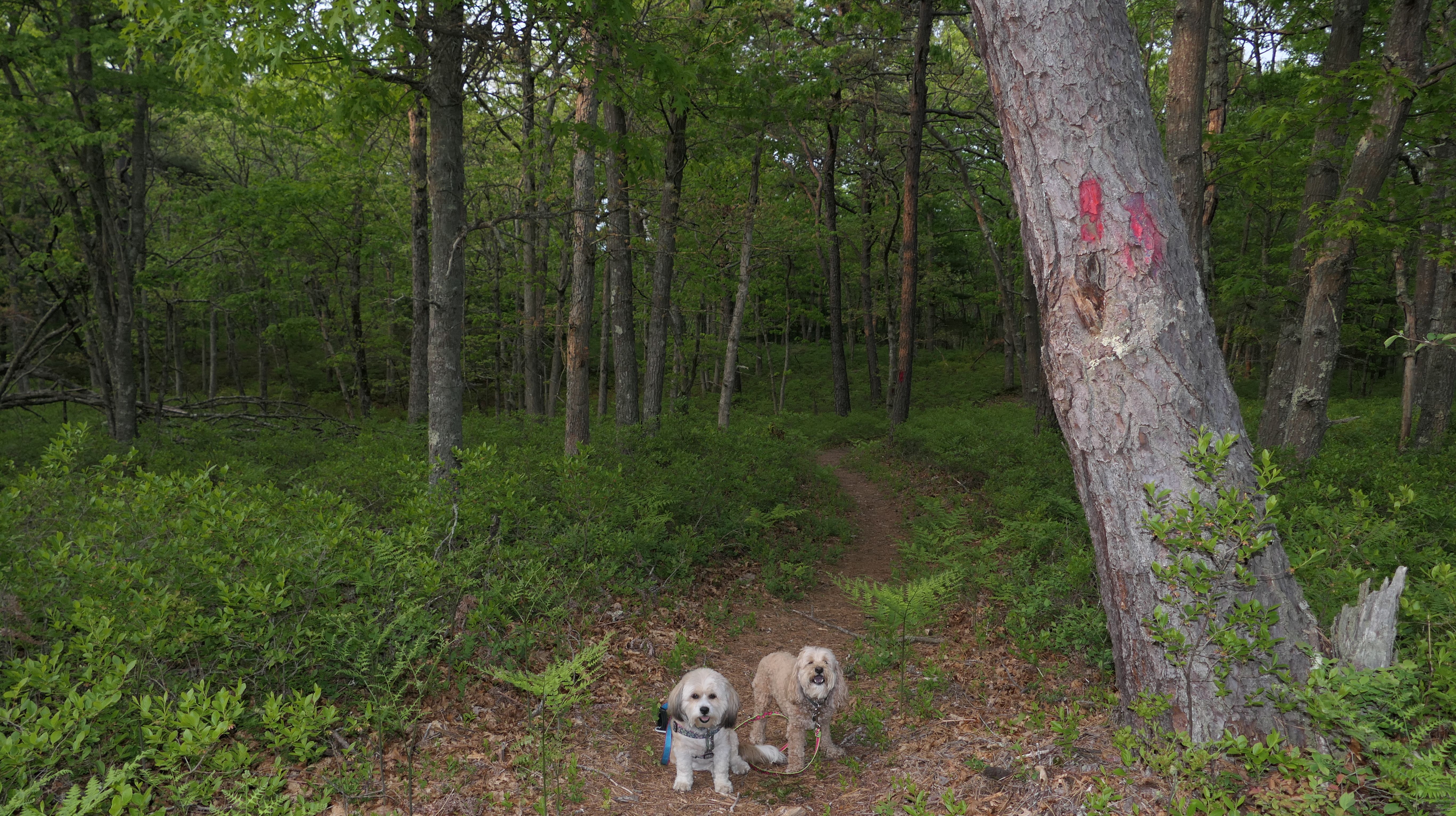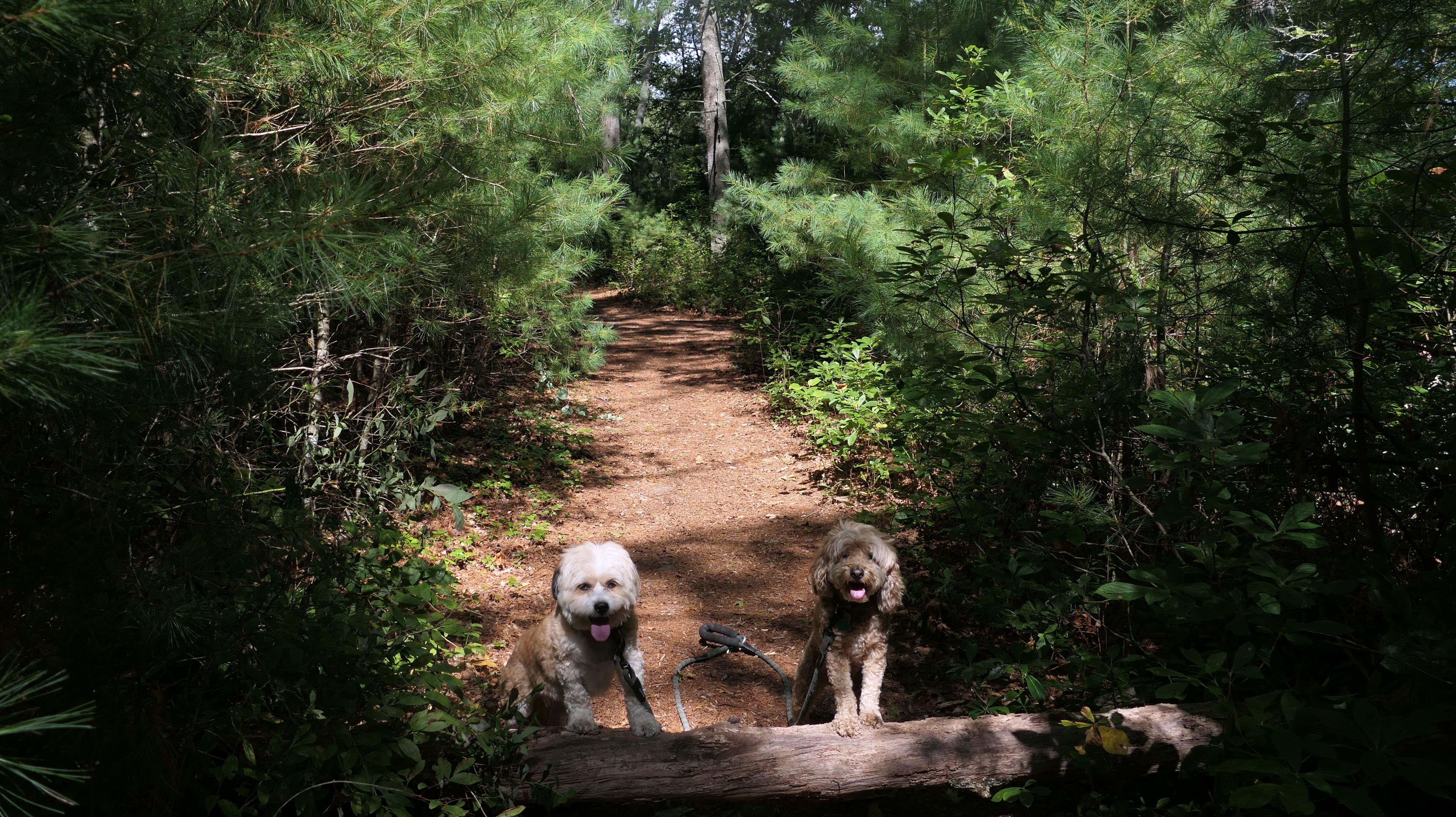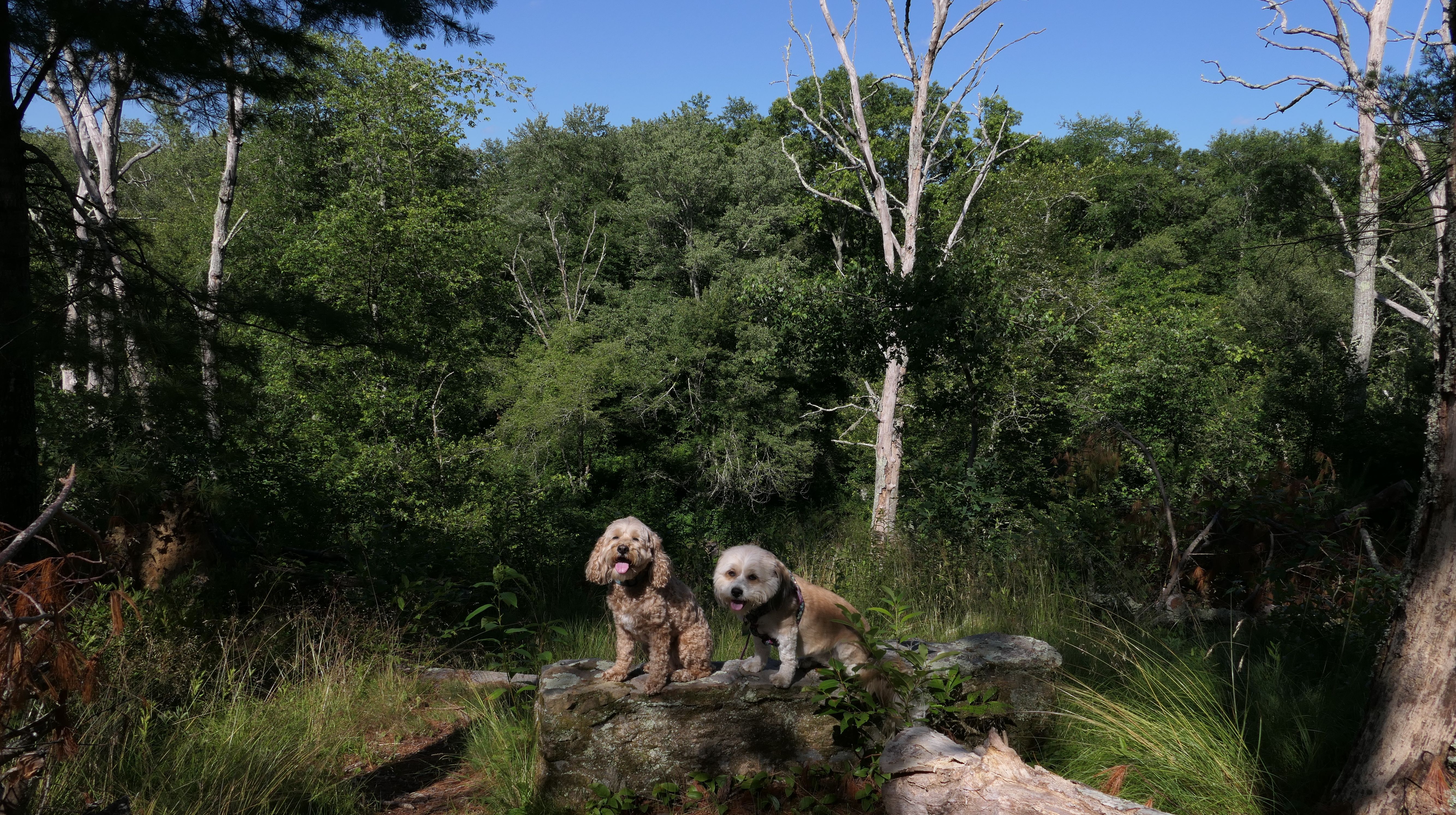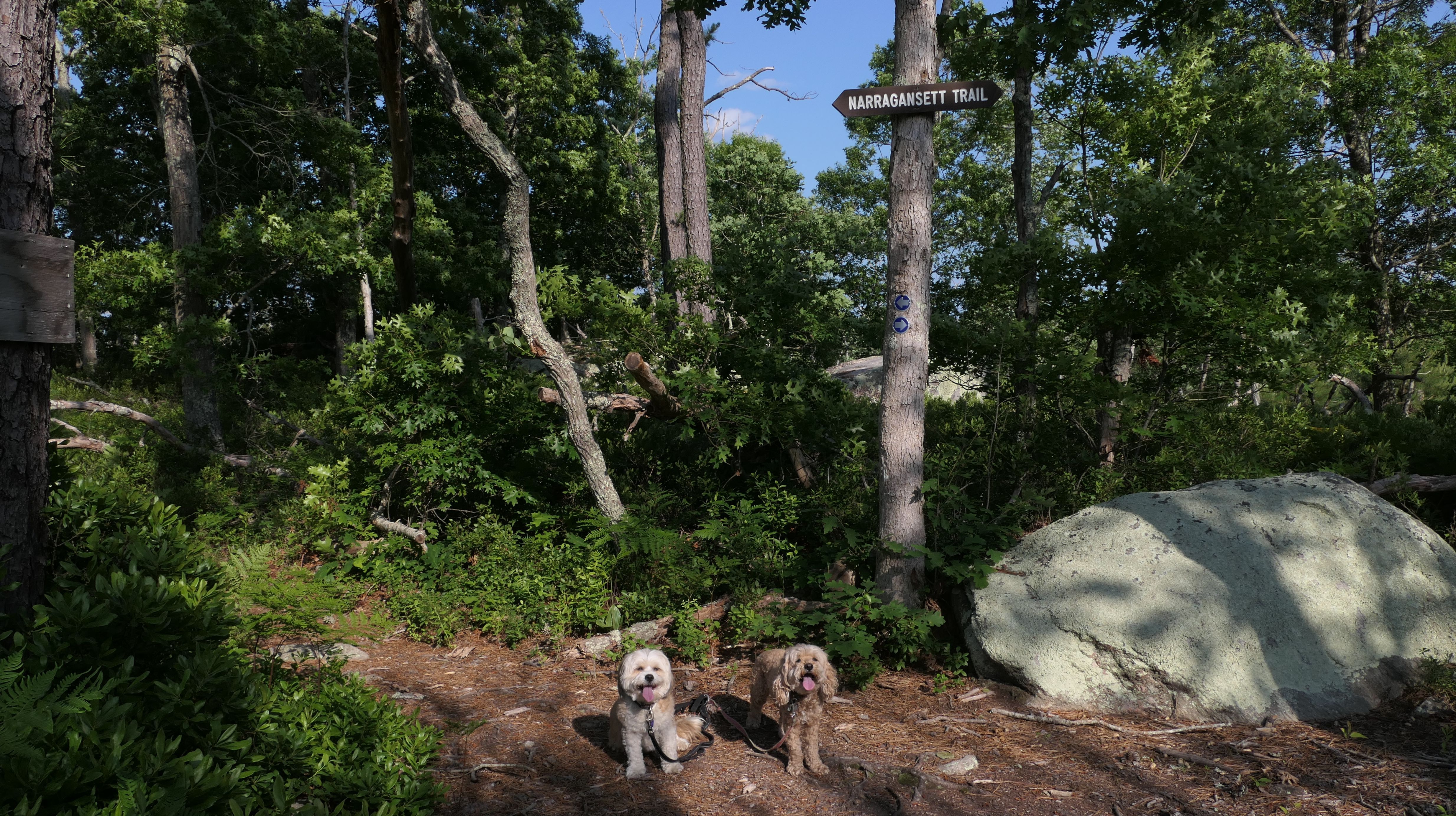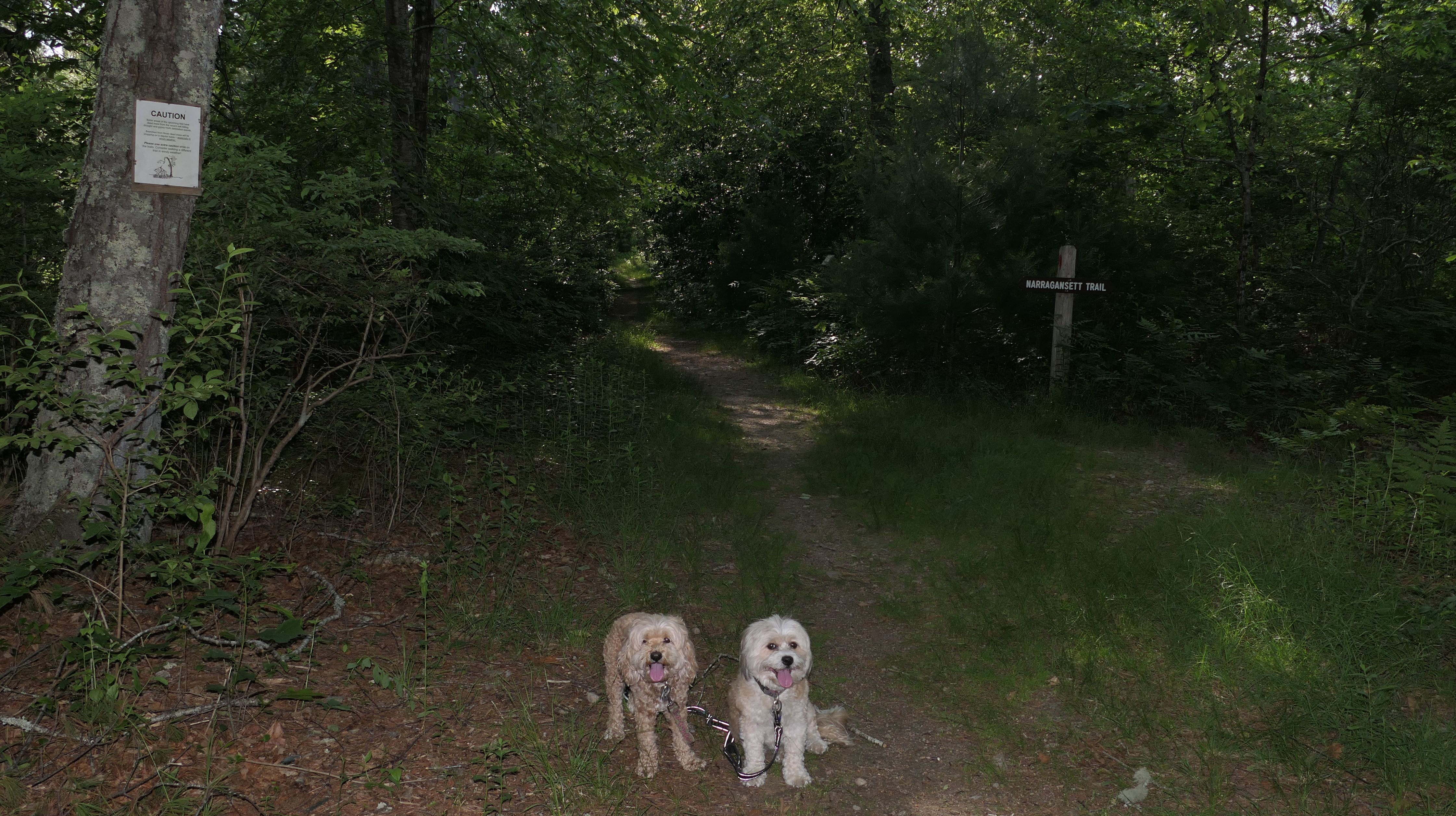 There are two places named "Burlingame" that are connected by trails, but this is the management area, not the state park. The state park has a public beach, and is on the other side of Watchaug Pond. We hiked an easy 2.5 mile loop that goes out to the pond. The first part was on a wide, former dirt road now blocked off from traffic. The rest of the loop is on a standard trail. The pond is actually quite nice. The water looks crystal clear. I thought the dogs would jump at the chance to go in the pond, but they weren't that into it. It was hot and humid, but the dogs just got a haircut and evidently weren't hot enough to utilize the pond. The rest of the trail was pretty basic. The flying gnats were brutal. I swear my bug spray was attacting them, instead of repelling them. It made for a pretty miserable hike.