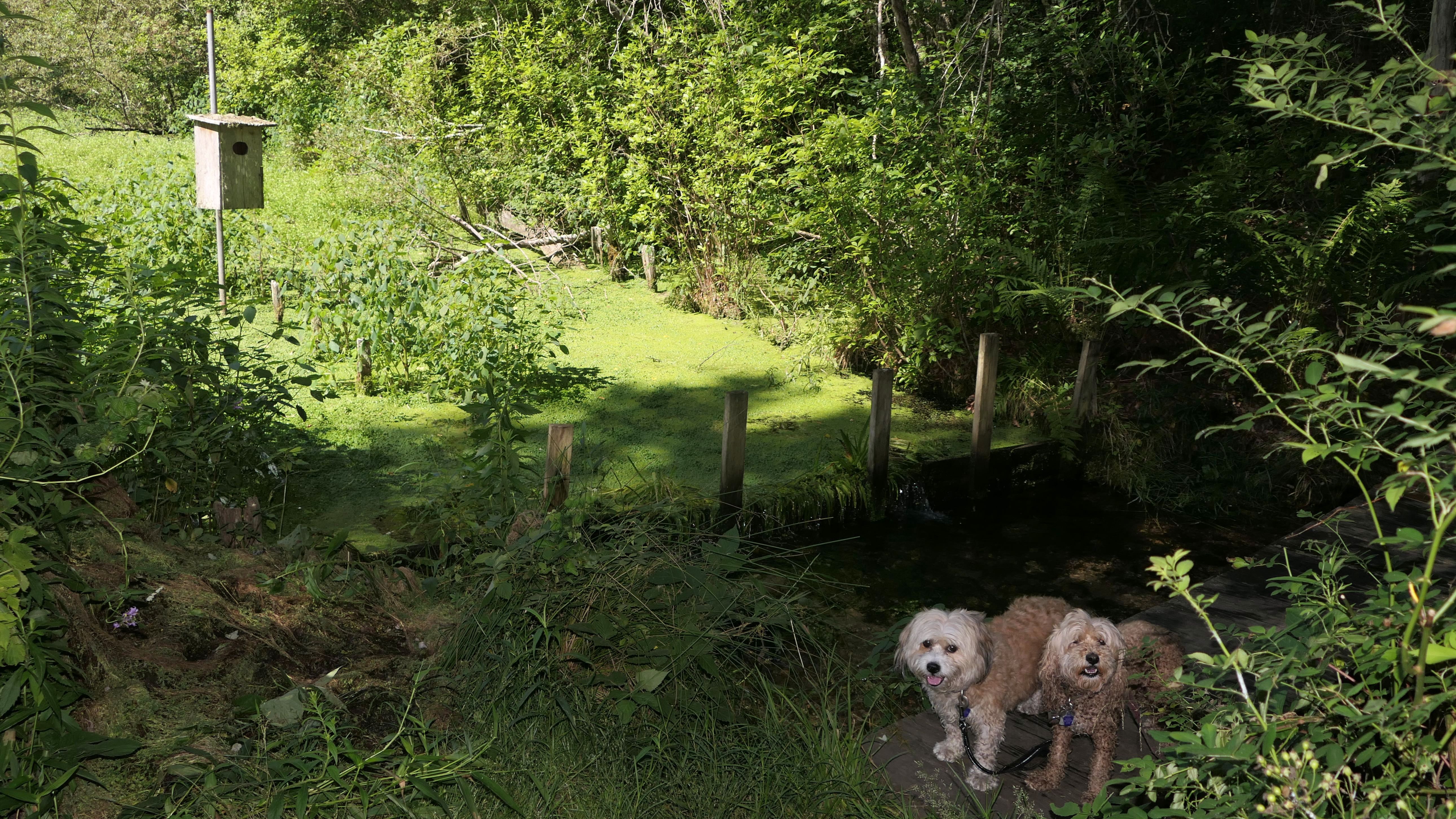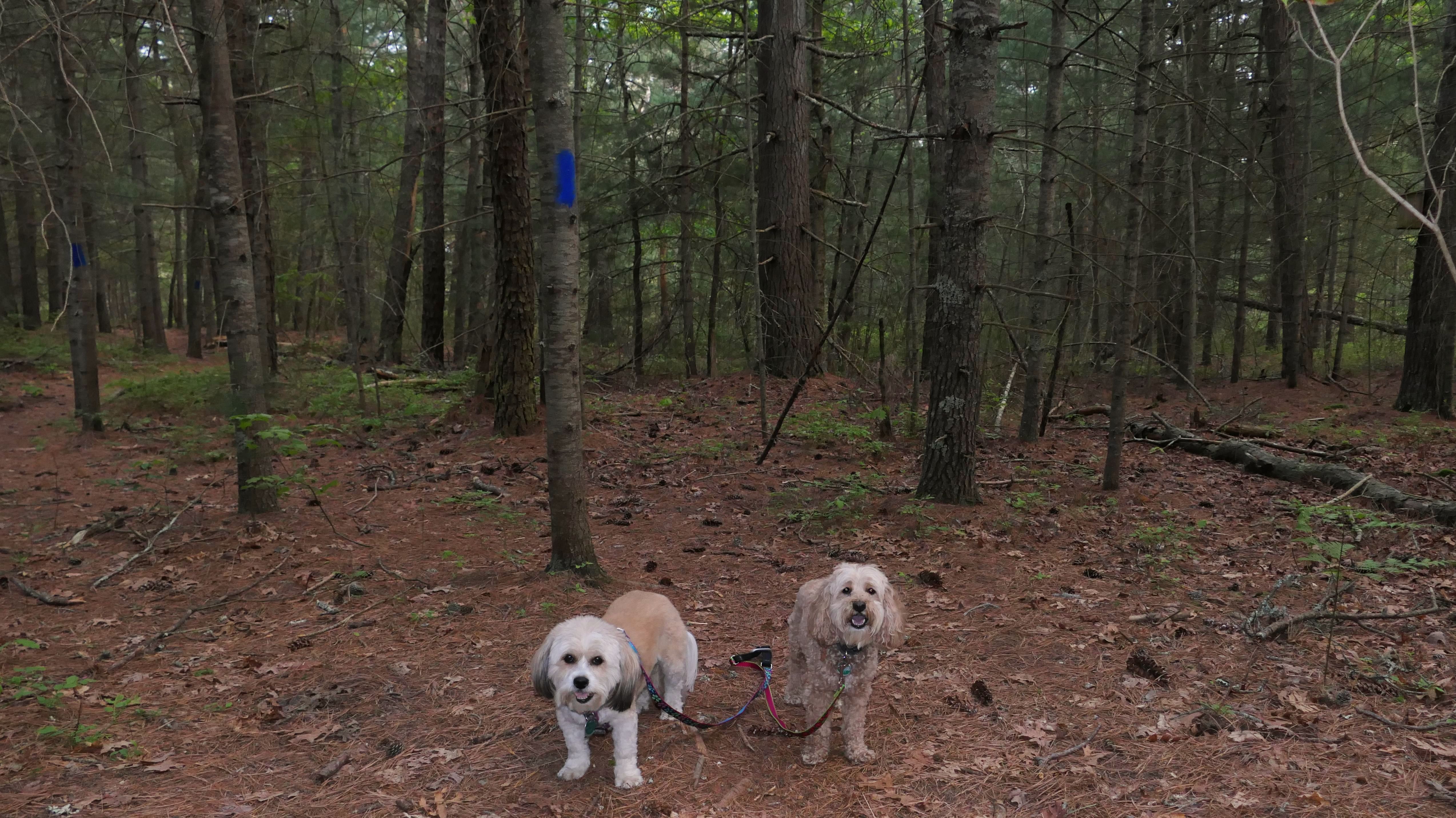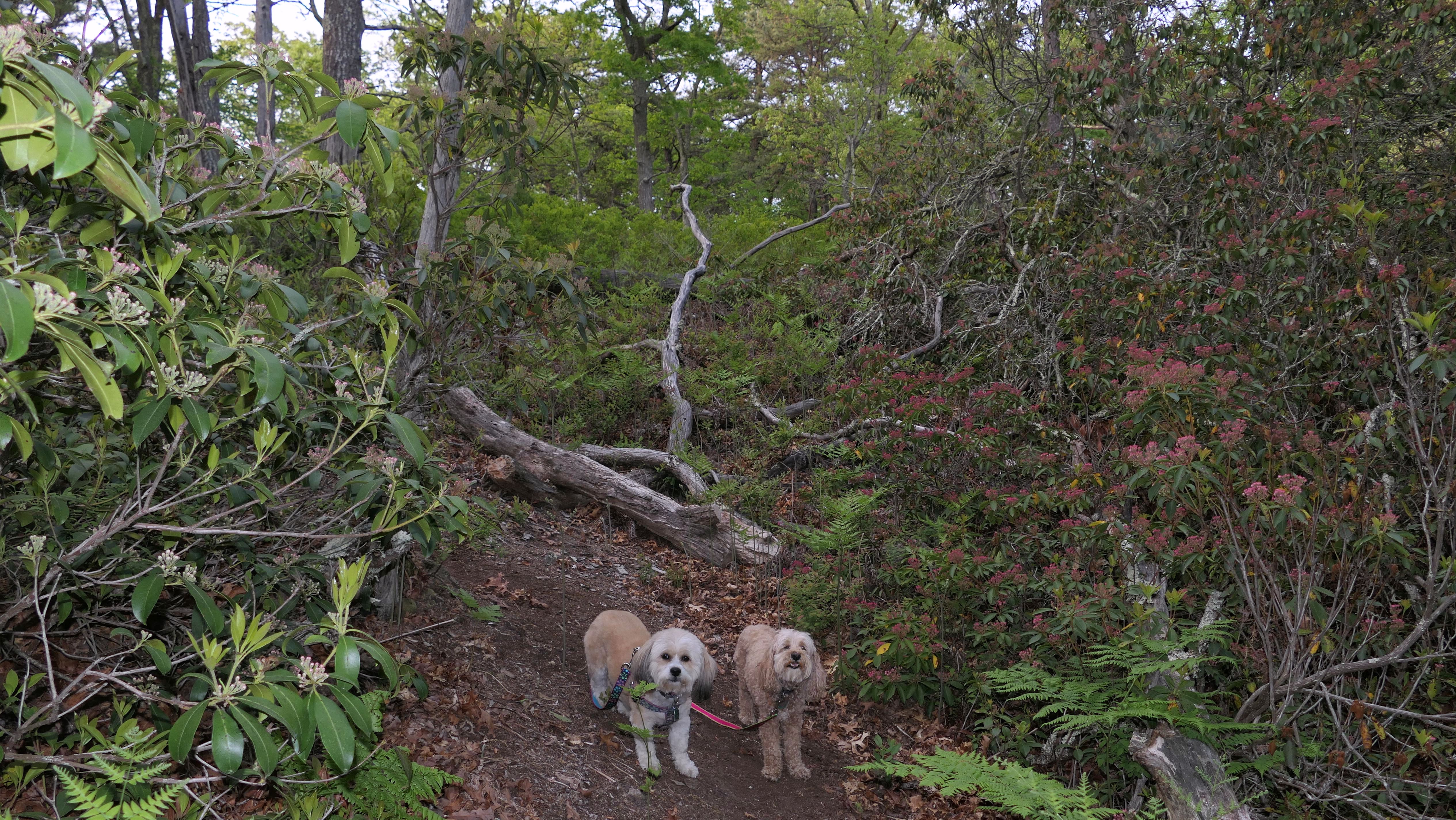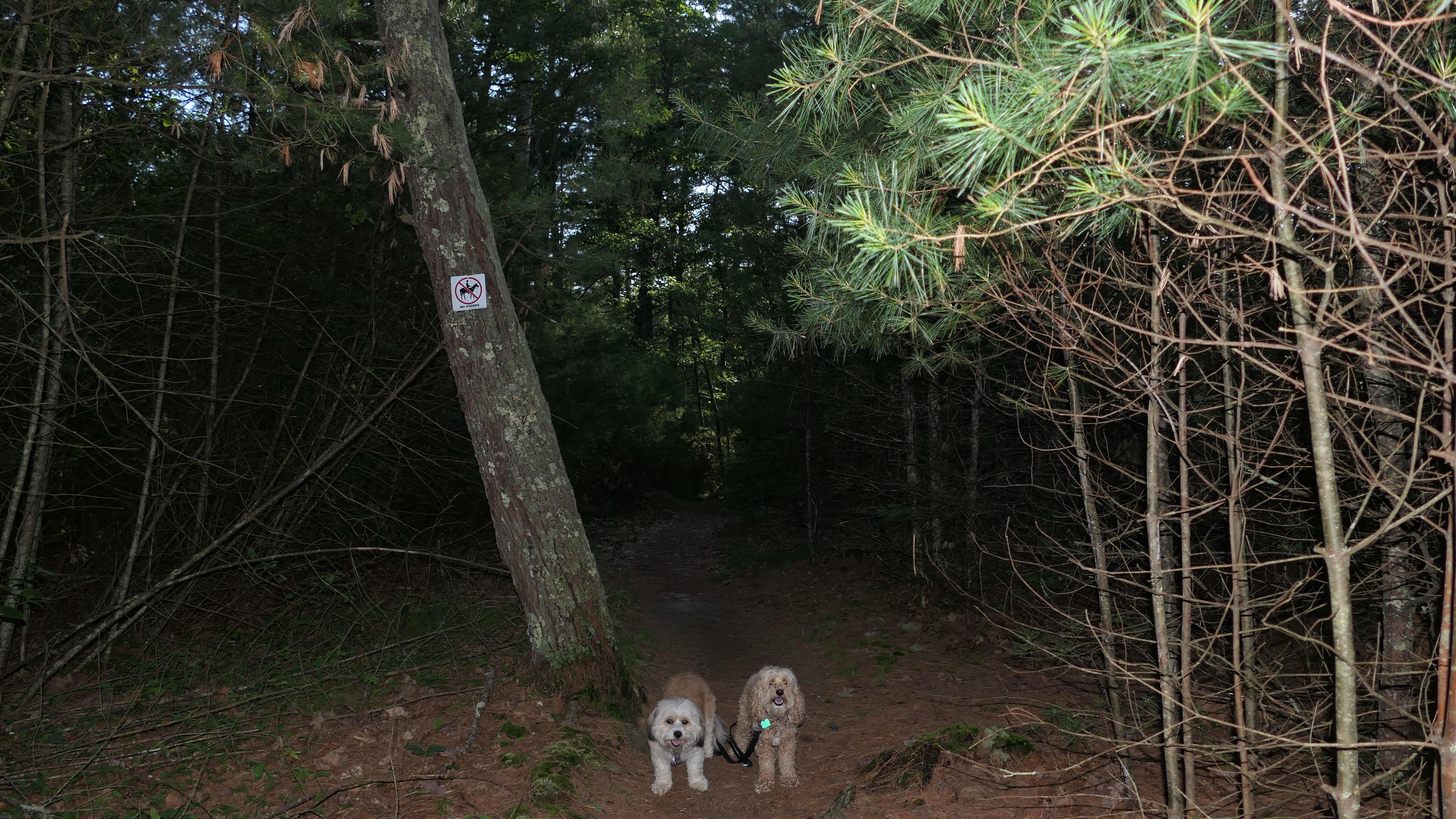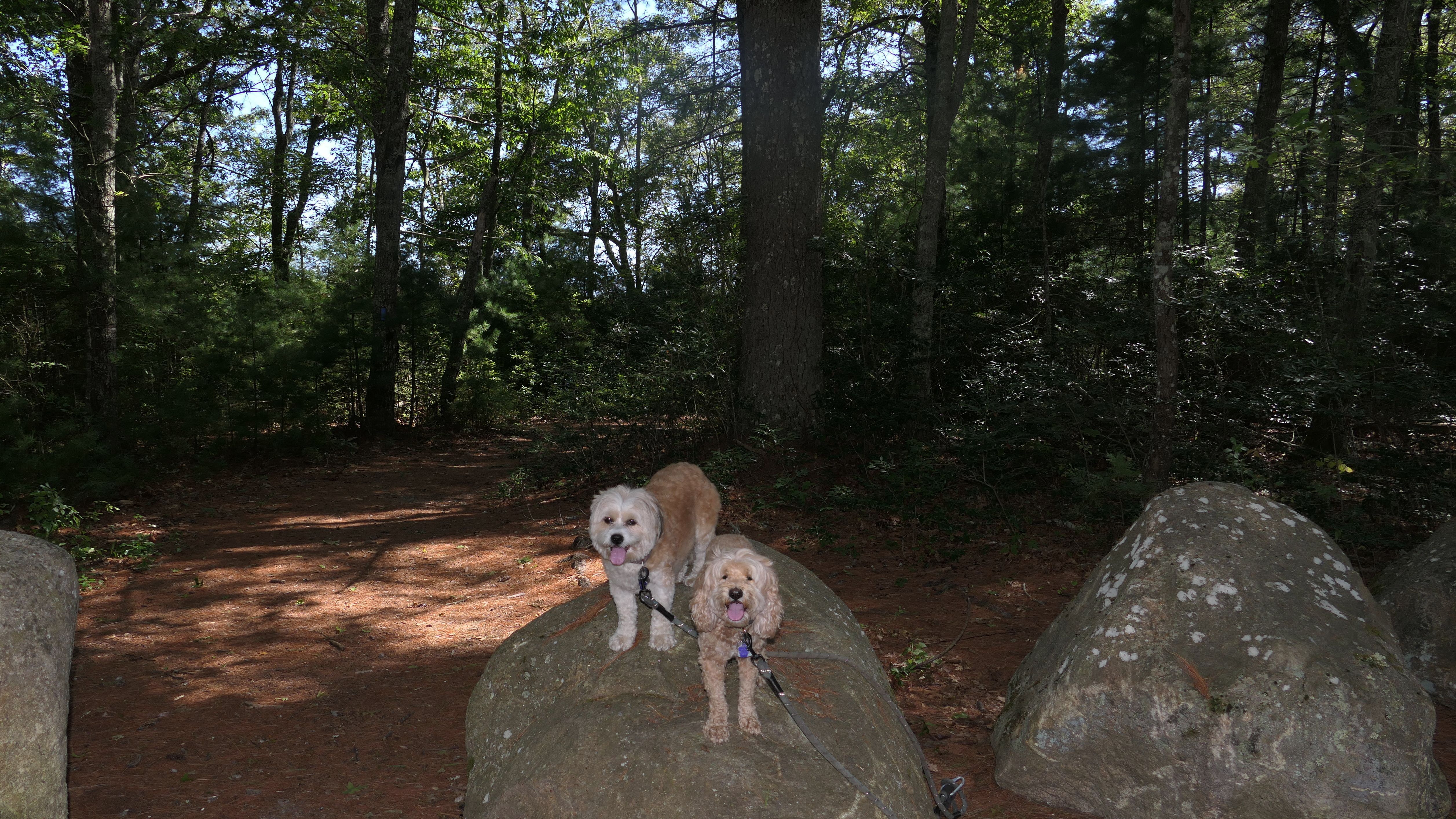 There are two places named "Burlingame" that are connected by trails, but this is the management area, not the state park. The state park has a public beach, and is on the other side of Watchaug Pond. We hiked an easy 2.5 mile loop that goes out to the pond. The first part was on a wide, former dirt road now blocked off from traffic. The rest of the loop is on a standard trail. The pond is actually quite nice. The water looks crystal clear. I thought the dogs would jump at the chance to go in the pond, but they weren't that into it. It was hot and humid, but the dogs just got a haircut and evidently weren't hot enough to utilize the pond. The rest of the trail was pretty basic. The flying gnats were brutal. I swear my bug spray was attacting them, instead of repelling them. It made for a pretty miserable hike.