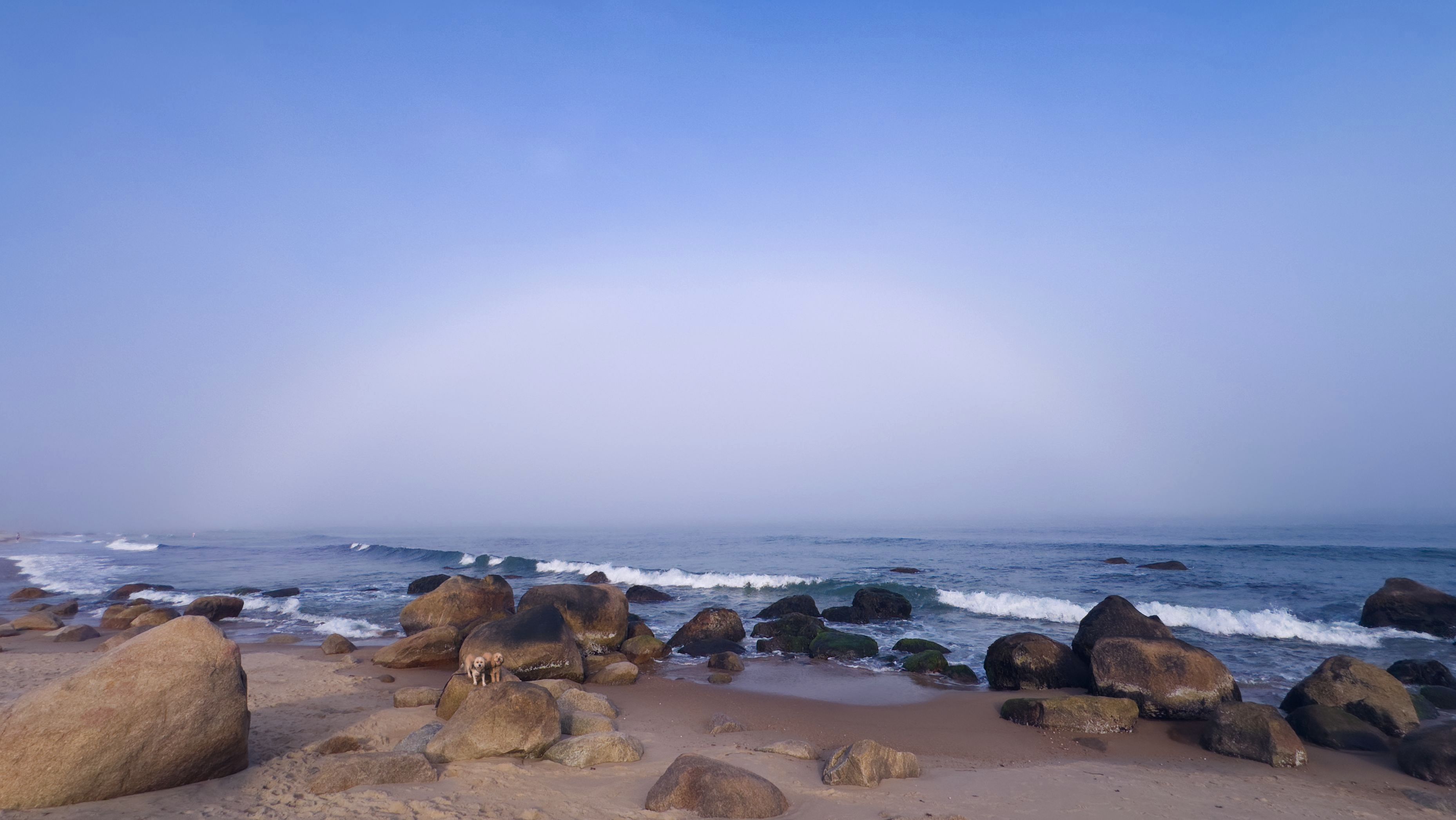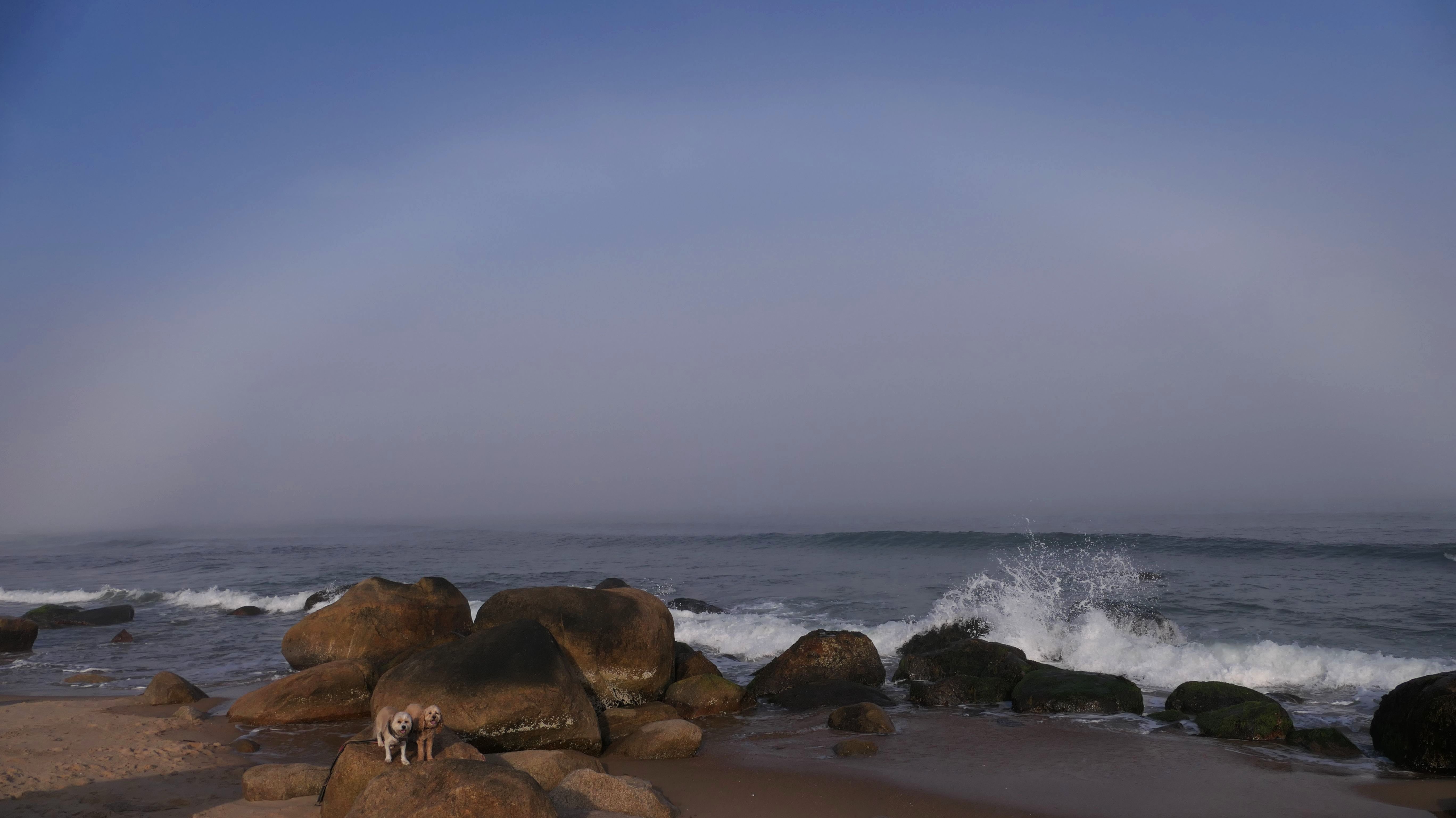 Came down to this beach once again to escape the brutal heat and humidity inland. It was bright and sunny the whole trip, but as soon as we arrived, an eerie fog rolled in from off-shore. It created a phenomenon known as a "fogbow". We also encountered the most sophisticated sand castle I've ever seen.