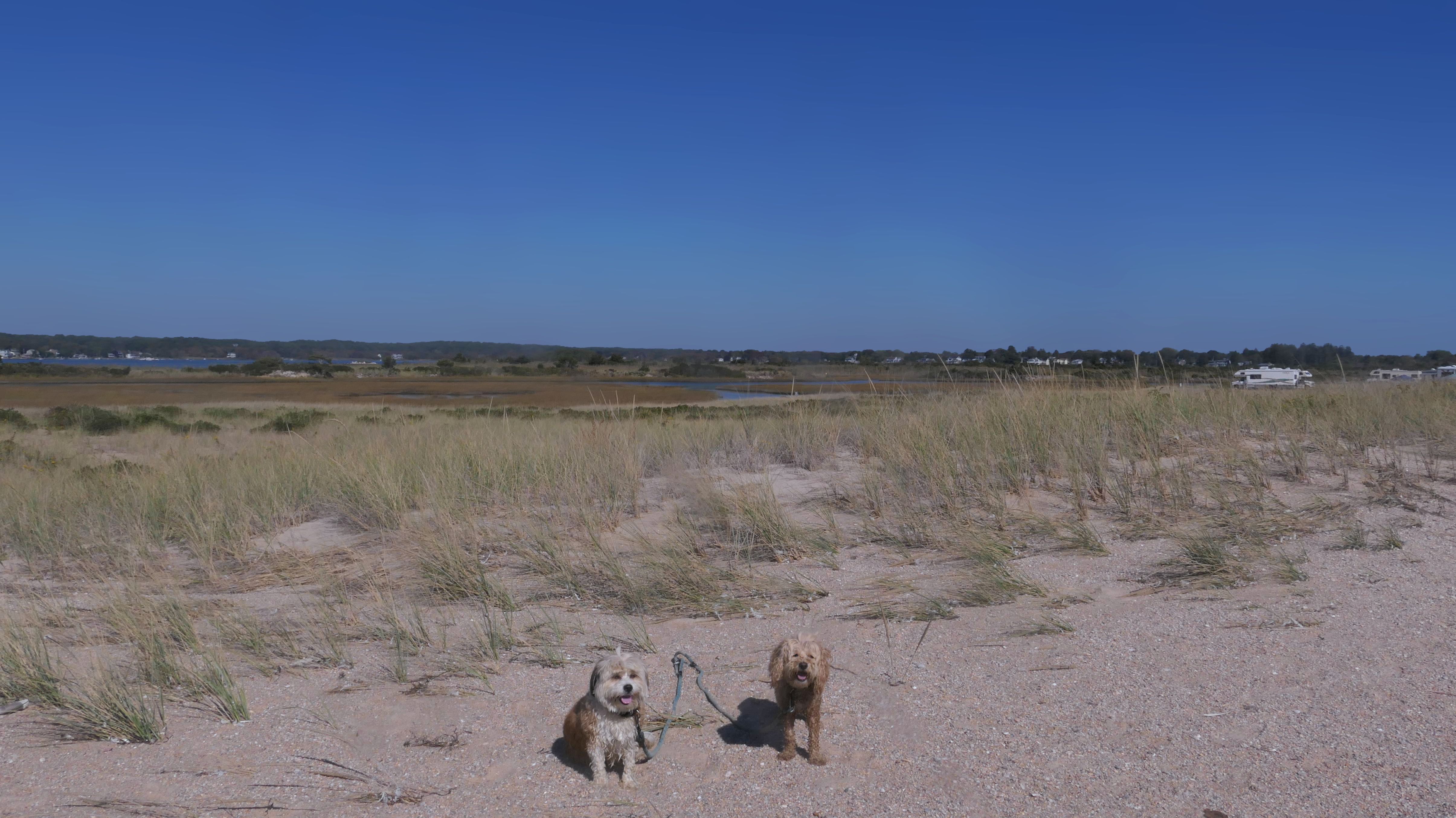 Our third visit here was also brief. It was the day after Labor Day, so the dogs were allowed. We parked at the Charlestown Town Beach lot but headed east, quickly crossing into South Kingstown. Heading east from the main beach entrance, there's not much left to Charlestown as the town line is very close. On our way, an older gentlemen yelled out "No Dogs On The Beach!" I explained that they are allowed after Labor Day, and then he said "Okay, Karen". I'm not sure he understood the "Karen" moniker here. Wouldn't he be the "Karen" in this situation?