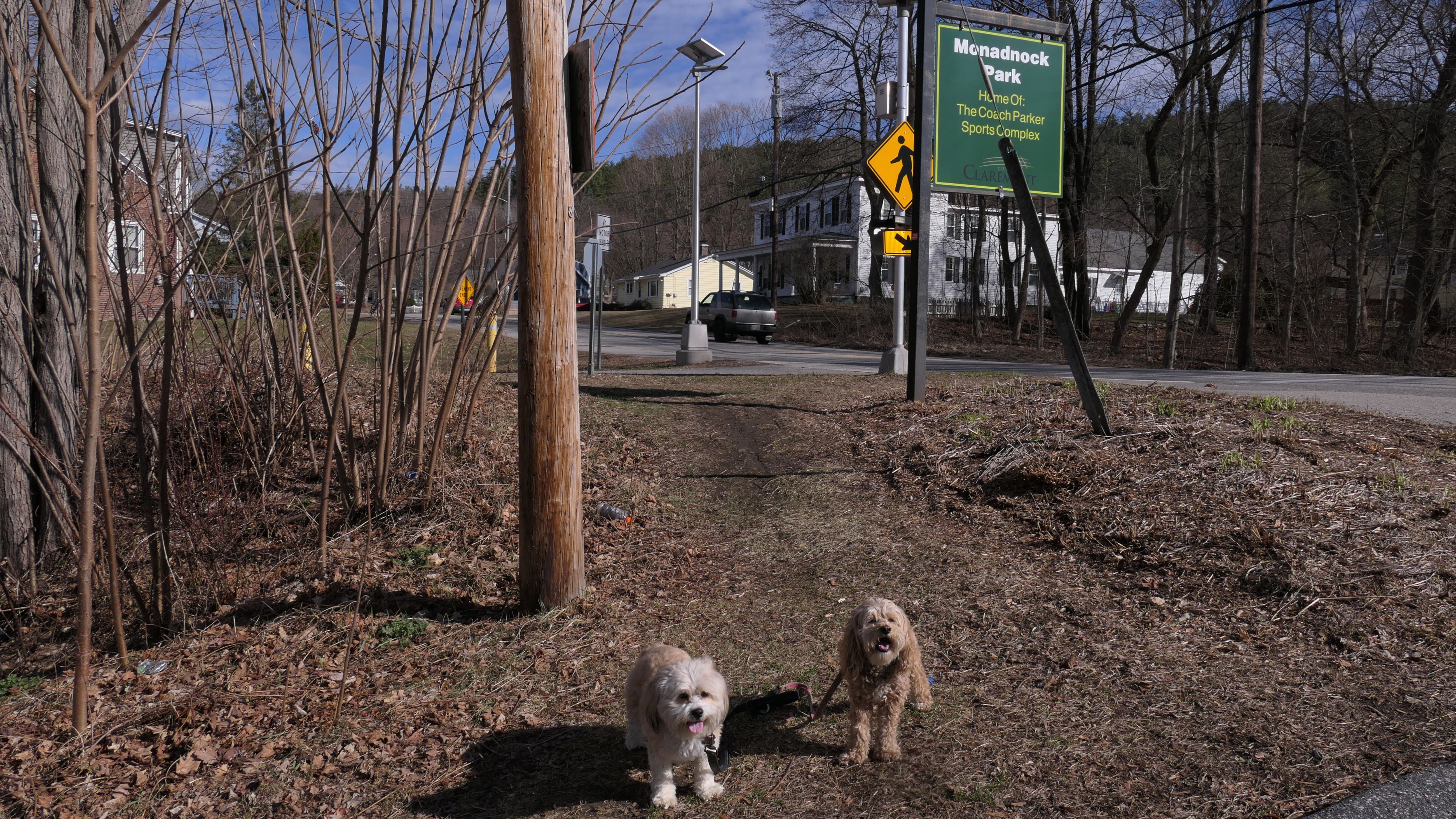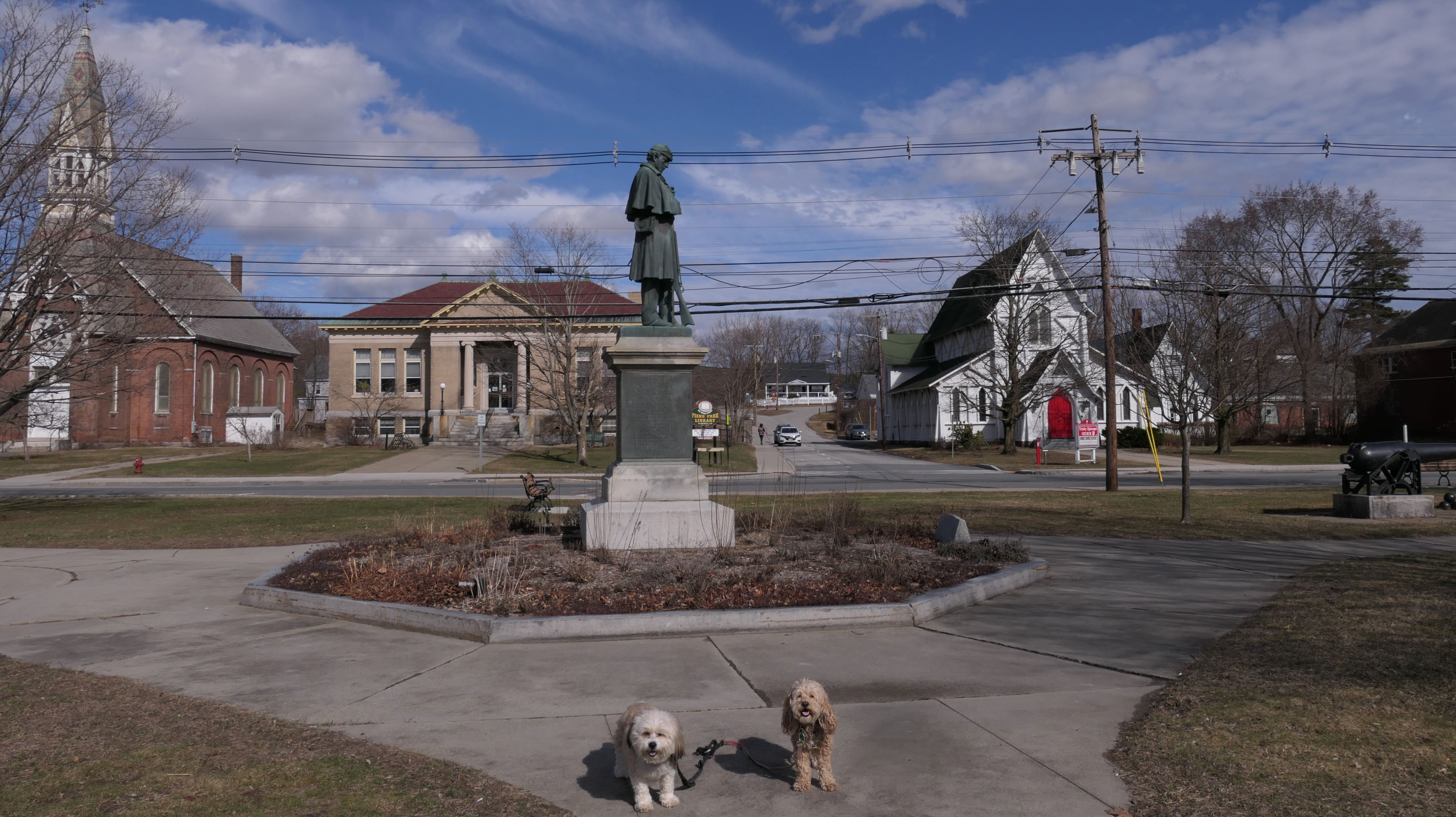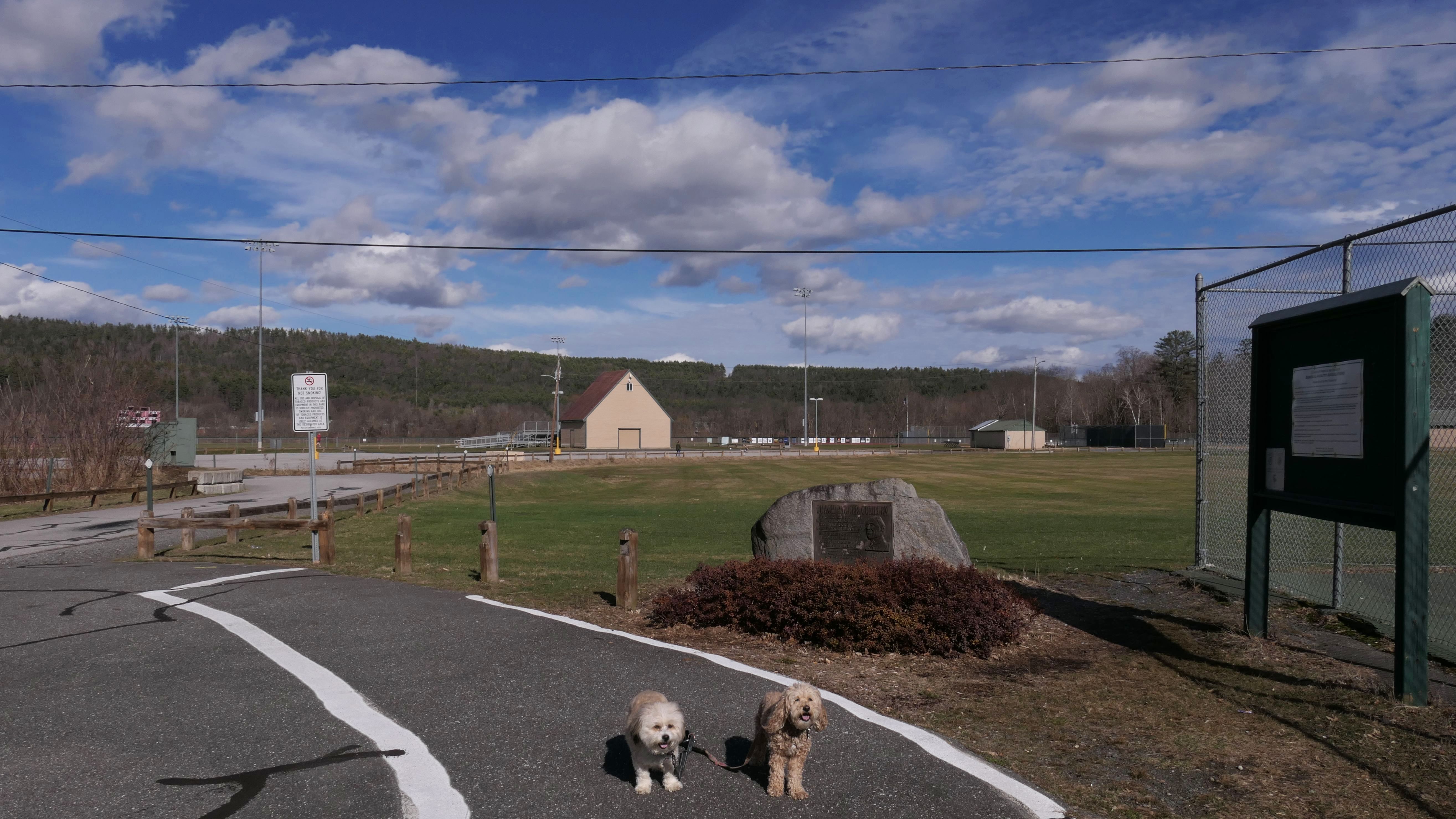 It was such a gloomy weekend in Connecticut, I took my chances with one of my four weather apps reporting the chance for sunny skies two hours away in Claremont, NH. Luckily, the app was right, and there was about a one and a half hour window of sunshine, and we arrived just in time to enjoy it! We were heading to the Bobby Woodman Trail, but the GPS brought me to downtown Claremont. Since the sun had just come out, I figured I'd park here and find the trail later. We walked around the downtown area, around Pleasant and Broad Streets, through Opera House Square and Broad Street Park, and over to Monadnock Park, where we found the Bobby Woodman Trail.