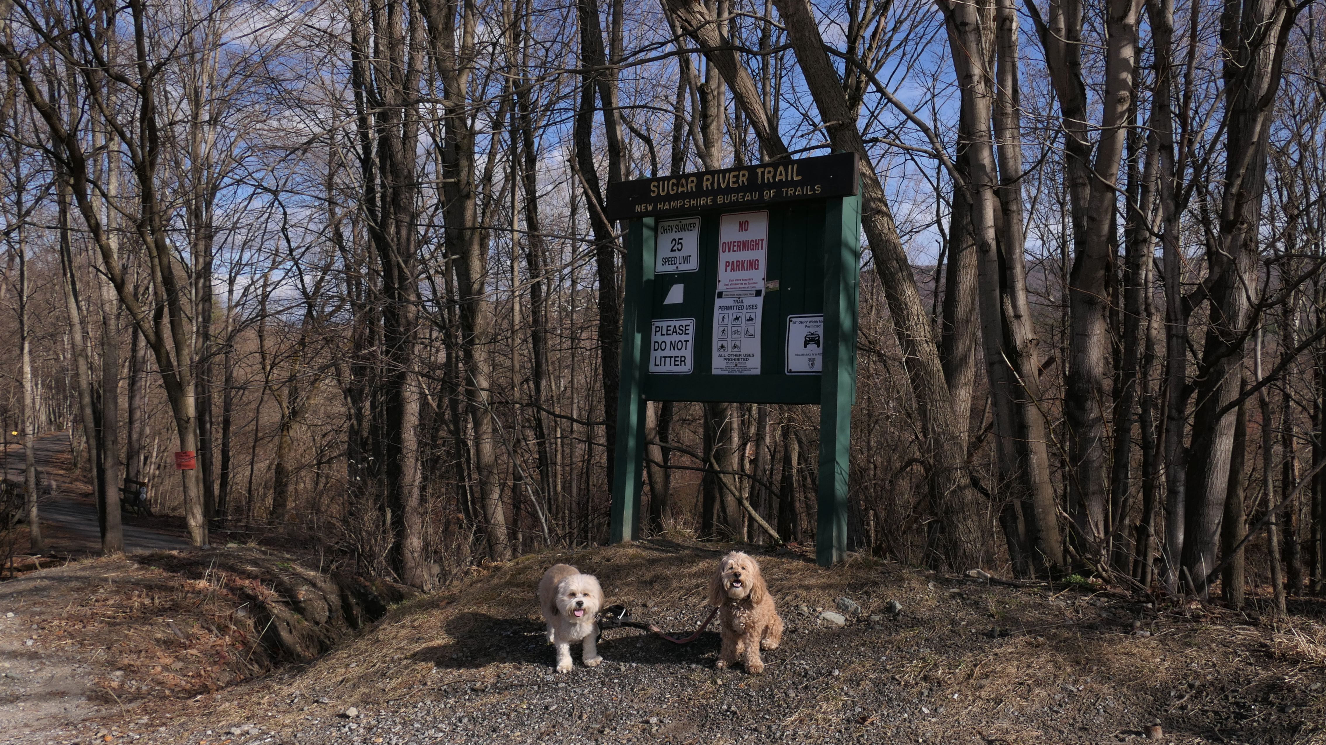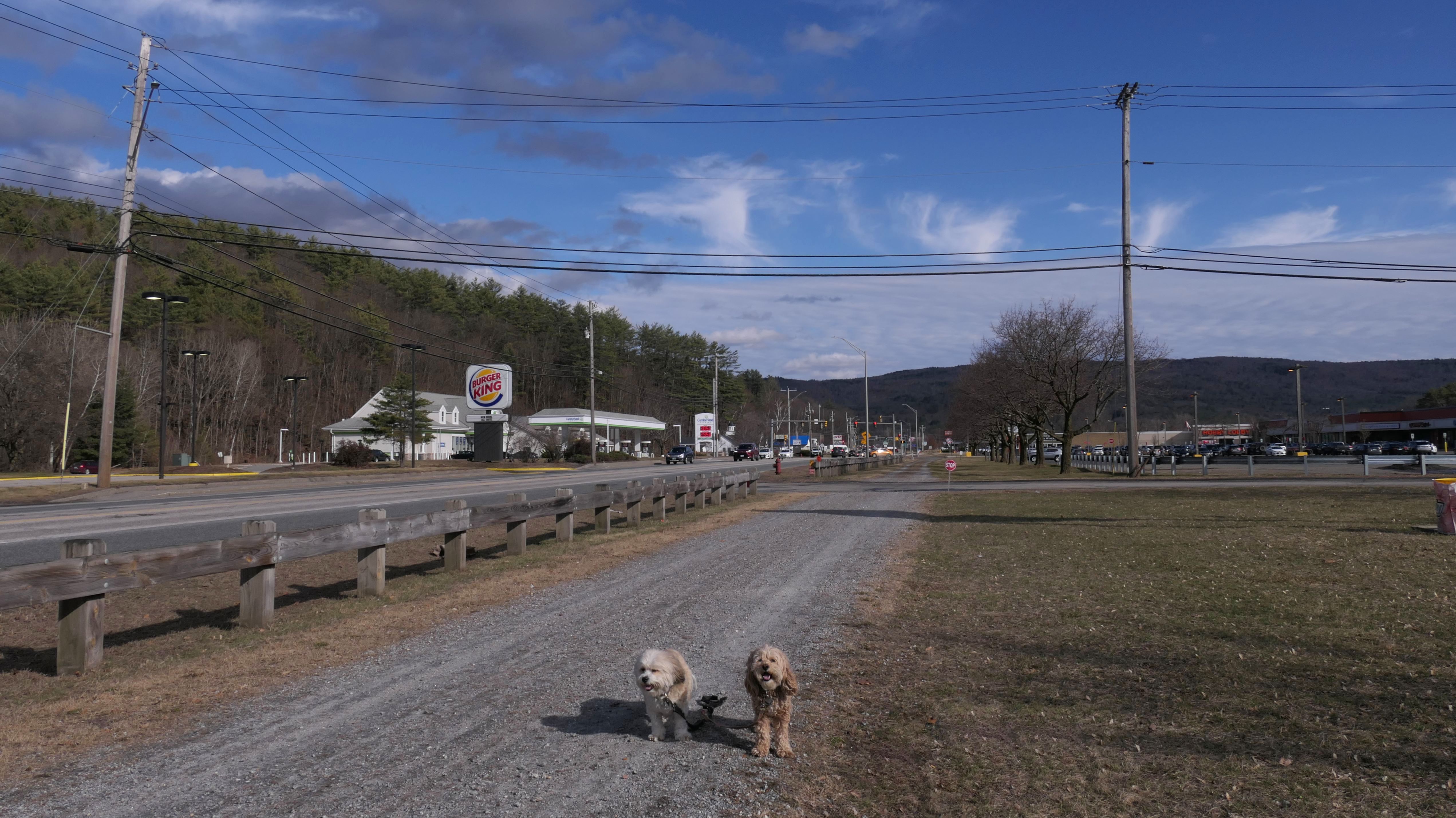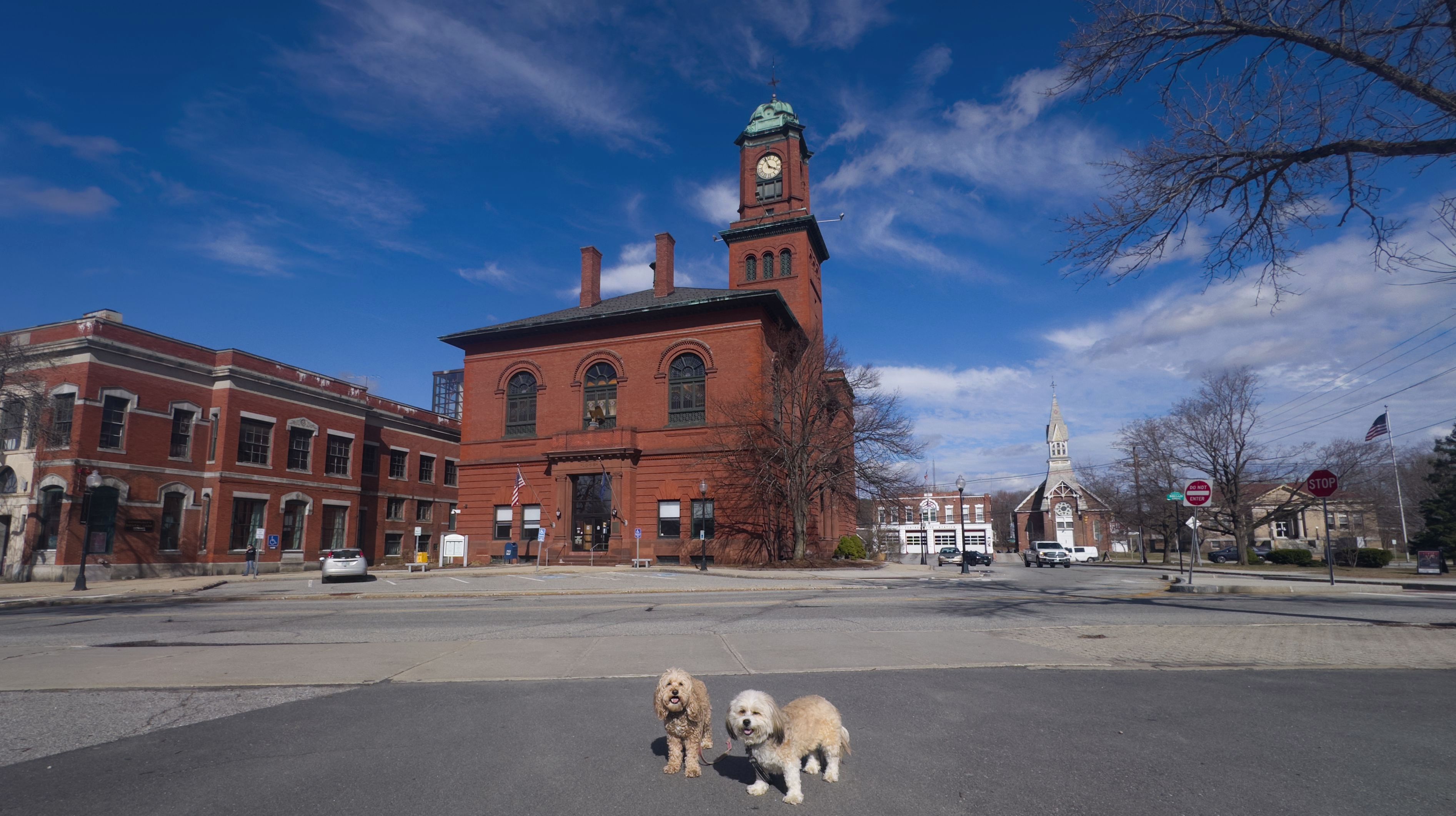 It was such a gloomy weekend in Connecticut, I took my chances with one of my four weather apps reporting the chance for sunny skies two hours away in Claremont, NH. Luckily, the app was right, and there was about a one and a half hour window of sunshine, and we arrived just in time to enjoy it! We were heading to the Bobby Woodman Trail, but the GPS brought me to downtown Claremont. Since the sun had just come out, I figured I'd park here and find the trail later. We walked around the downtown area, around Pleasant and Broad Streets, through Opera House Square and Broad Street Park, and over to Monadnock Park, where we found the Bobby Woodman Trail.