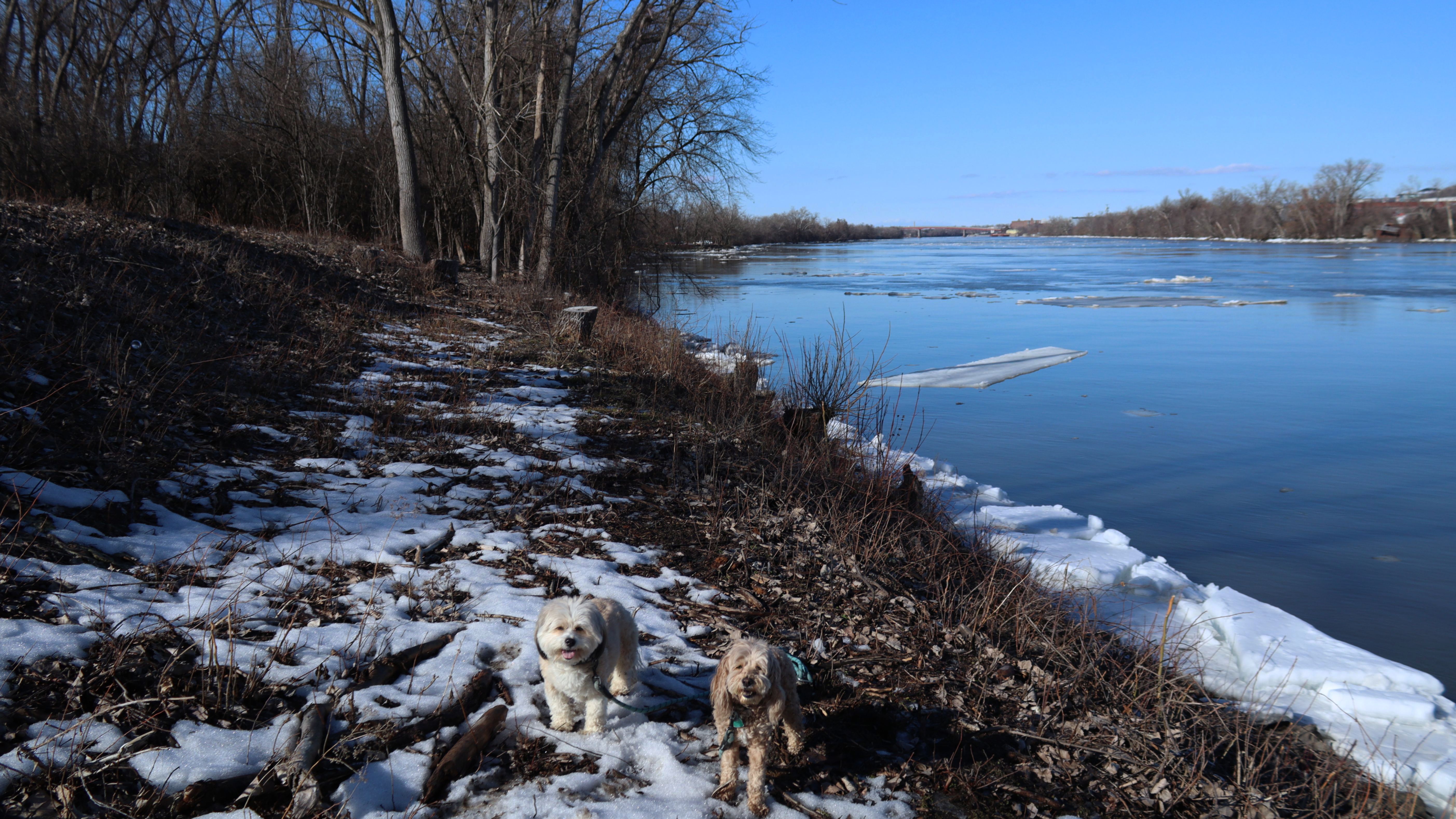 We entered this trail from the Watwrvliet section. We were able to veer off the trail, and get some good views of chunks of ice floating down the Hudson River. I had planned to walk down to where we left of here a few years ago, but the trail became wet and messy about a mile in, so we turned around and walked more of the Watervliet section instead.