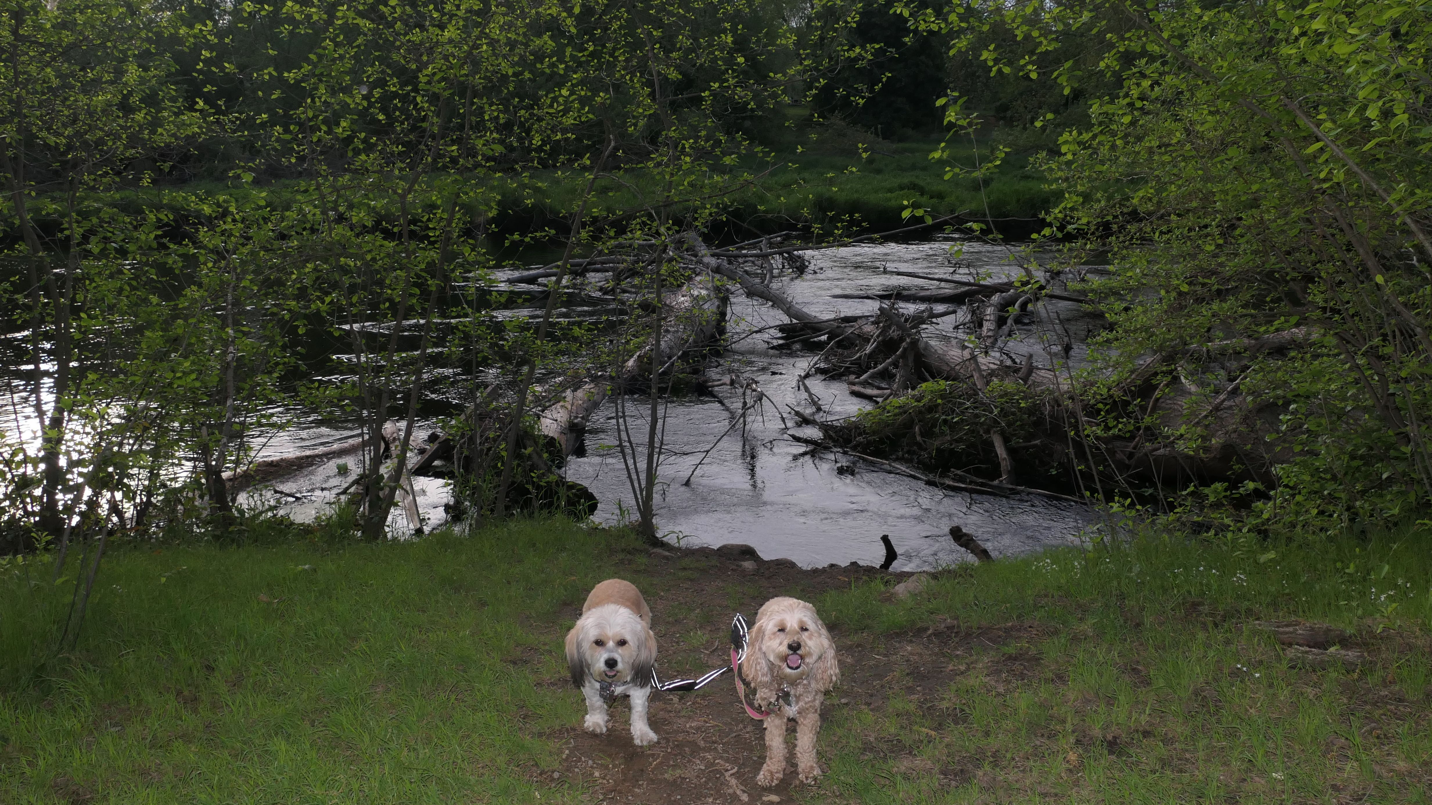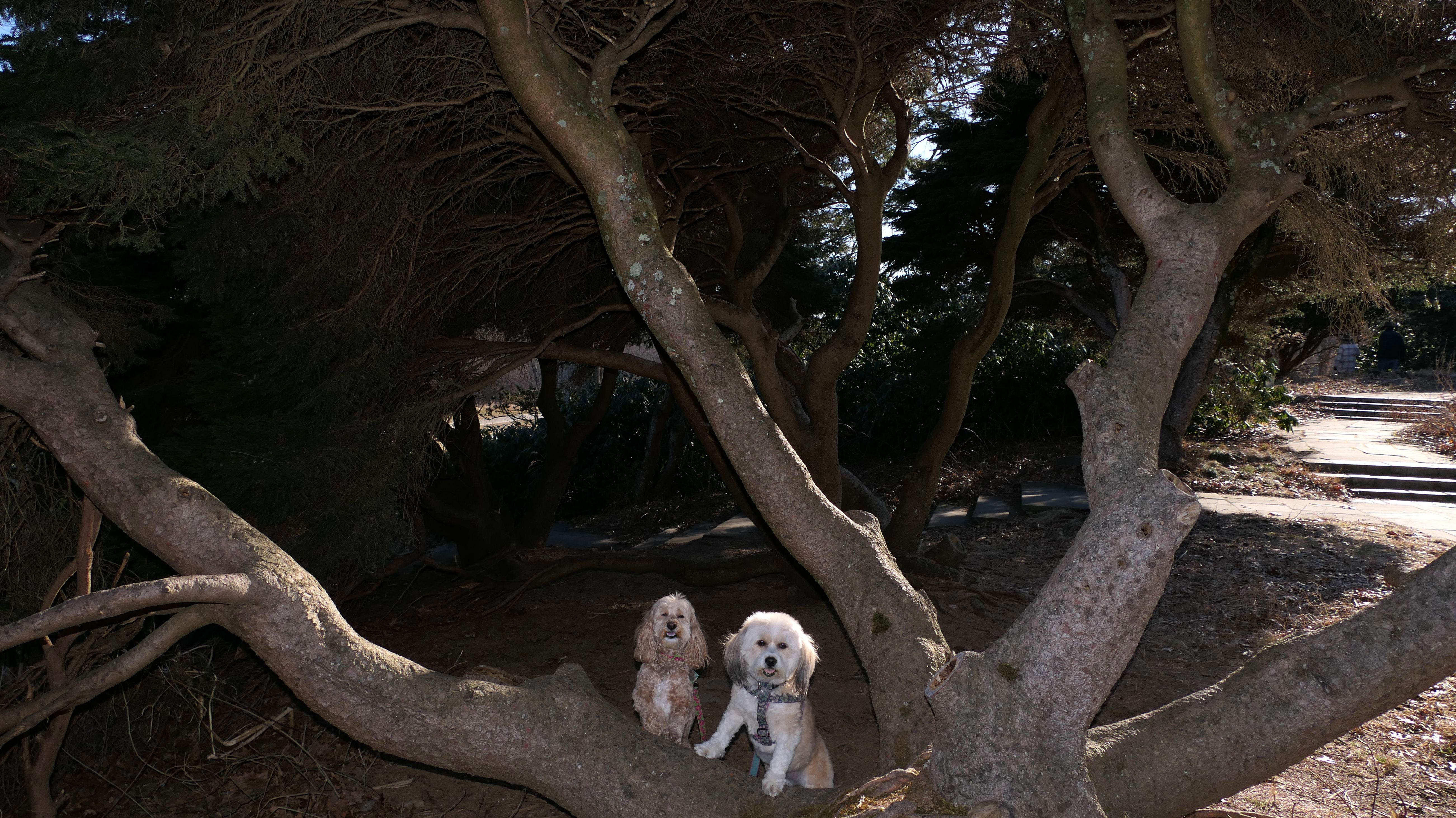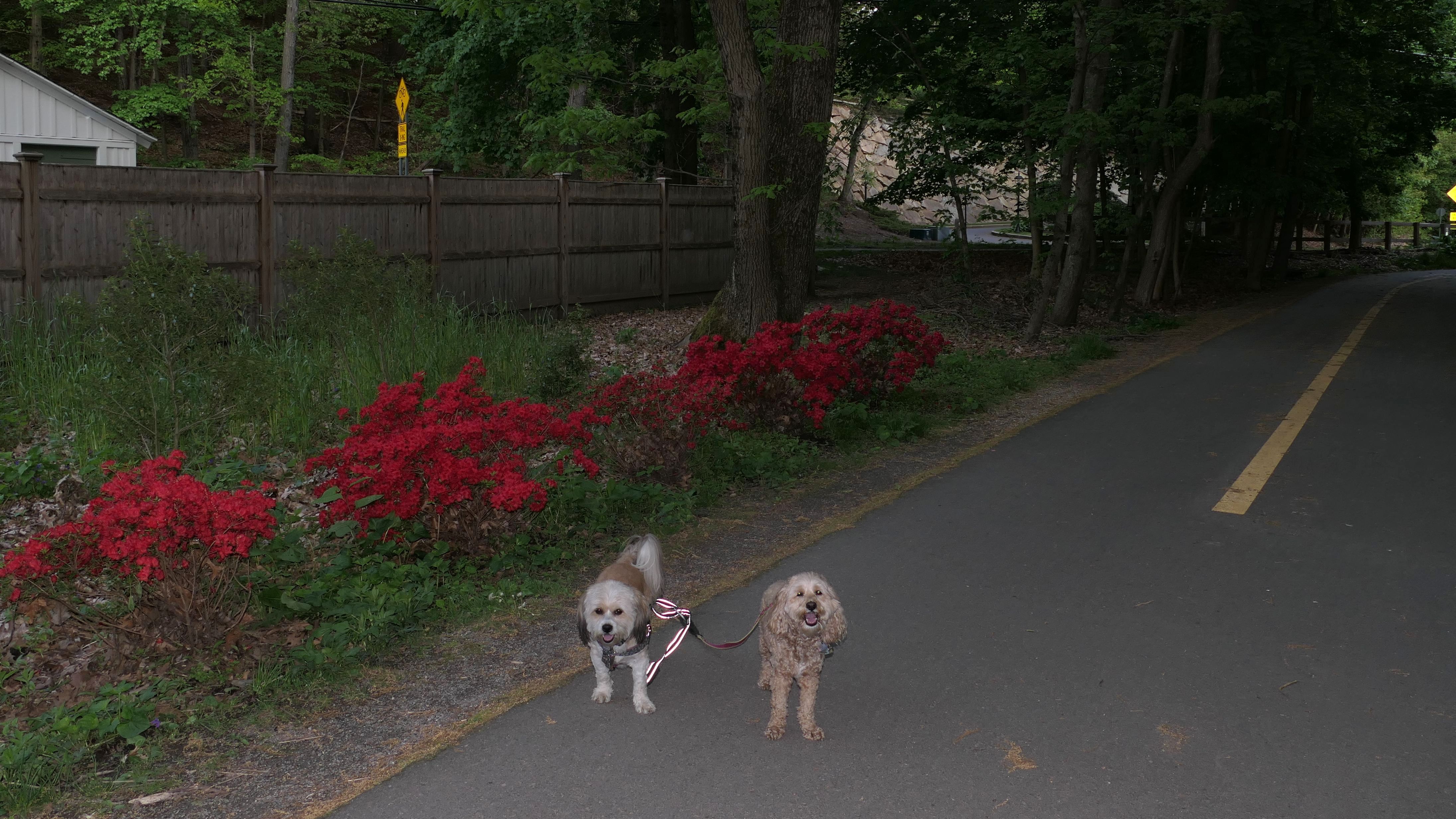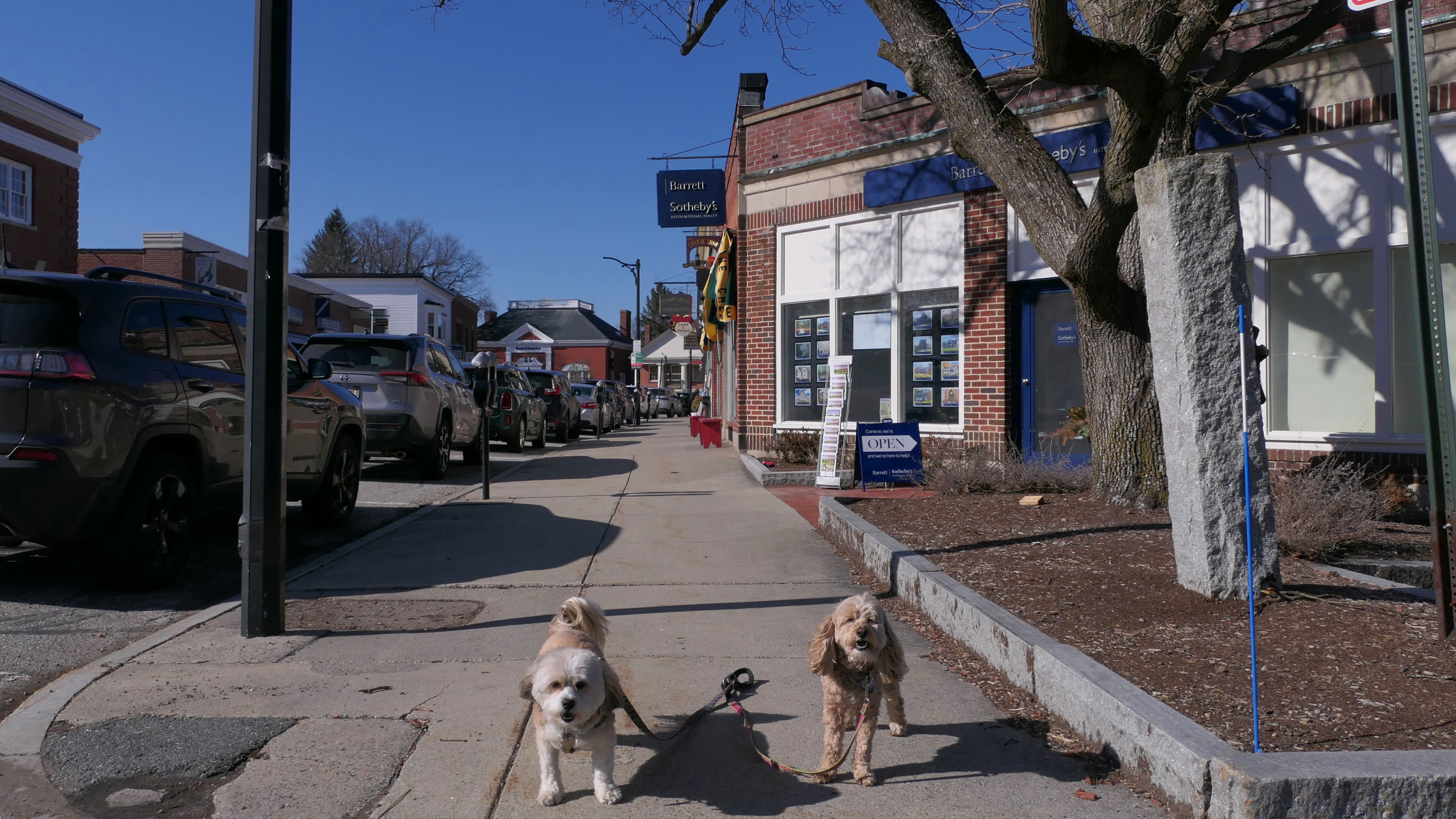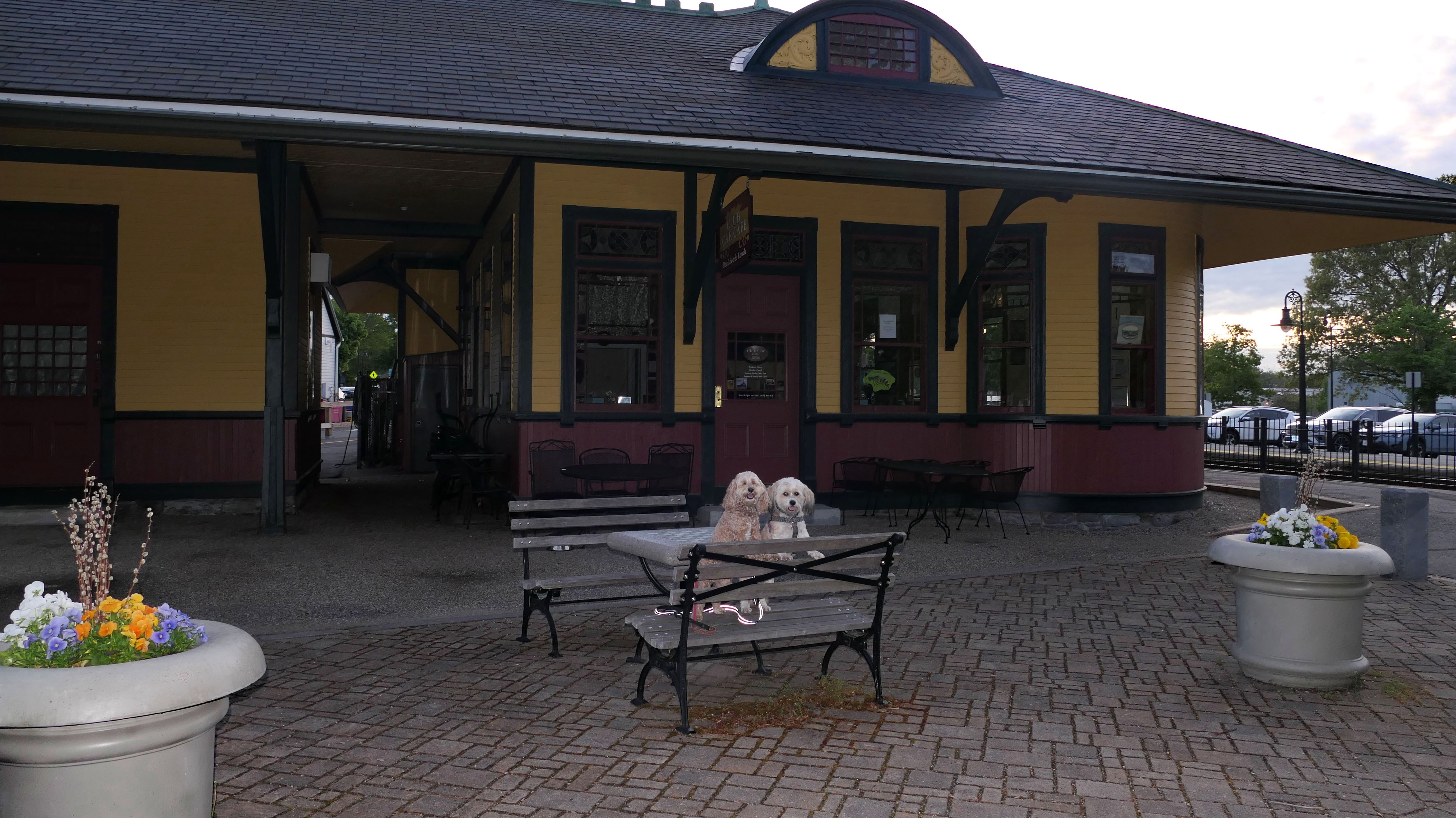 We walked here from Downtown Concord. The Minute Man National Historic Park is a large National Park with multiple sections. This is the section around the historic North Bridge. This is the site of one of the earliest battles of the Revolutionary War. The bridge is a replica of the original bridge, built in 1956. There's a stone dust trail that leads up a hill up to the visitor's center. The trail was quite muddy in places, and it was hard to get a picture of the dogs in front of the famous statue here. The sun was directly behind the statues, and it was too muddy to take it from a different angle.