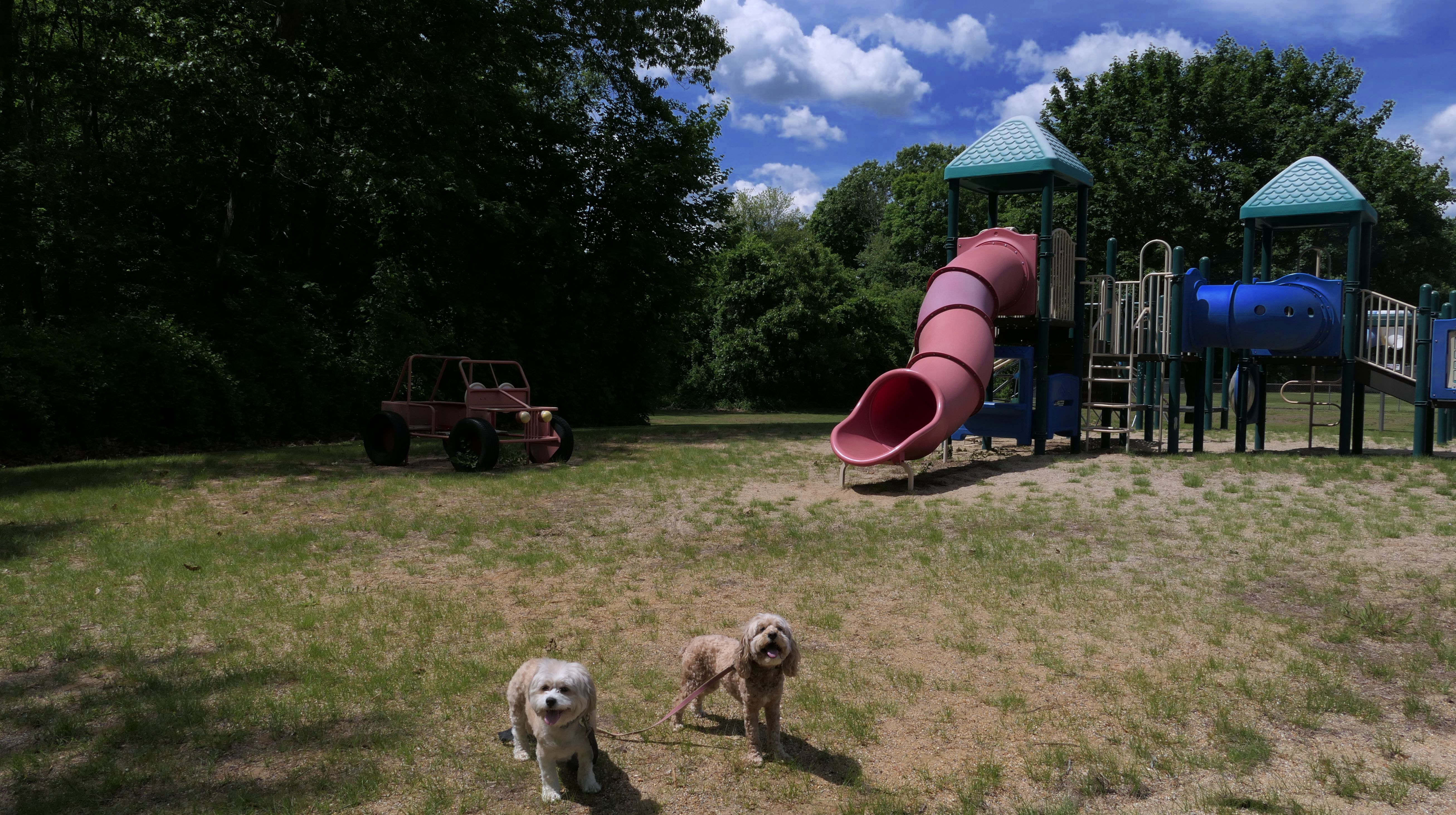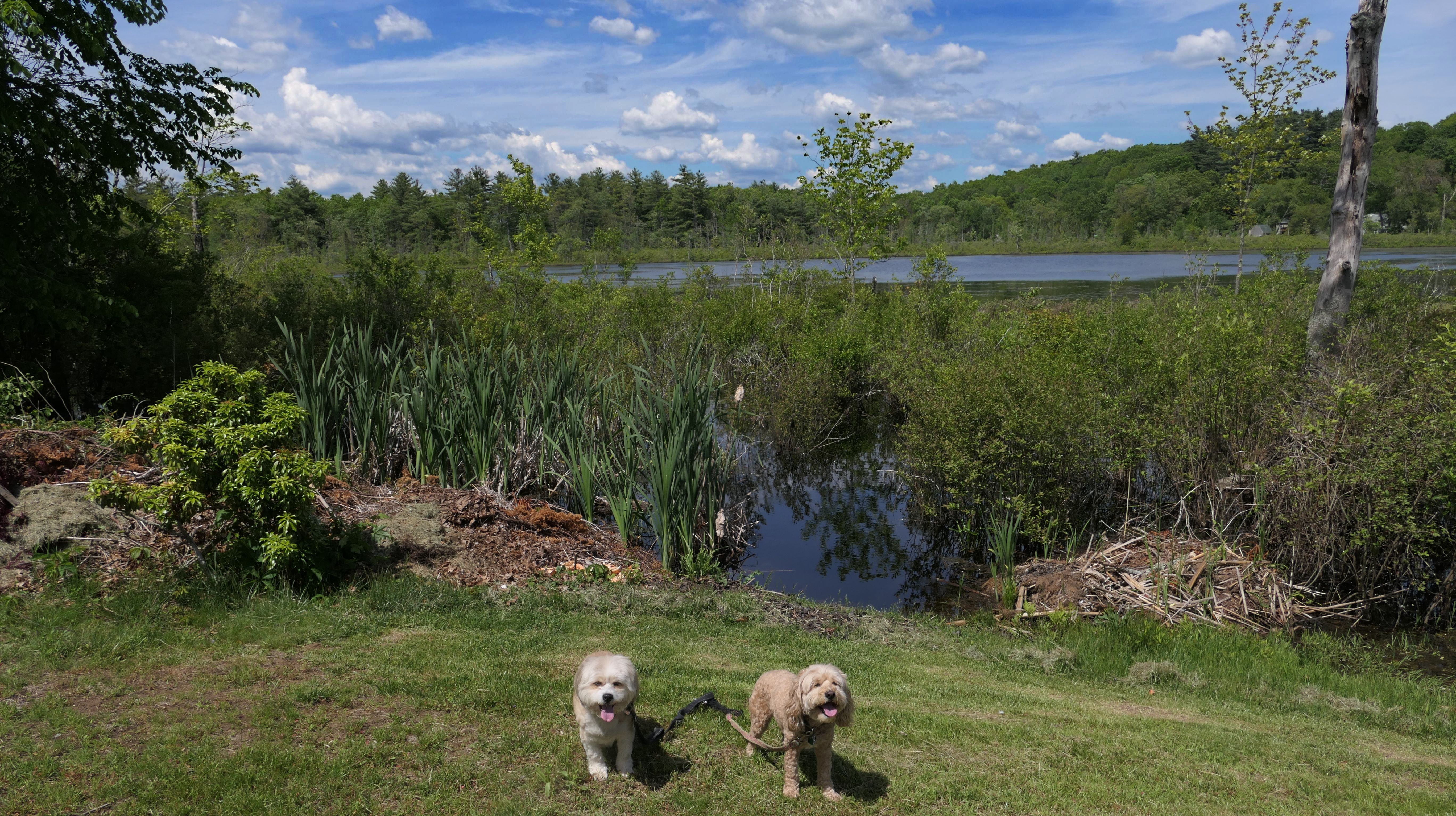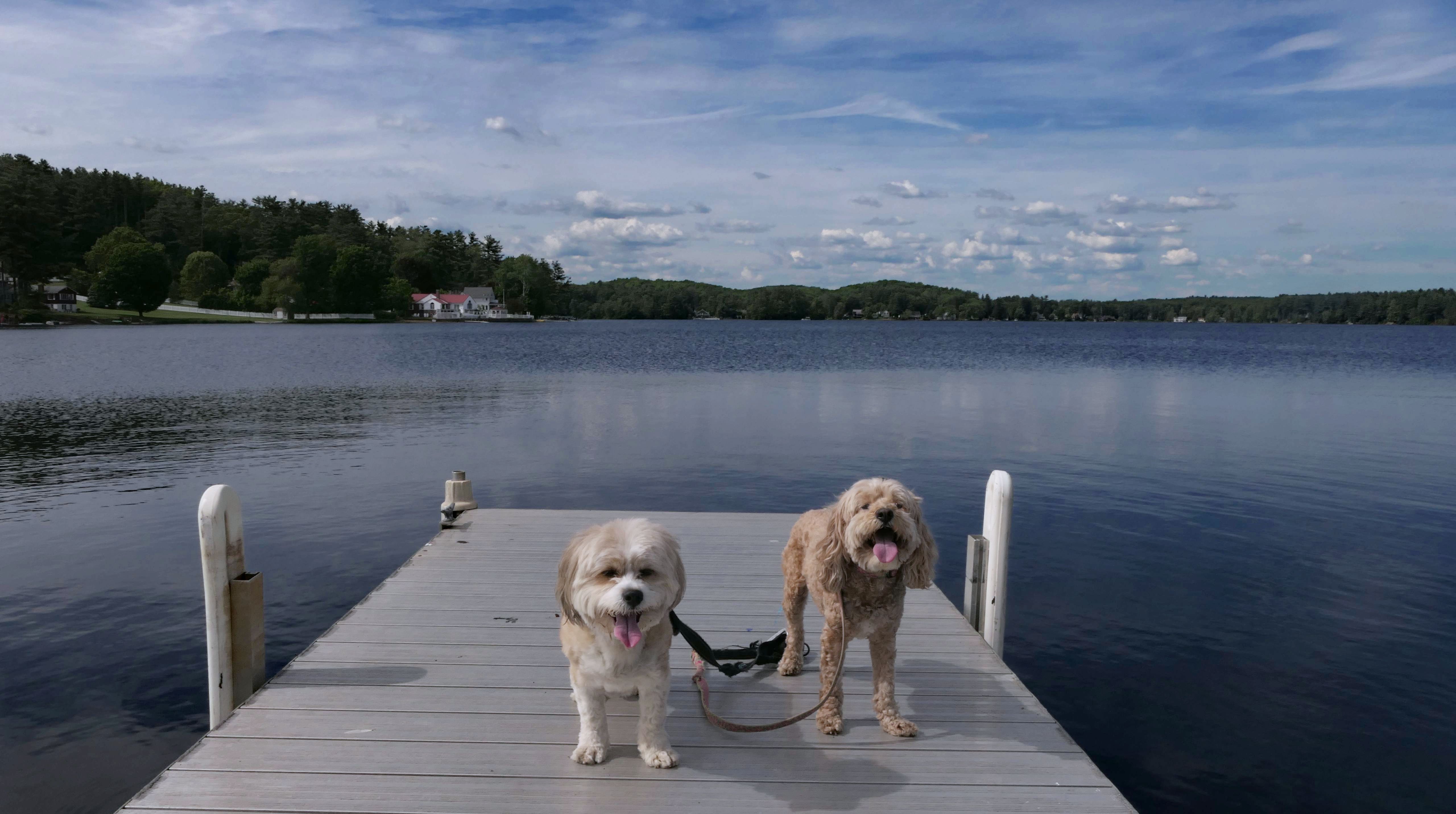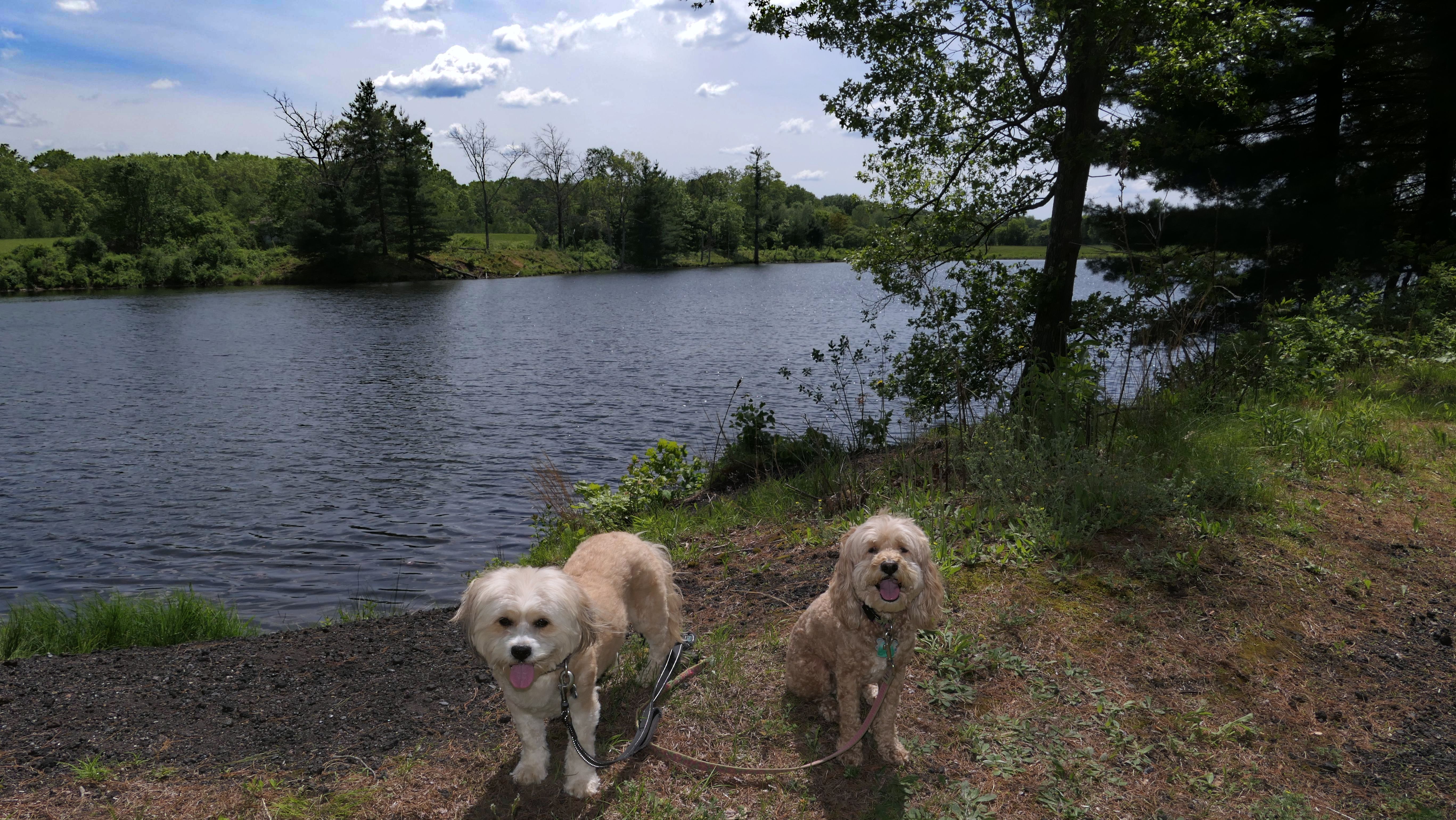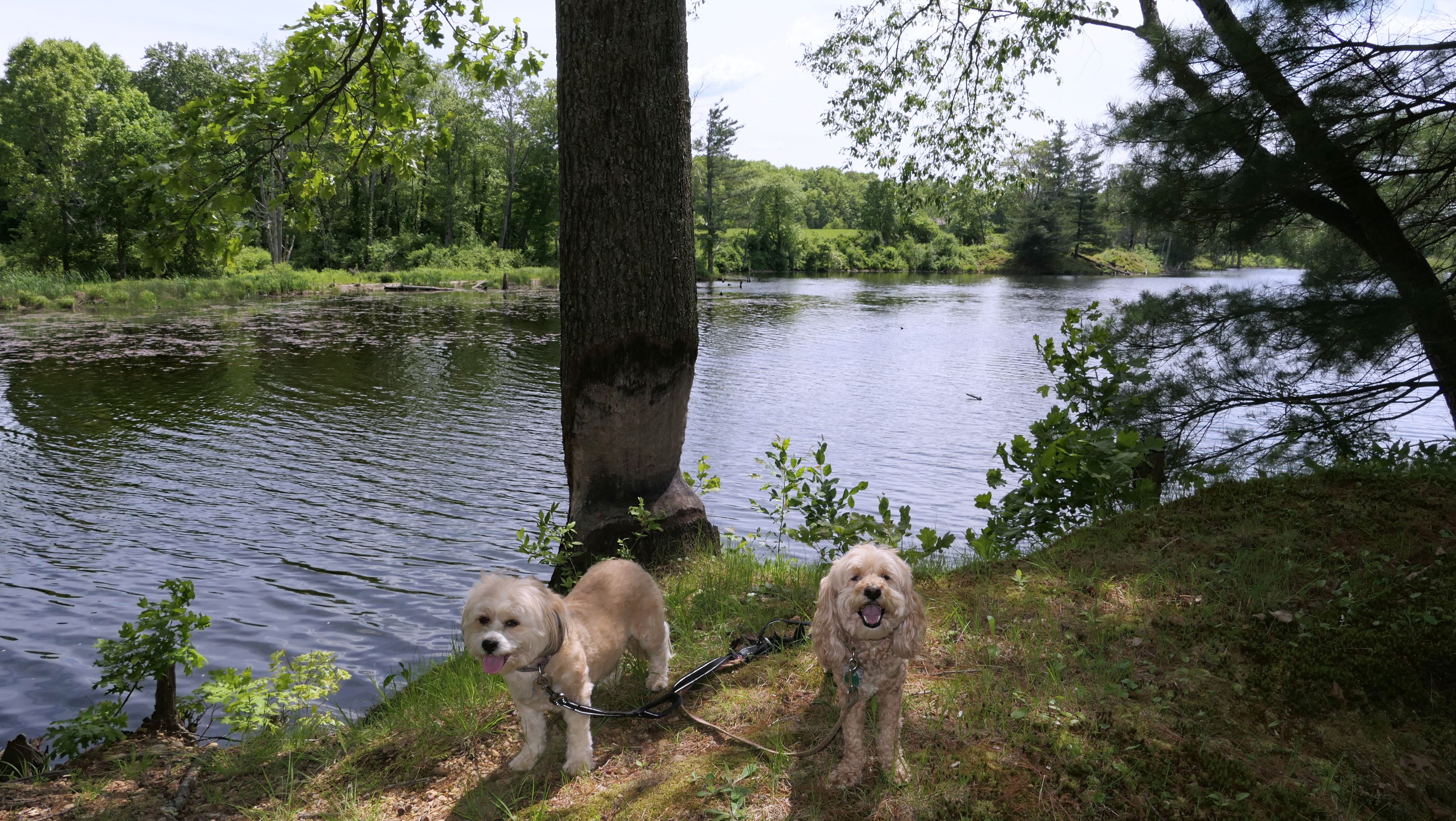 We wound up walking through the center of town on our way back from the rail trail. I learned from the sign, that East Brookfield is the "newest" town in the commonwealth, spinning off from Brookfield in 1920. It's also the birthplace of Connie Mack, best known as the long time manager of the Philadelphia Athletics baseball team in the early 1900's. To this day, Mack has more managerial wins than anyone ... and he also has the most losses as well! It's a big deal in town. You can see the actual house where he was born in the photo of the dogs on the bench. There's also a "Connie Mack" baseball field, and the "Connie Mack Snack Shack" as well. There's also a nice pier that looks out over Lake Lashaway. Our entire walk, counting the rail trail, was about 3.5 miles total.