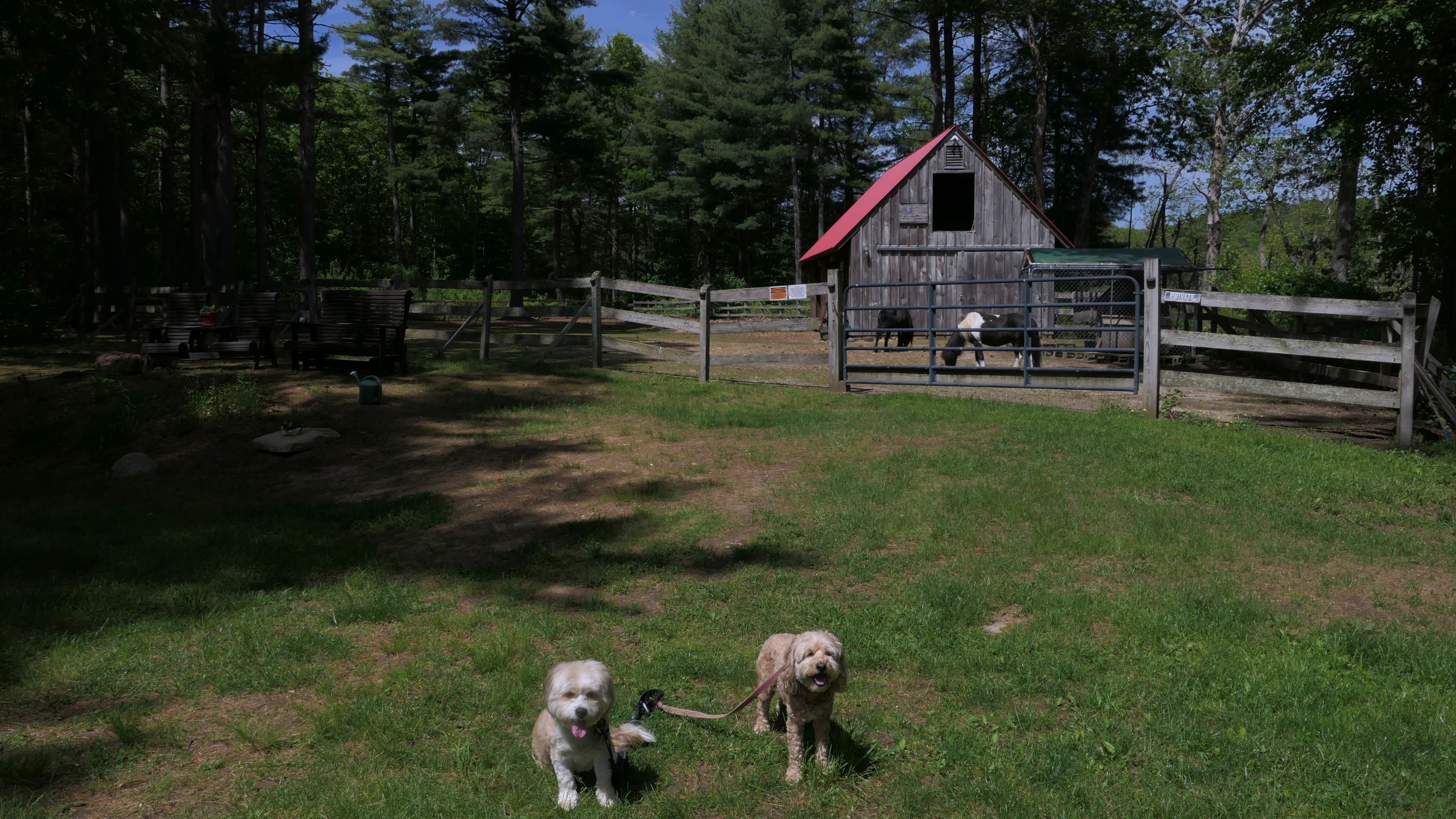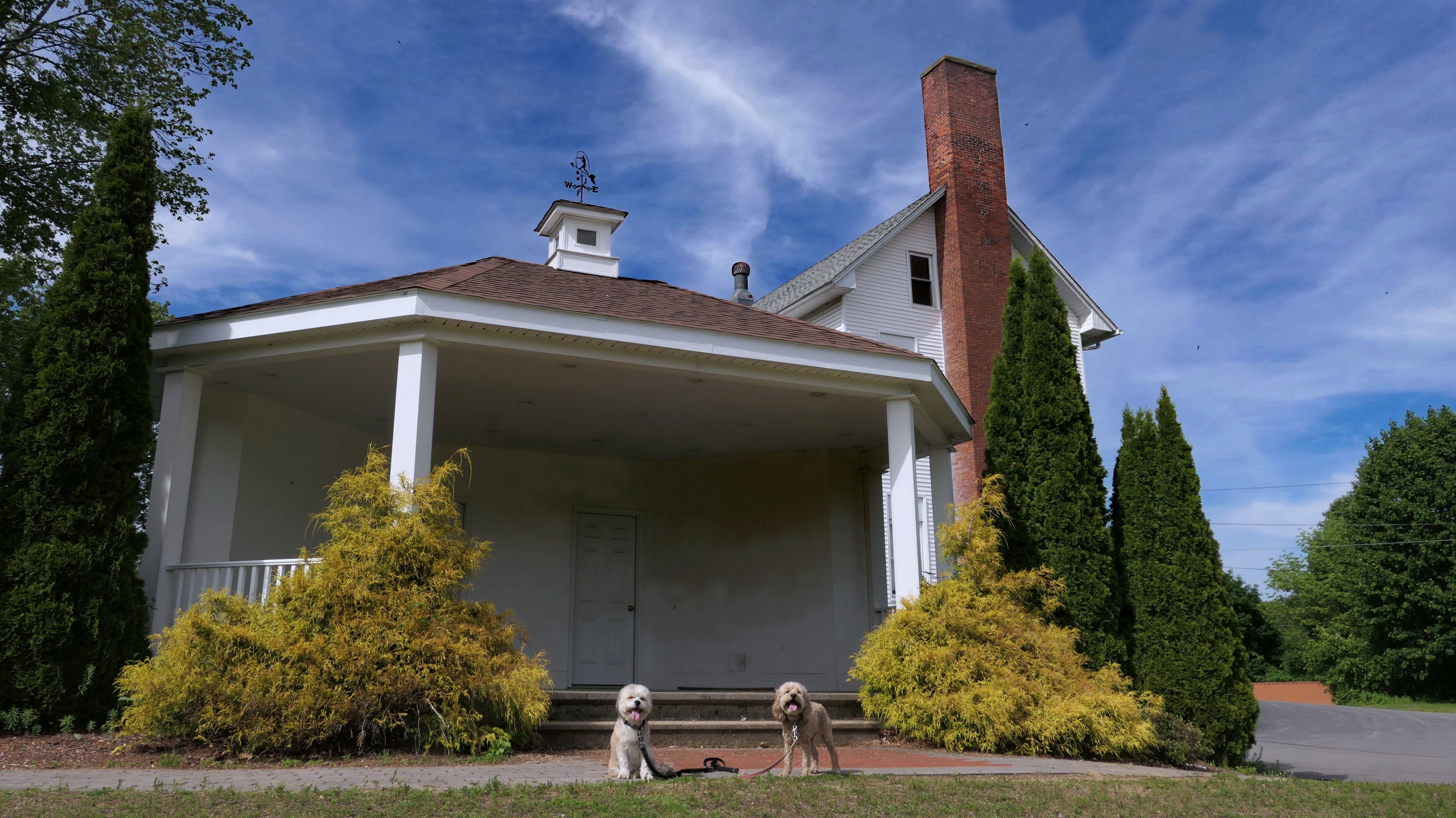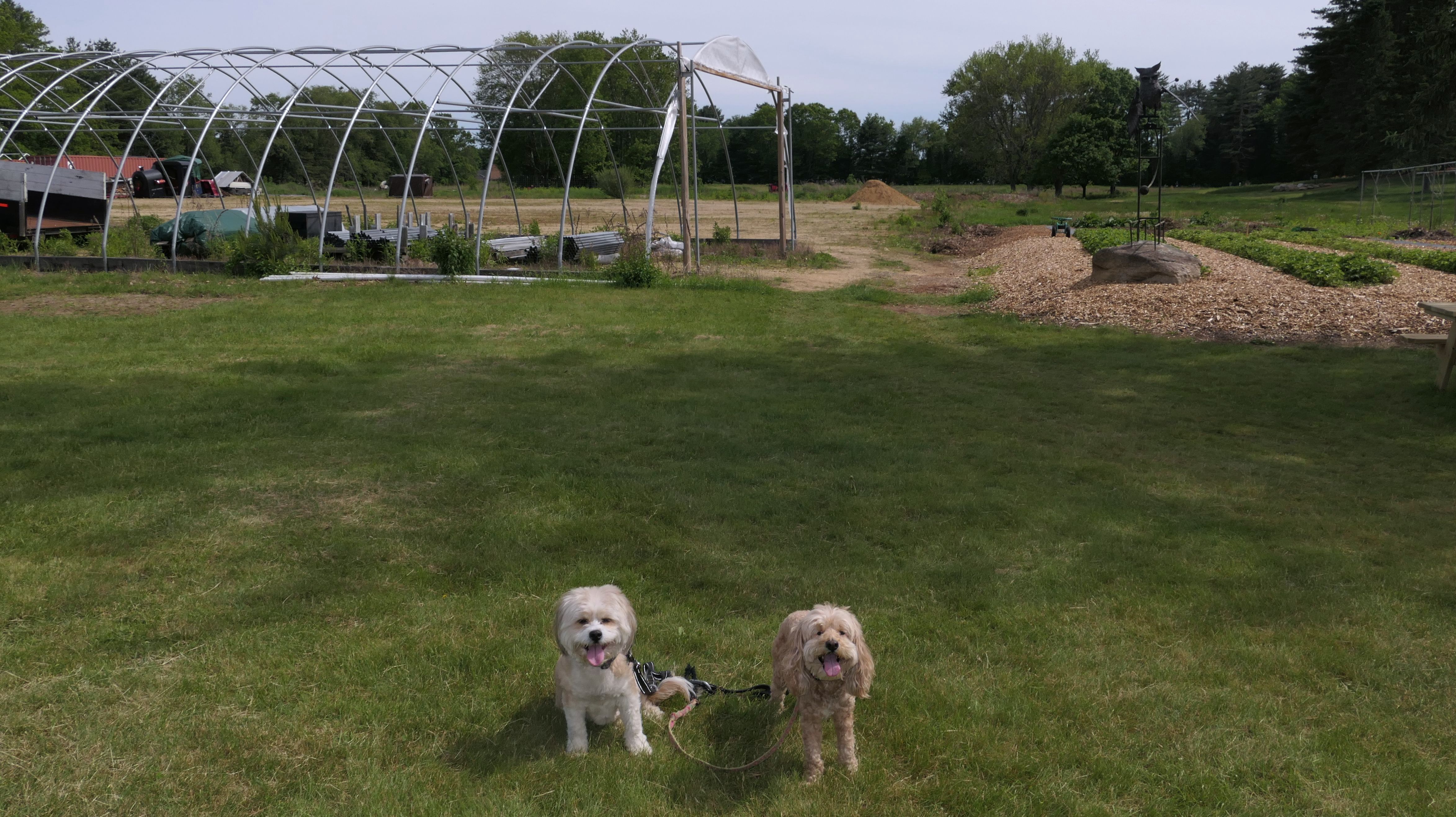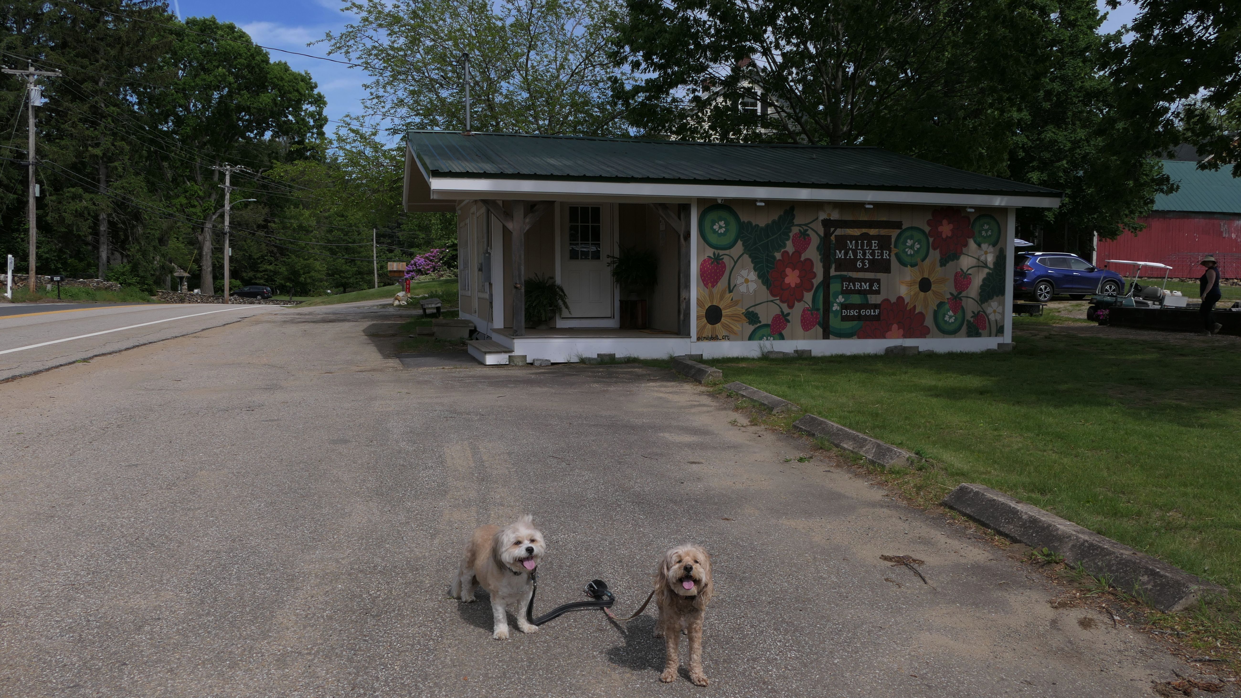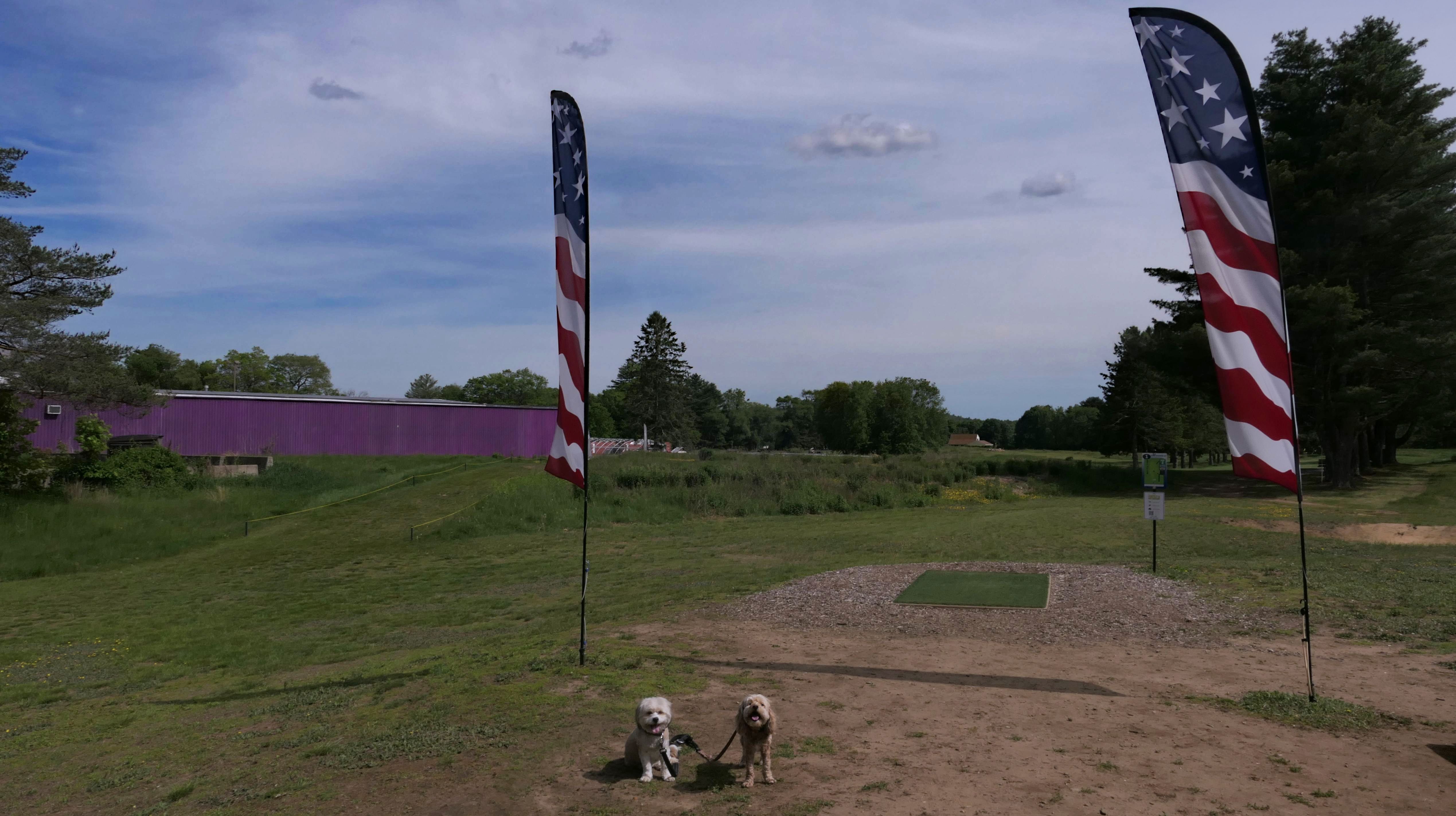 We were on the North Brookfield Rail Trail, but didn't want to pass back through the flooded section on our return walk, so we headed back along the streets. We passed this place on our way to the center of town. There's a farm store, with a frisbee golf course in the back. We walked through as an alternative to continuing on the busy main road that didn't have sidewalks. It looks like a nice place, but probably not designed for dog walking. Once past the farm, there was a sidewalk on North Brookfield Road, so we were able to use that to continue on our way.