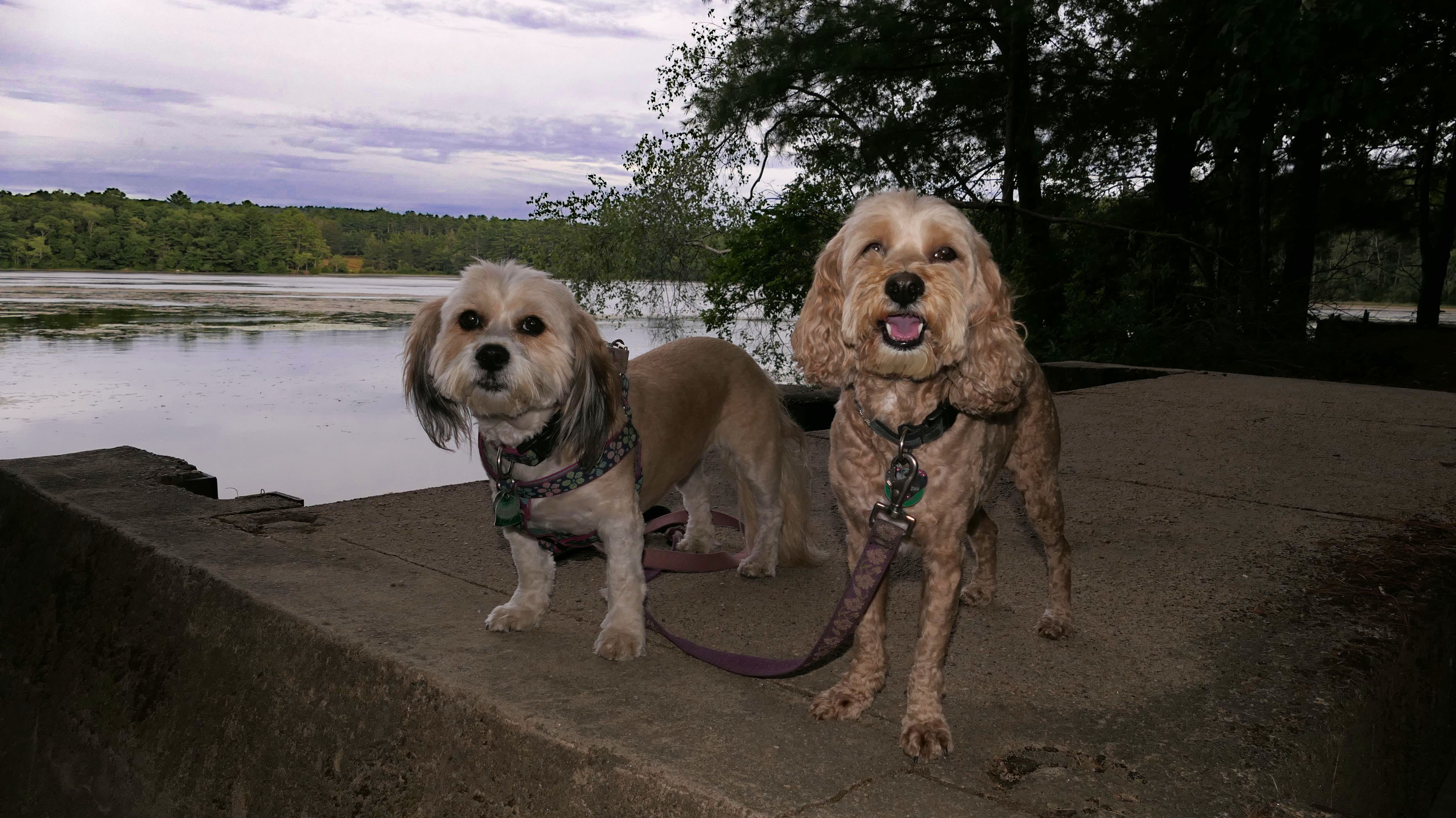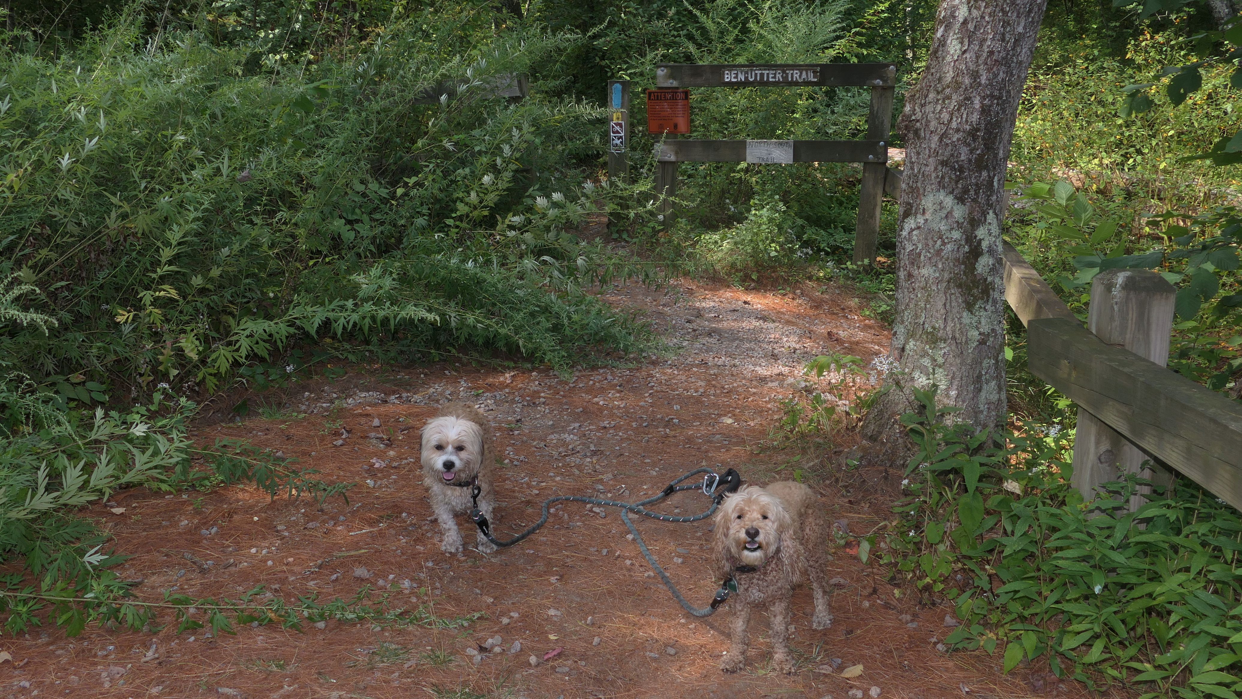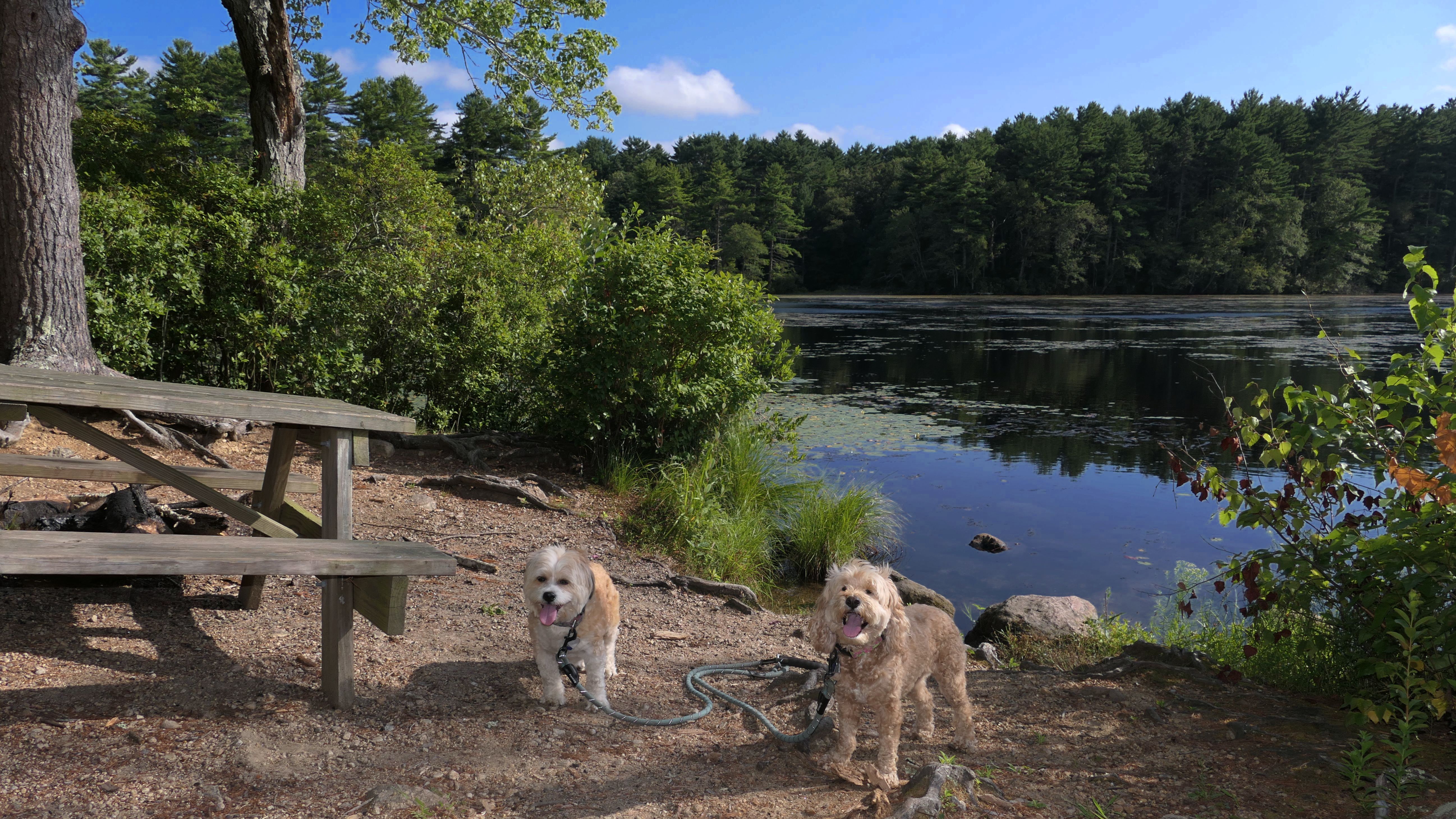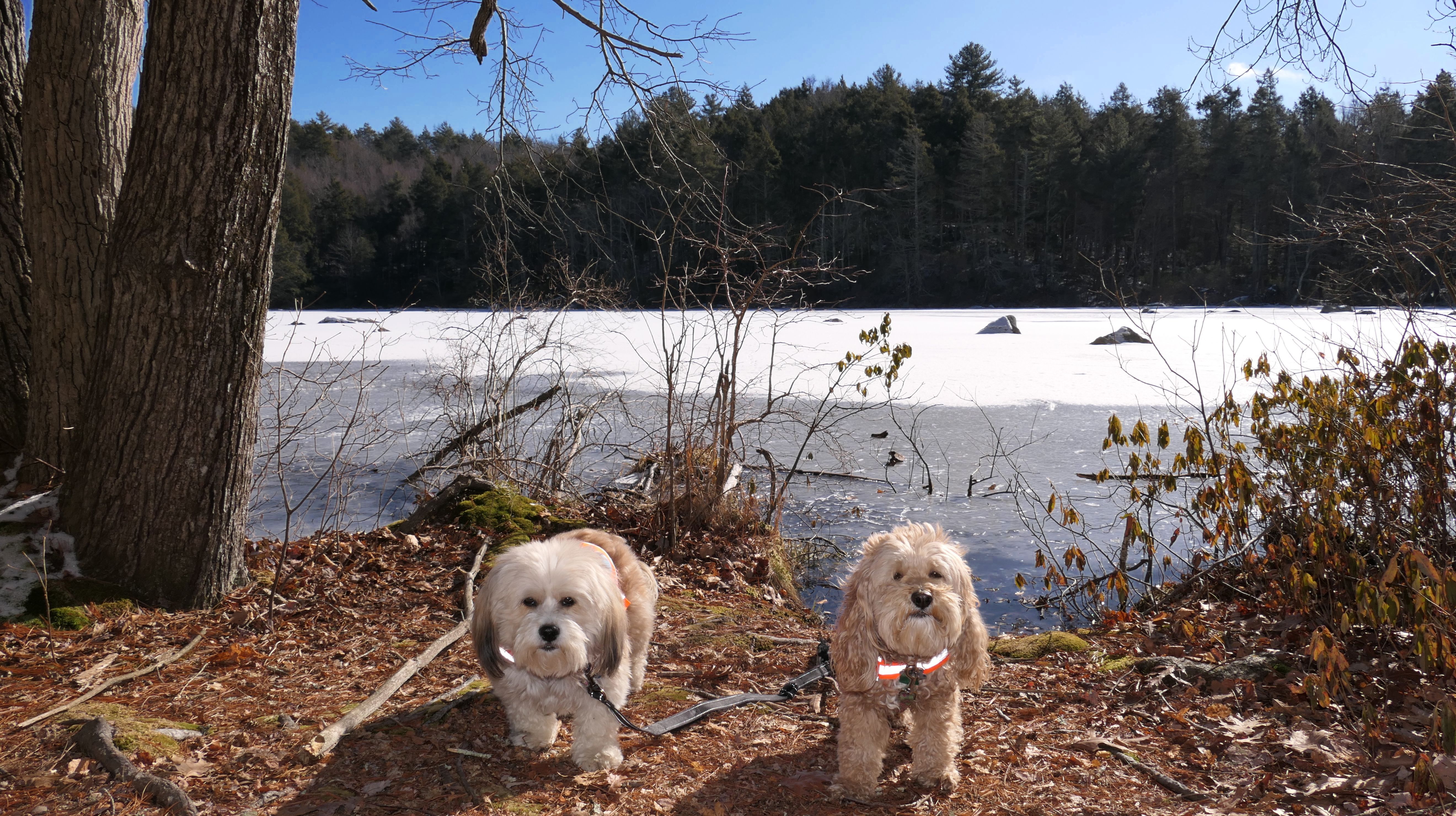 On our first visit here, I think I just pulled over to let the dogs out to do their business. We didn't actually hike around the pond, but did take pictures in front of the sign. Over 50 months later, we returned and hiked the nearly two mile loop around the pond. The trail is actually quite nice, and is very well maintained. There are a bunch of spots that provide access to the pond, as well as some ruins of the old mill. The trail actually dips into Richmond. There are a few other pictures on that page. After we were done, I crossed the street and took the same picture in front of the sign. This time the dogs were looking, but the giant rock in front of the sign wasn't there two years ago.