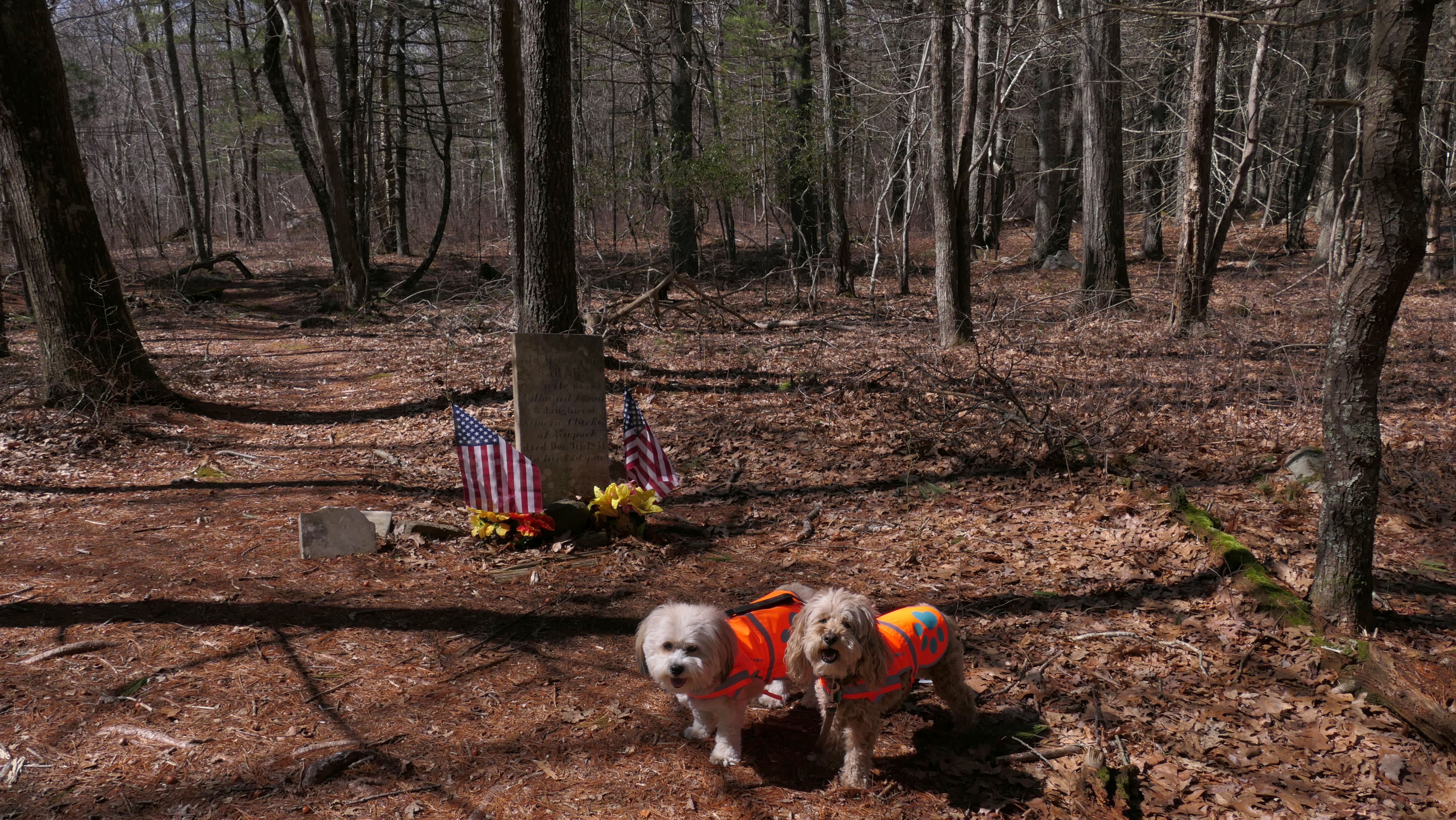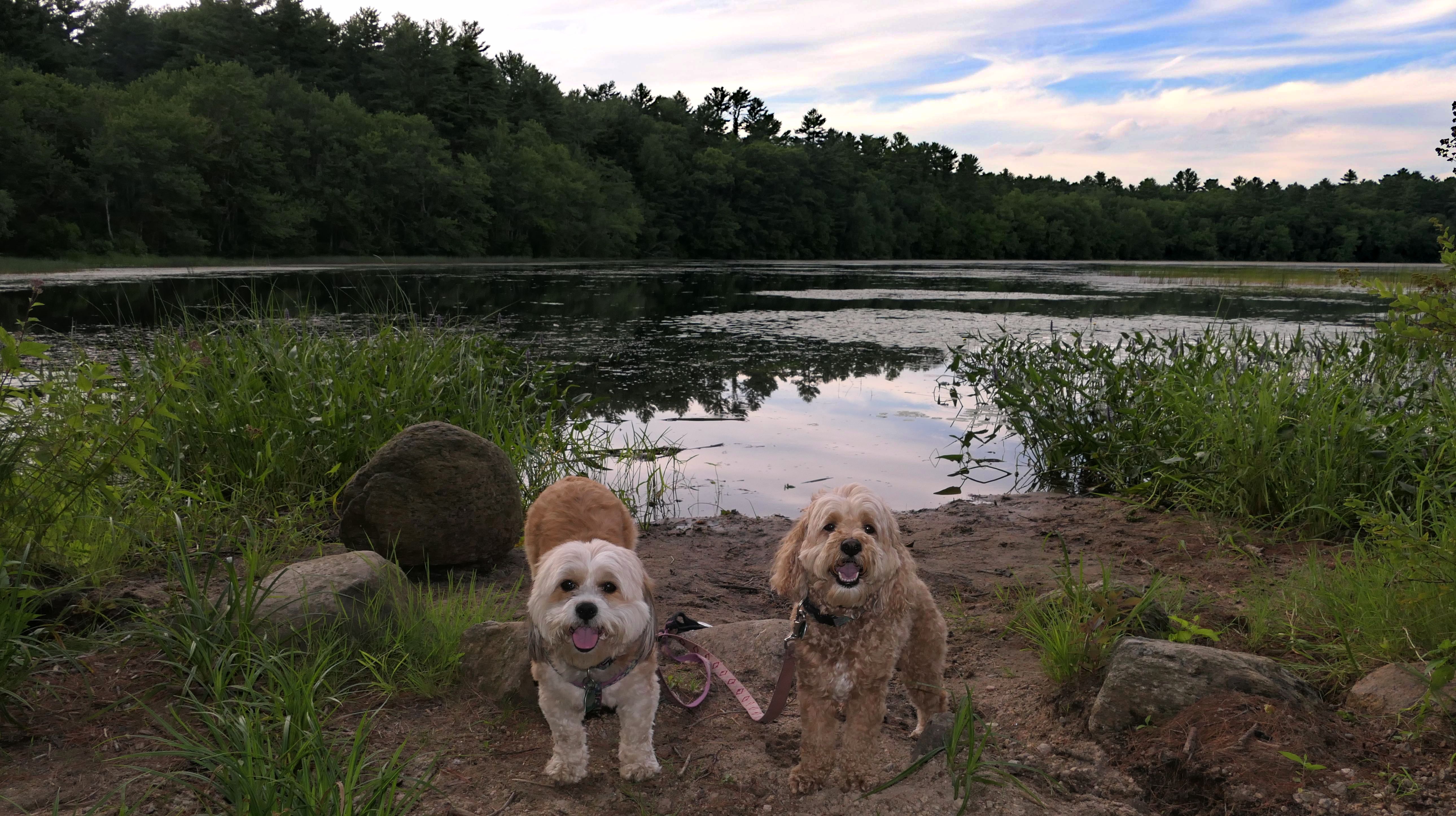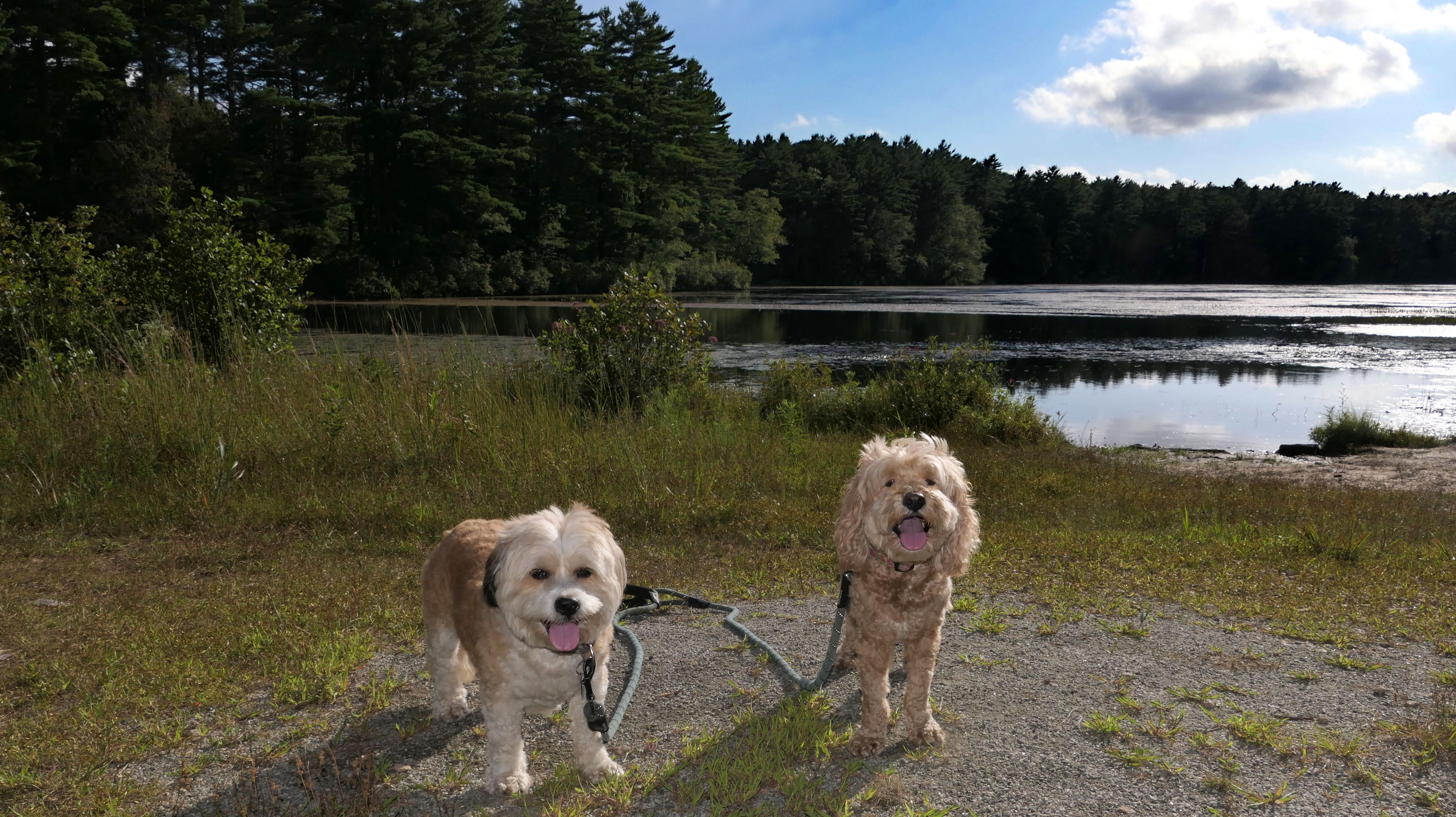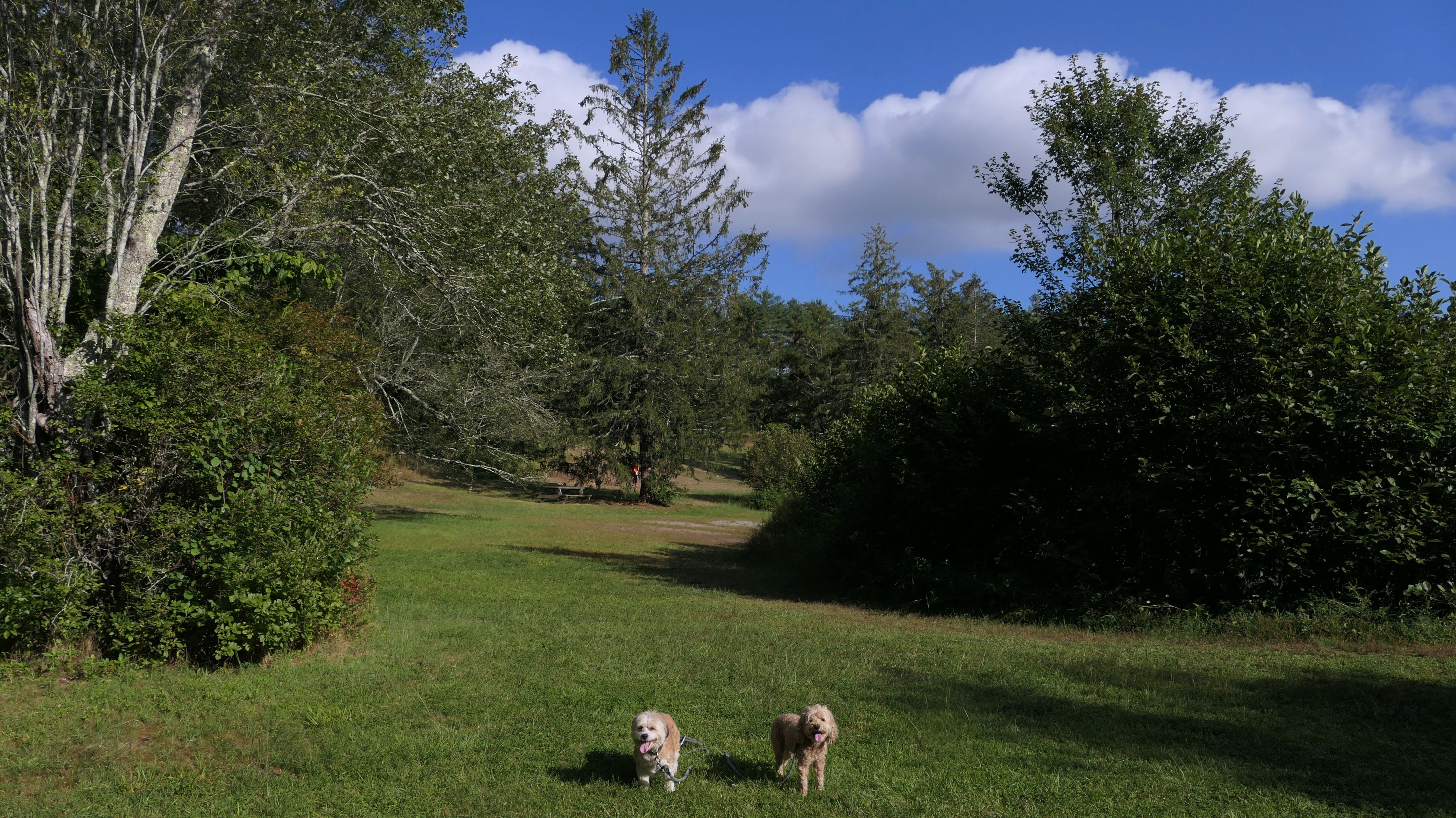 On our first visit here, I think I just pulled over to let the dogs out to do their business. We didn't actually hike around the pond, but did take pictures in front of the sign. Over 50 months later, we returned and hiked the nearly two mile loop around the pond. The trail is actually quite nice, and is very well maintained. There are a bunch of spots that provide access to the pond, as well as some ruins of the old mill. The trail actually dips into Richmond. There are a few other pictures on that page. After we were done, I crossed the street and took the same picture in front of the sign. This time the dogs were looking, but the giant rock in front of the sign wasn't there two years ago.