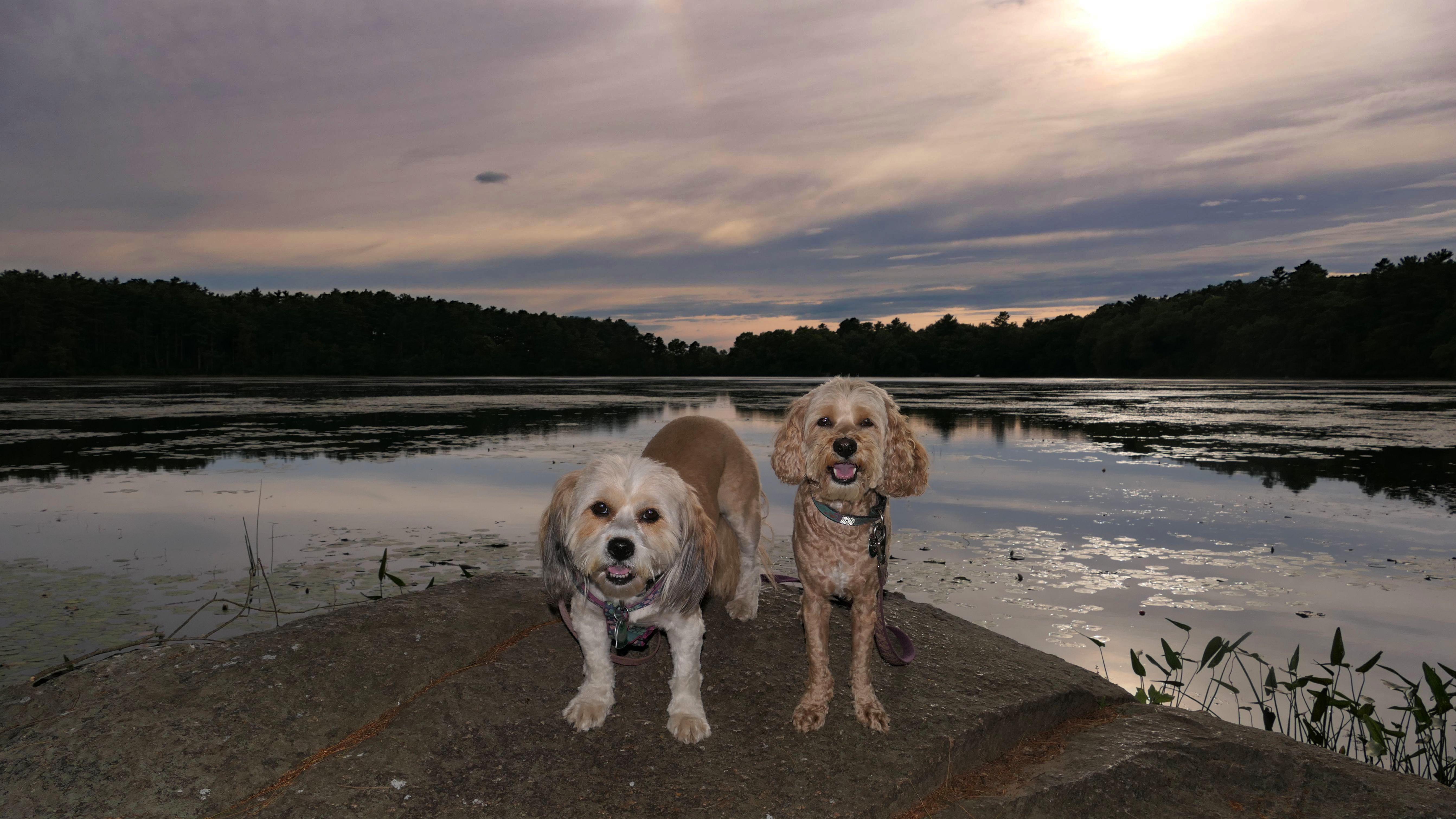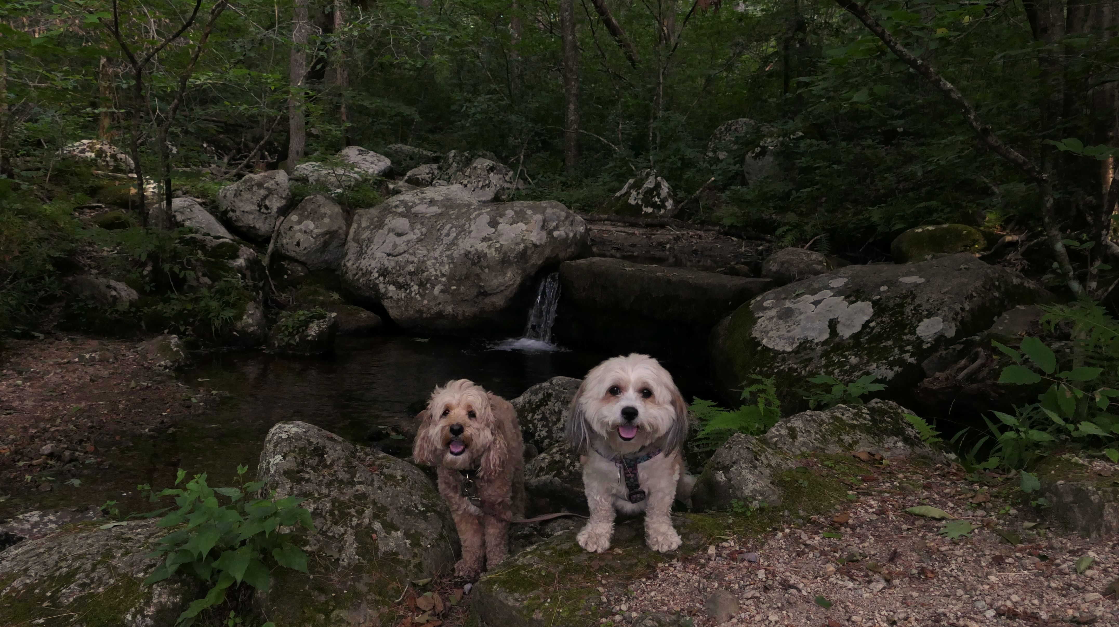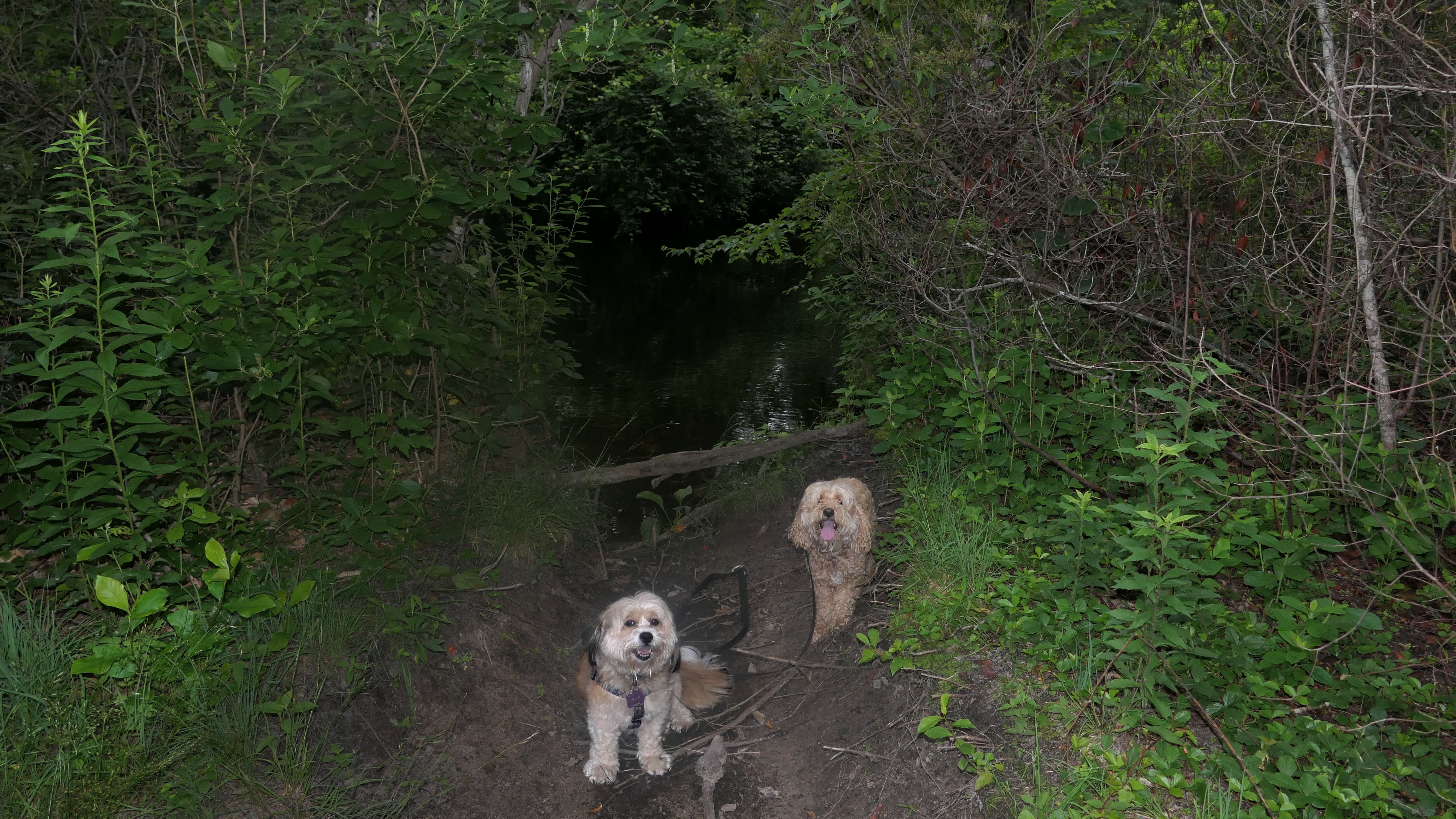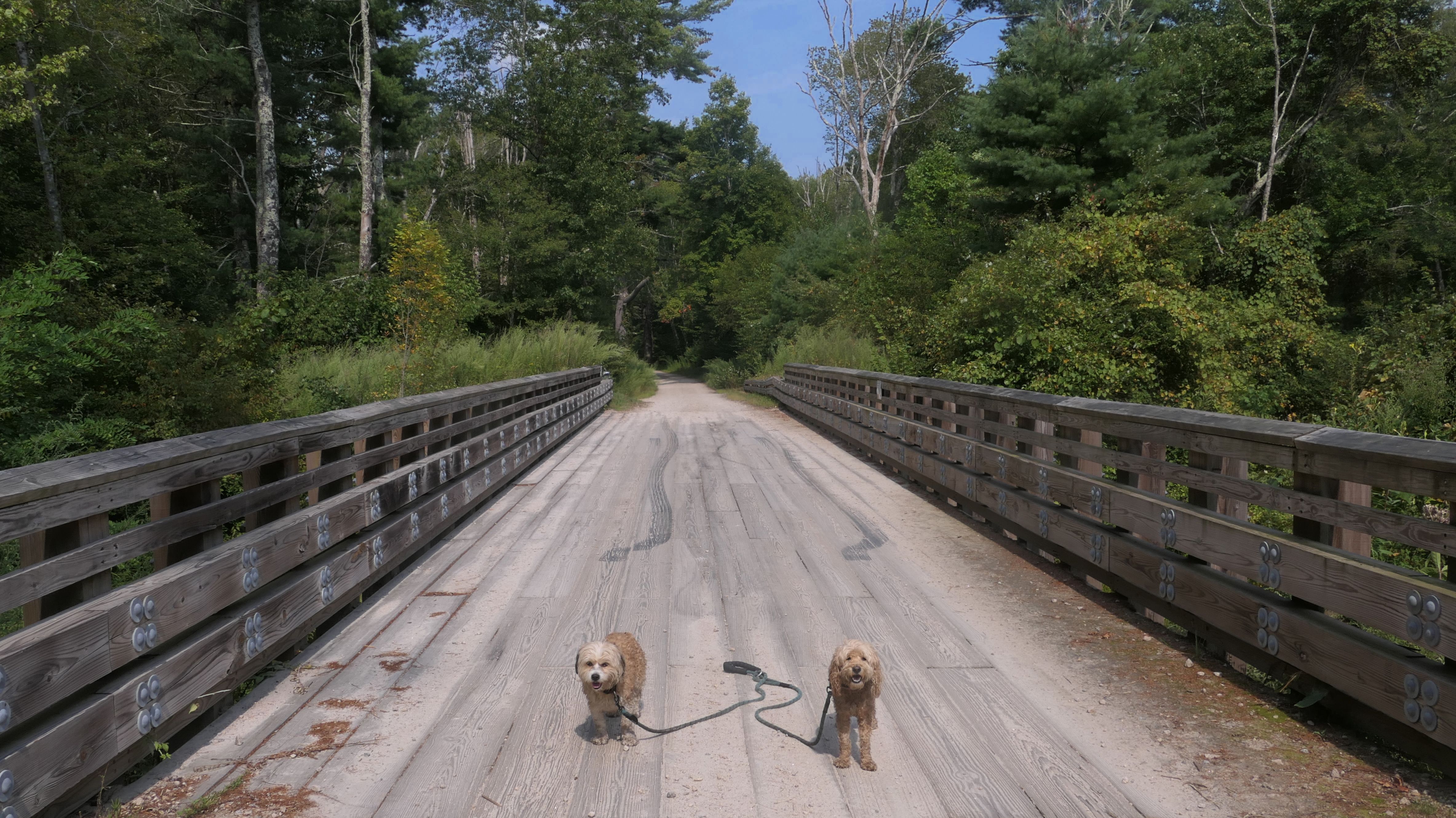 On our first visit here, I think I just pulled over to let the dogs out to do their business. We didn't actually hike around the pond, but did take pictures in front of the sign. Over 50 months later, we returned and hiked the nearly two mile loop around the pond. The trail is actually quite nice, and is very well maintained. There are a bunch of spots that provide access to the pond, as well as some ruins of the old mill. The trail actually dips into Richmond. There are a few other pictures on that page. After we were done, I crossed the street and took the same picture in front of the sign. This time the dogs were looking, but the giant rock in front of the sign wasn't there two years ago.
