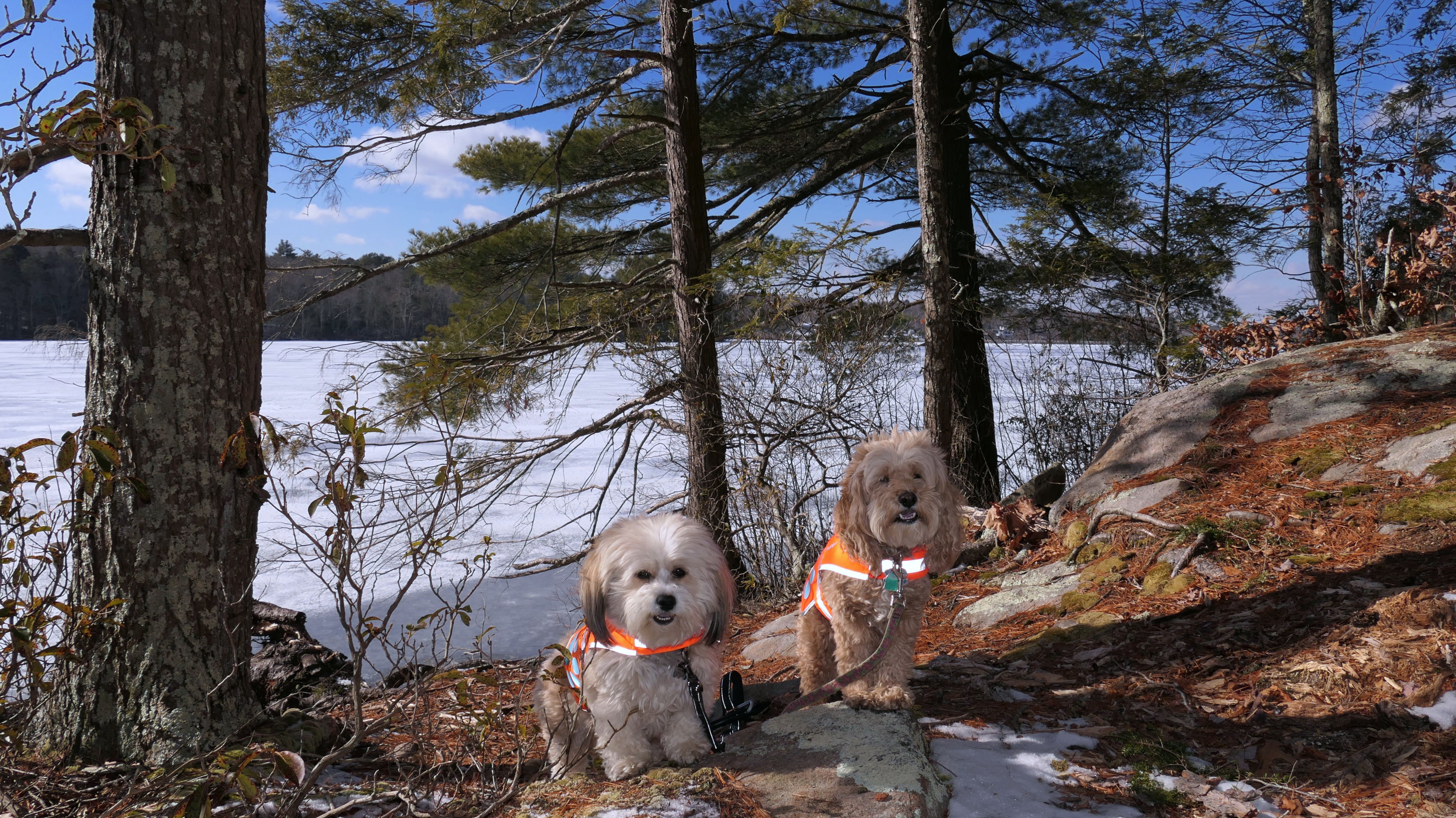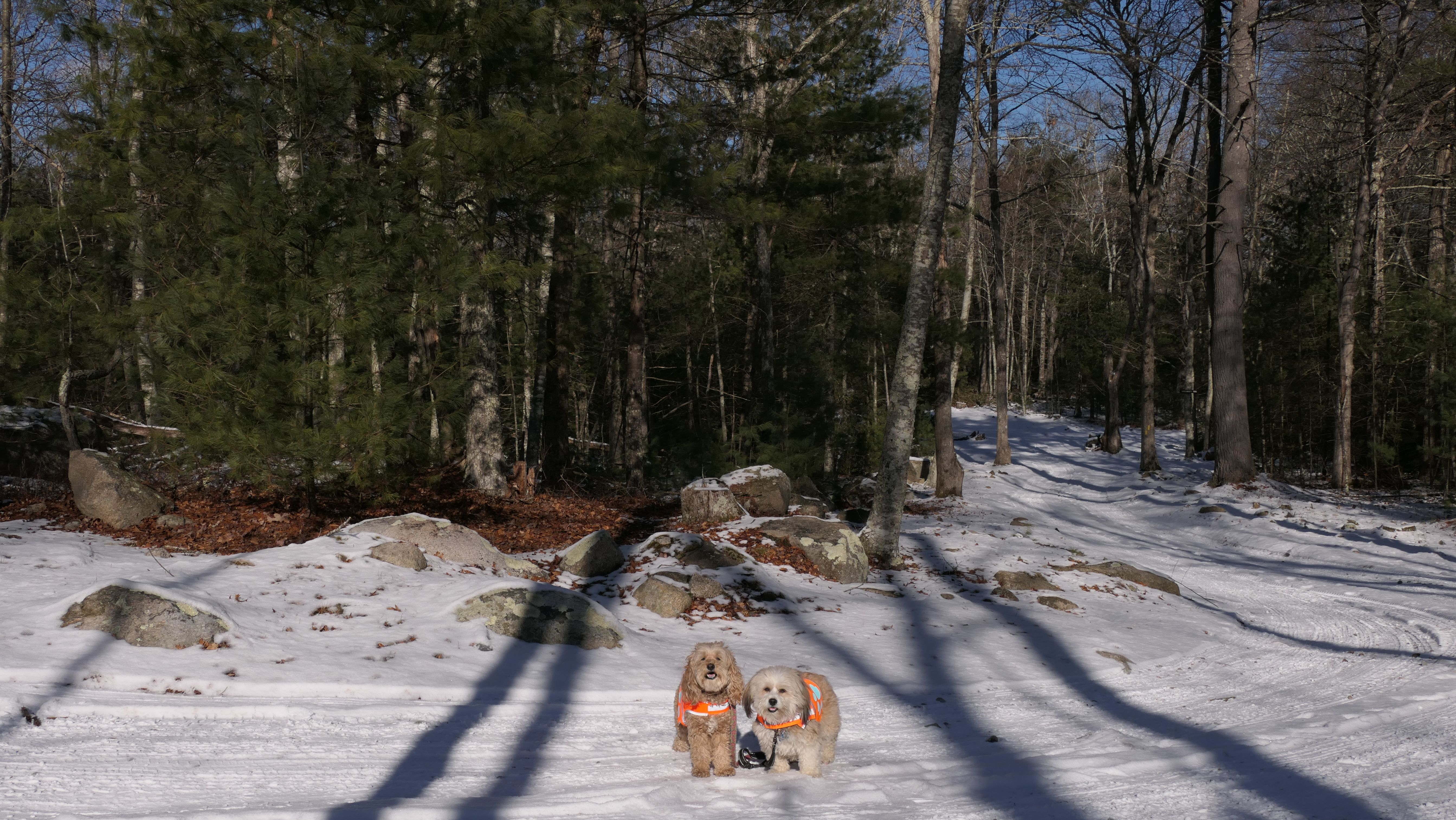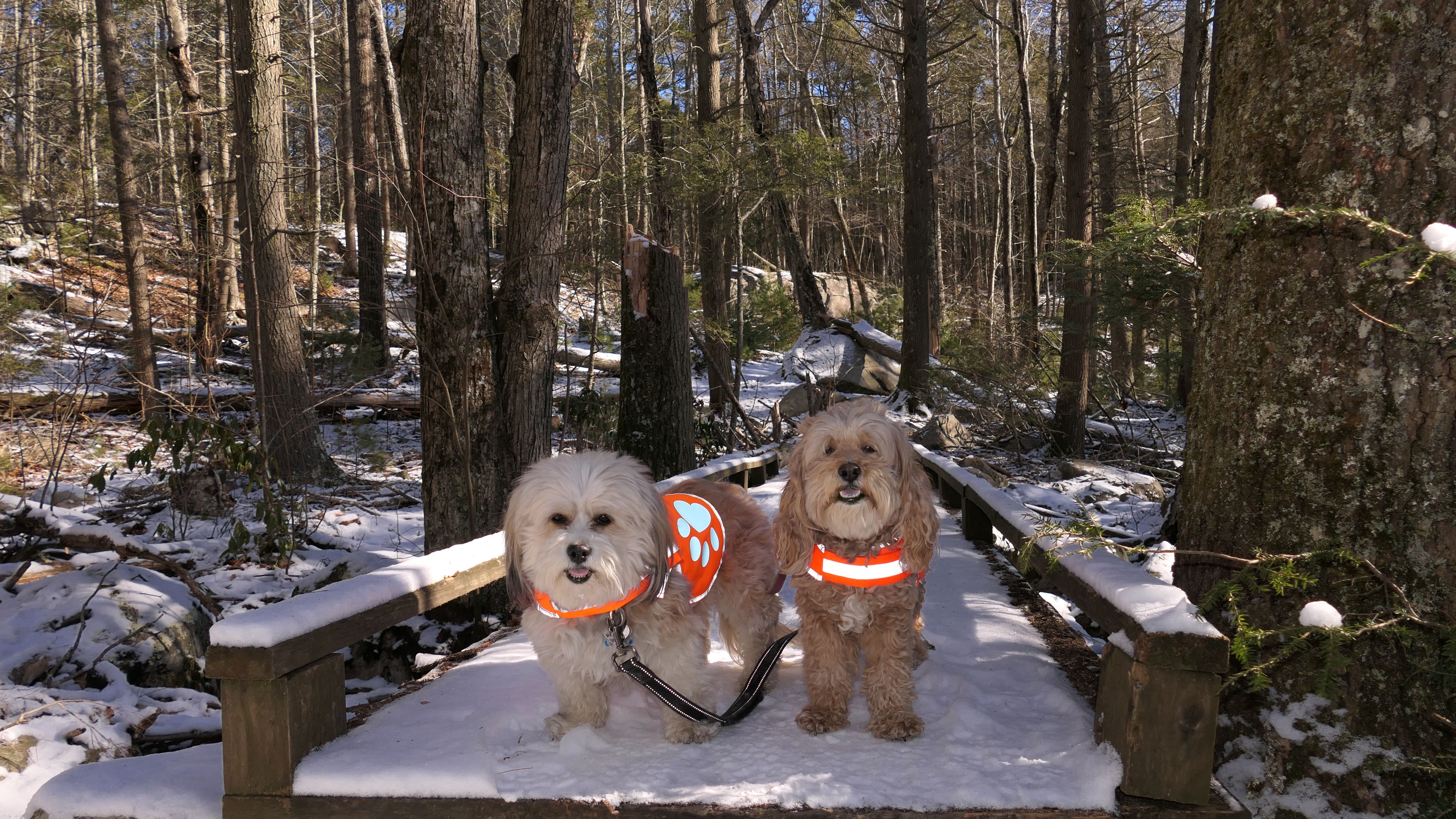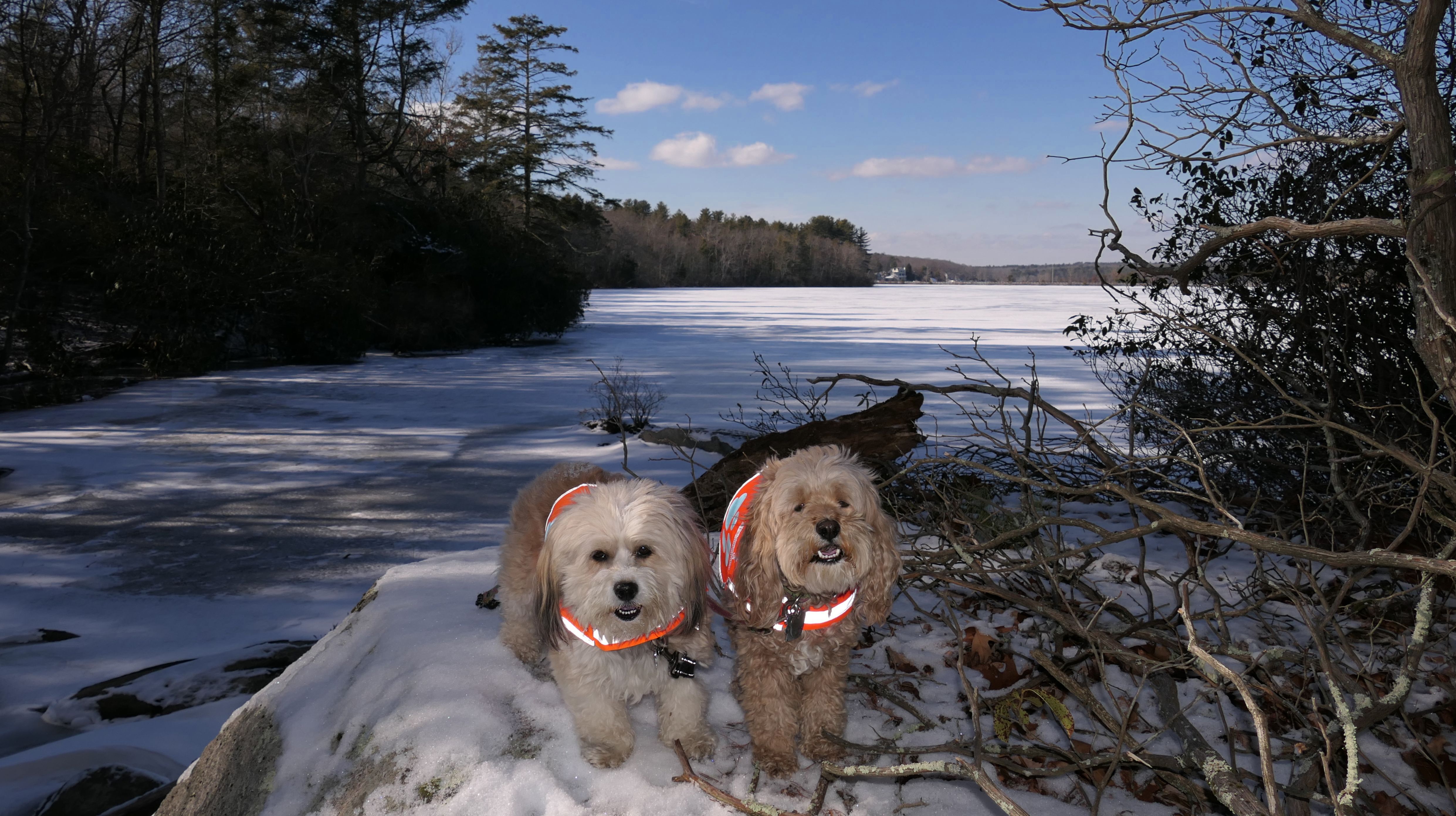 I think we've probably gone on more "snow hikes" this week than we did in the past two winters combined! This is another great winter adventure. I've been bored with hikes through the woods lately, but a pine forest with a coating of snow is about as good as it gets in the winter! We must have driven by this place about 100 times. It's on one of our major routes to Rhode Island, but we never hiked this spot before. Now that we have our orange vests, we were ready to give this trail a go! We hiked what the All-Trails app called the "Beach Pond South Loop". It's mostly the yellow blazed Tippecansett trail, but then the "Deep Pond Trail" and "Hemlock Ledges Trail" are used to complete a loop. The terrain was mostly easy, but challenging in parts. There are rocky areas and some inclines, but nothing we haven't tackled before. The whole hike was exactly three miles, and a lot of fun!