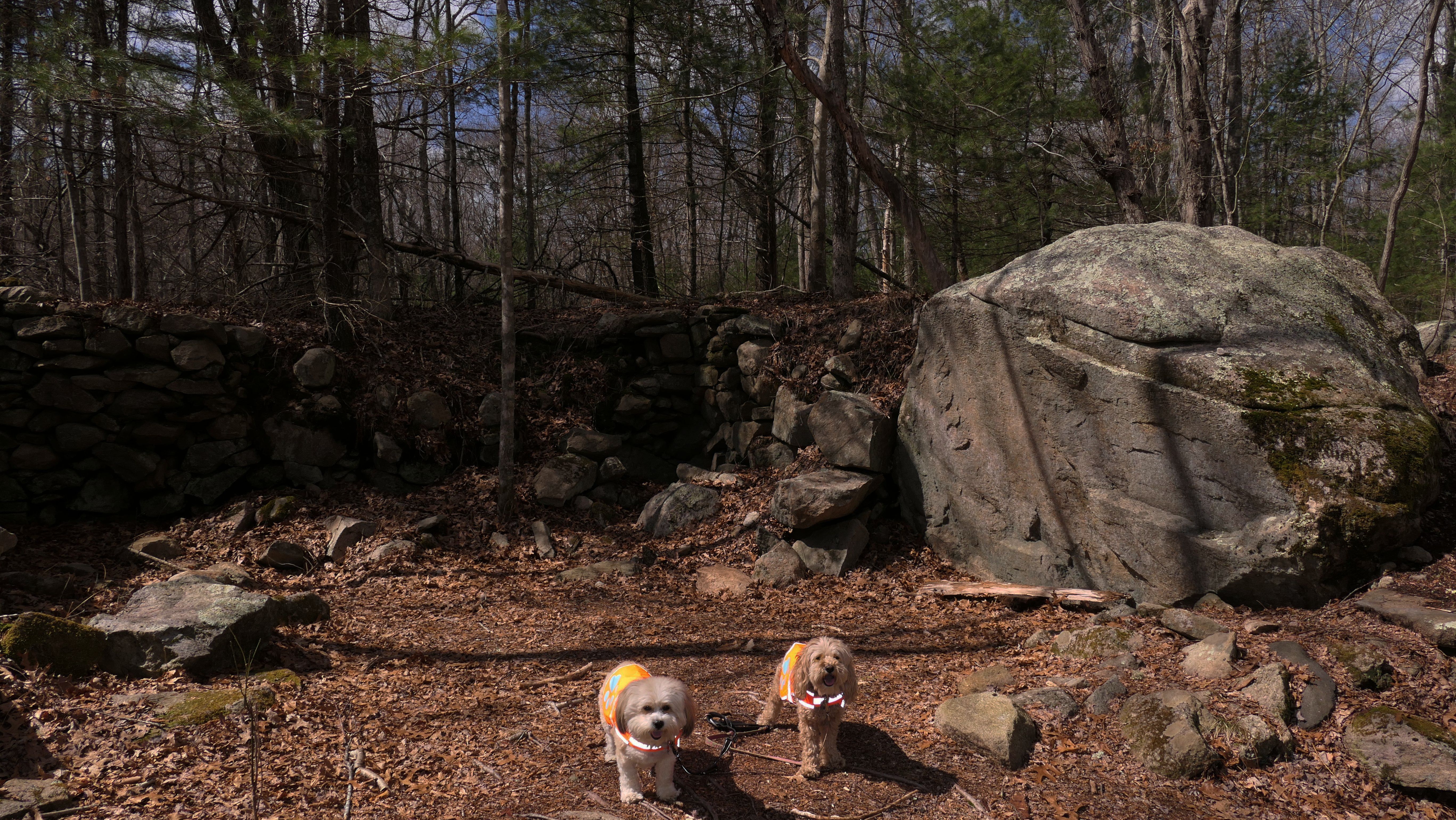 We hiked the 2.5 mile yellow blazed trail here. The trail leads down a hill to a loop through the woods. This is a Nature Conservancy trail, and is very well maintained, and surprisingly dry considering it rained the day before. All-Trails had this marked as "moderate", but I felt it was a pretty easy hike. One thing to watch is the rocks, especially while going down (or up on the way back). There's no climbing or anything involved, but you have to watch your footing so you don't trip over them. The preserve features many pine trees, which add some color during the seasons without leaves on the other types of trees. Also featured are plenty of stone walls, and a burial site for Sarah, who died in 1851 (I couldn't make out the last name on the well-worn tombstone). The orange vests probably weren't necessary. There is a sign at the start of the trail that indicated they were required during hunting season, but another sign further in clarified that they are required during deer hunting season, which ended on Jan 31st. We've been to so many of these types of places over the past five years, and they are all pretty similar. This was a good hike and well worth doing if you like nice hikes in the woods, but there's nothing that really makes it stand out compared to other places like this.