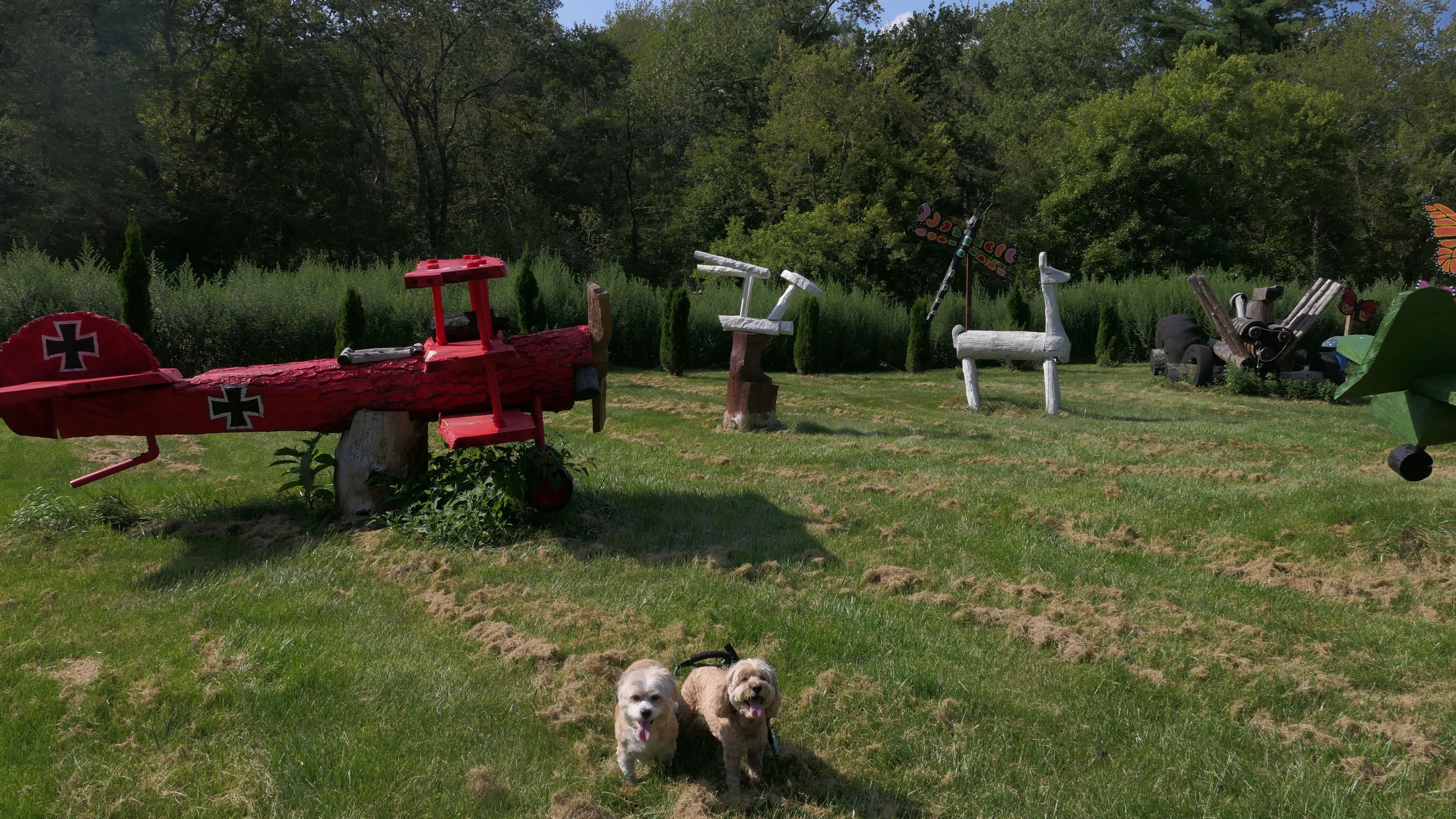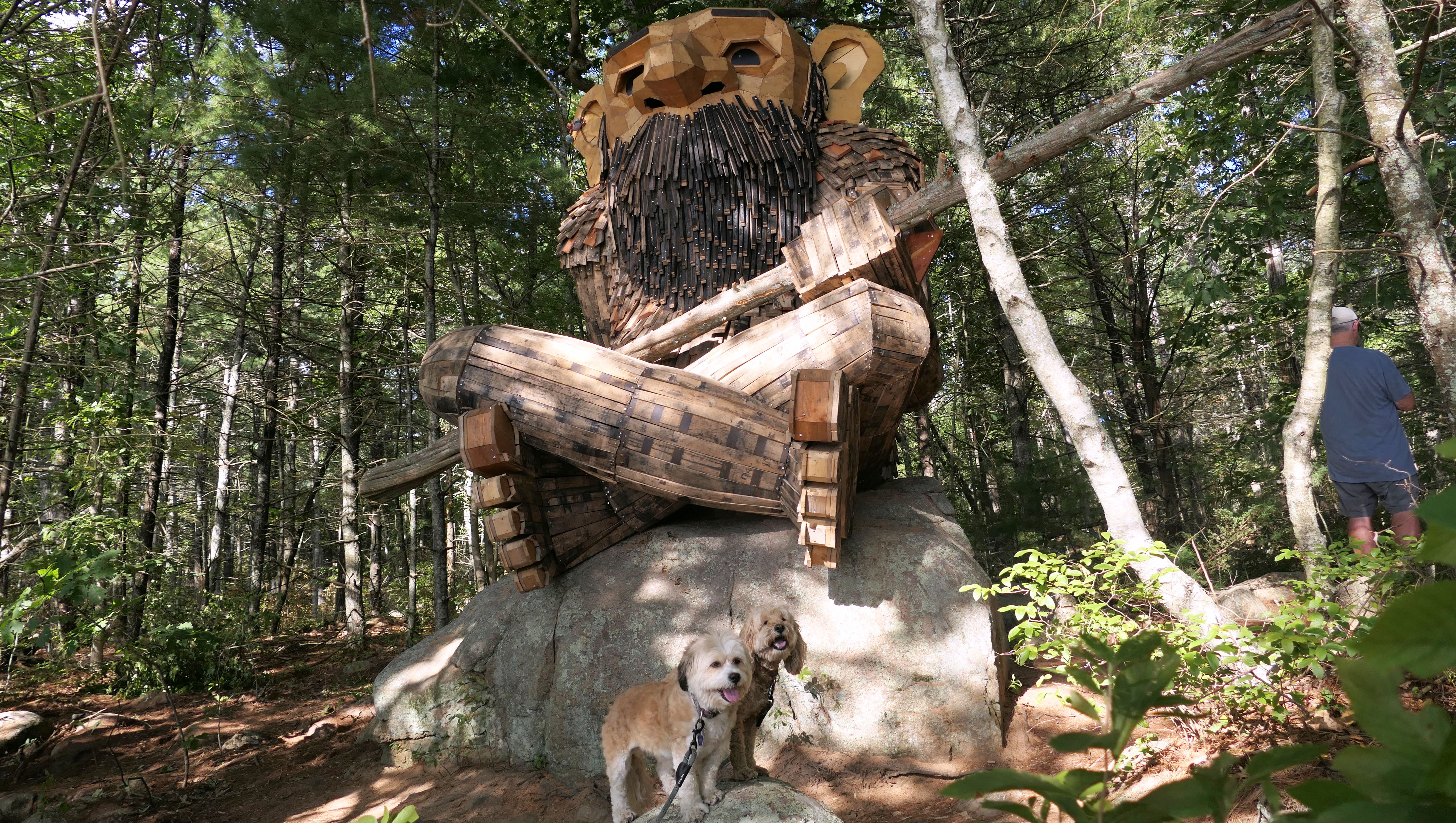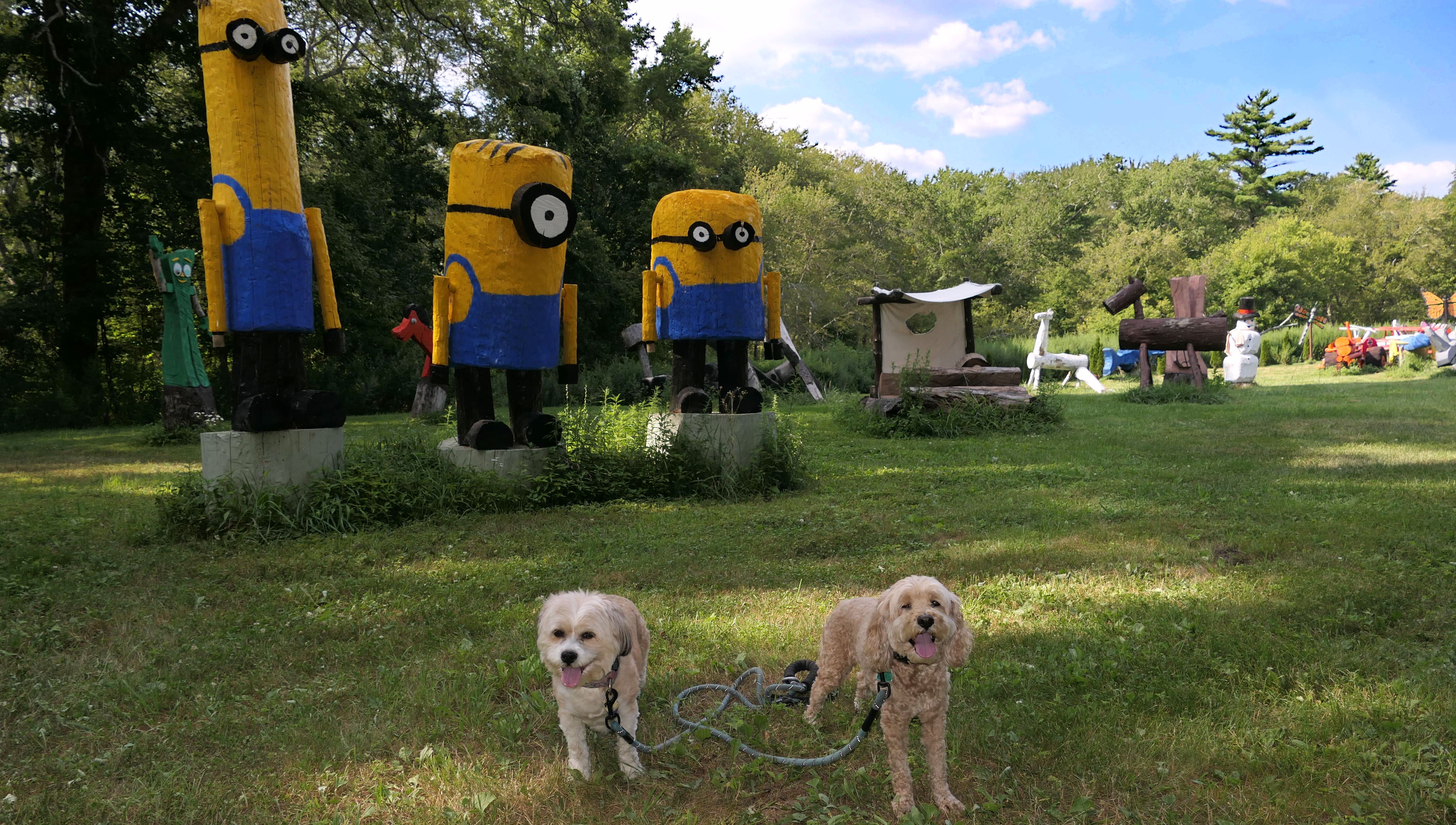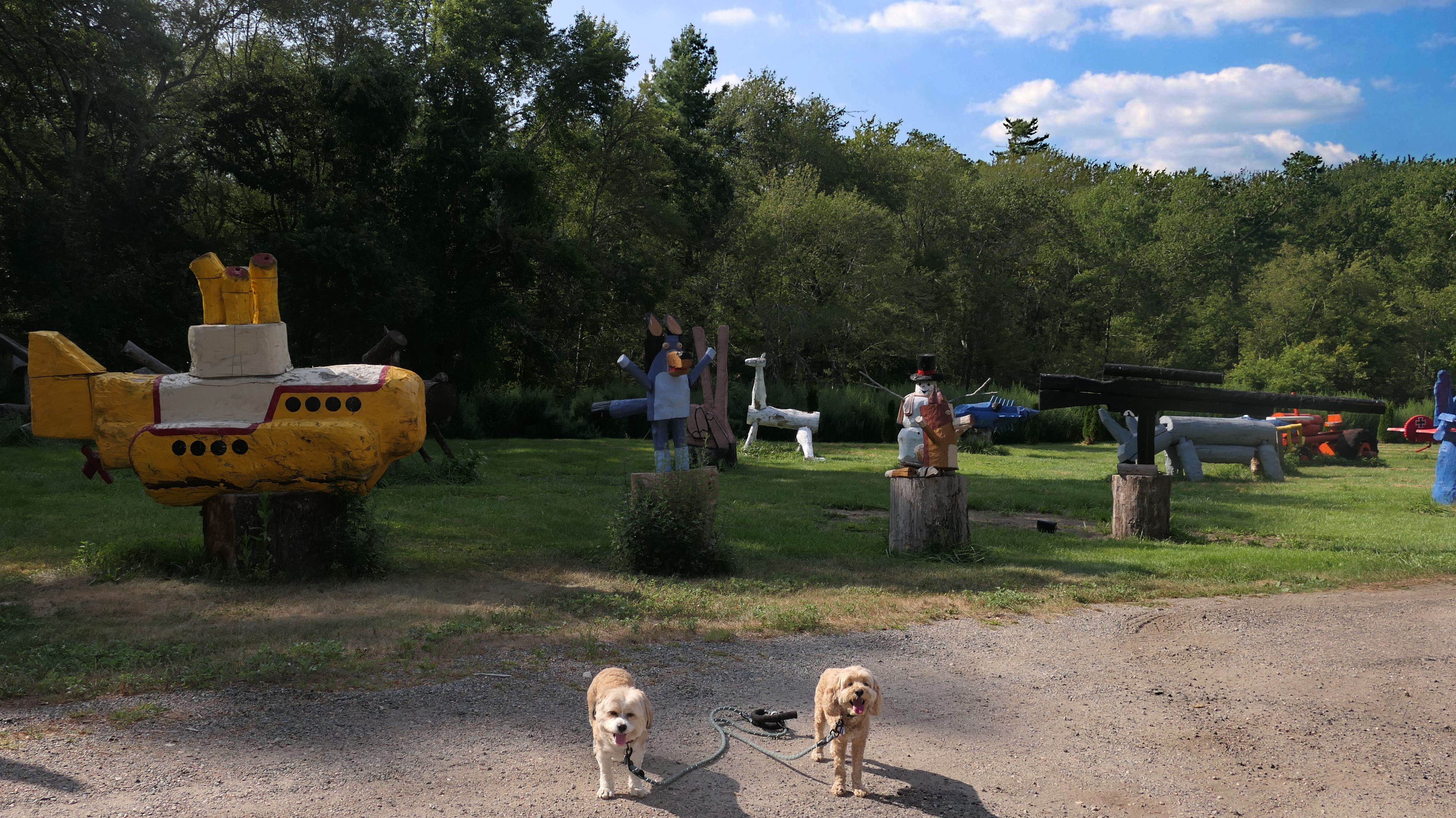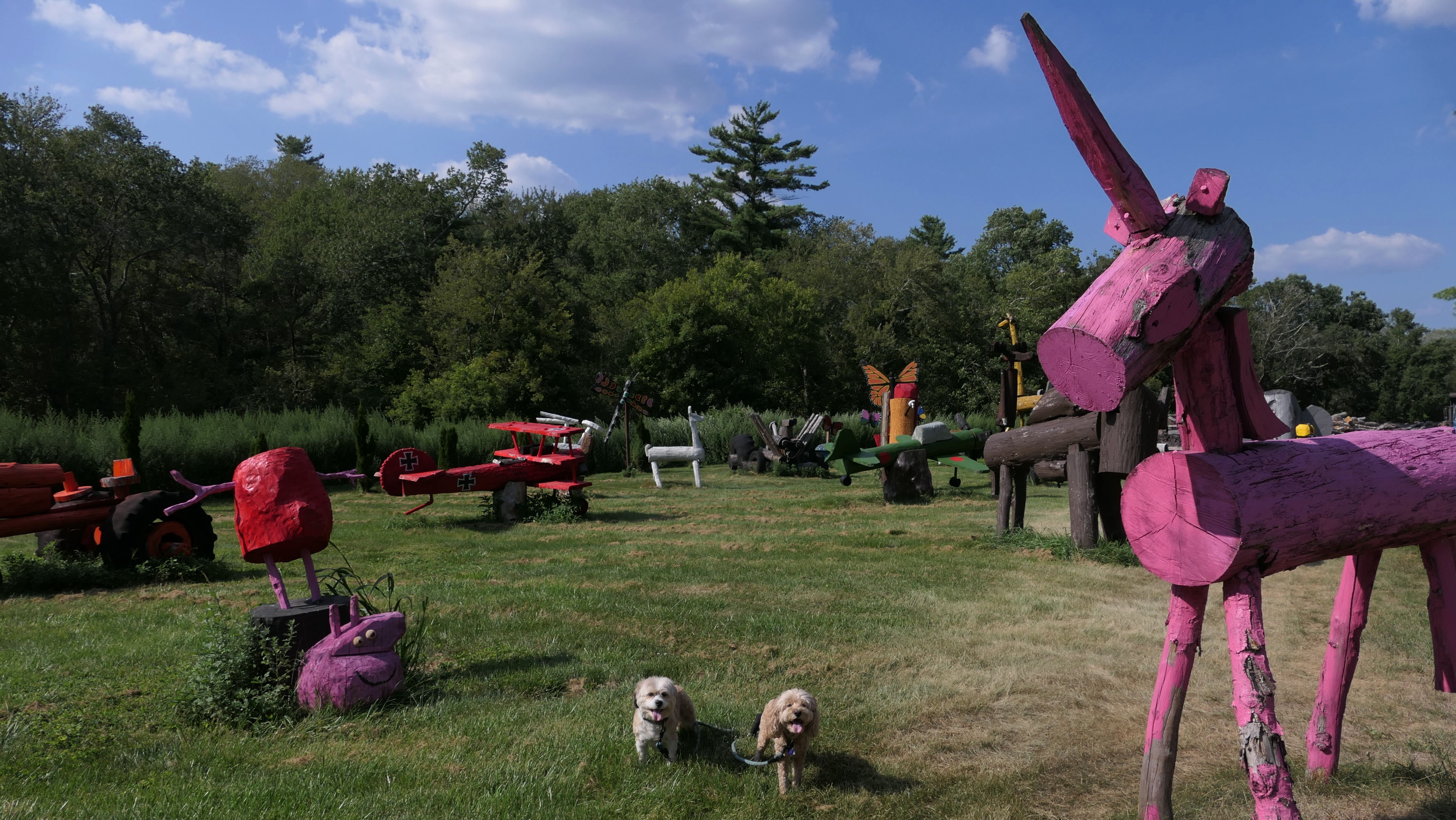 We've driven past this spot countless times on our way to adventures in Rhode Island. From the road, I'd catch glimpses of intriguing wood carvings, and on one recent trip, I even spotted a man walking his dog there out of the corner of my eye. That was enough to convince me—it was time to stop and check it out for ourselves. A quick internet search turned up plenty of reviews for the company's firewood business, but nothing about the carvings. So, we parked down the road and walked over. The gate was open, and with no “No Trespassing” signs in sight, I figured the public was welcome. After all, why put such great work on display if you don't want people to enjoy it? The carvings, all made from wood, mostly feature pop culture figures, and I thought they were fantastic. The display area itself is small, so there's not much walking to do here—but it's right in the middle of the Arcadia Management Area, so there's plenty of space nearby for more exploring with the dogs.