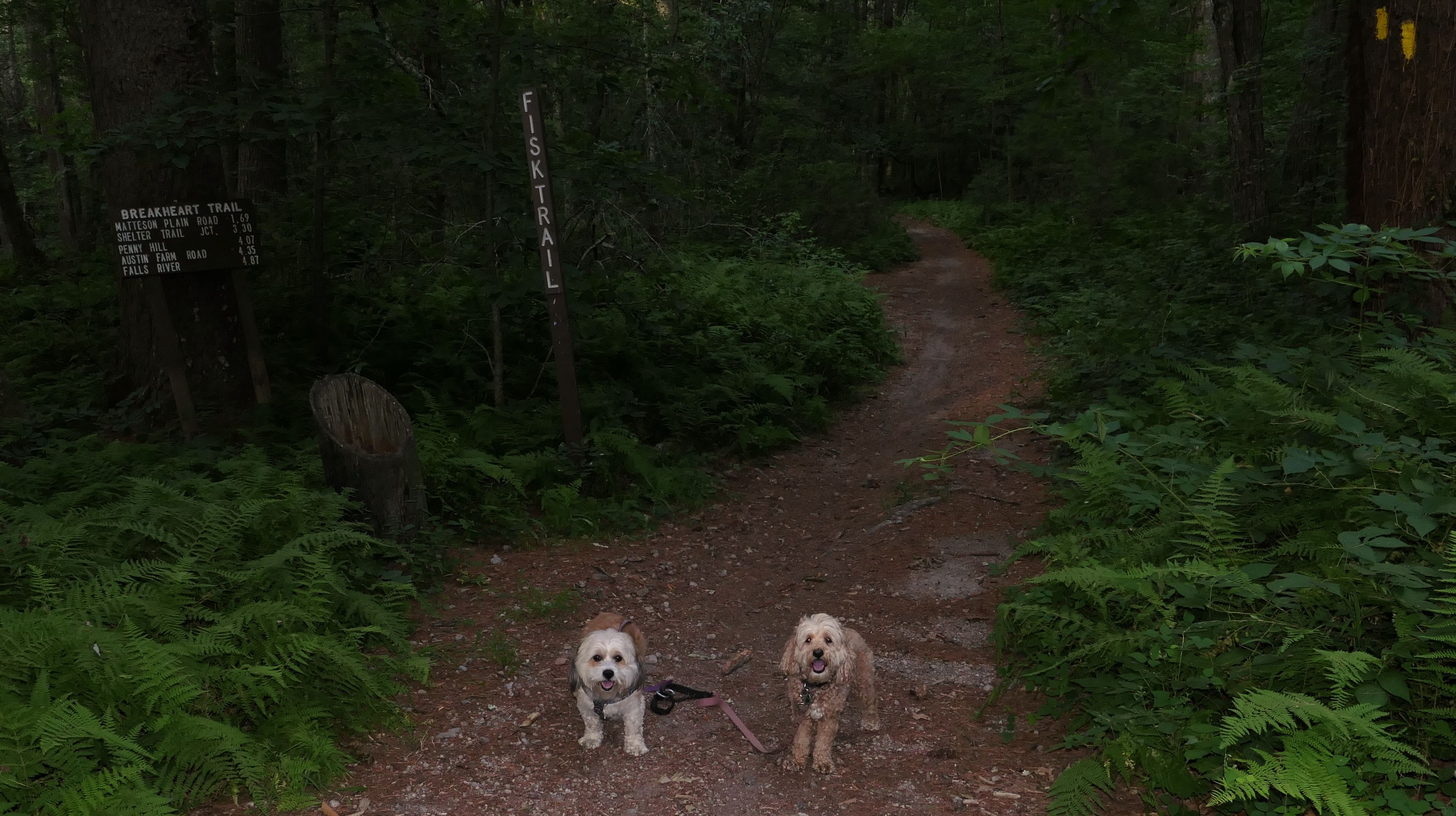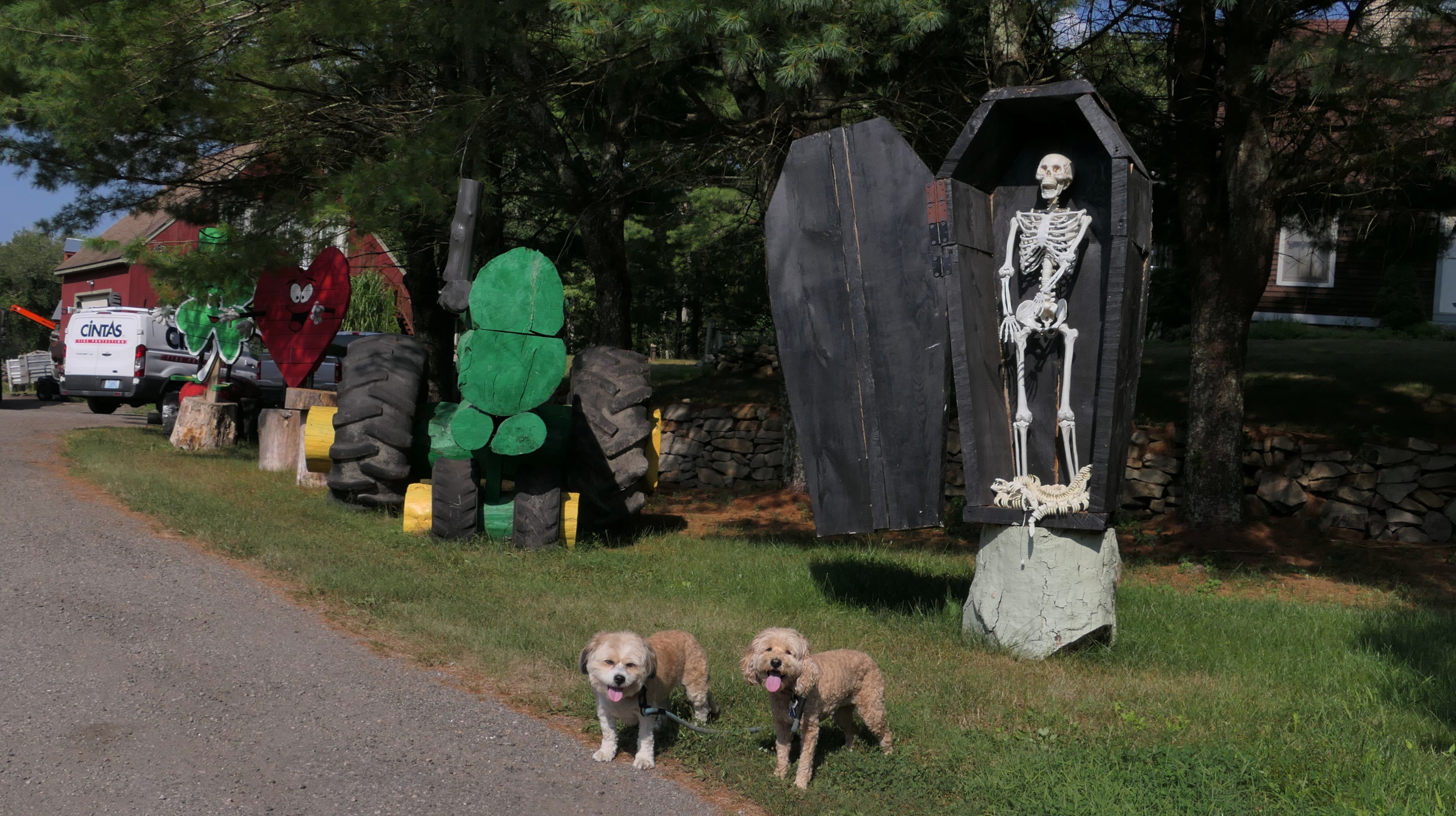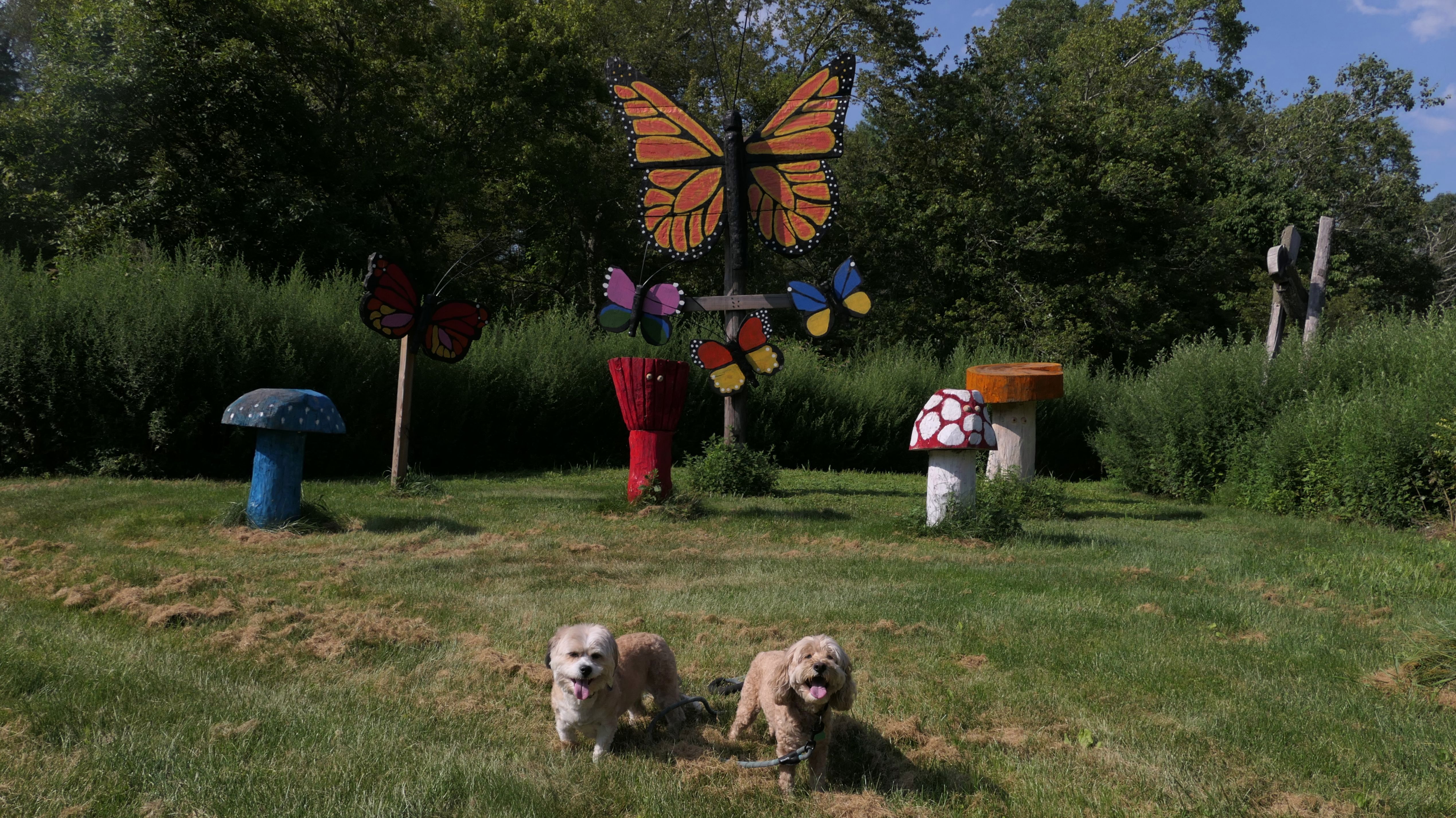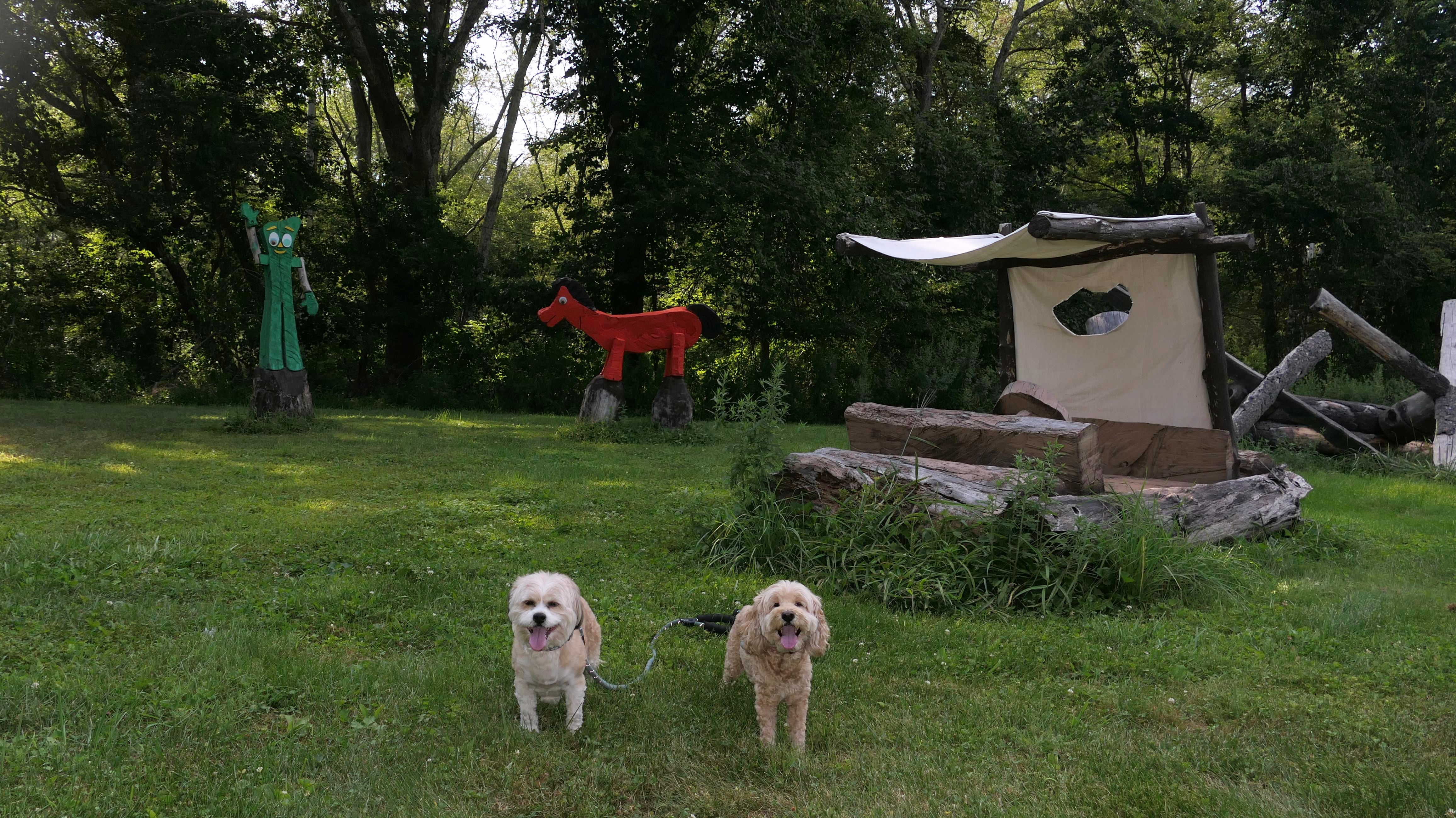 We've driven past this spot countless times on our way to adventures in Rhode Island. From the road, I'd catch glimpses of intriguing wood carvings, and on one recent trip, I even spotted a man walking his dog there out of the corner of my eye. That was enough to convince me—it was time to stop and check it out for ourselves. A quick internet search turned up plenty of reviews for the company's firewood business, but nothing about the carvings. So, we parked down the road and walked over. The gate was open, and with no “No Trespassing” signs in sight, I figured the public was welcome. After all, why put such great work on display if you don't want people to enjoy it? The carvings, all made from wood, mostly feature pop culture figures, and I thought they were fantastic. The display area itself is small, so there's not much walking to do here—but it's right in the middle of the Arcadia Management Area, so there's plenty of space nearby for more exploring with the dogs.