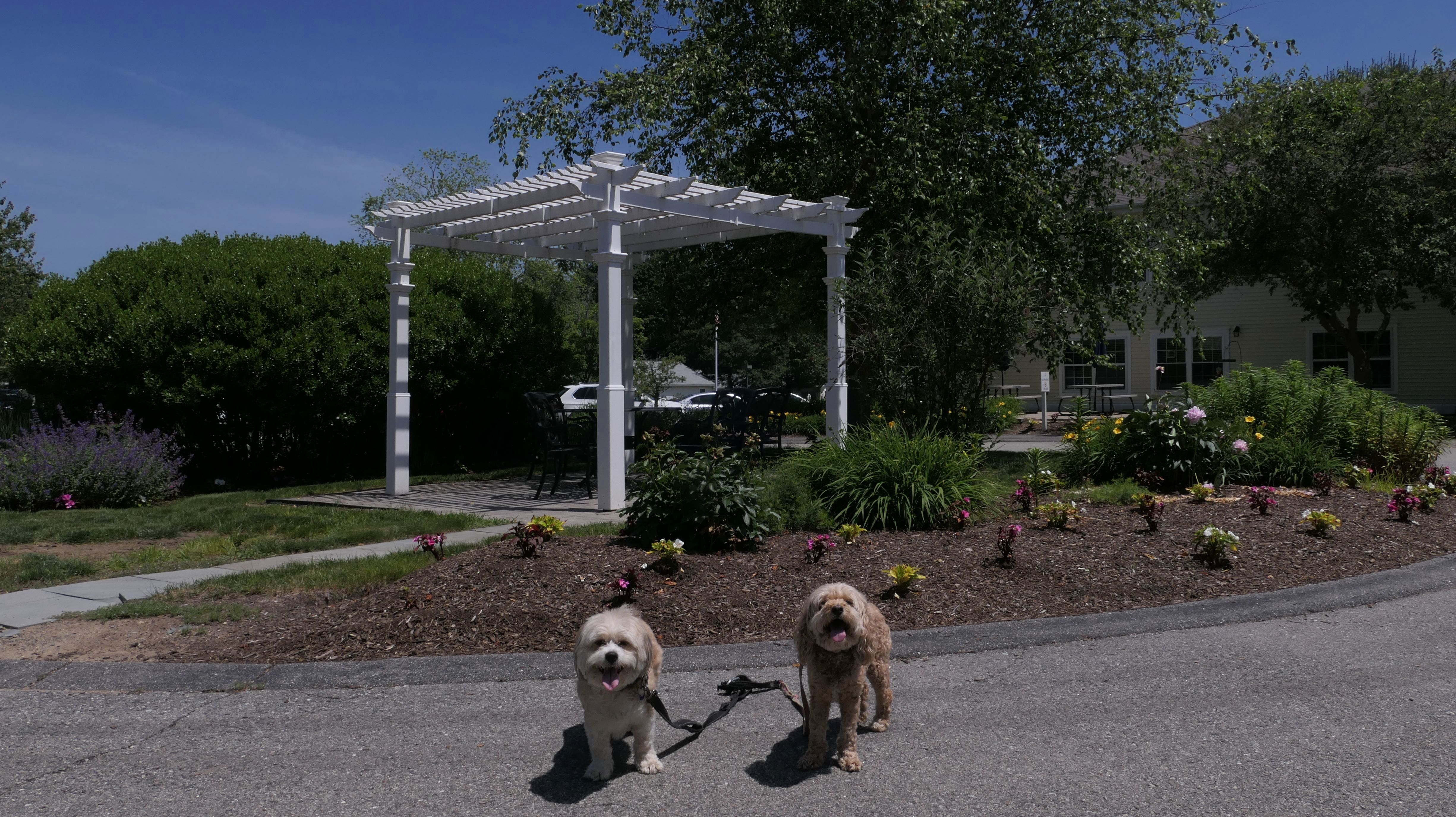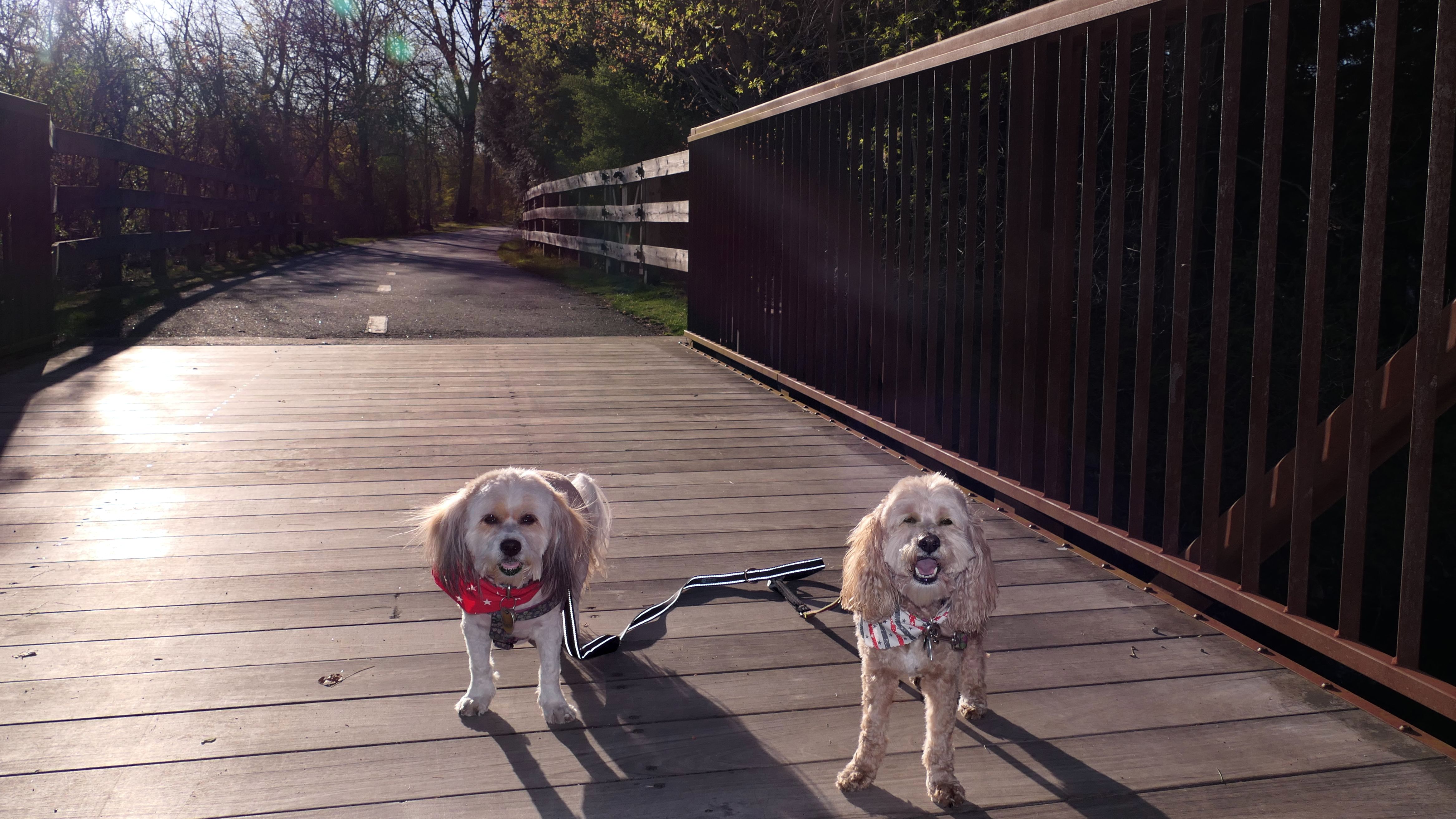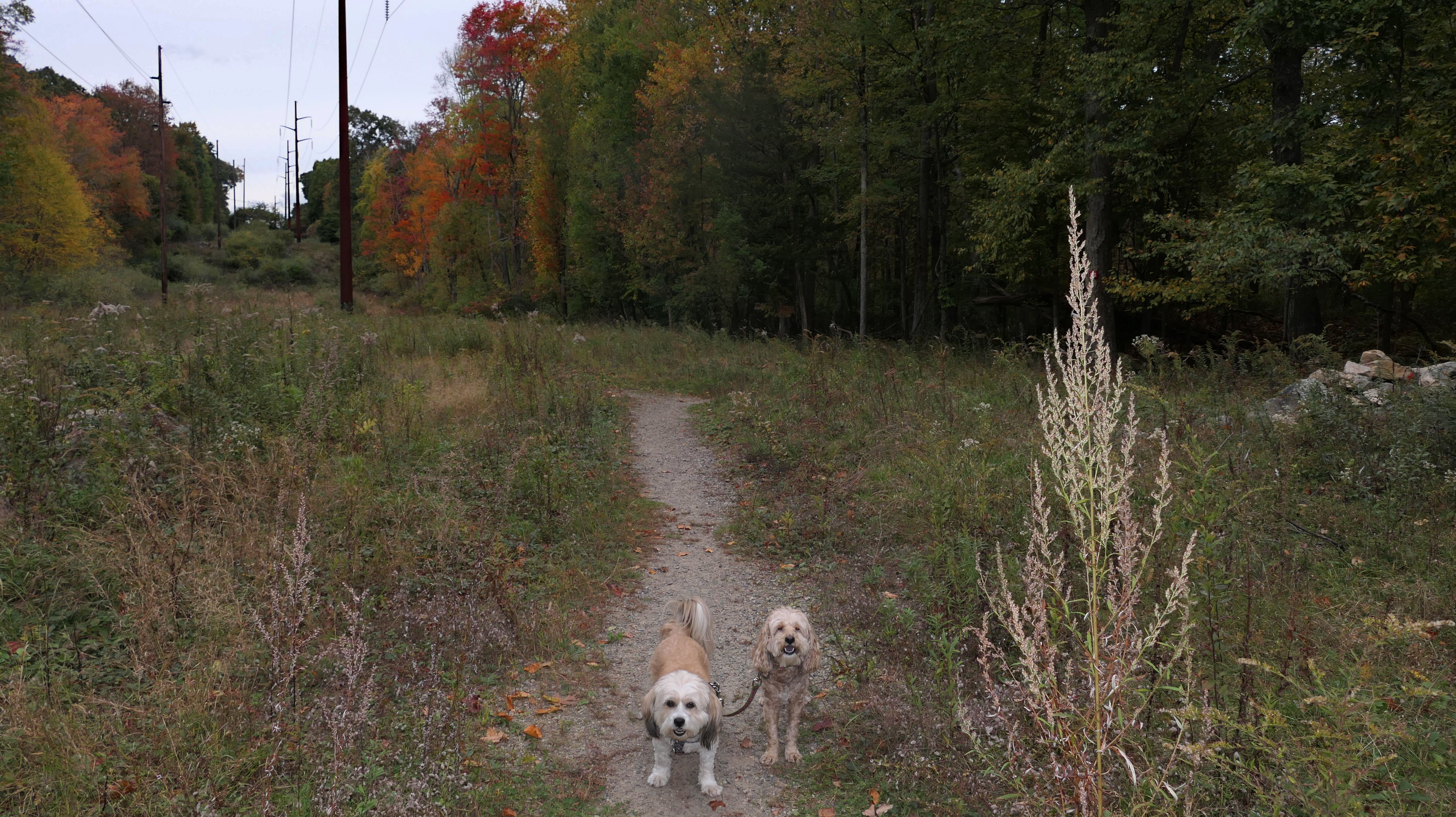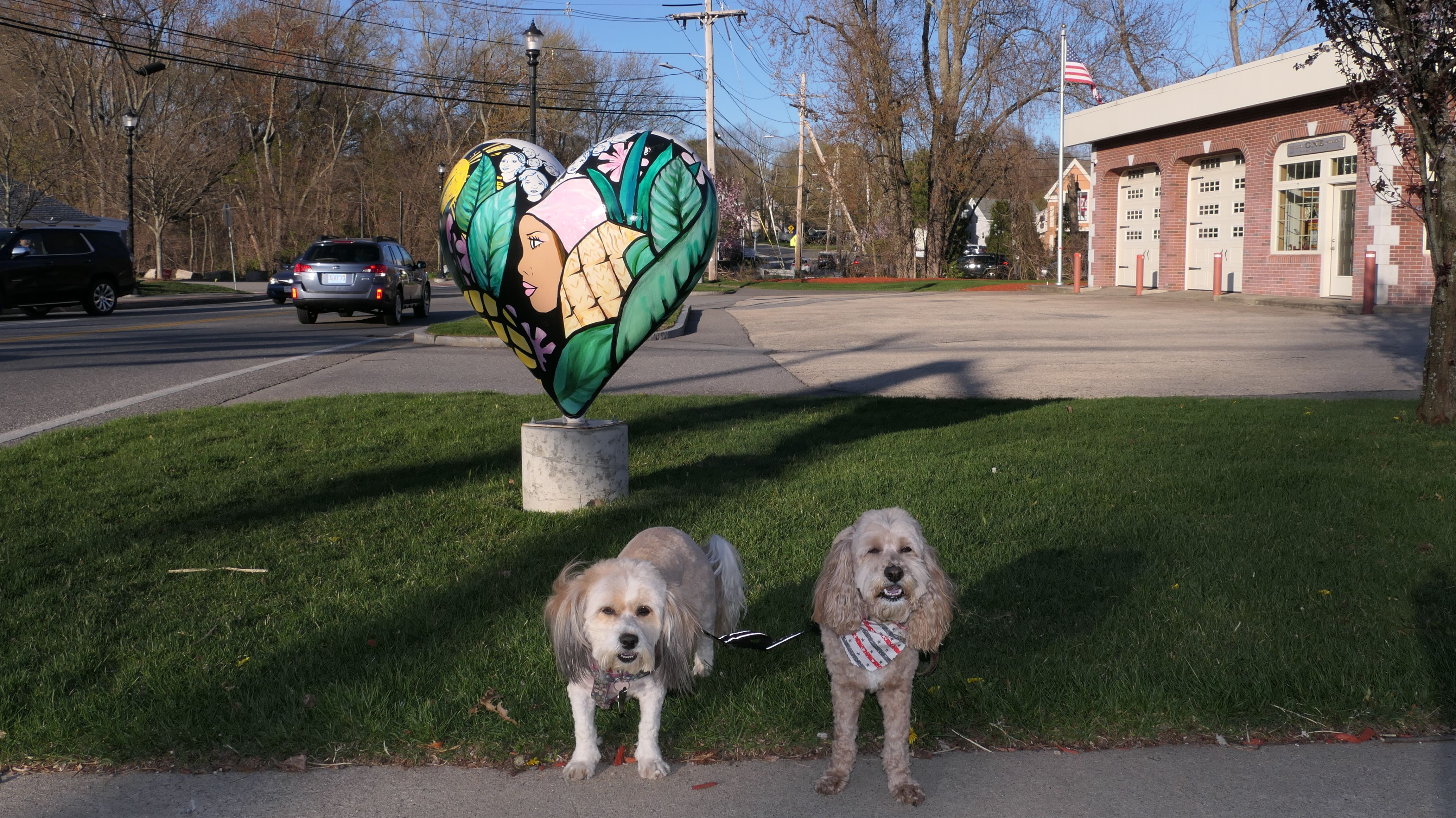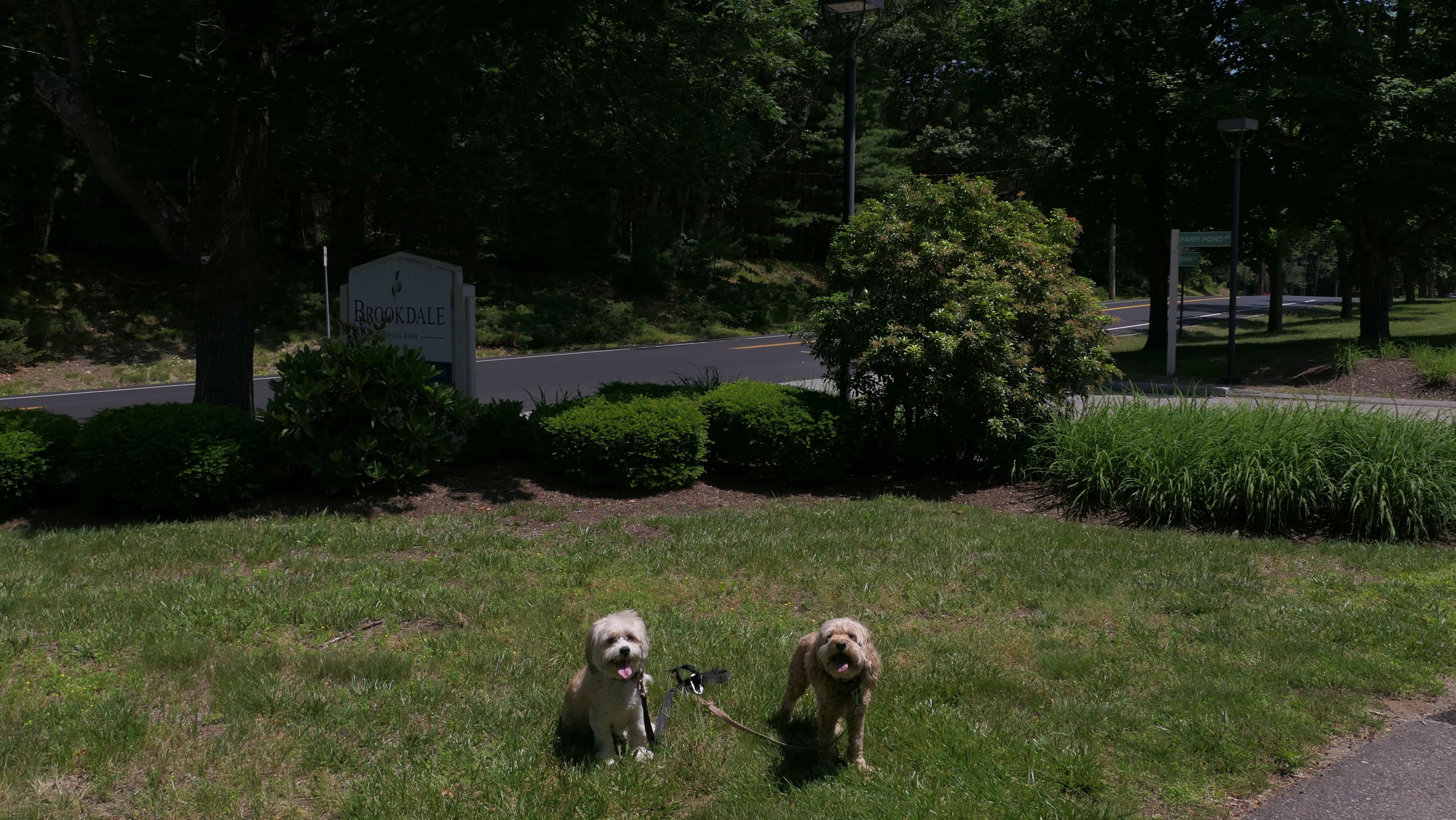 We started our five mile walk around Framingham parks here. We parked near the playground, and after walking a bit down a paved path, we quickly crossed the street over to Cushing Memorial Park and the Sudbury Aqueduct Trail, but returned here to finish our loop. The uniqueness of this park is the trail across the land bridge that goes right through the middle of the pond. There's a building of some sort at the end of the trail, but it's fenced off. Swans and ducks populate the pond, and there are some great views. Mandy and Lexi got to cool off a bit as there was a couple of spots where the pond was accessible and not too mucky. This was a pretty place to take the dogs for a walk.