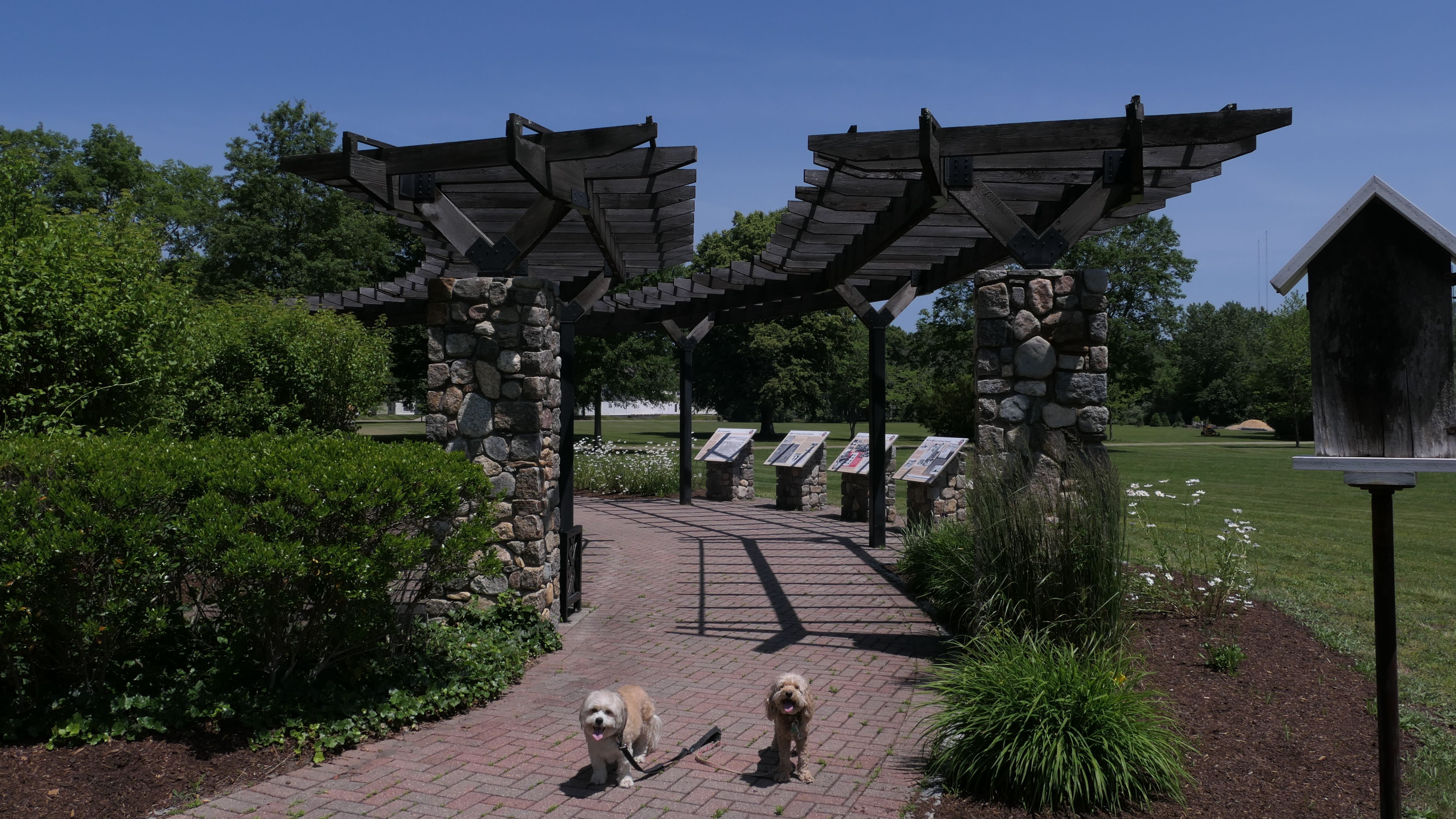 This is a town park, just across the street from Farm Pond Park. There's a very wide, paved walking trail that loops a mostly green, open area. There are plenty of benches, playgrounds, picnic areas, monuments and even a few gardens. The north end of the walking path also loops around a senior living facility. The park is well maintained, and gets plenty of traffic, even on a Monday afternoon. After completing the loop, we headed to the nearby Sudbury Aqueduct Trail to continue our adventure.