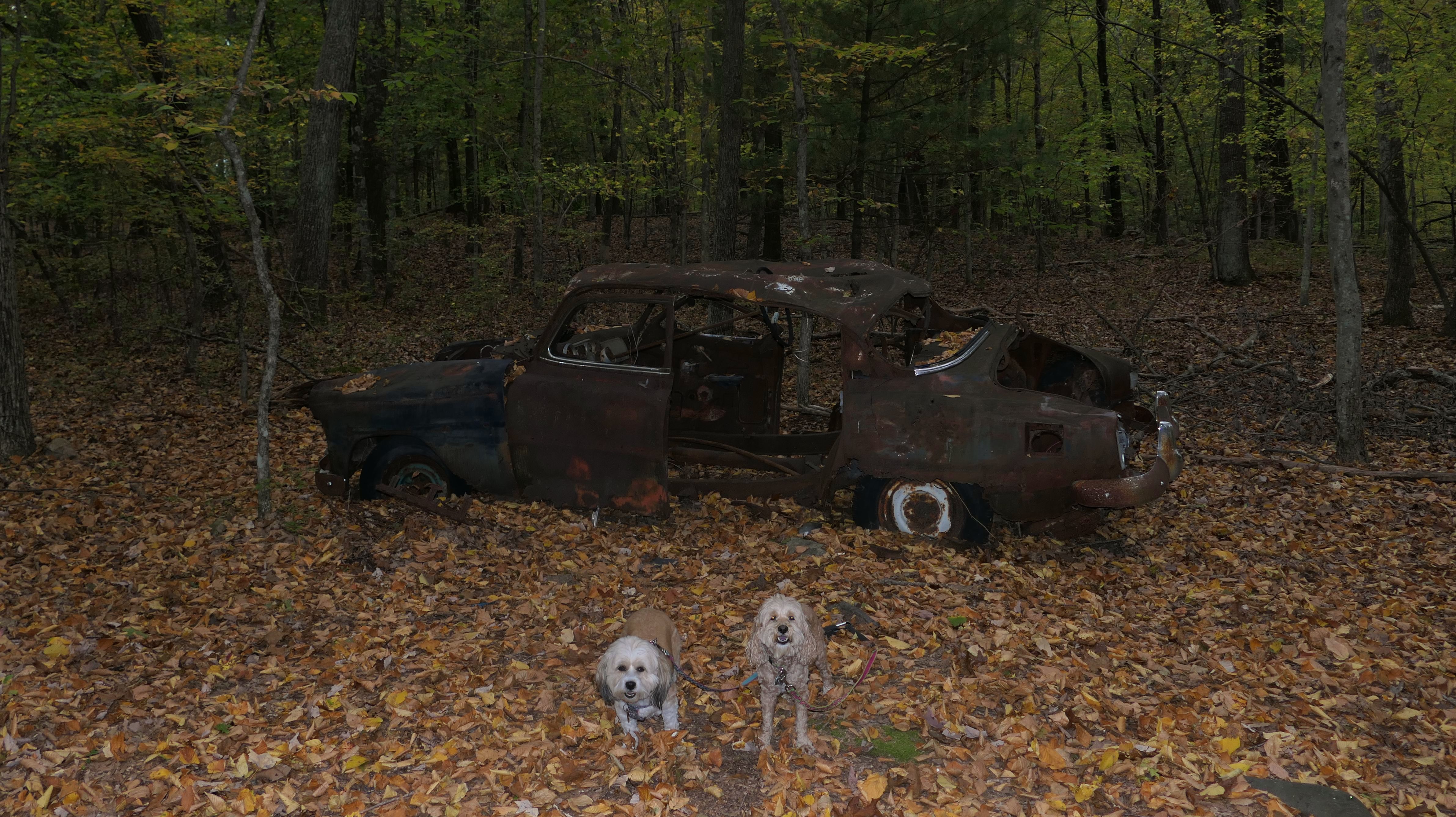 This is a nice series of trails that connect to Ashland Town Forest. About 1/4 of the loop was in Framingham, with the rest in Ashland (see that page for pictures from that section). The trails are generally well marked and maintained, and easy to follow, with helpful signs at each intersection that include a map of the property and tell you where you are. We started at the trail head on Salem End Road. We hiked portions of the red, yellow, and blue diamond blazed trails. The Framingham section featured an old junked car. There were a couple of steep hills, but they were short. Other than that, it was a fairly easy hike. Our hike was about a three miles total.