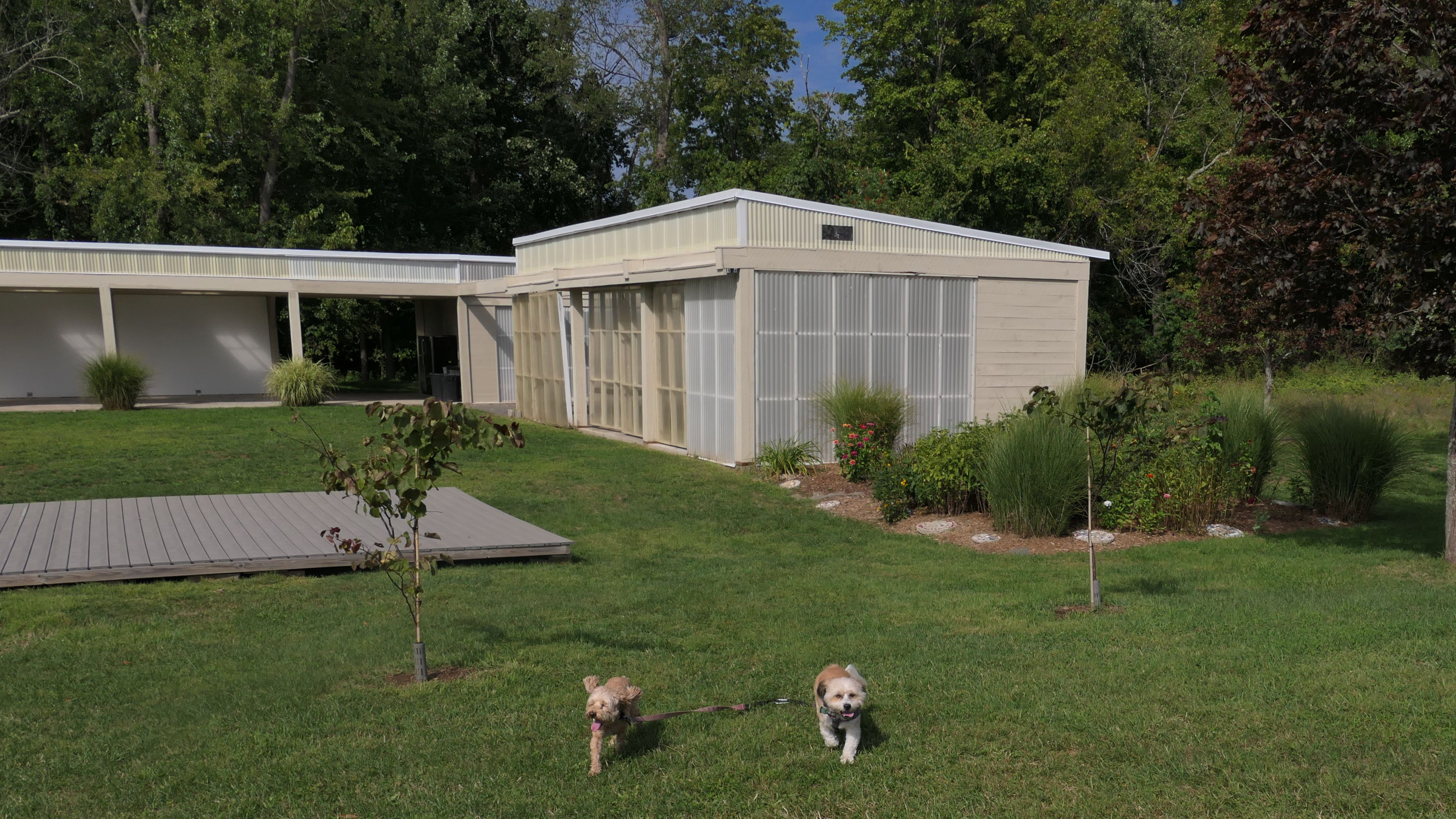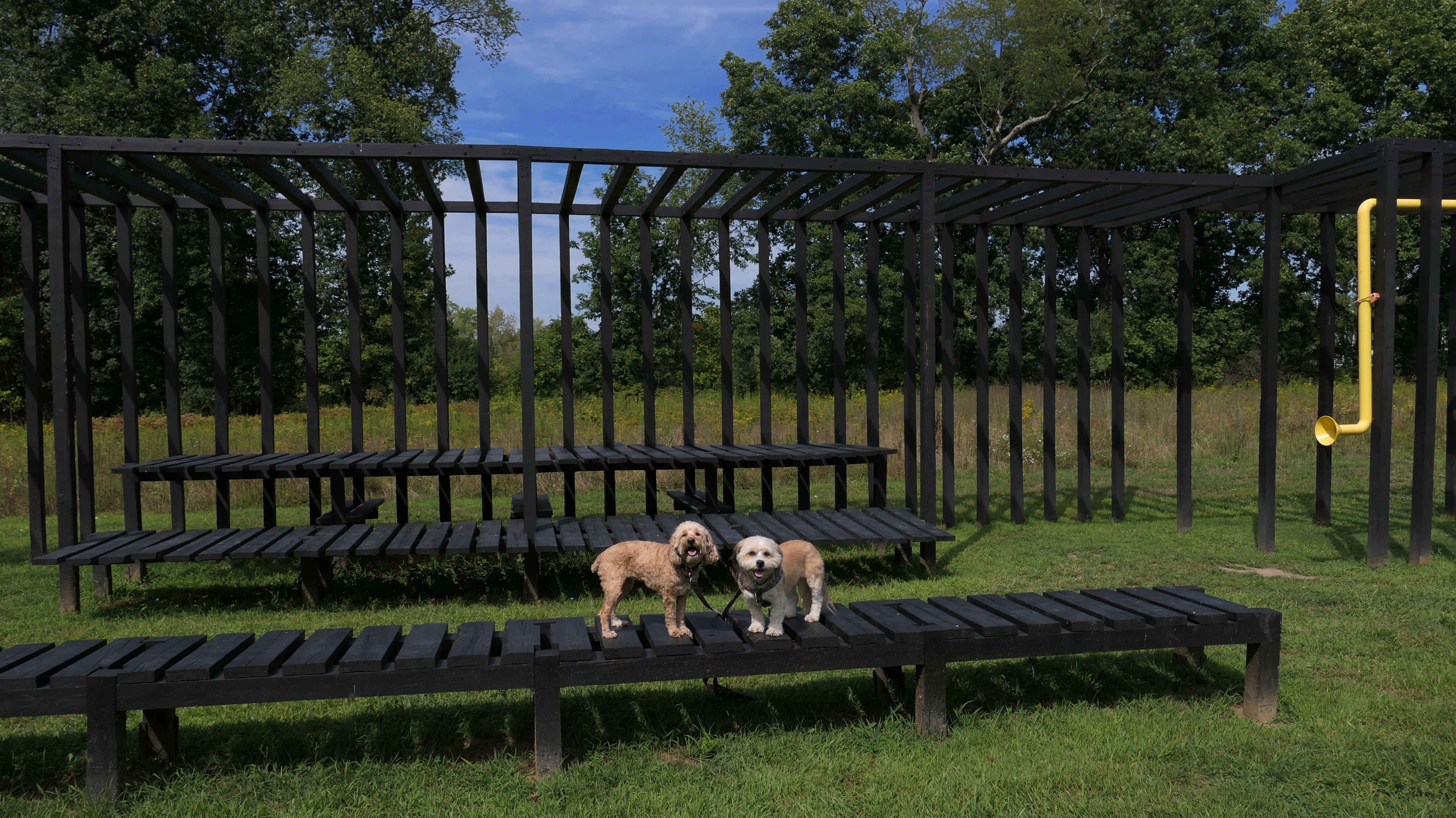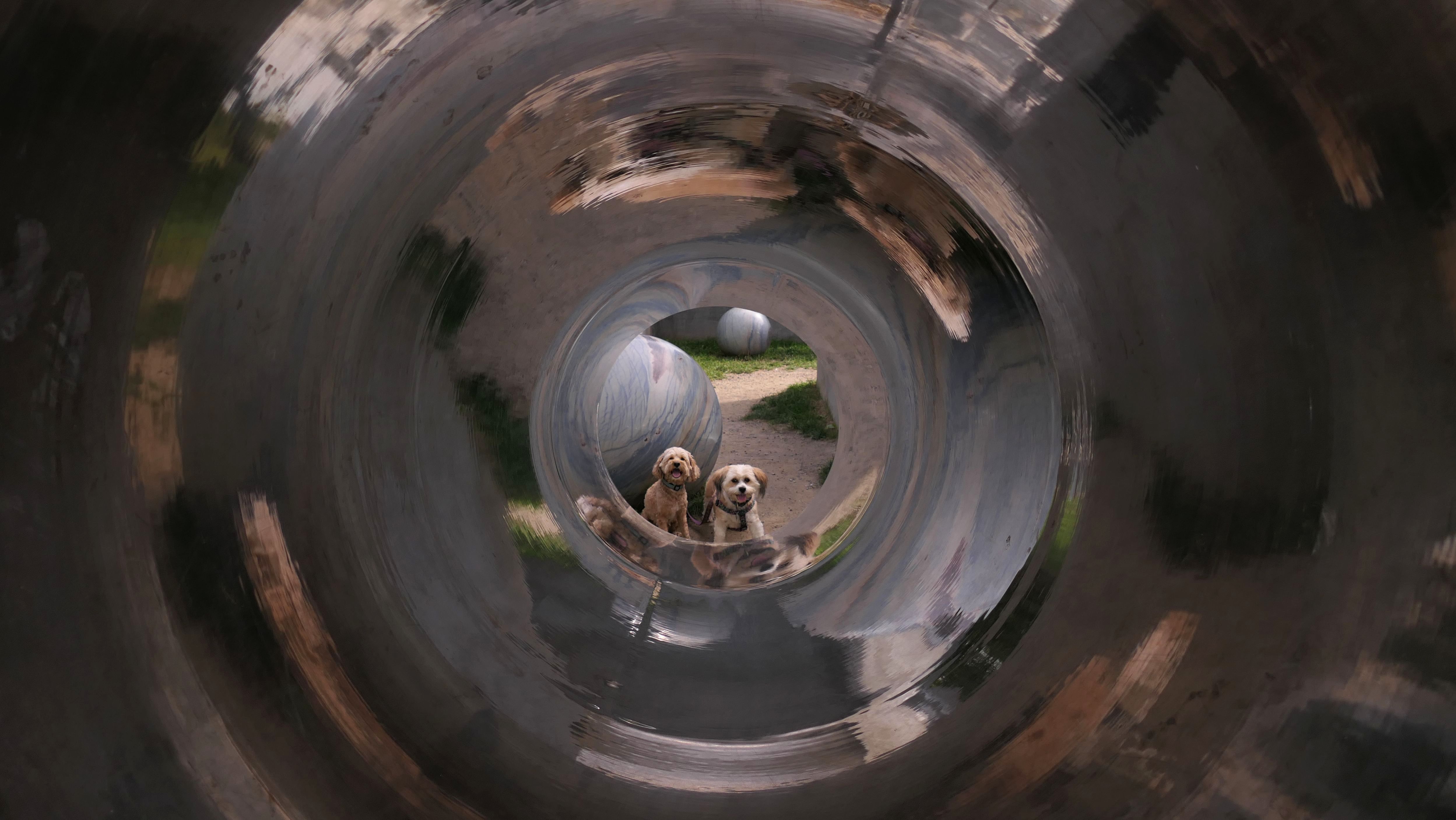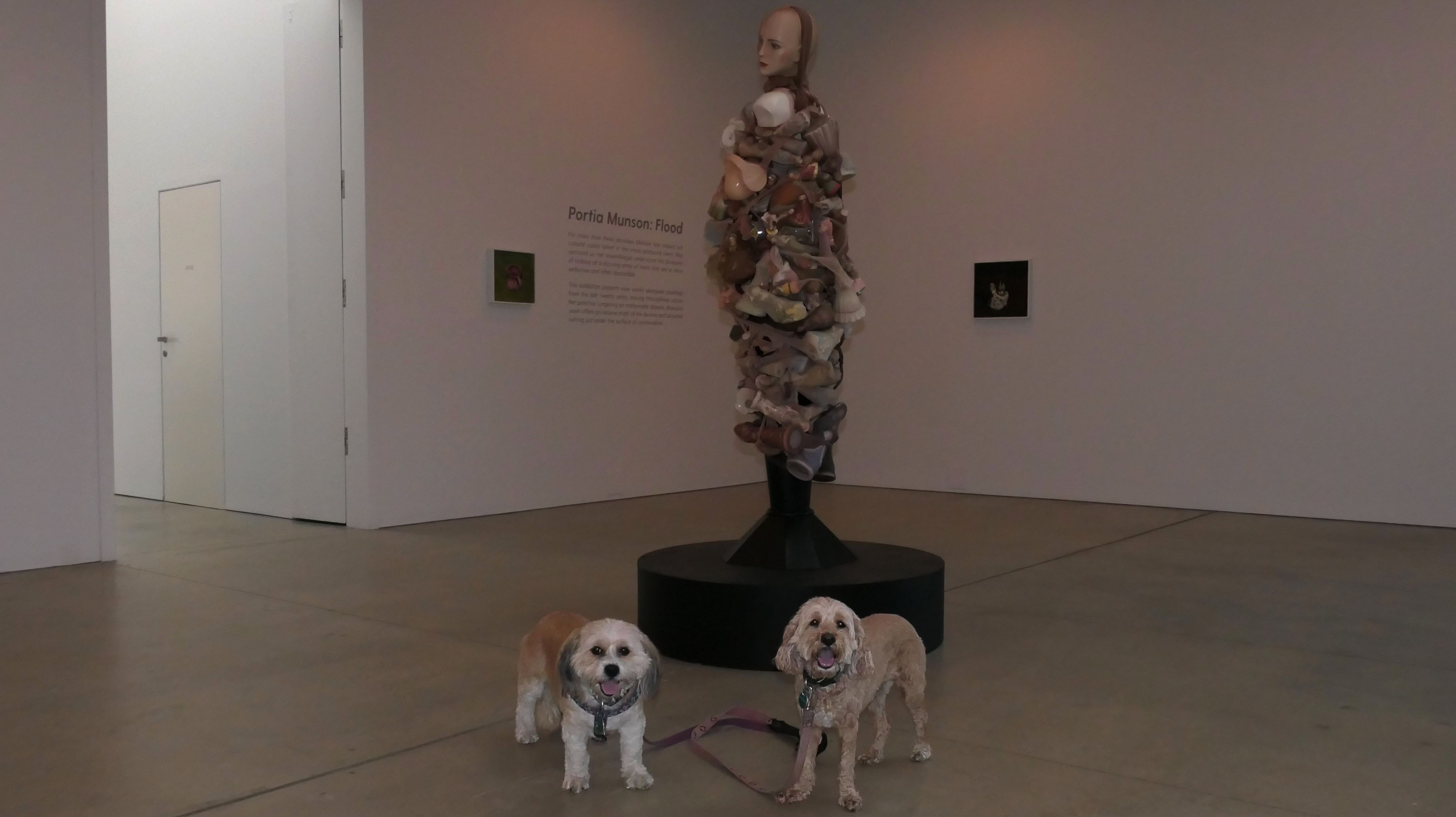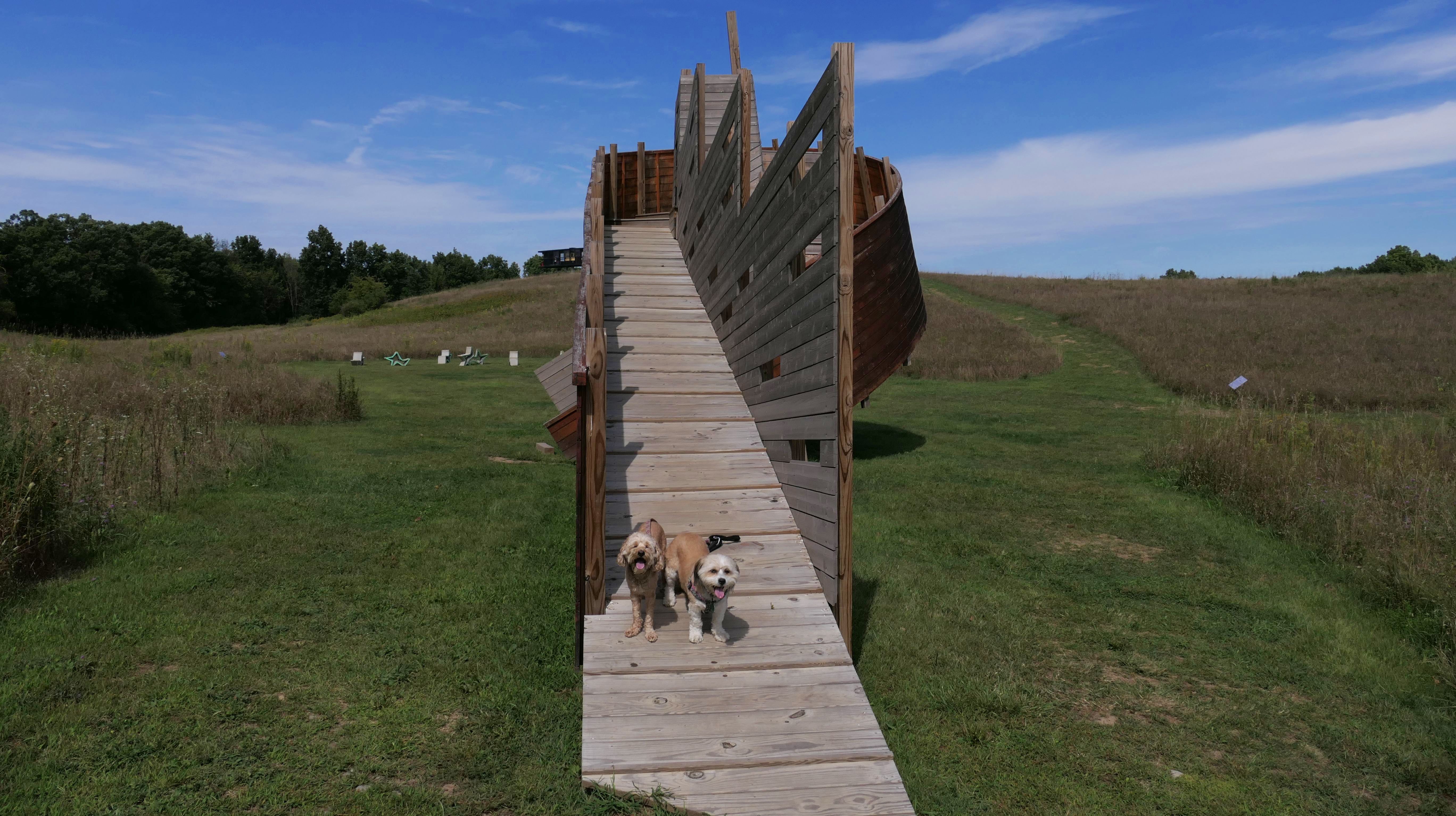 This was a completely different trip than we usually go on, and a lot of fun! This is a trail that runs through an outdoor art gallery. There are 120 acres here, filled with all sorts of "modern art". I've been to sculpture trails before in Putnam, CT and South Kingstown, RI previously, but they pale in comparison to this one! You are encouraged to pre-resgister before visiting, especially on the weekends or holidays, because the place can get busy. Admission is free, but they do suggest a $10 donation. We tried to get to most of the exhibits, but we may have missed a few because the dogs were getting tired. We wound up walking over 3 miles here, with a lot of posing for pictures! My favorite exhibit was the big concrete and marble structure with the pipes that you can look through. I can't believe I got Mandy and Lexi to cooperate and stay while I took pictures of them through the shiny reflective pipe on the other side. There's also a small indoor art gallery here as well with a few exhibits. The best part of the place is that is dog friendly (they must remain leashed of course!) This place is worth checking out if you are looking for something different. You can book your reservation on the Art Omi website, and read more about the originization.