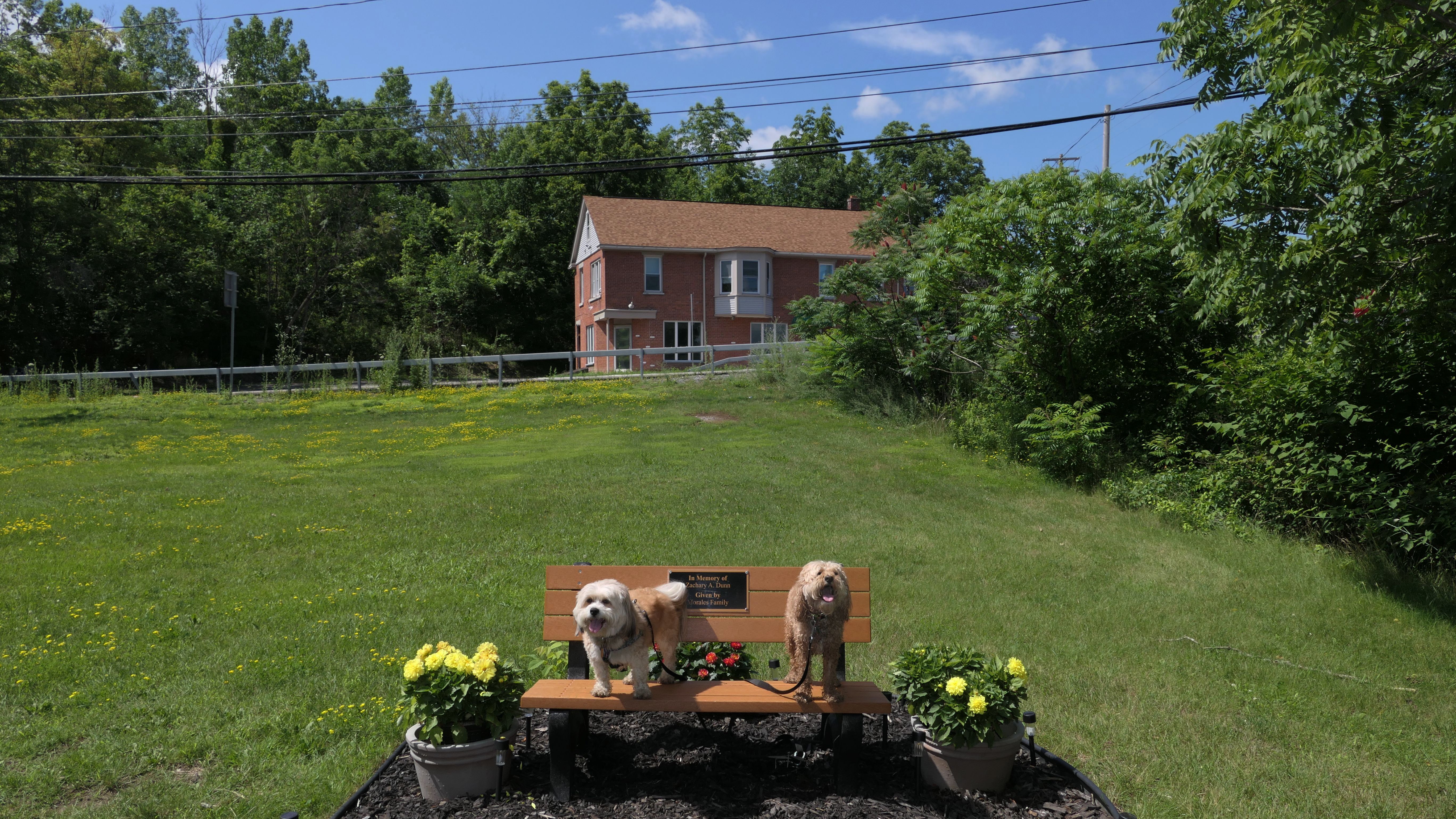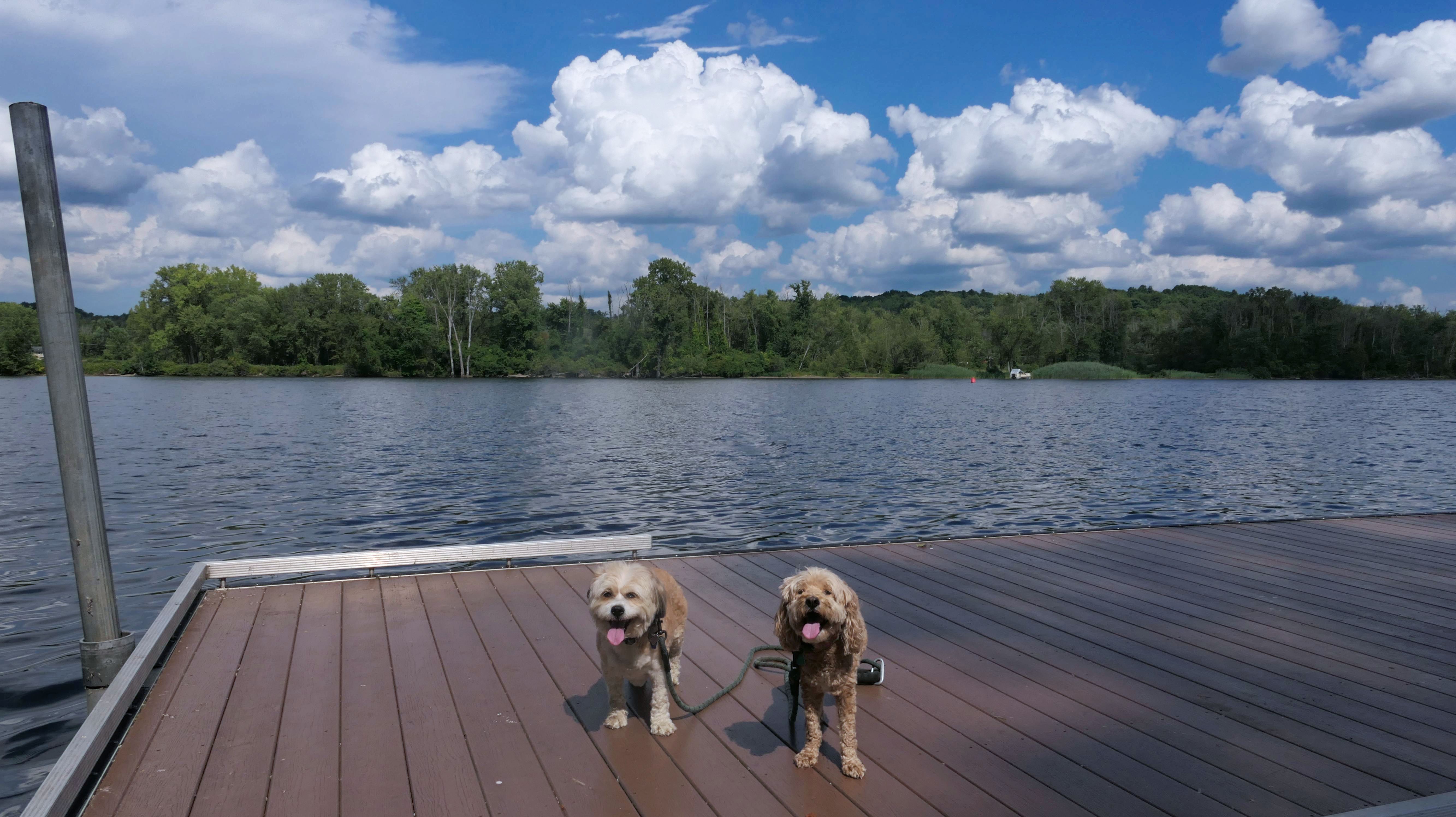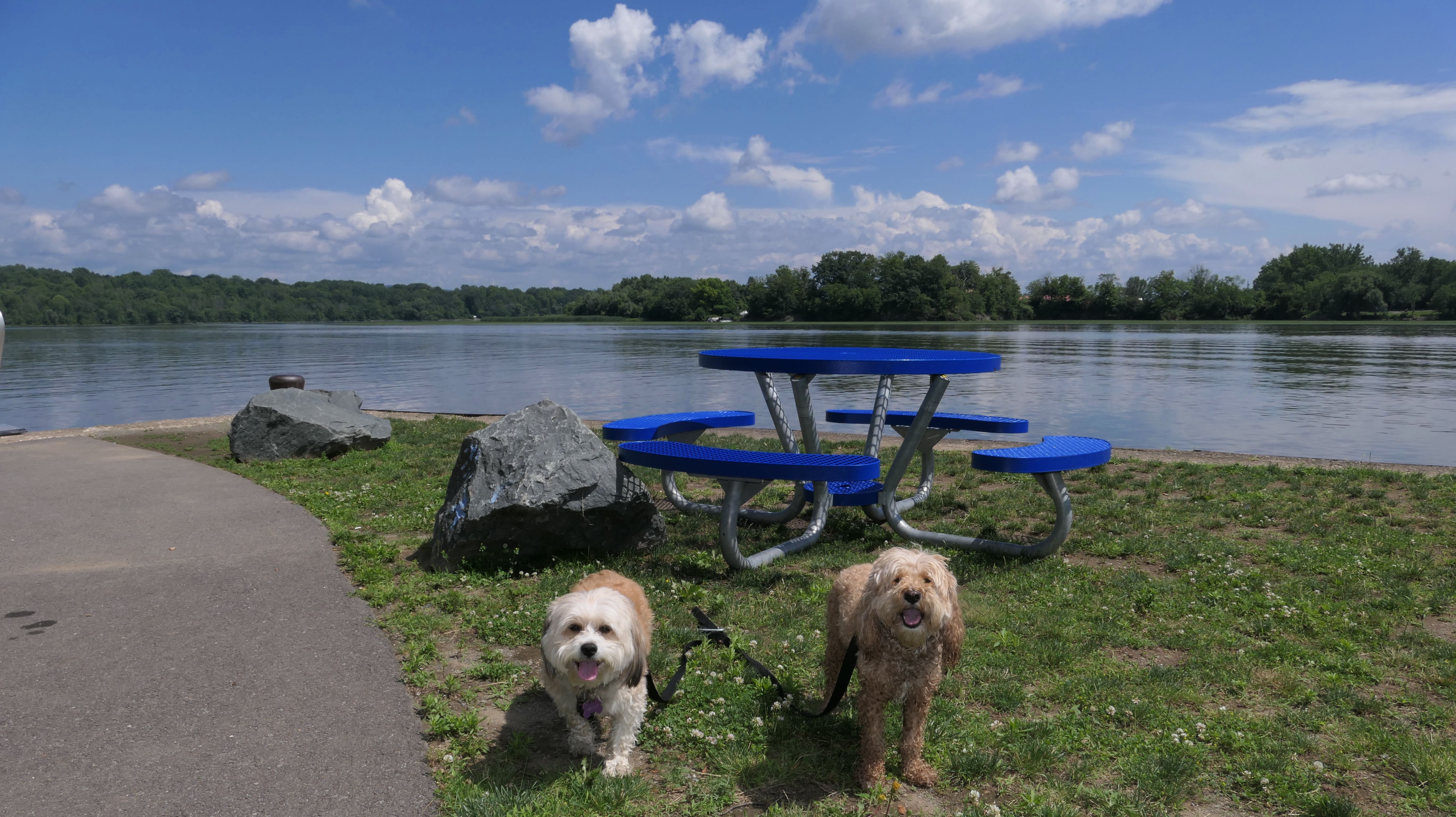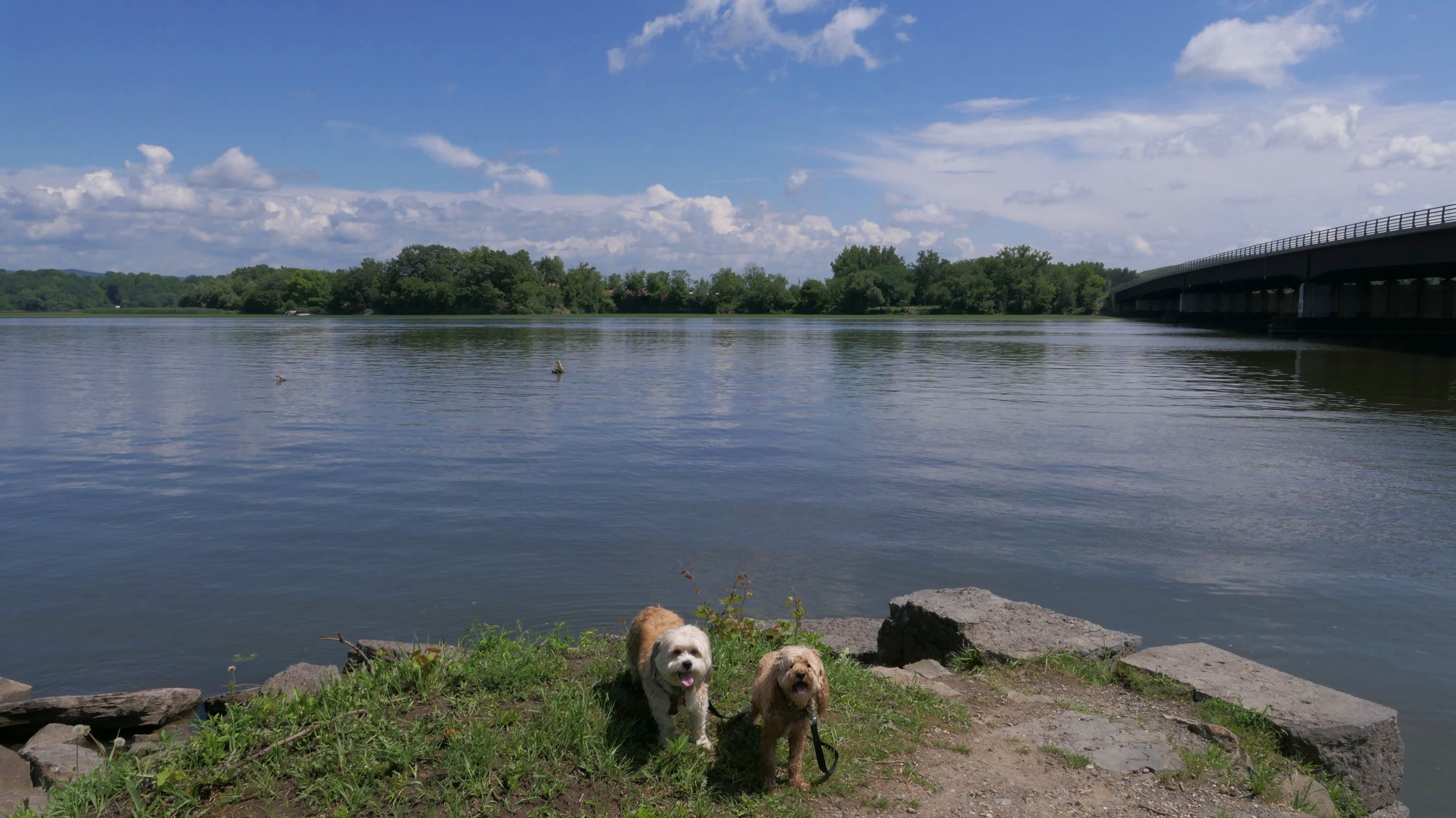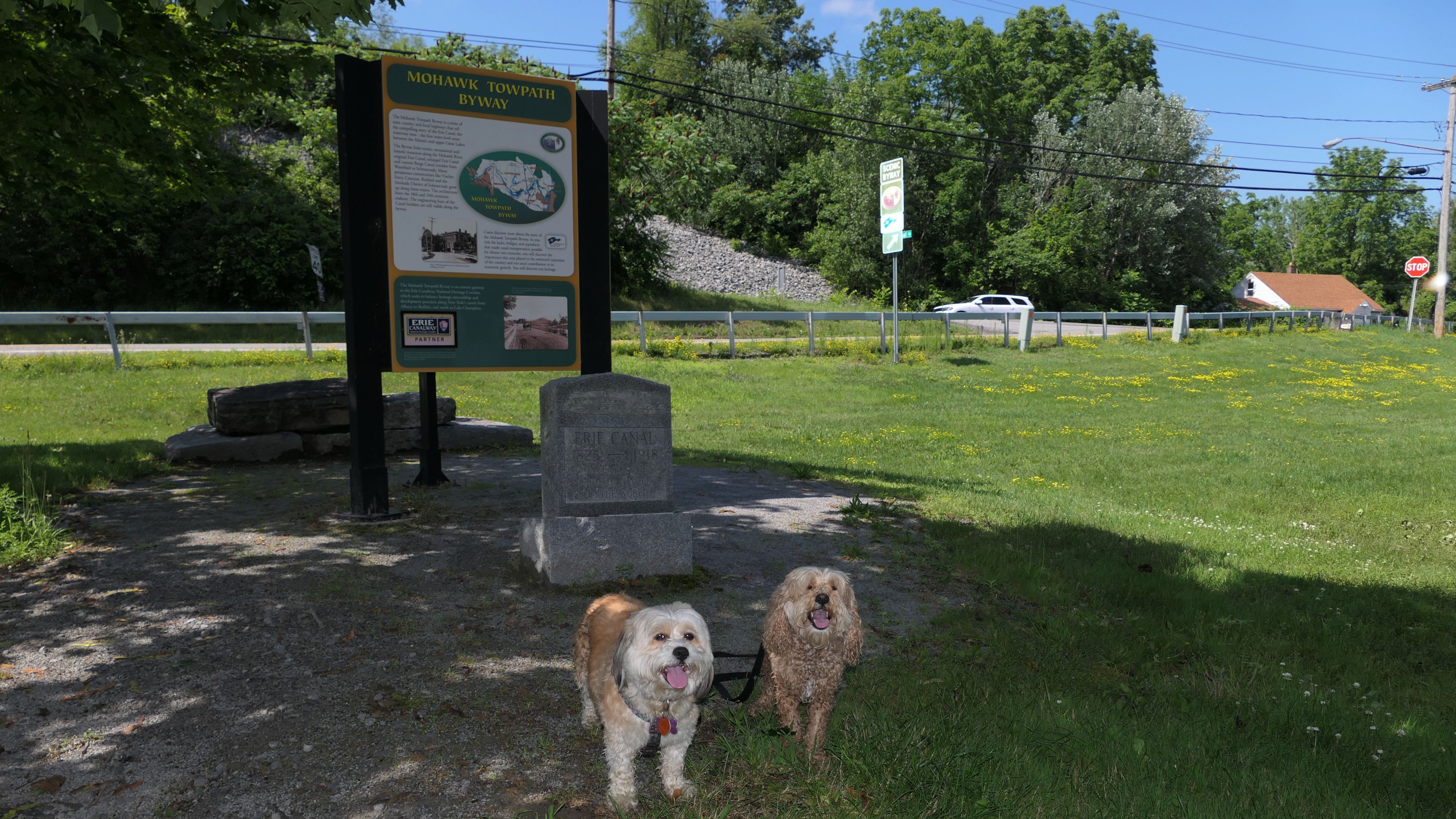 It was awful weather in Connecticut, so we came up here for the 4th of July. We had to drive through torrential downpours and thunderstorms to get here, but when we arrived in the area here, the sun was out! This is a nice park on the shores of the Mohawk River. There's a paved bike trail here called the Crescent Trail that we intended on walking. Unfortunately, the down side to sun is the heat! The trail lacks shade, and it was too hot for the dogs, so we only walked about a half mile before we turned around and headed back. We wound up finding a shadier trail a few miles away.