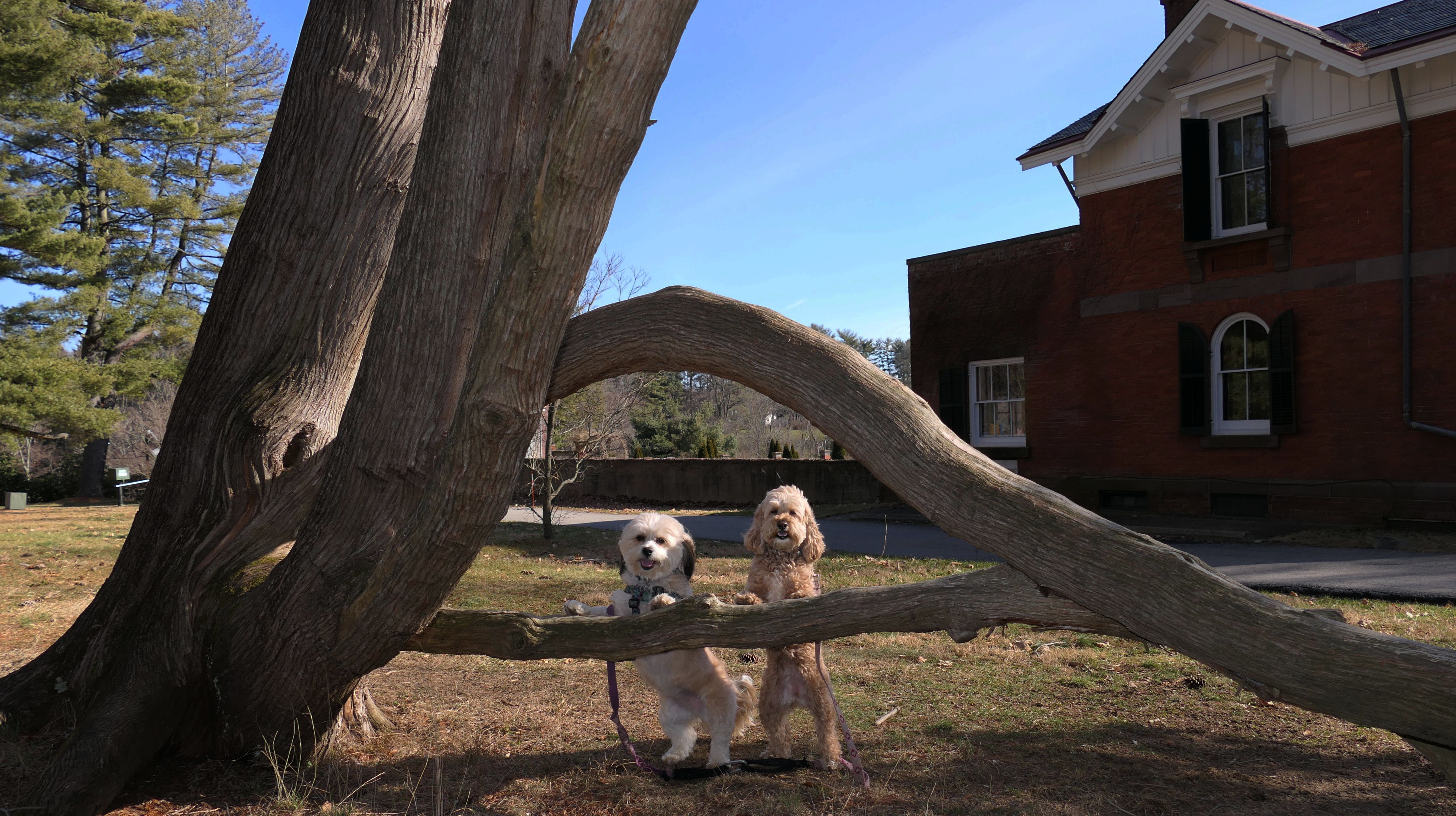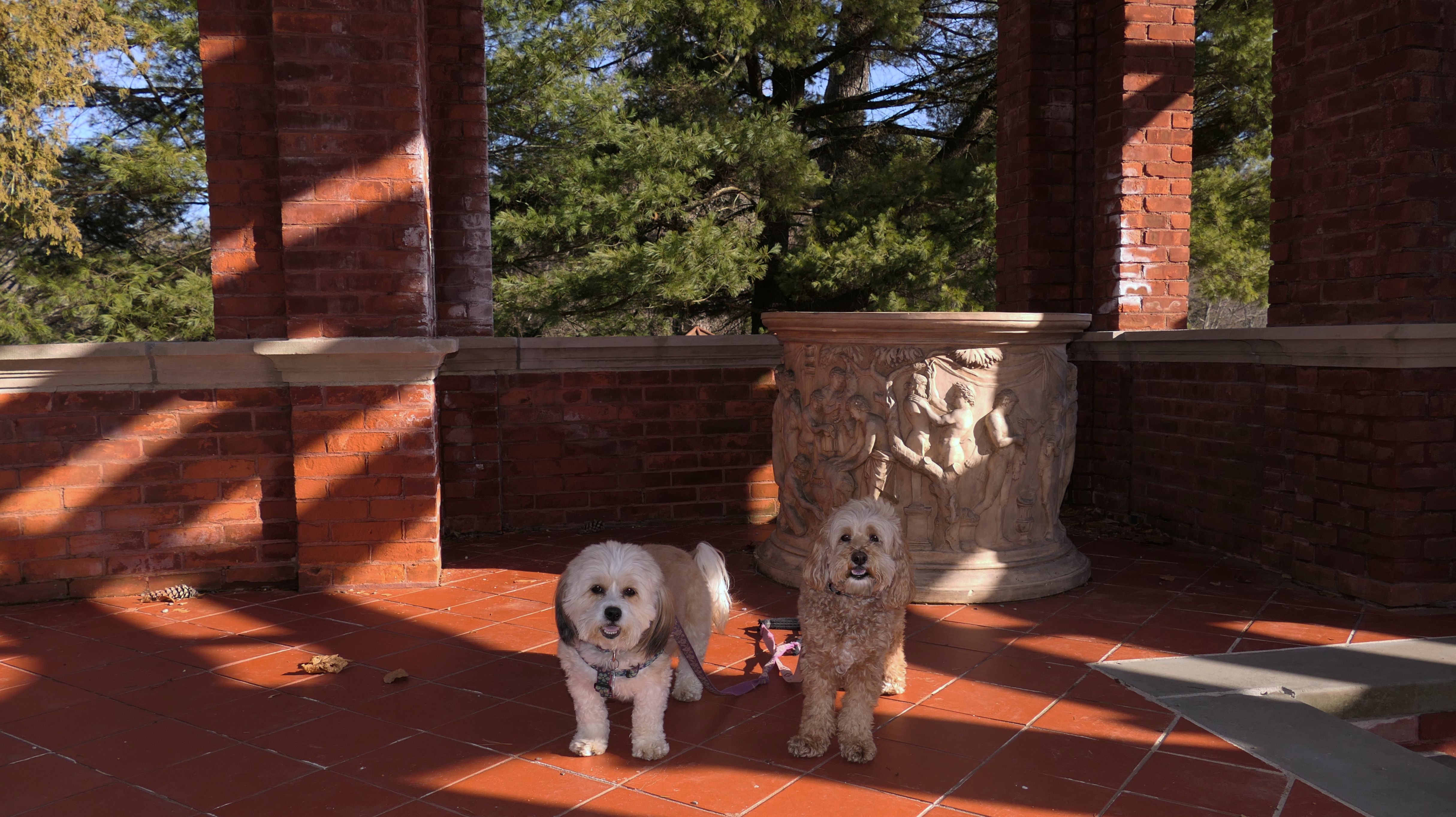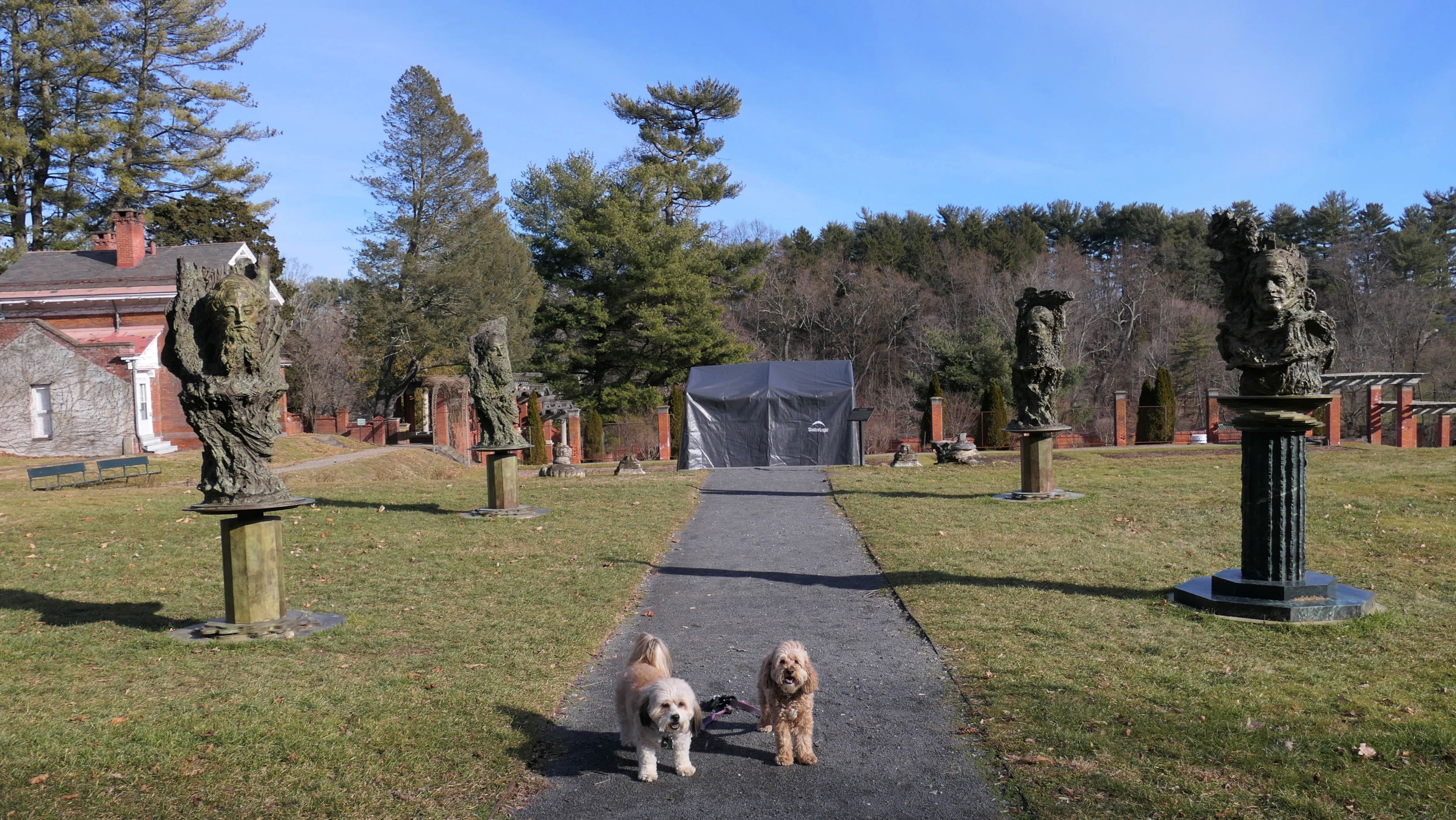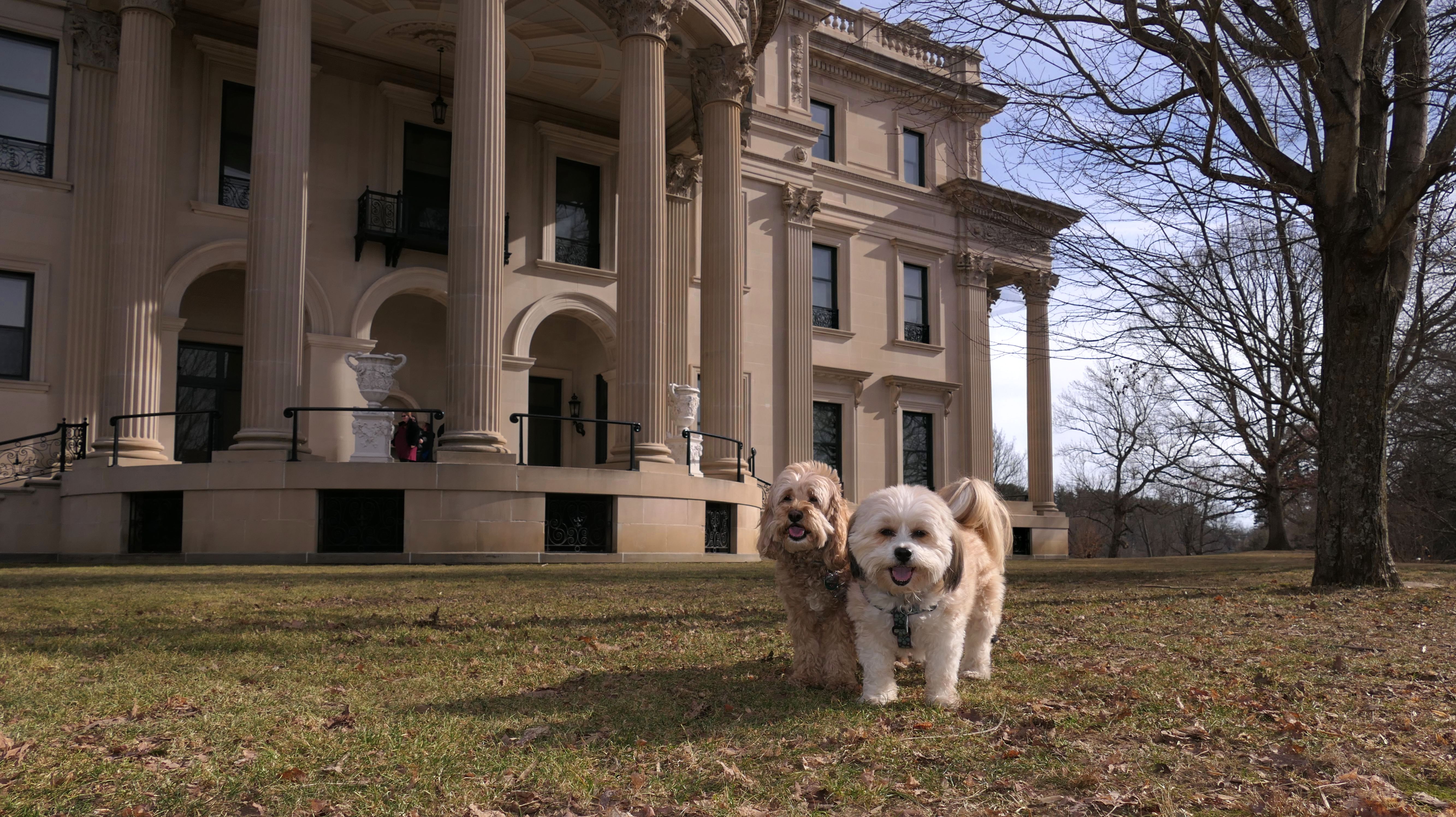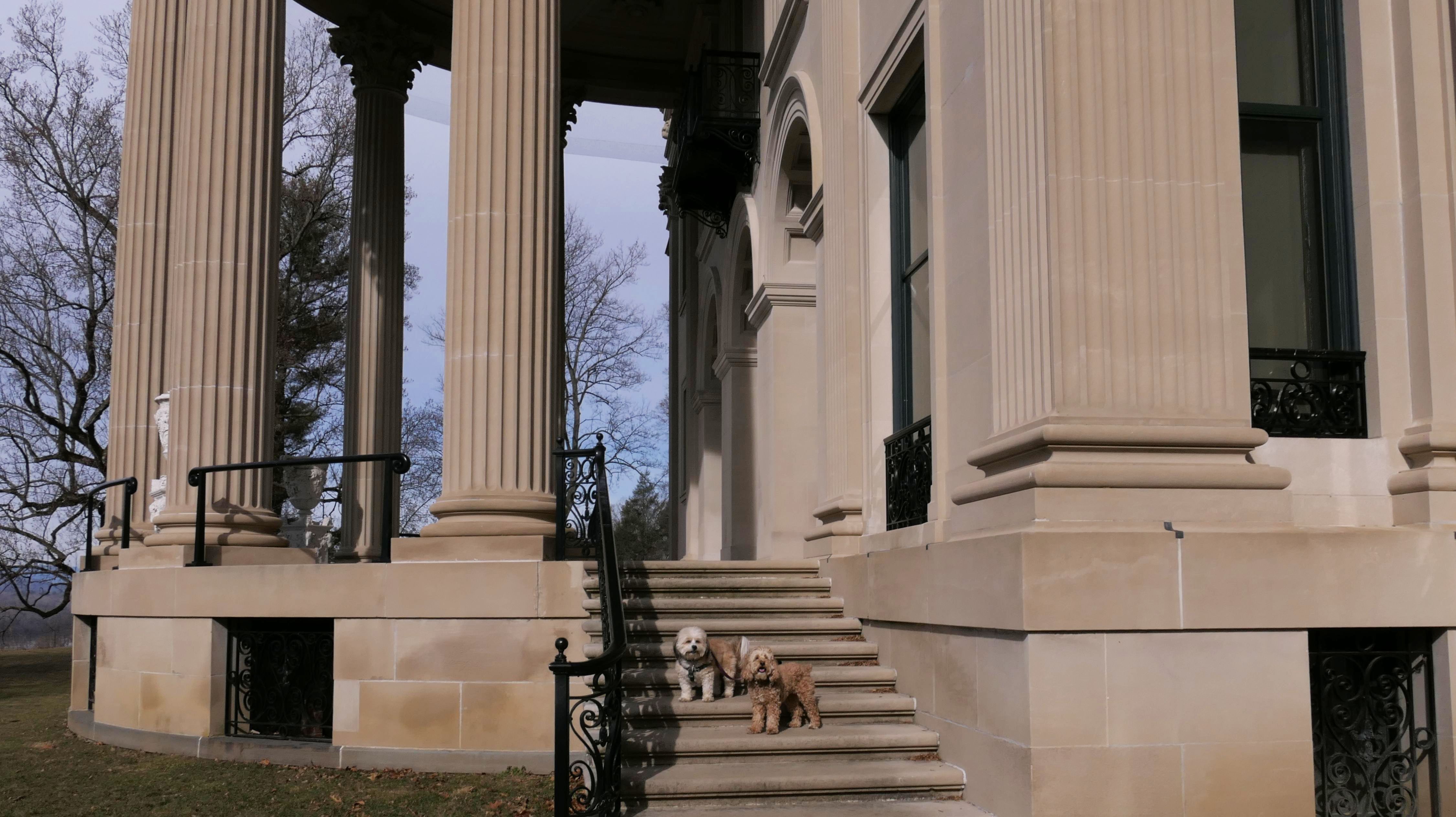 We were in the area the following weekend because my wife wanted to go to a shop in Poughkeepsie, so it made sense to stop and actually take some photos of the dogs in front of the mansion. This time, we took photos from all the sides of the mansions, and on some of them, you can actually see the whole building! There are a few extra pictures in front of the Visitors Center as well.