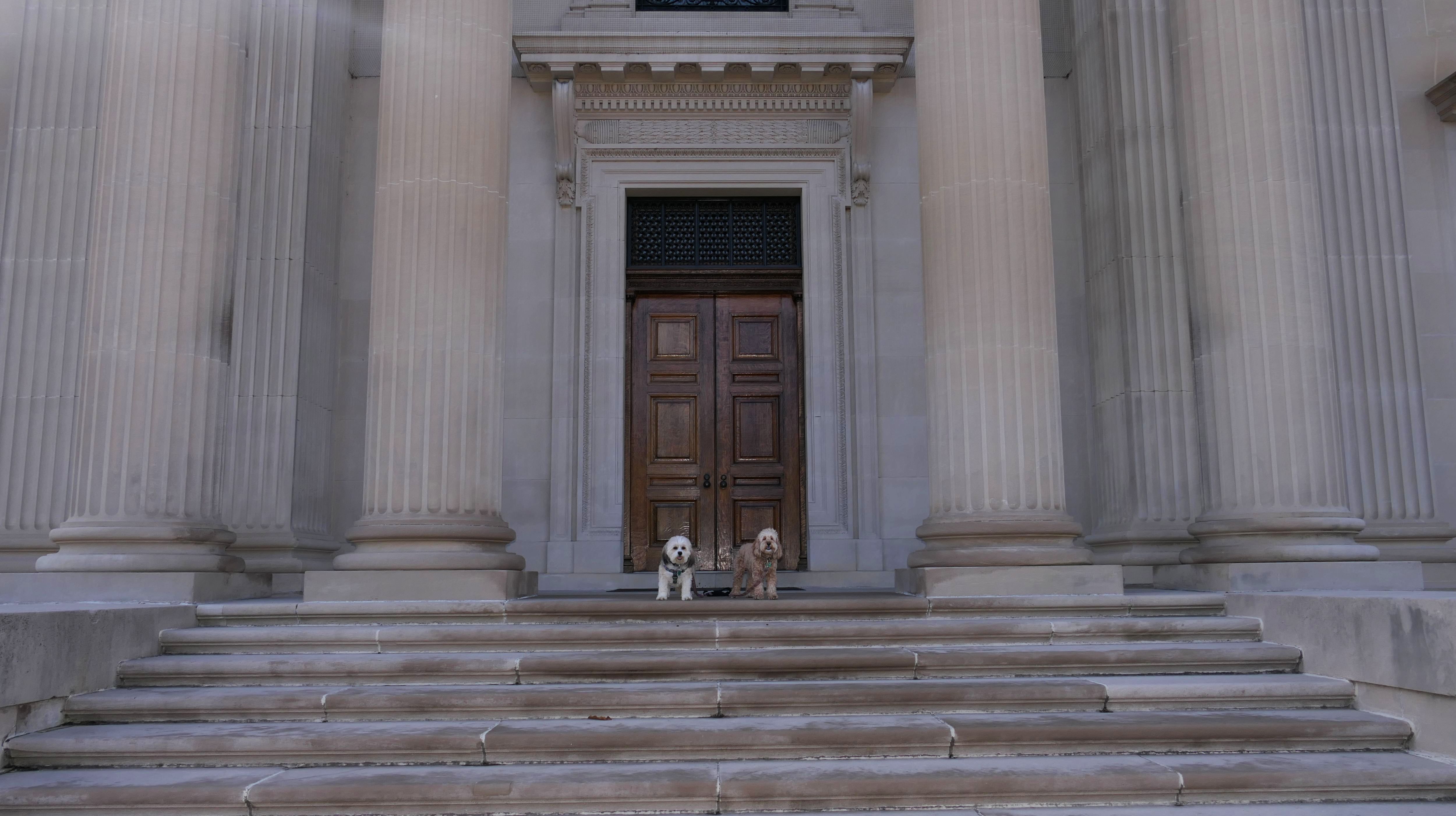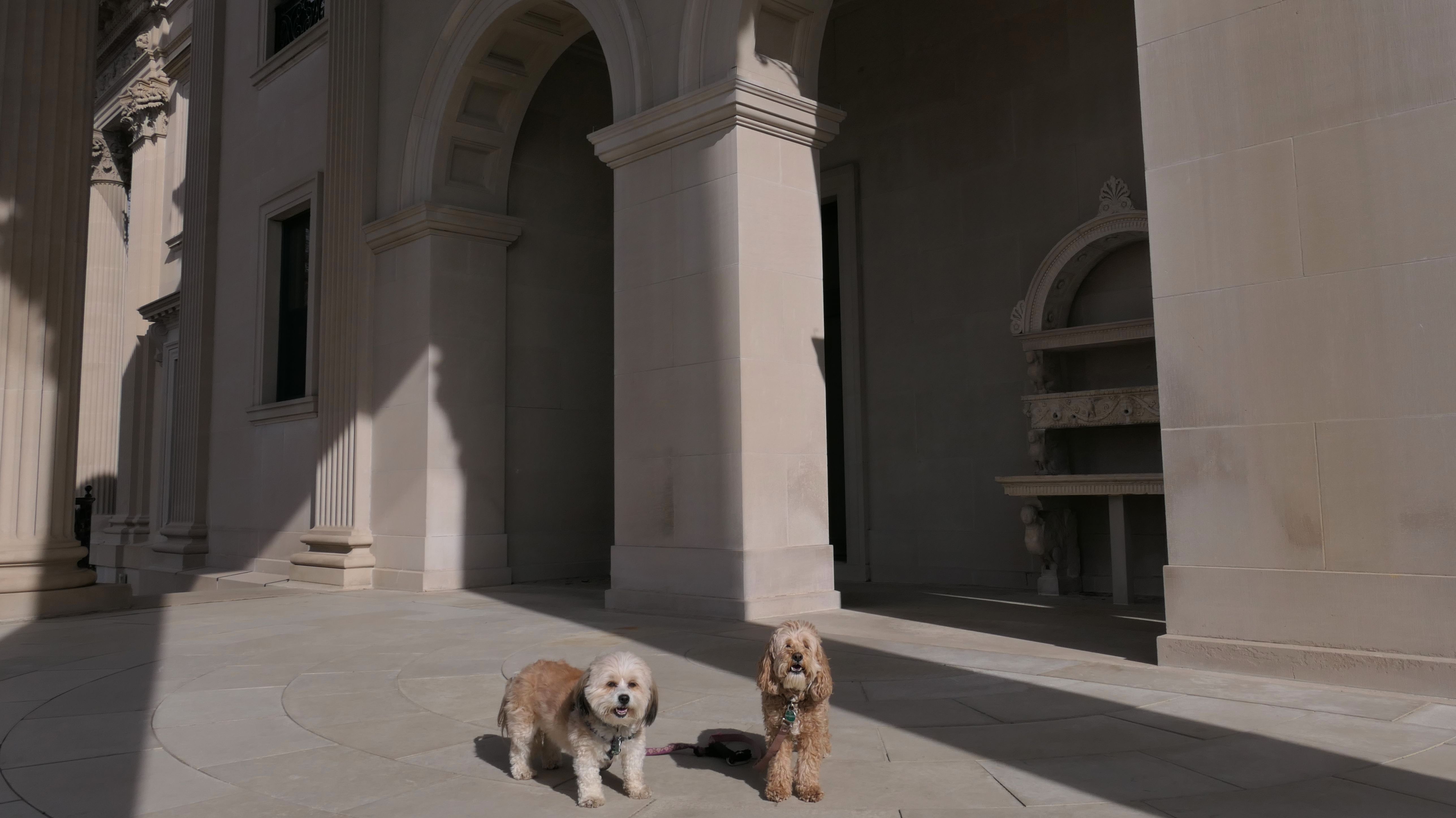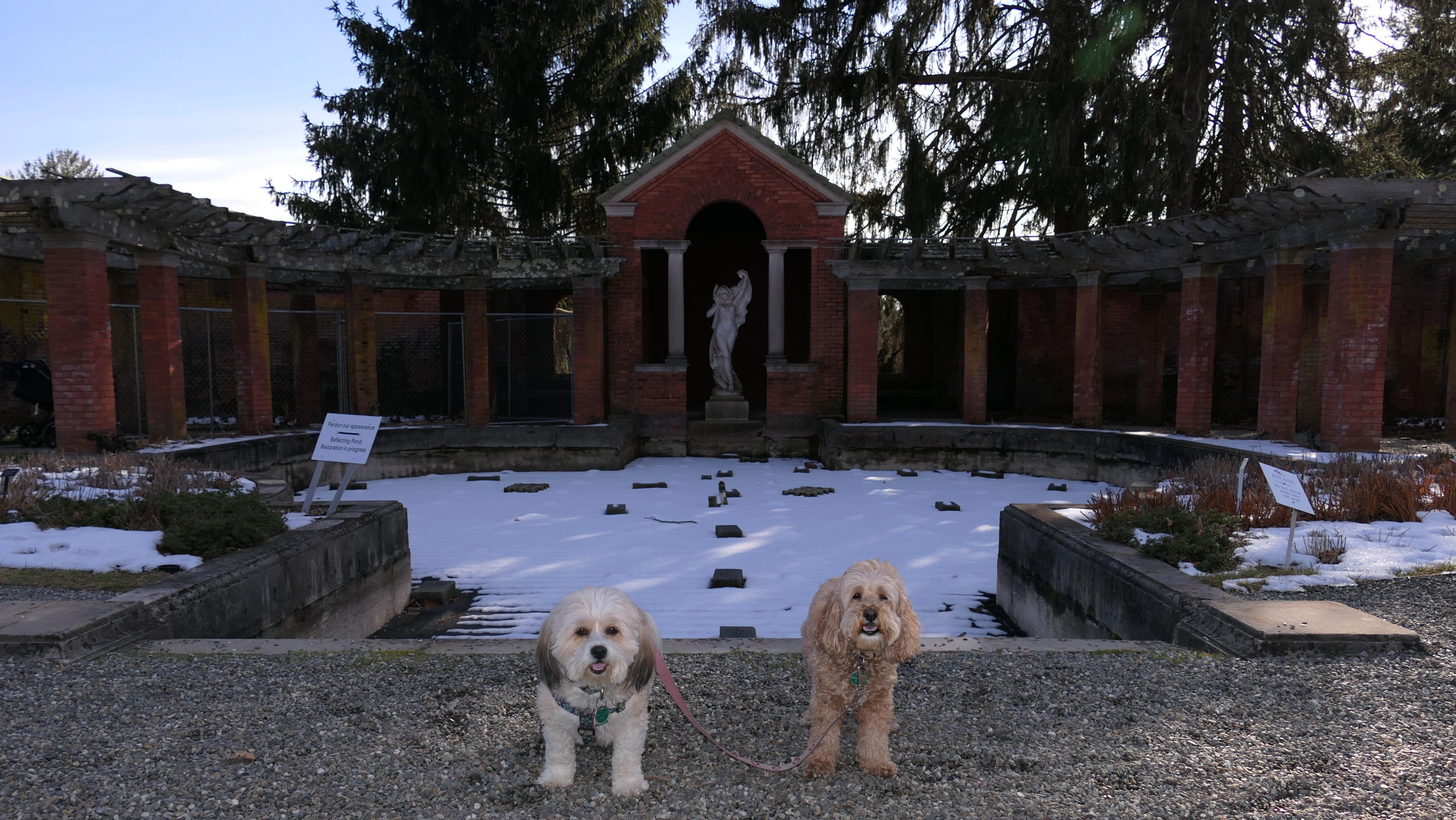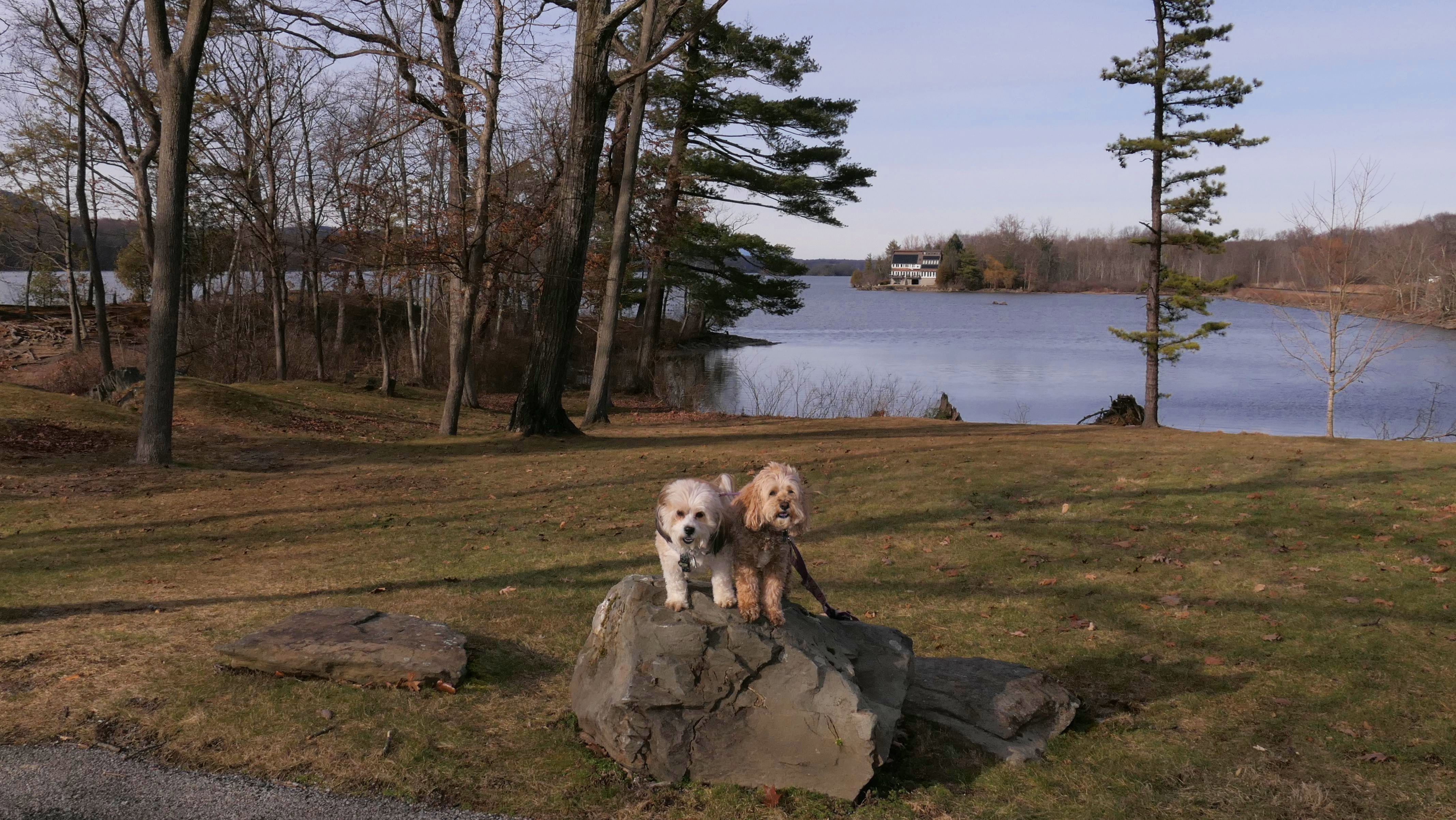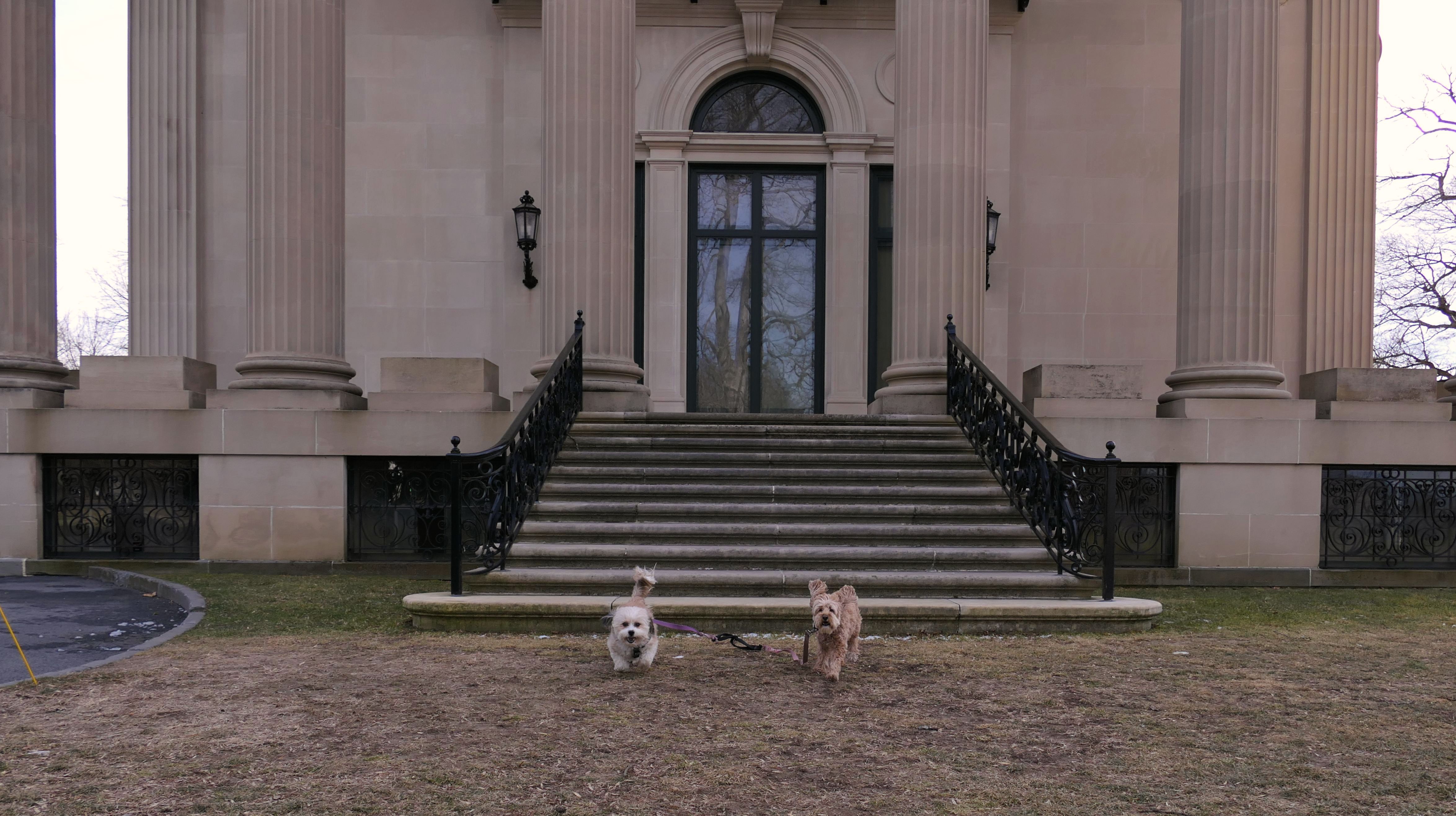 We were in the area the following weekend because my wife wanted to go to a shop in Poughkeepsie, so it made sense to stop and actually take some photos of the dogs in front of the mansion. This time, we took photos from all the sides of the mansions, and on some of them, you can actually see the whole building! There are a few extra pictures in front of the Visitors Center as well.