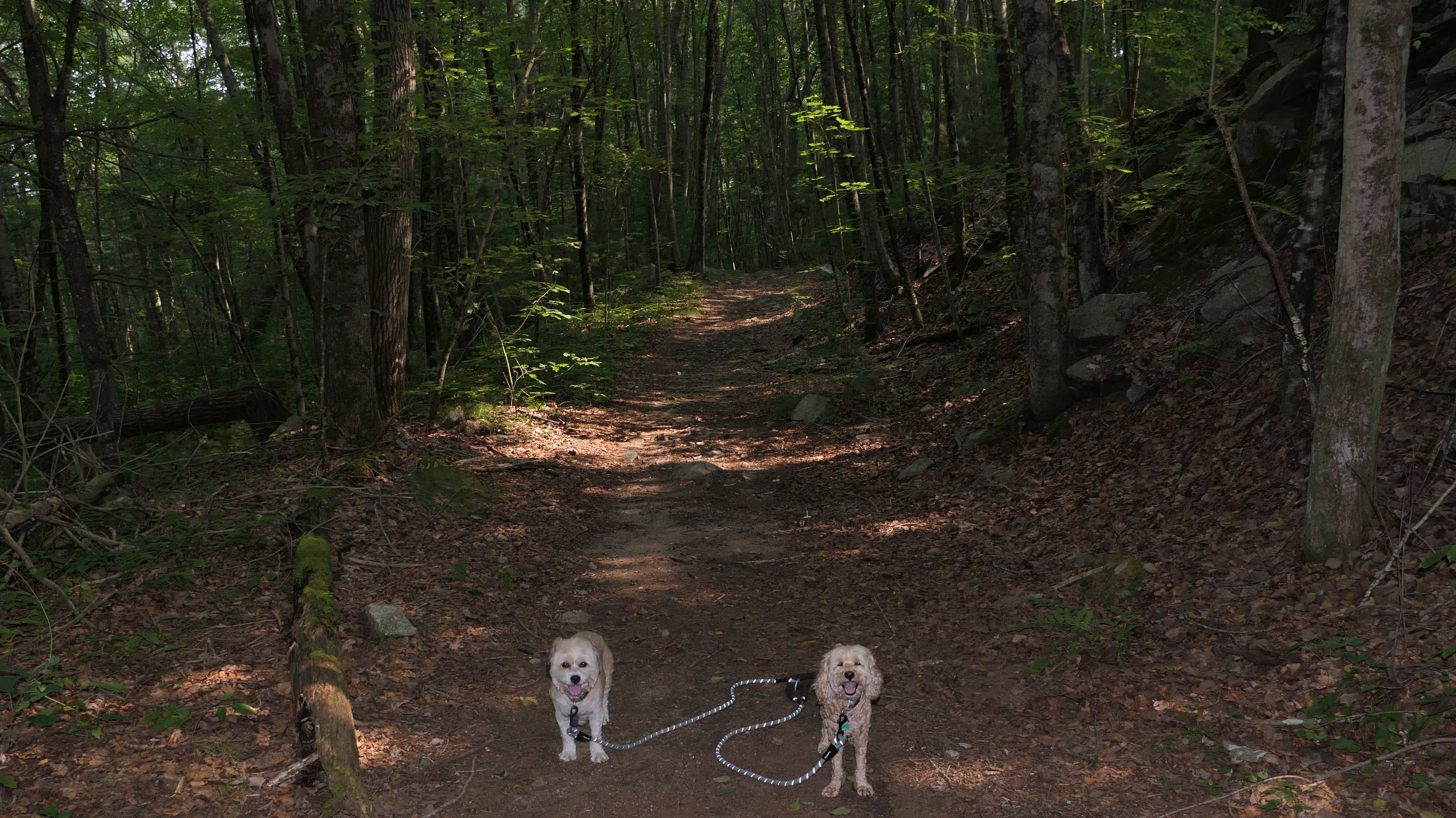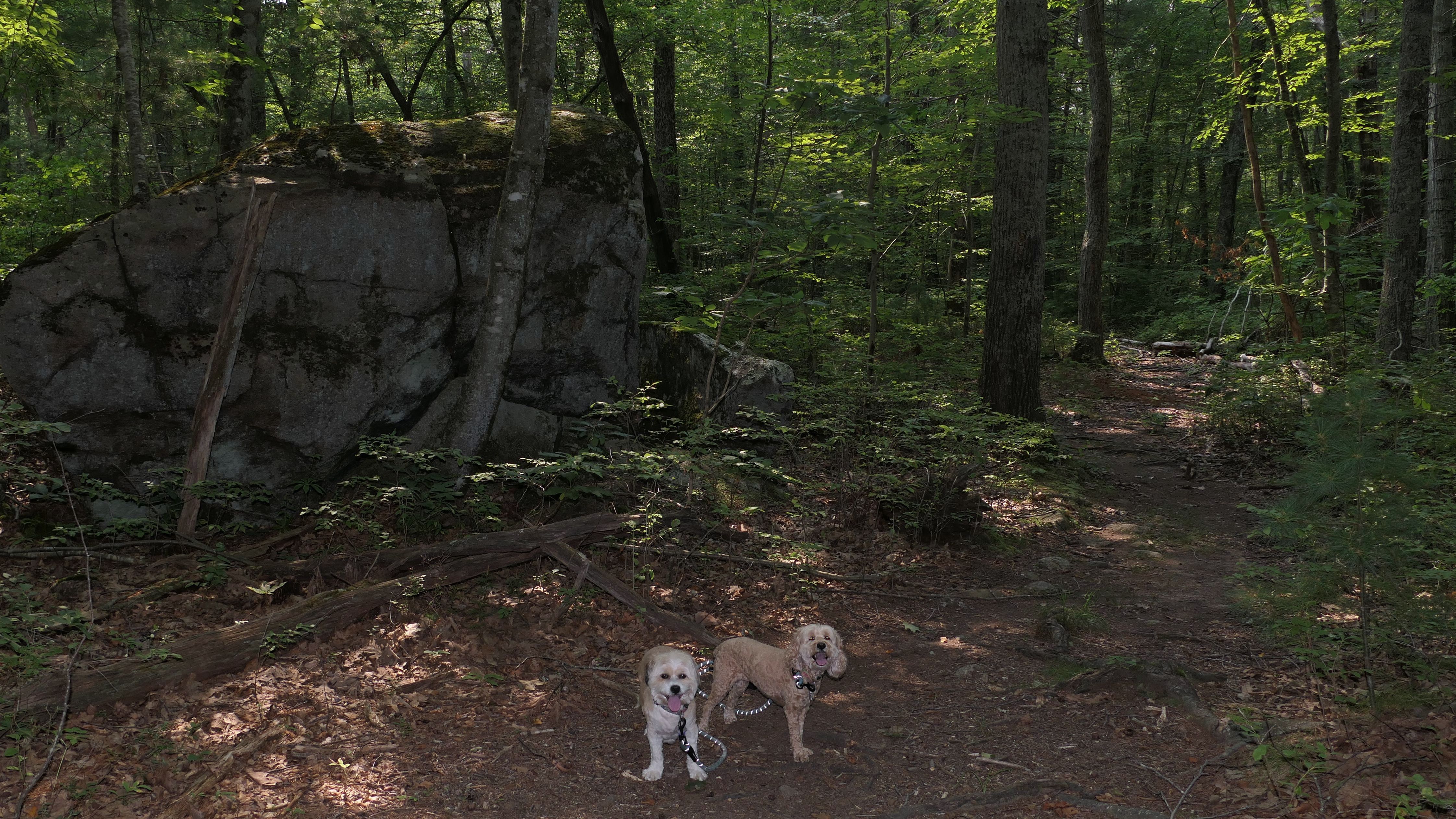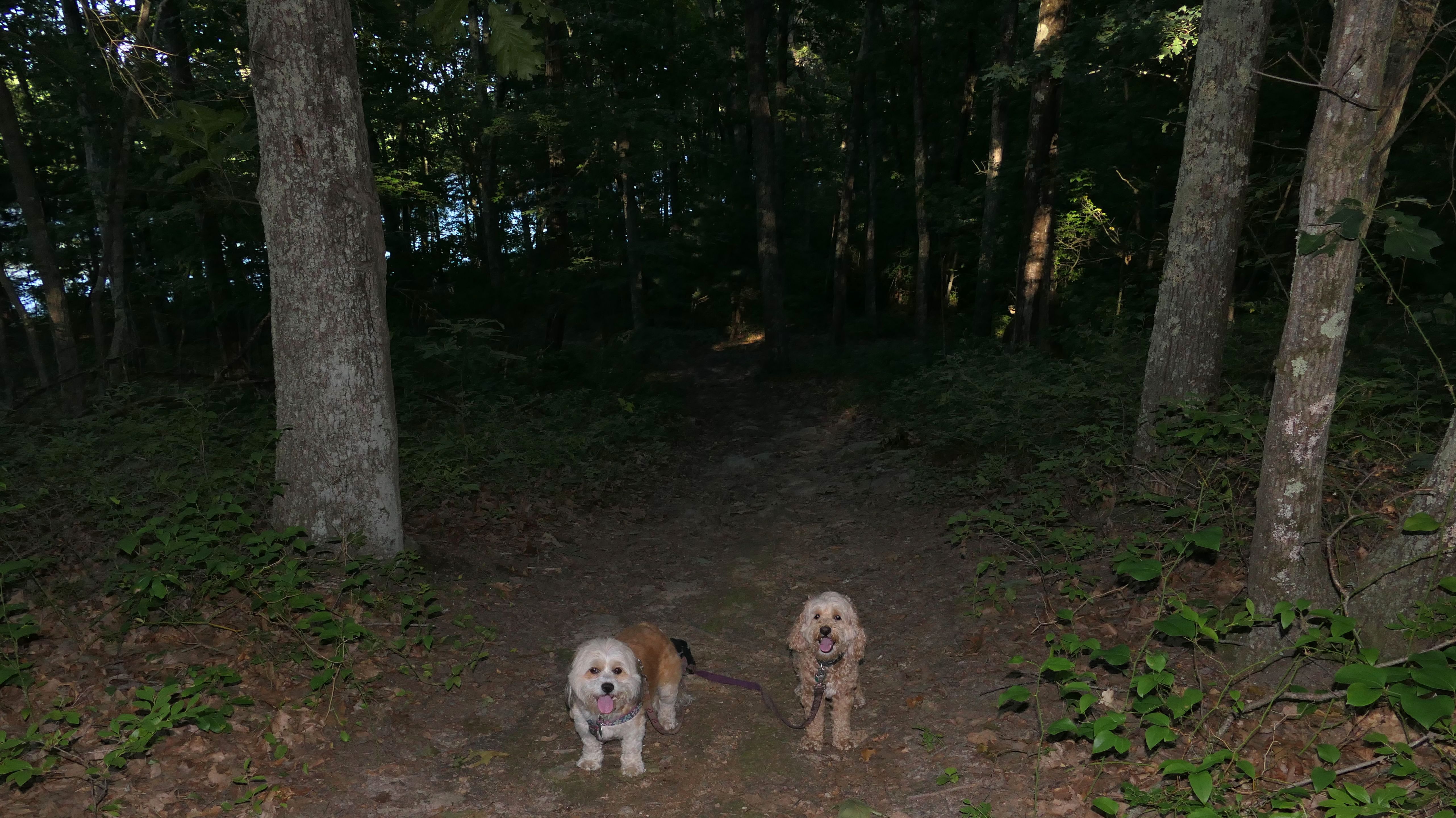 We hiked a two mile loop trail here. 98% of the trail runs through the woods. The other 2% of the loop runs along the edge of an open field area. The path is easy to navigate, but not well marked. It was supposedly a sunny day, but the sky was filled with wildfire smoke from Canada, so there was no blue visible in the sky at all. This was an okay walk through the woods, but nothing really stands out about it.