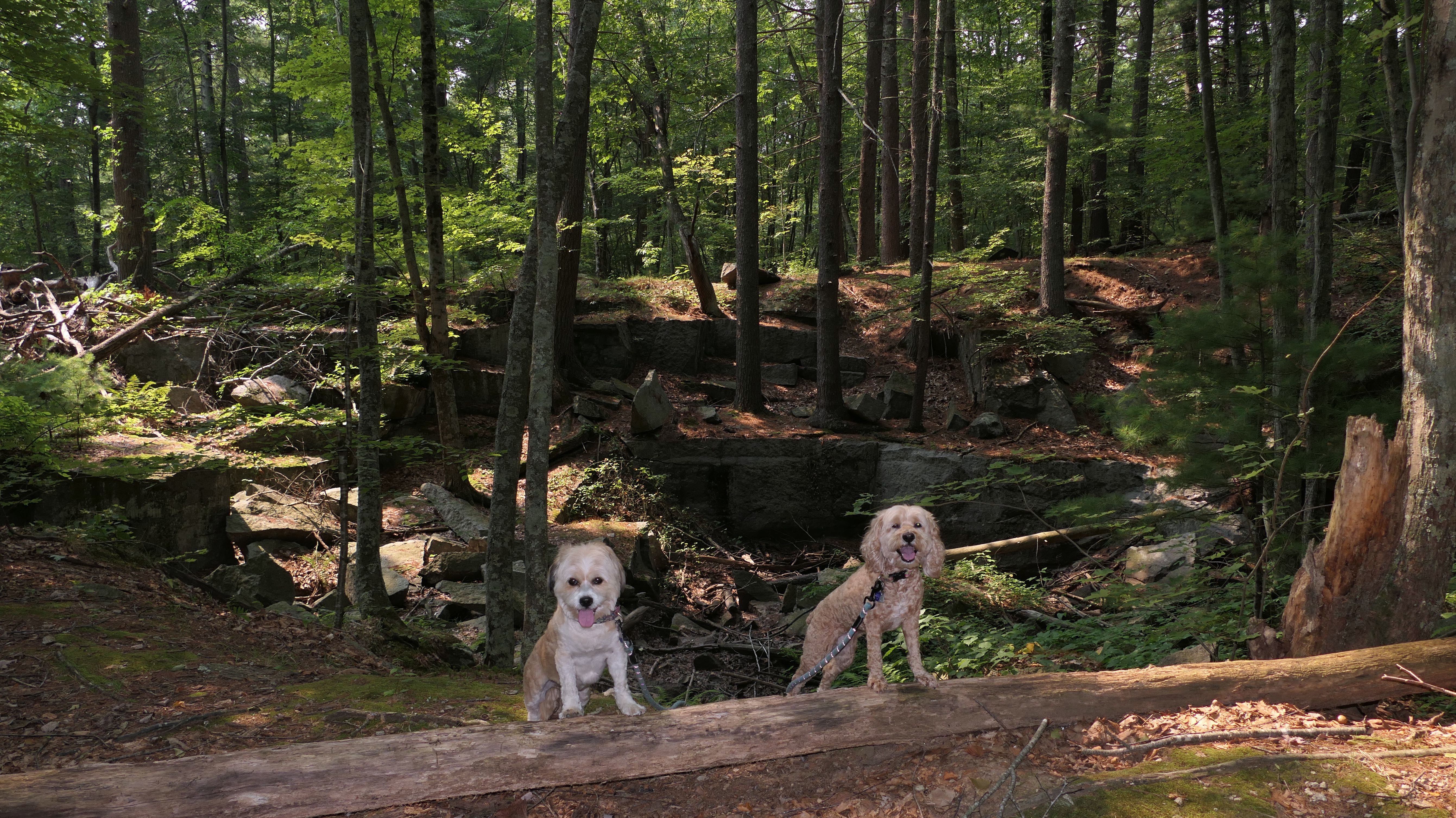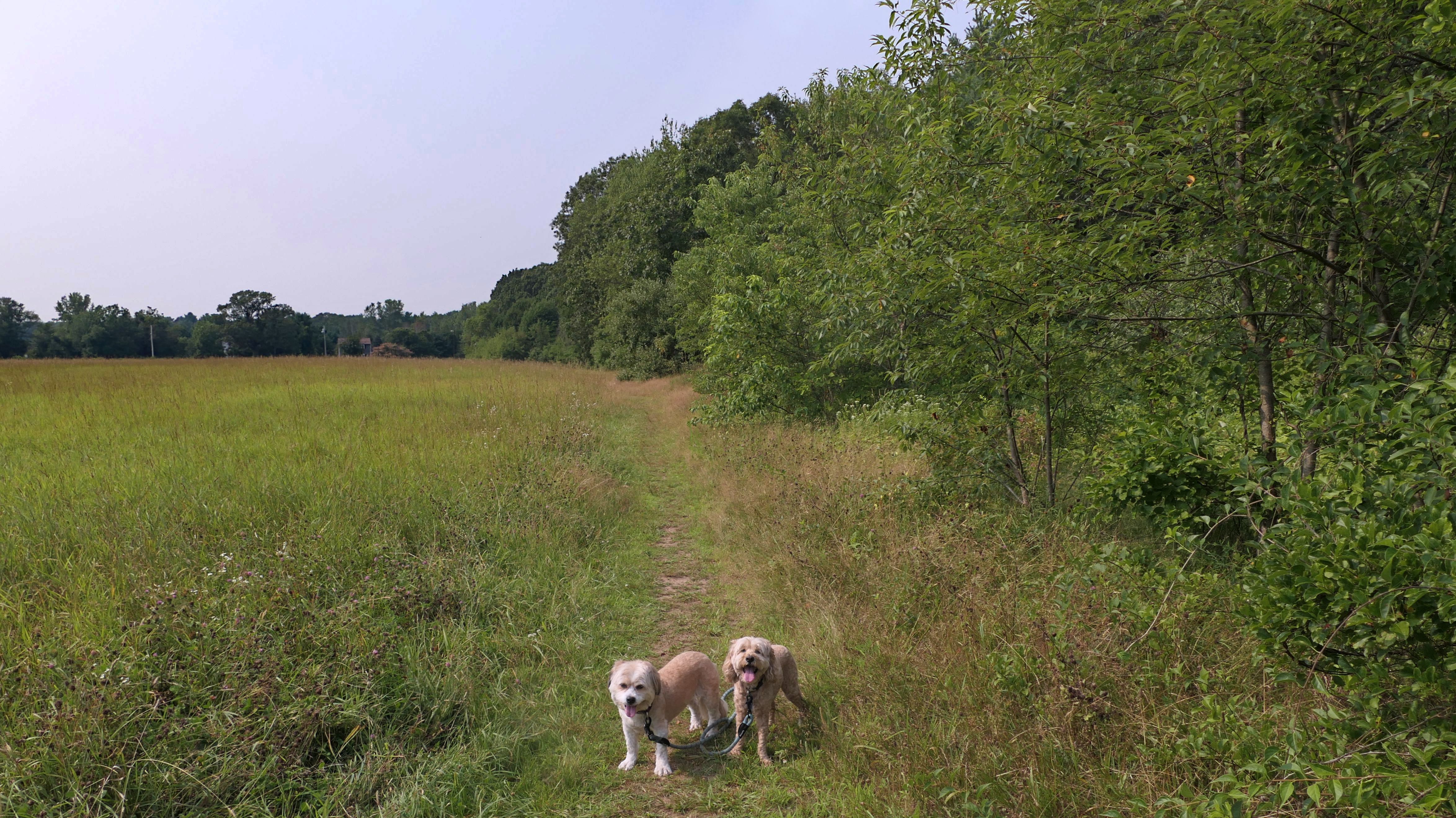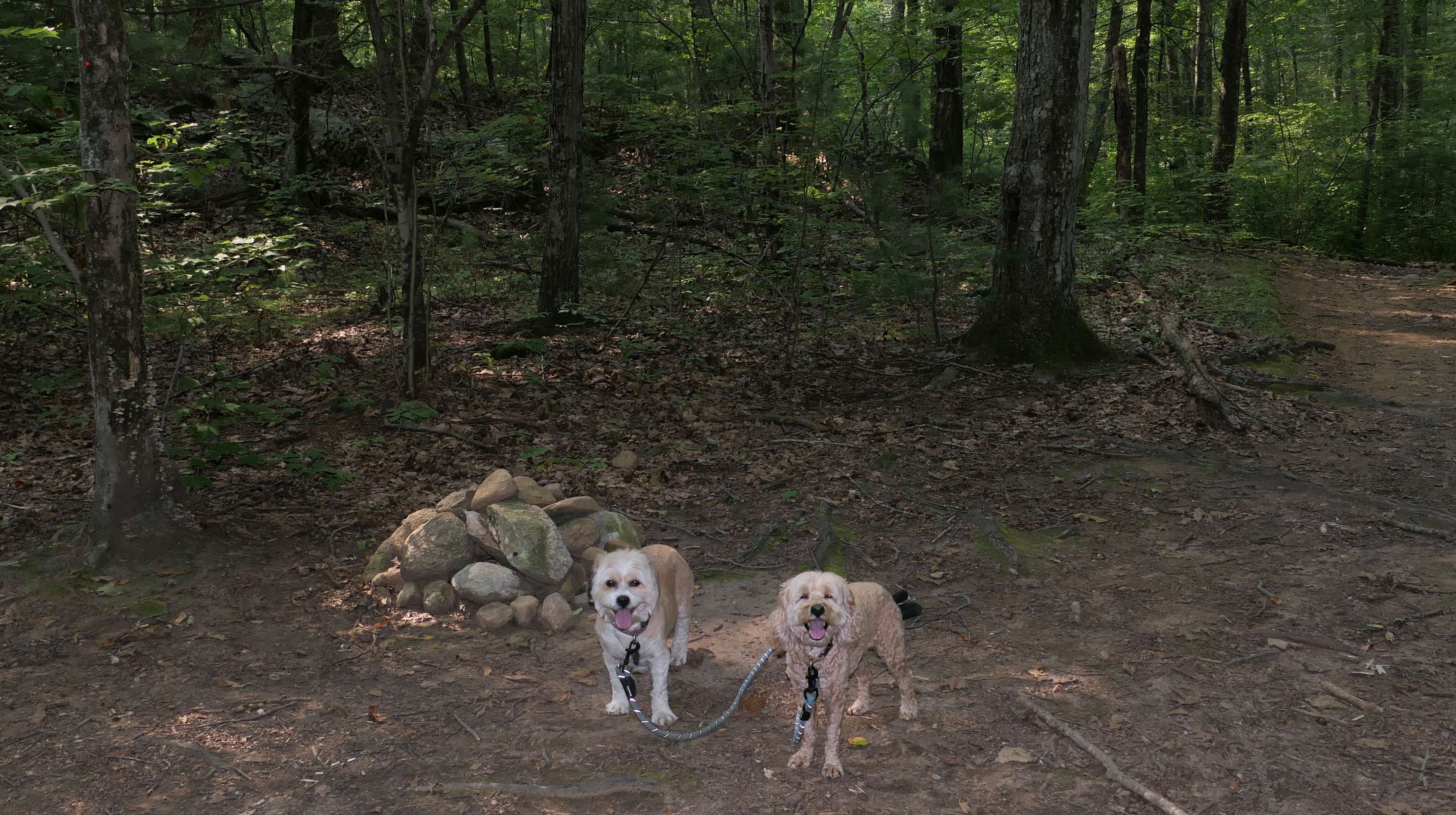 We hiked a two mile loop trail here. 98% of the trail runs through the woods. The other 2% of the loop runs along the edge of an open field area. The path is easy to navigate, but not well marked. It was supposedly a sunny day, but the sky was filled with wildfire smoke from Canada, so there was no blue visible in the sky at all. This was an okay walk through the woods, but nothing really stands out about it.