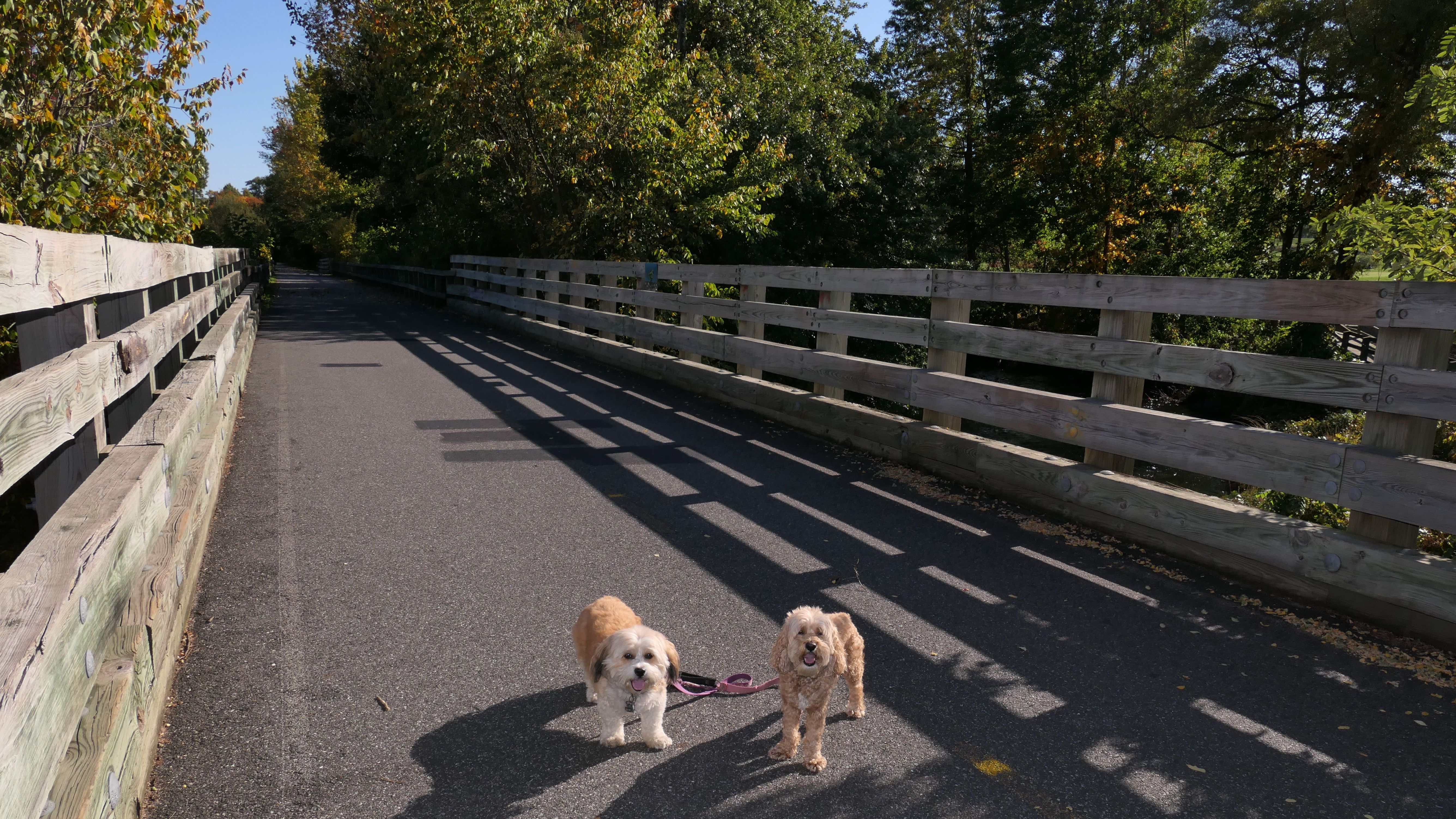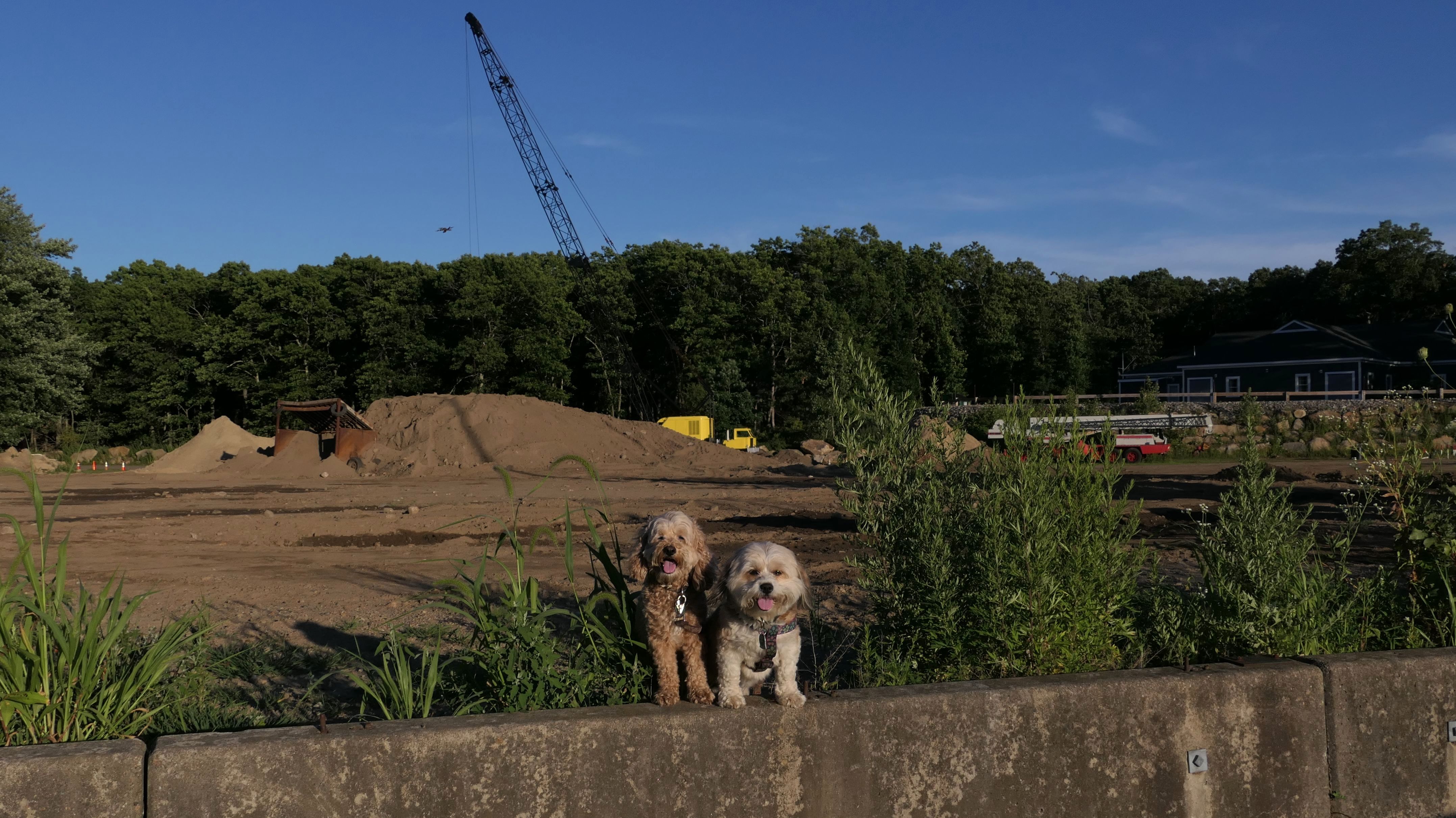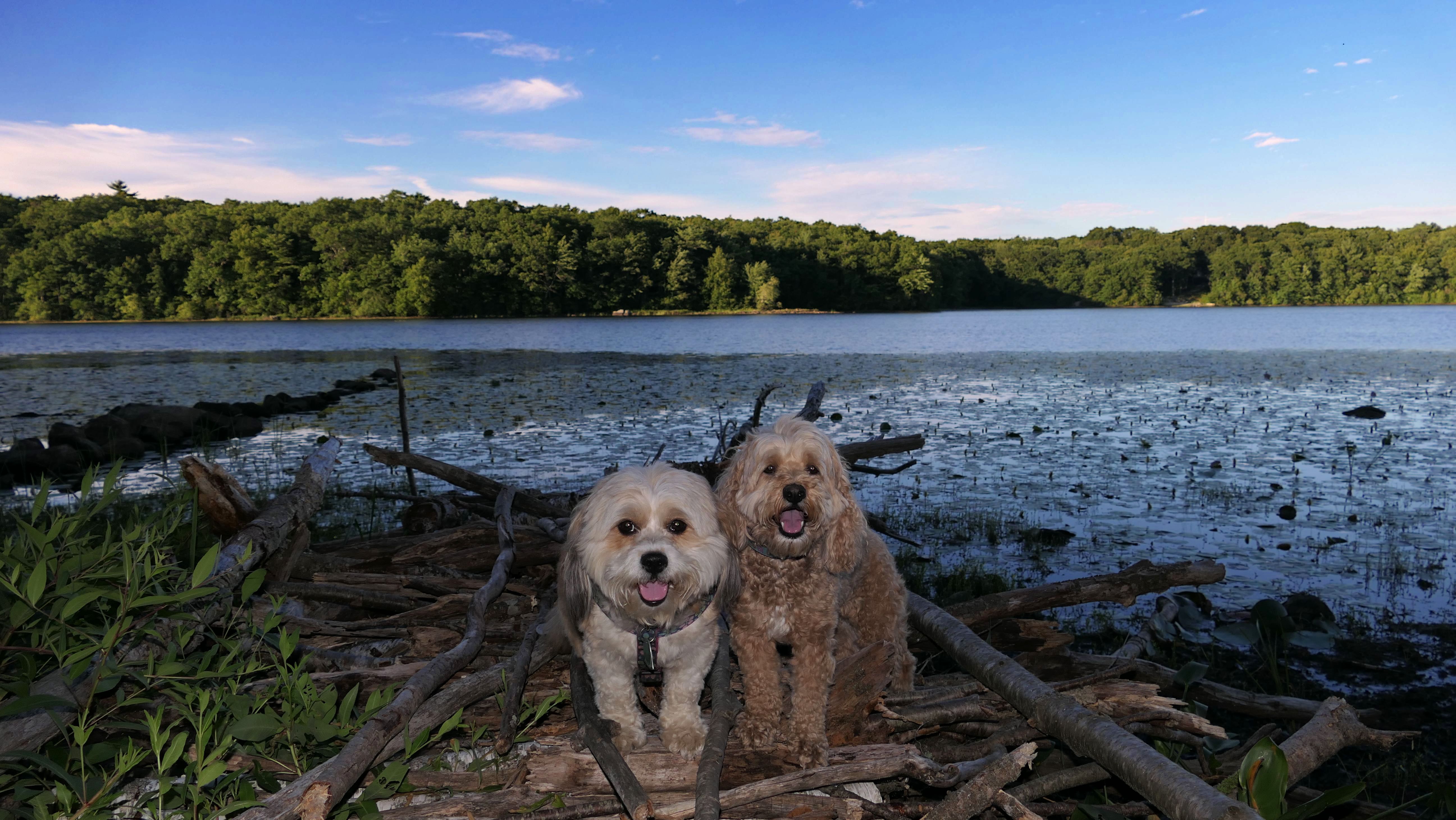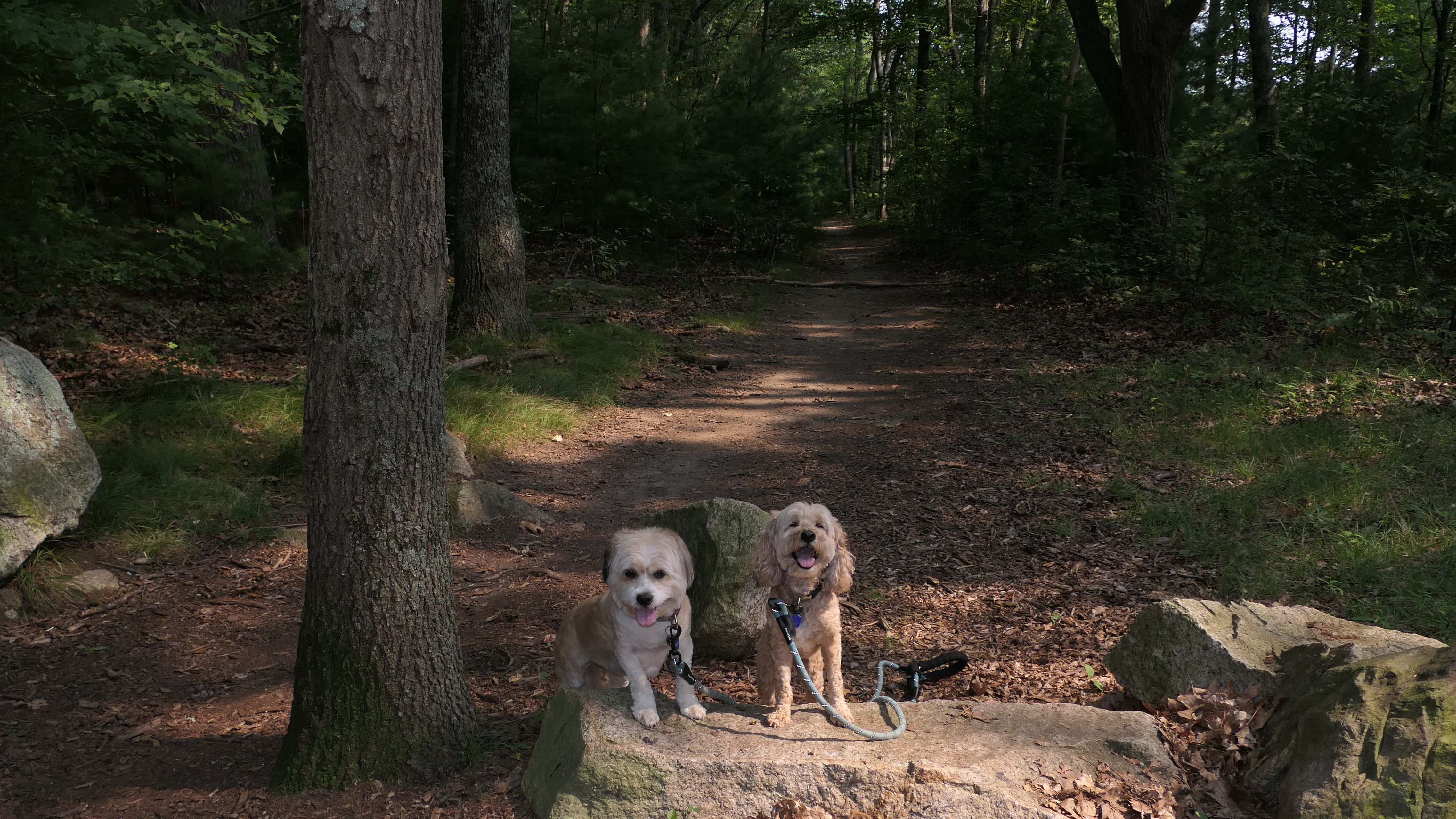 As you can see from the very large red sign below, dogs are not allowed in the actual park. The Johnston Memorial Park Nature Trail is across the street. I think the dogs are allowed on the trail, at least there was no sign or anything at the trail head. We checked out the trail. It doesn't look that bad in the photos, but believe me, it wasn't great. The Pocasset River runs along side part of the trail. It might be the brownest river I have ever seen. Mandy wanted to go into the river, but I did not let her. There was a lot of trash on the trail, and as we proceeded further along the trail was overgrown. We took a different path, which was okay for a bit, but then it was washed out. So the Nature Trail was a bust! We decided to walk around the outskirts of the actual park. There is a paved loop trail through the park, which looked real nice from the outside looking in. We actually did walk on the part of the trail between the pond and Hartford Avenue (US Route 6A). It was unclear if this section was actually part of the park or not, but it kept us away from the busy road. There just is something inherently wrong with a park that does not allow dogs. I mean, parks are made for dogs! We may have snuck on to the outskirts of the property for some photos, but overall, this is not a good place to bring your dog.