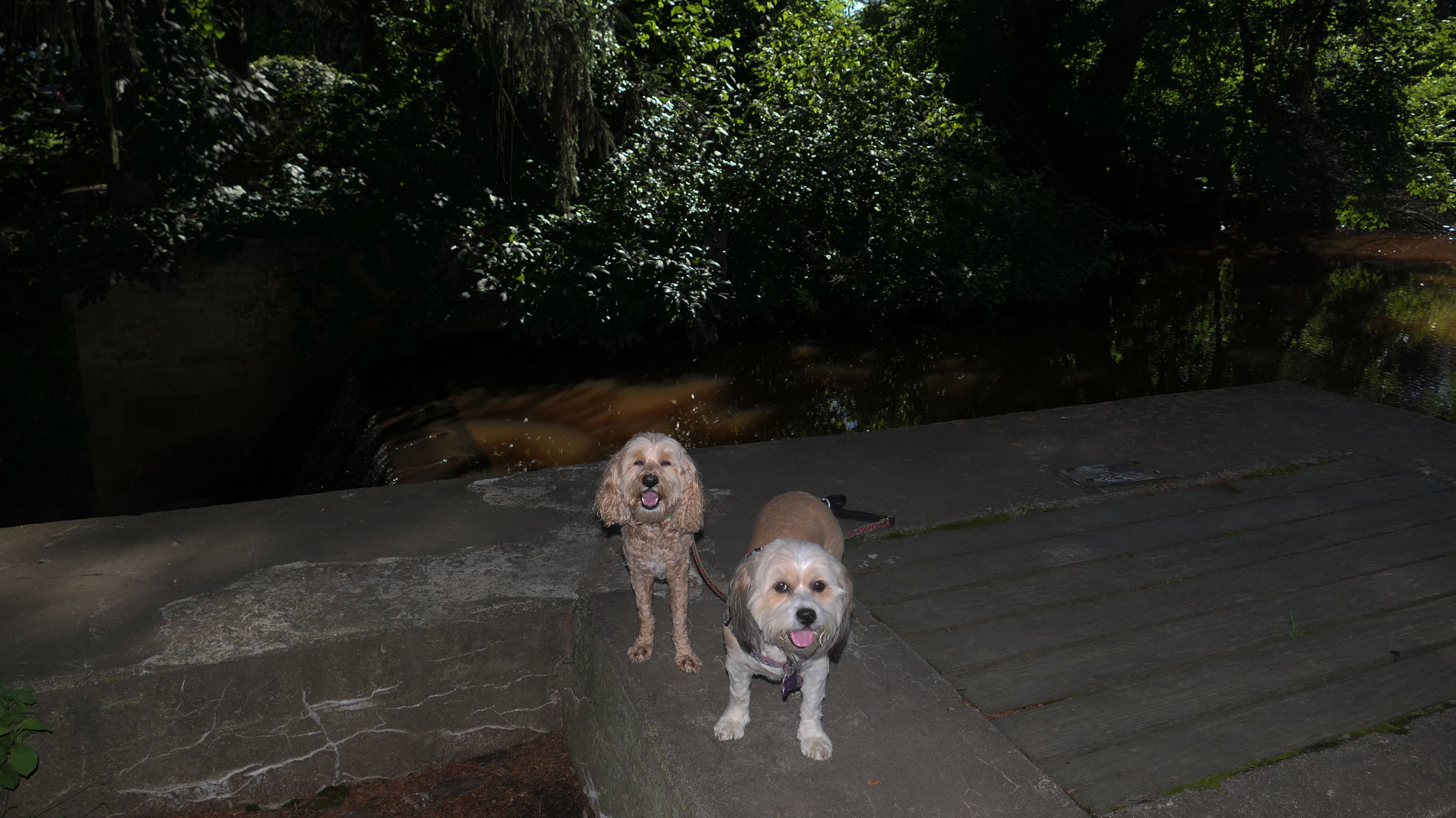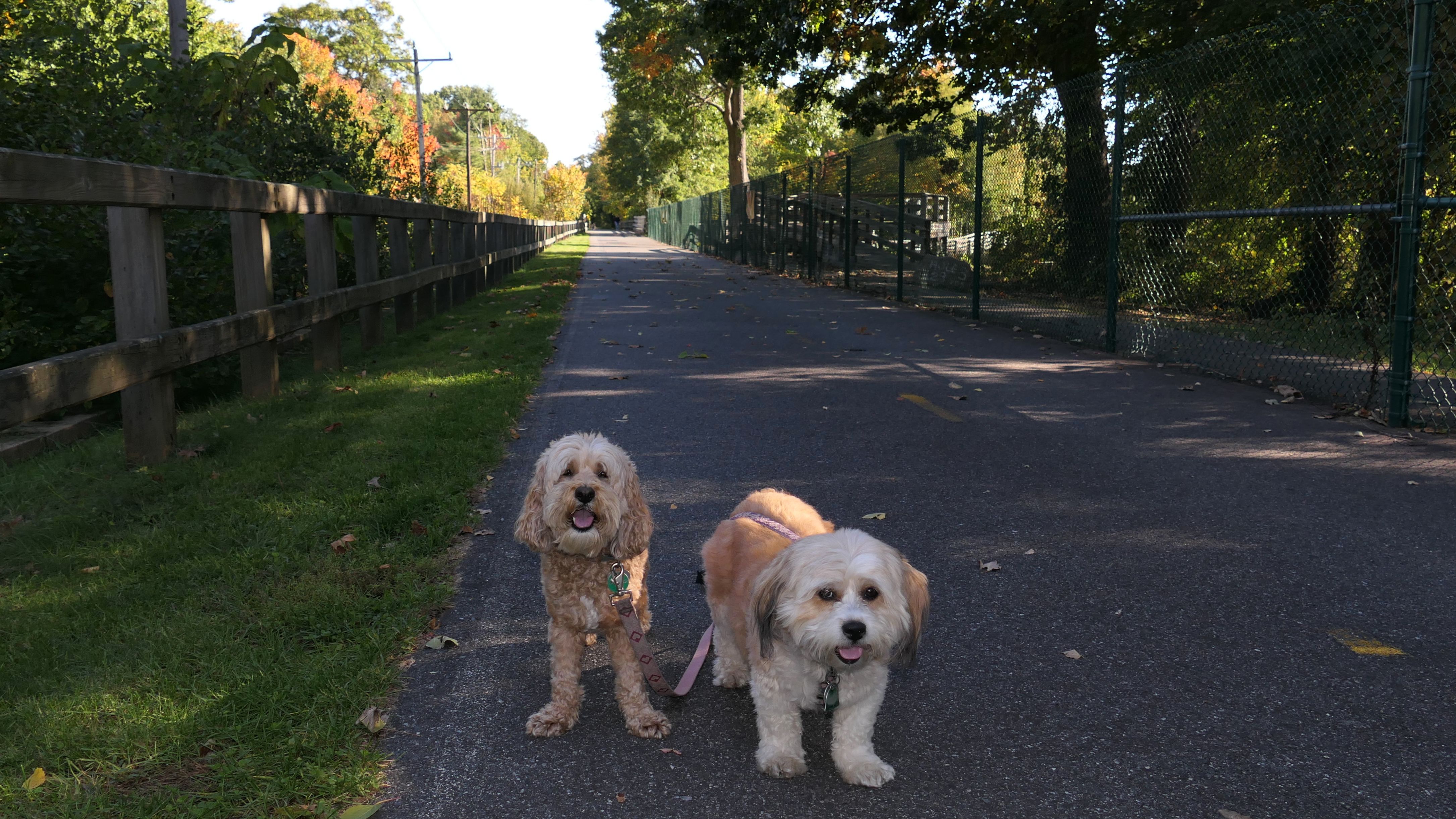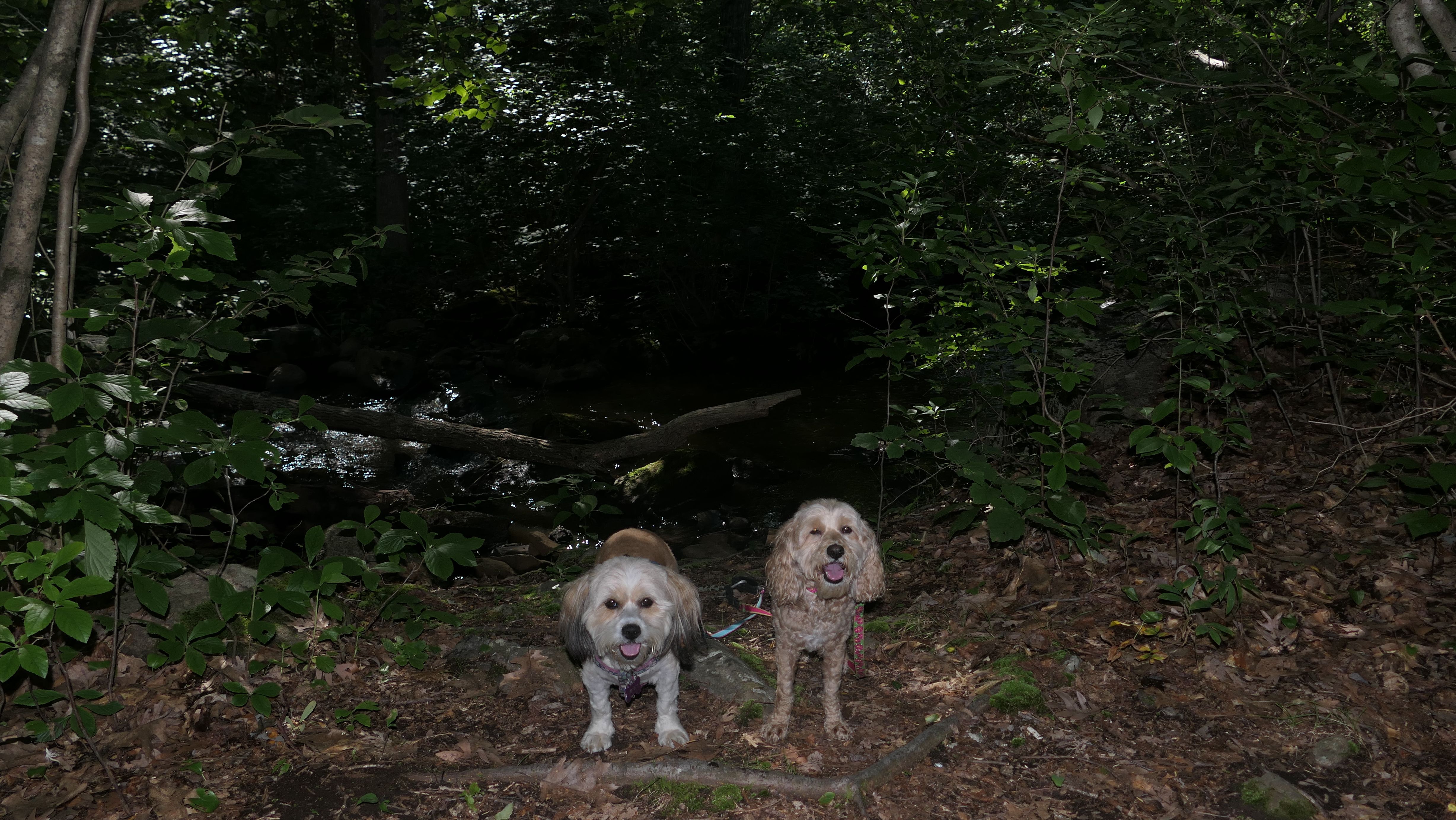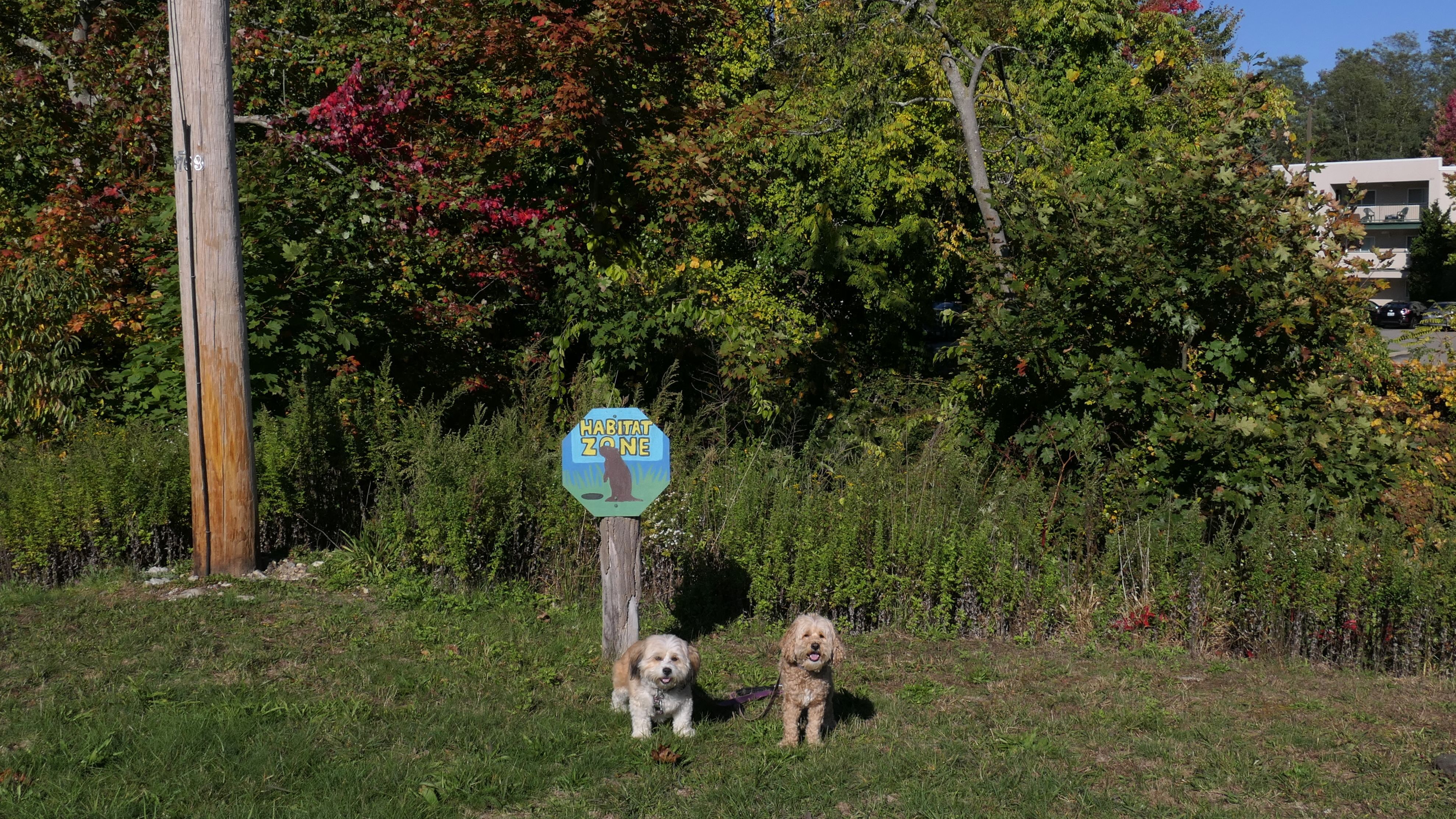 As you can see from the very large red sign below, dogs are not allowed in the actual park. The Johnston Memorial Park Nature Trail is across the street. I think the dogs are allowed on the trail, at least there was no sign or anything at the trail head. We checked out the trail. It doesn't look that bad in the photos, but believe me, it wasn't great. The Pocasset River runs along side part of the trail. It might be the brownest river I have ever seen. Mandy wanted to go into the river, but I did not let her. There was a lot of trash on the trail, and as we proceeded further along the trail was overgrown. We took a different path, which was okay for a bit, but then it was washed out. So the Nature Trail was a bust! We decided to walk around the outskirts of the actual park. There is a paved loop trail through the park, which looked real nice from the outside looking in. We actually did walk on the part of the trail between the pond and Hartford Avenue (US Route 6A). It was unclear if this section was actually part of the park or not, but it kept us away from the busy road. There just is something inherently wrong with a park that does not allow dogs. I mean, parks are made for dogs! We may have snuck on to the outskirts of the property for some photos, but overall, this is not a good place to bring your dog.