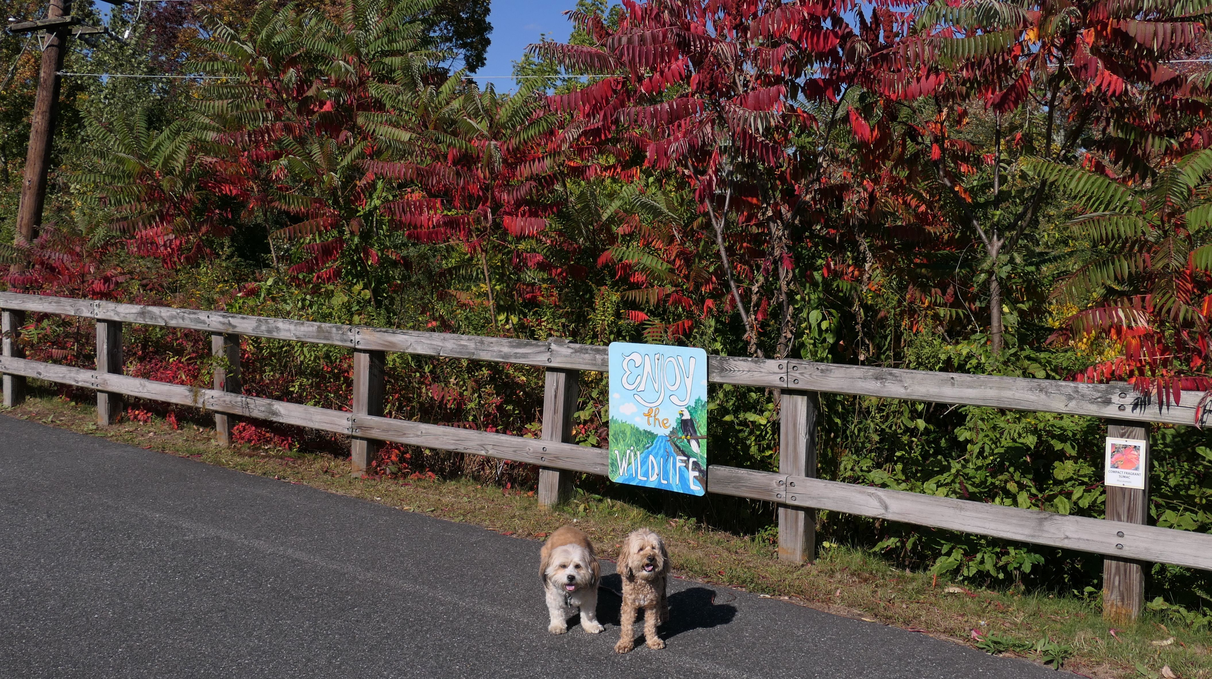 This is the Johnston section of the bike trail that starts in Providence. The Johnston section is more rural than the Providence section. After crossing the river from Providence, the trail passes by Button Hole Golf Course and runs another mile or so before ending unceremoniously at Lyman Avenue. On the way, it passes by the Manton Pond Dam Fishway. Just before the end of the trail, there is a short dirt path that leads out to Lyman Mill Pond and the Lymansville Dam. There are artsy signs all along the trail that add to the artsy feel of the trail. It was a nice walk on a great autumn day.