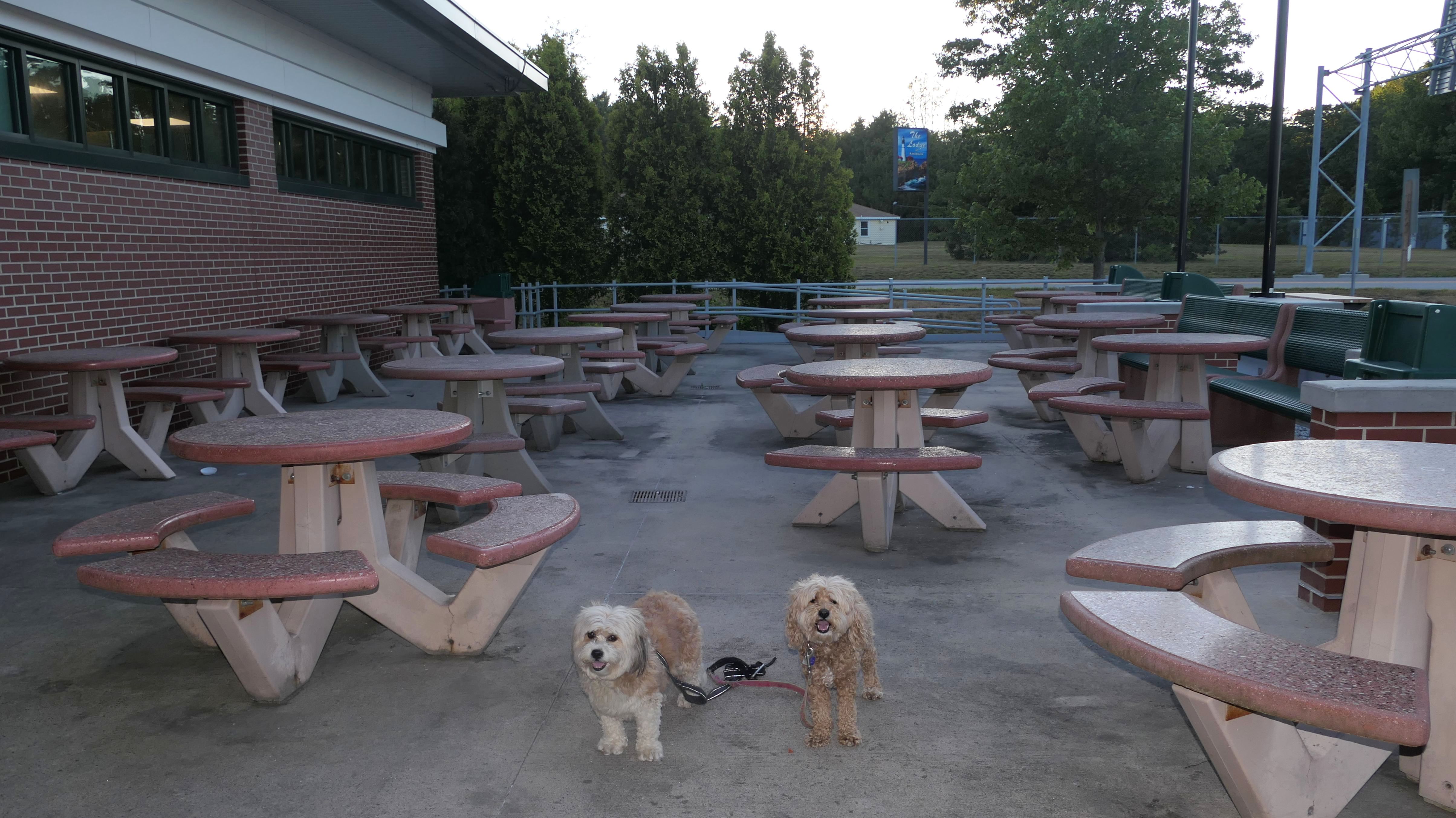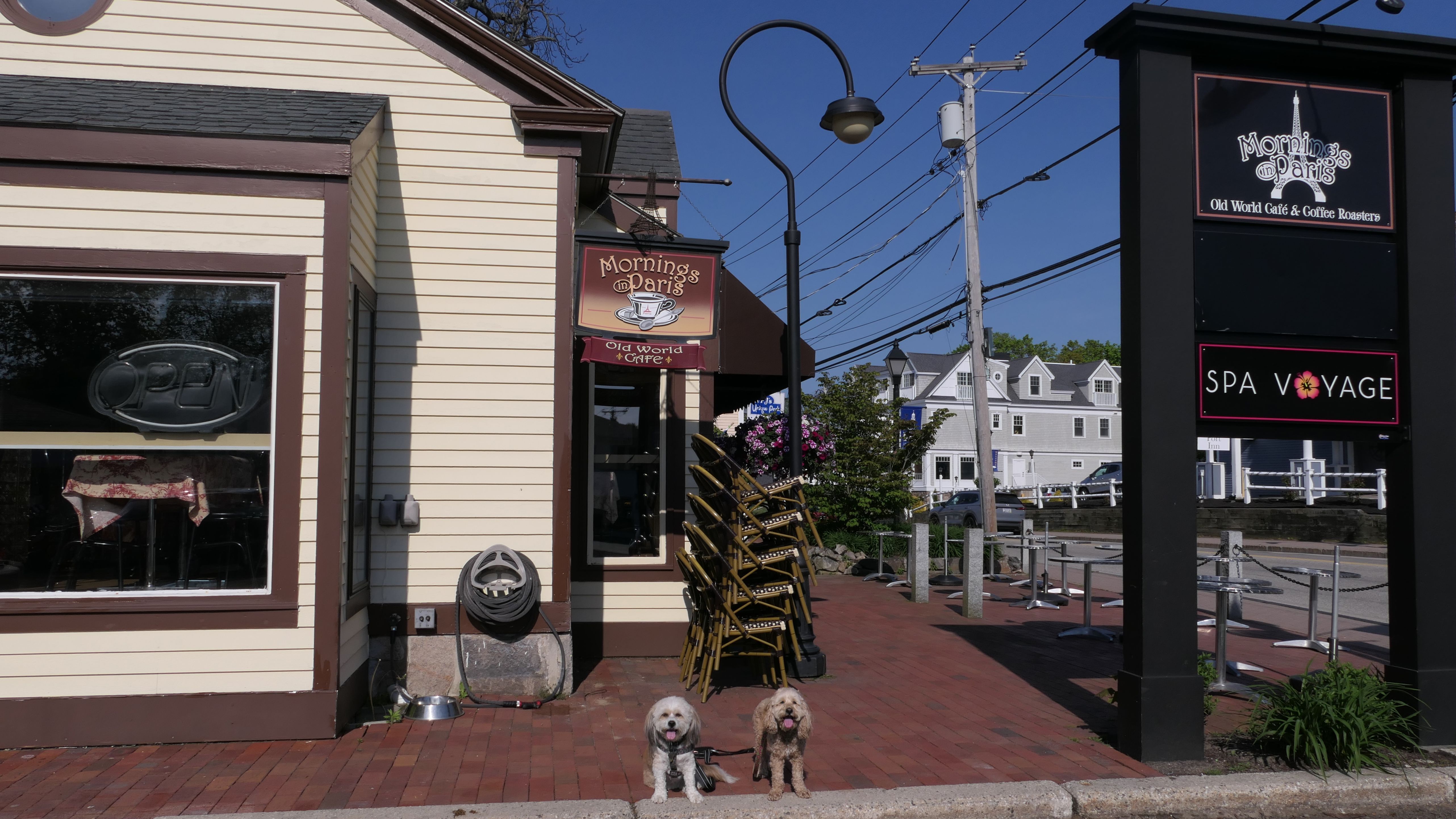 This is the tourist area just west of the Kennebunk River bridge that separates Kennebunk from the Dock Square section of Kennebunkport. Like it's nearby neighbor, there are a number of small shops, inns, and restaurants. The dogs were invited inside one of the shops my wife was visiting.