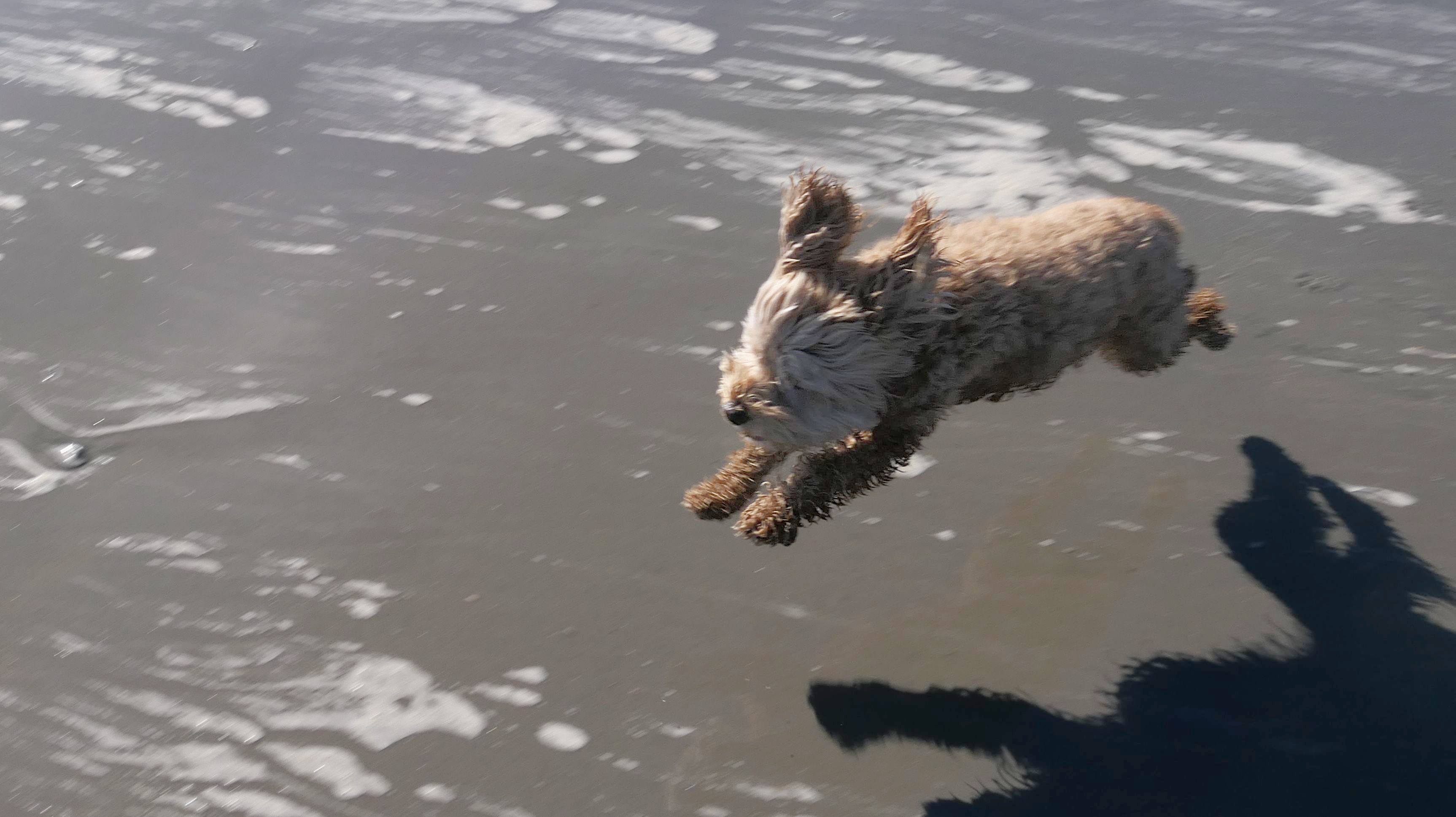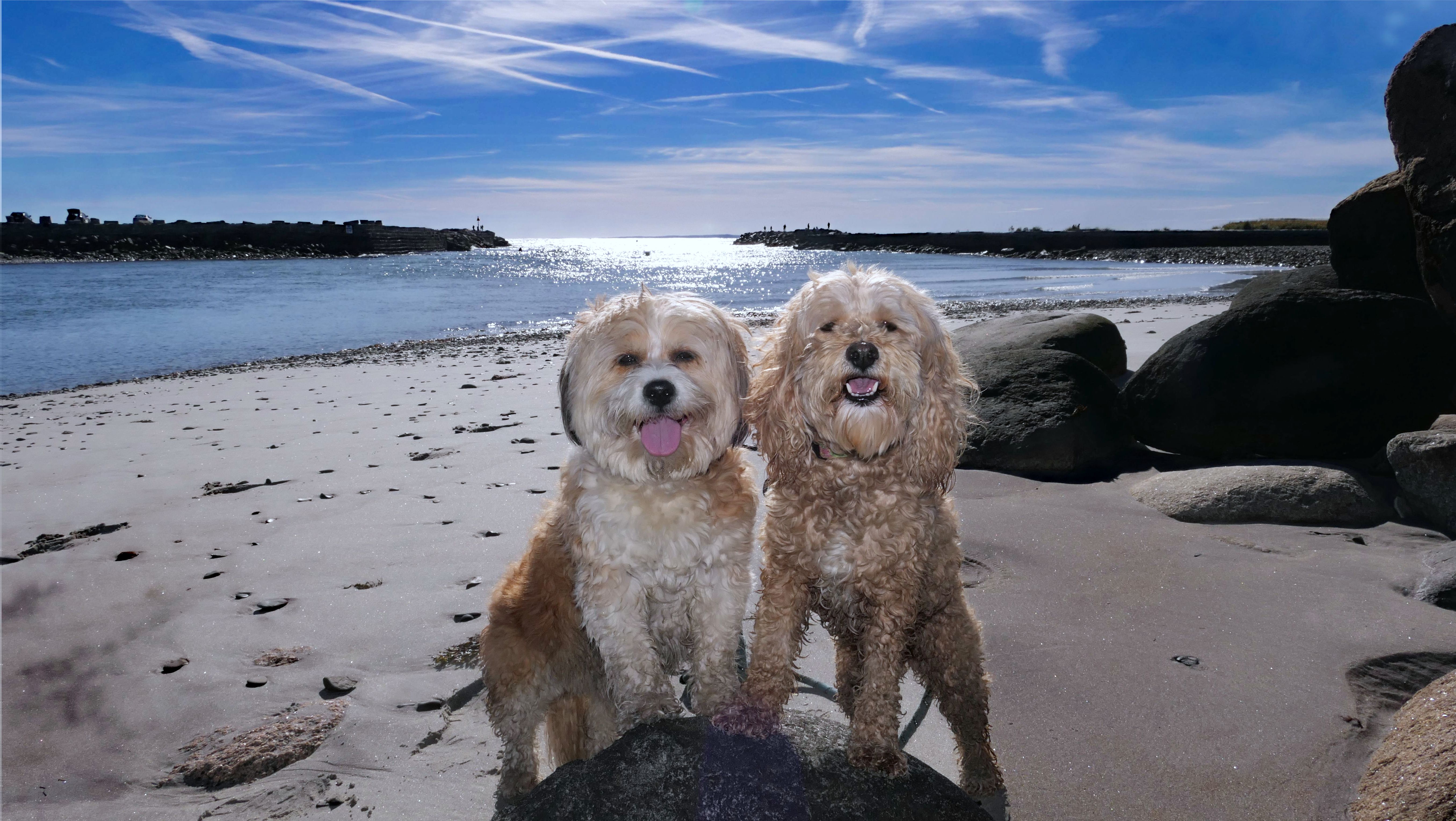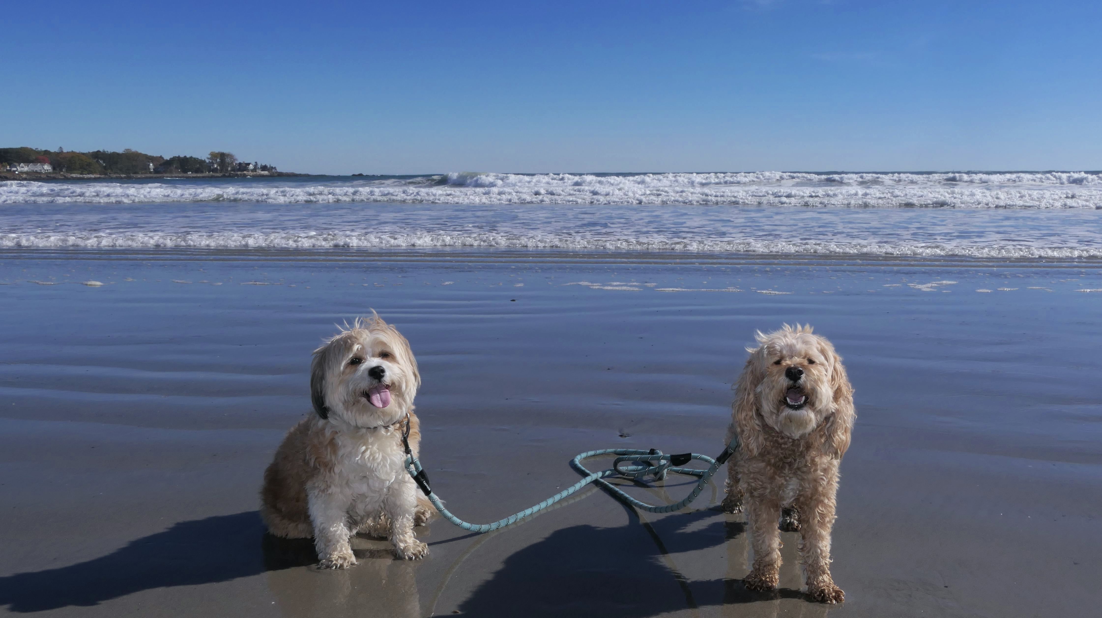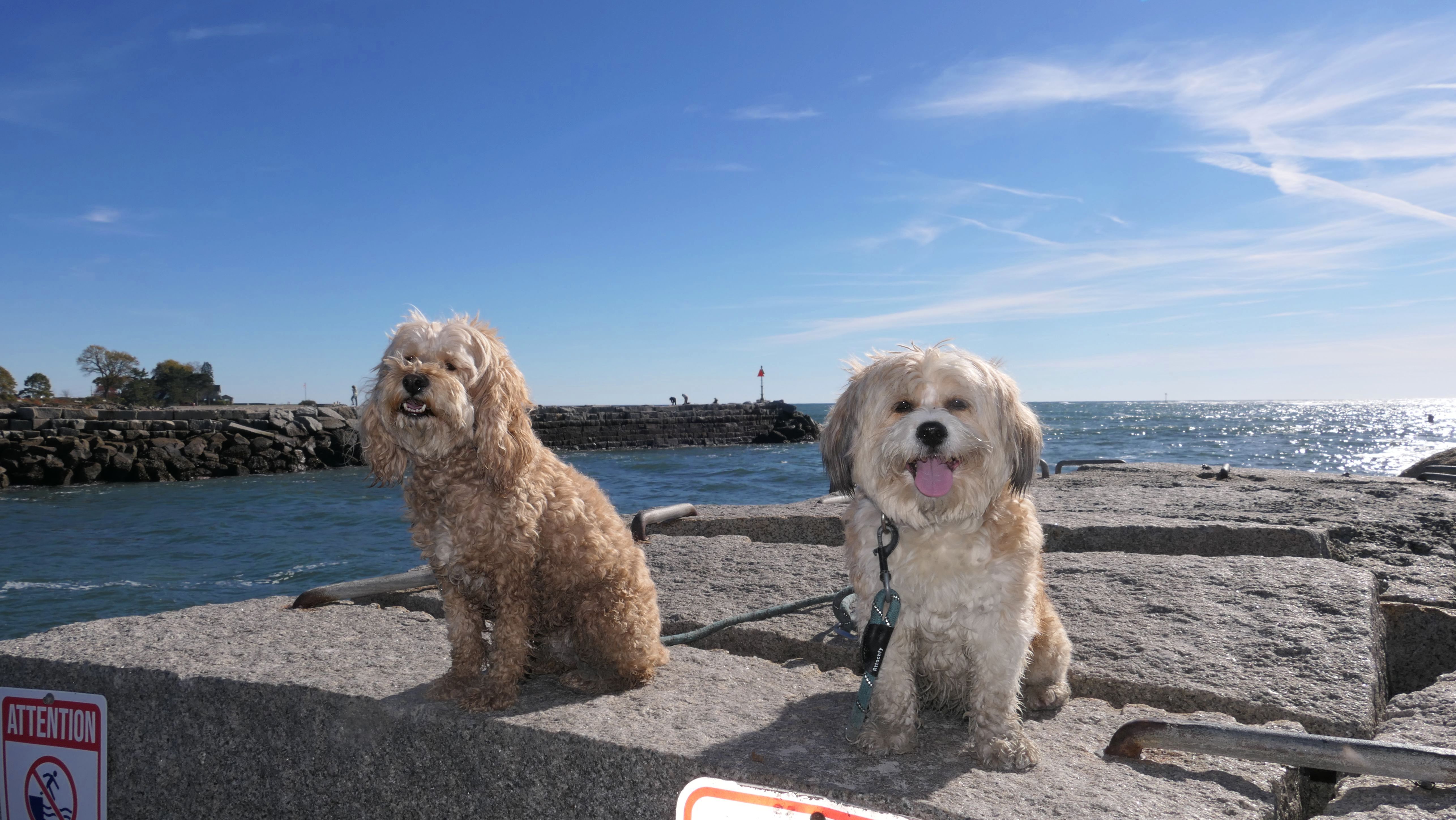 This is a pretty decent beach, located in Kennebunk Maine. Dogs are allowed before 9AM and after 5PM from June 15th to Labor Day, and allowed any time outside of those dates. They also only need to be under voice control, and don't need to be on a leash. We started by the rocky area on the west end of the beach, and made our way to the Kennebunk River breachway on the east end. The whole thing is about a mile long. On our way back, the dogs played a bit off-leash. Lexi always loves running on the beach! It was low tide, but there were still some pretty nice waves. There was a number of surfers taking advantage of them. This beach kind of reminds me of Easton's Beach in Newport. It's sort of the same shape, tucked in a cove but with nice waves. This was a pleasant beach walk on a sunny autumn afternoon.