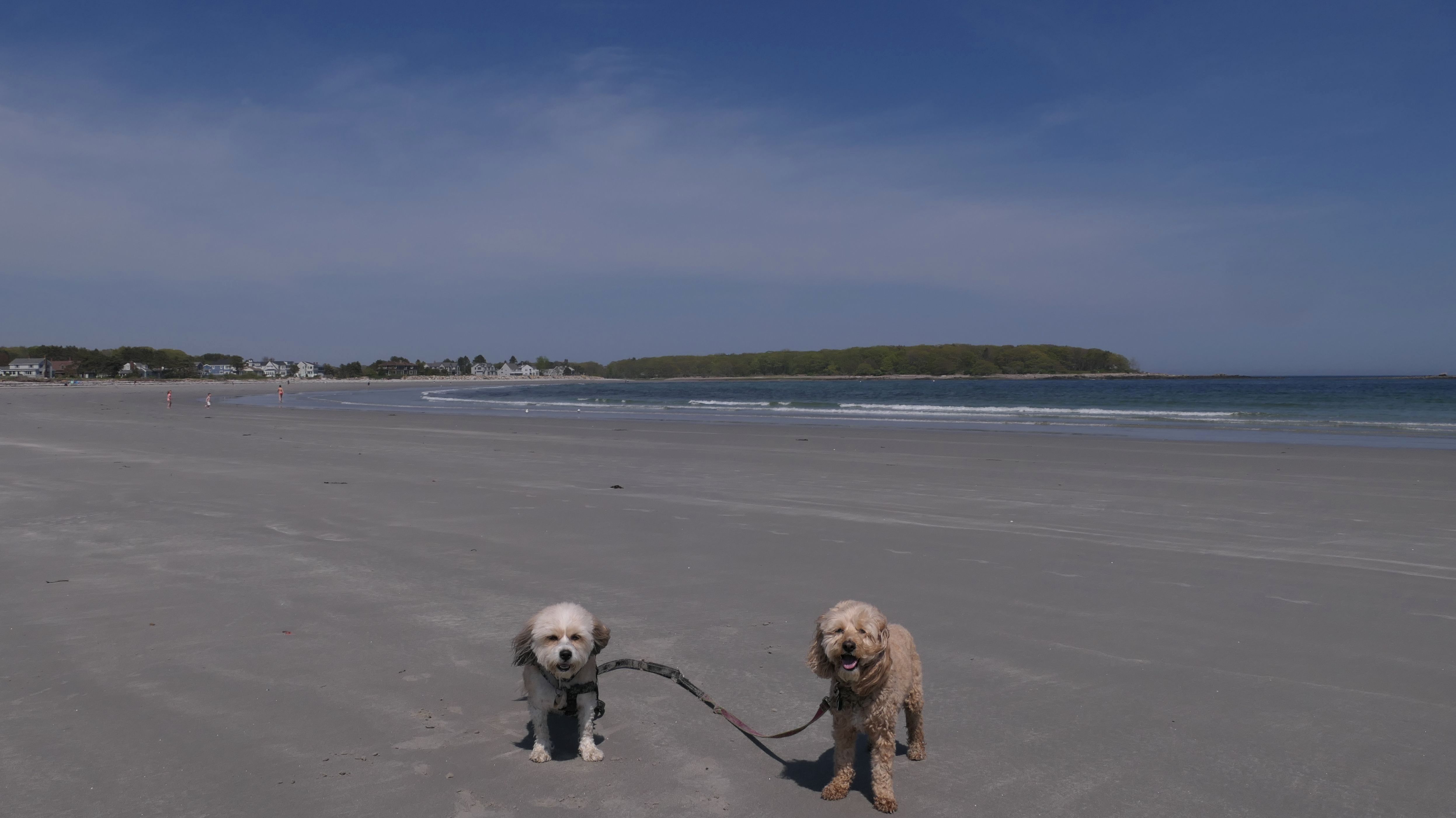 We ventured up to Maine to escape the 90 degree heat in our area. It was pretty much in the 70's on the shoreline here, with a nice breeze, but quite hazy. This beach was okay, but not on the same level as some of the other beaches we visited. The waves are mild, and the sand is sort of a dull color, and some areas of the beach were overloaded with seaweed. The beach is about two miles long, and we walked from end to end and back. There is free street parking in the off-season, but a permit is required during the summer months that you can purchase at a kiosk (Memorial Day weekend through Labor Day weekend I believe). Despite some reviews and the All-Trails app saying there was only four spots, there is plenty of parking available along Kings Highway. (Might only be four spots at the far southwest end, where the All-Trails route has you start). There were quite a few sunbathers enjoying the beach near the northeast end, by the parking area, but the southwest end of the beach was practically deserted. Leashed dogs are allowed here from the day after Labor Day to June 14th (and then from June 14th to Labor Day in the early mornings, or after 5PM). There are also some times during the winter months where they are allowed to be off-leash. It's not a bad place at all to bring your dogs if you are in the area for a vacation, or just passing through.