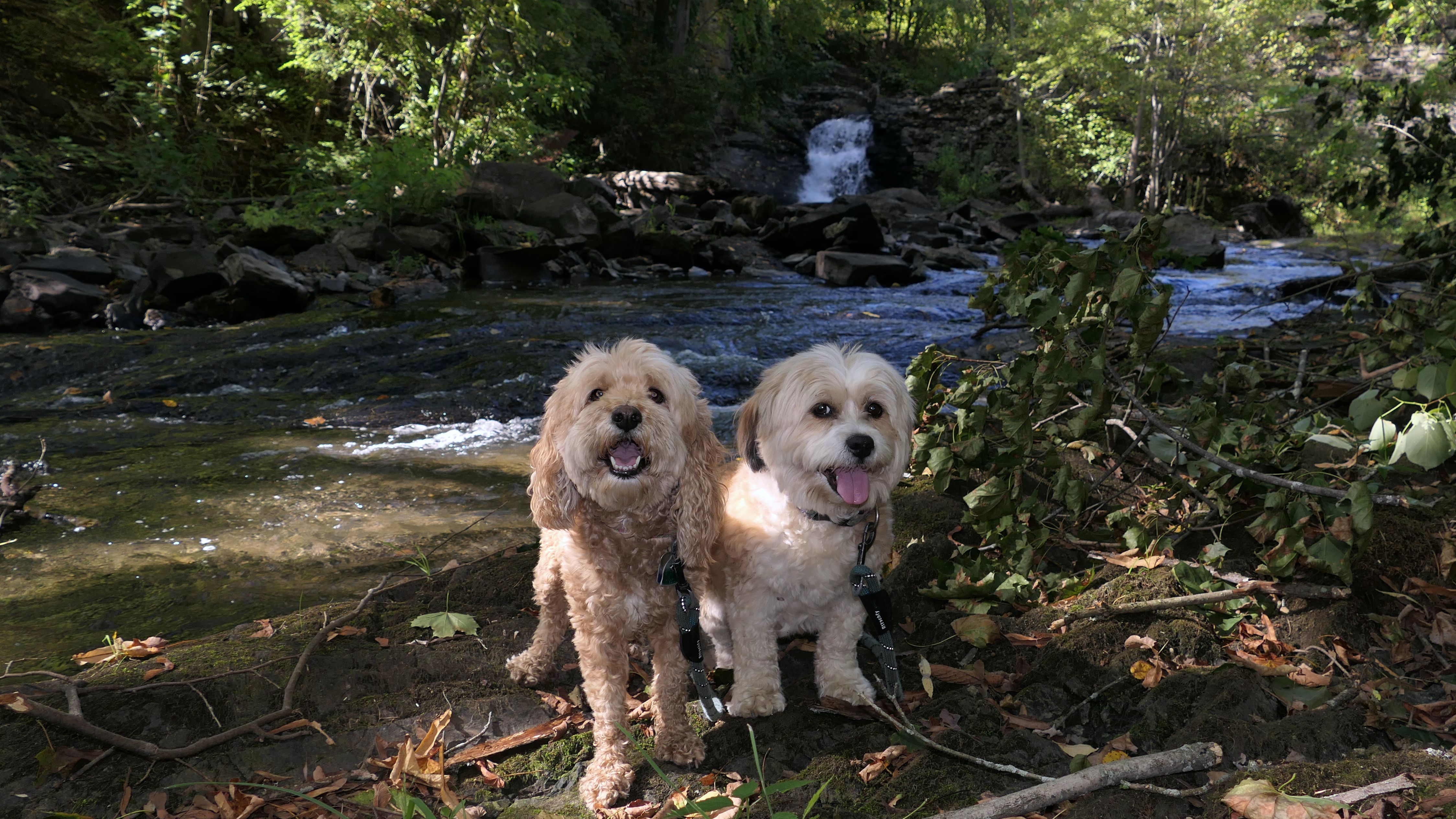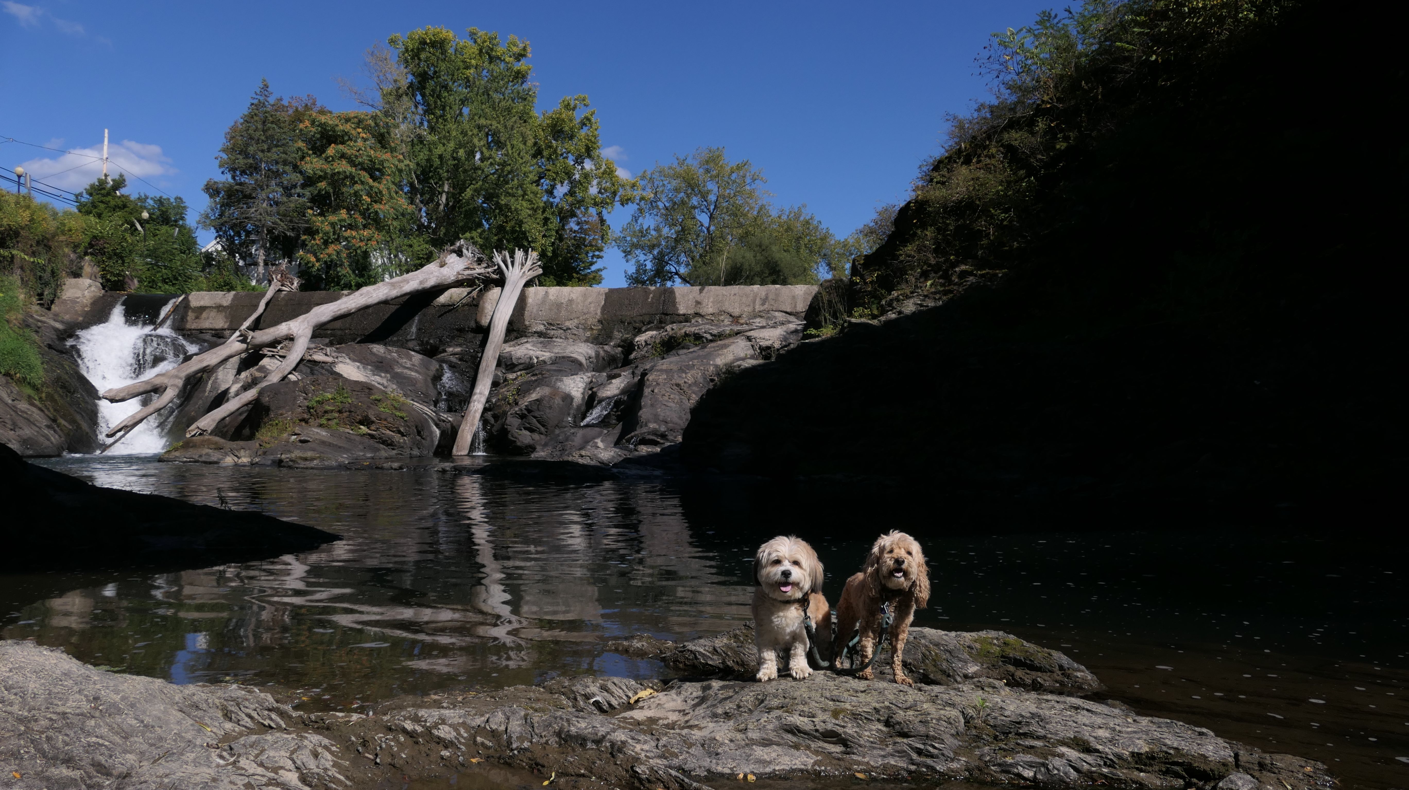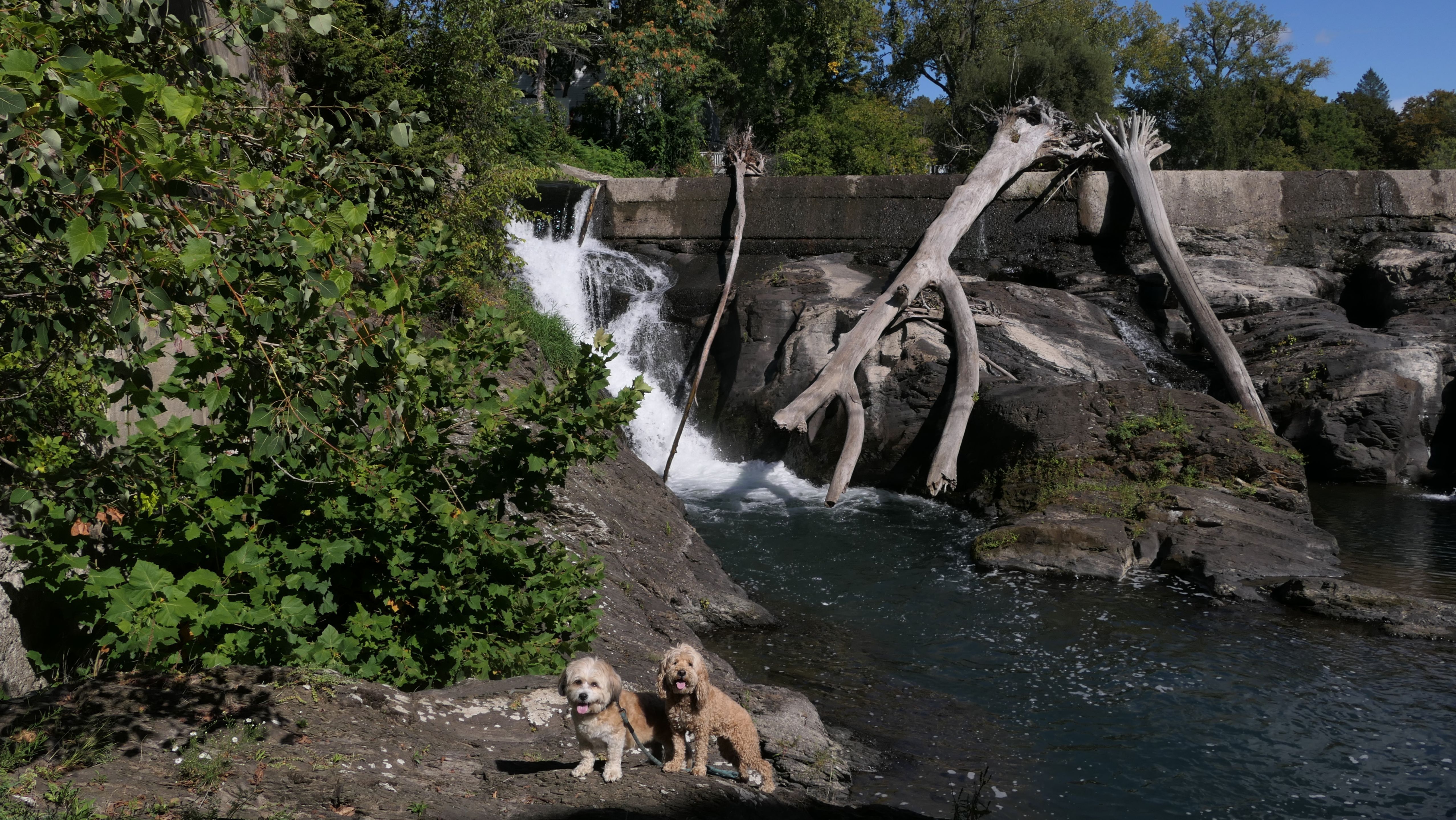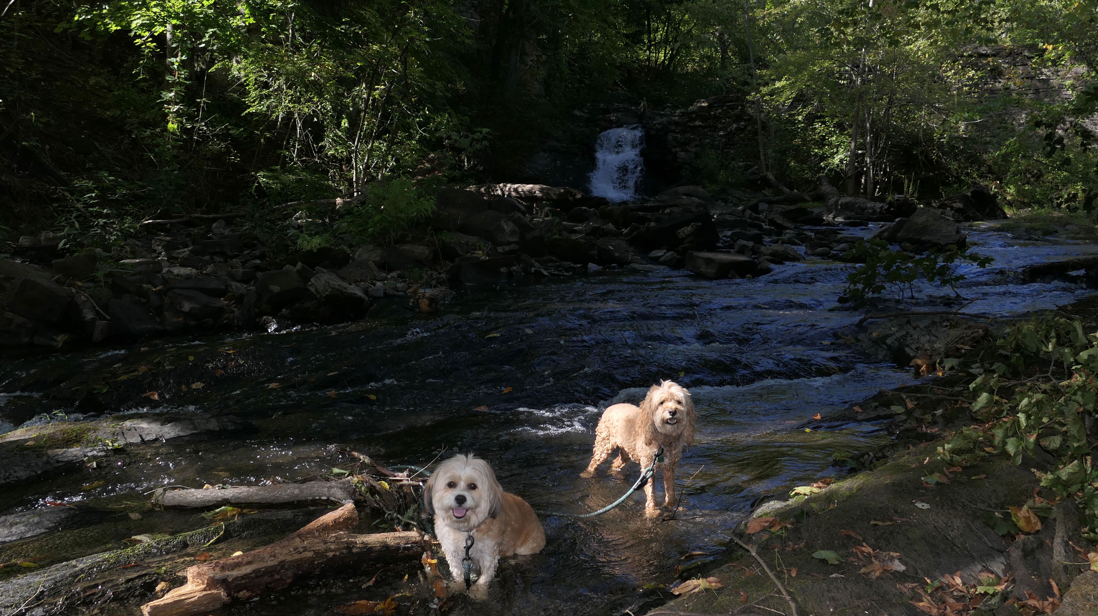 This was basically a walk down Main Street, from the intersection of Albany Hudson Electric Trail to Beaver Cotton Mill Overlook and back. This is a typical small town Main Street lined with little shops and restaurants. There's a dirt path through the woods, just east of the bridge over Valatie Kill, that leads to a waterfall. Mandy and Lexi cooled off in the running water.