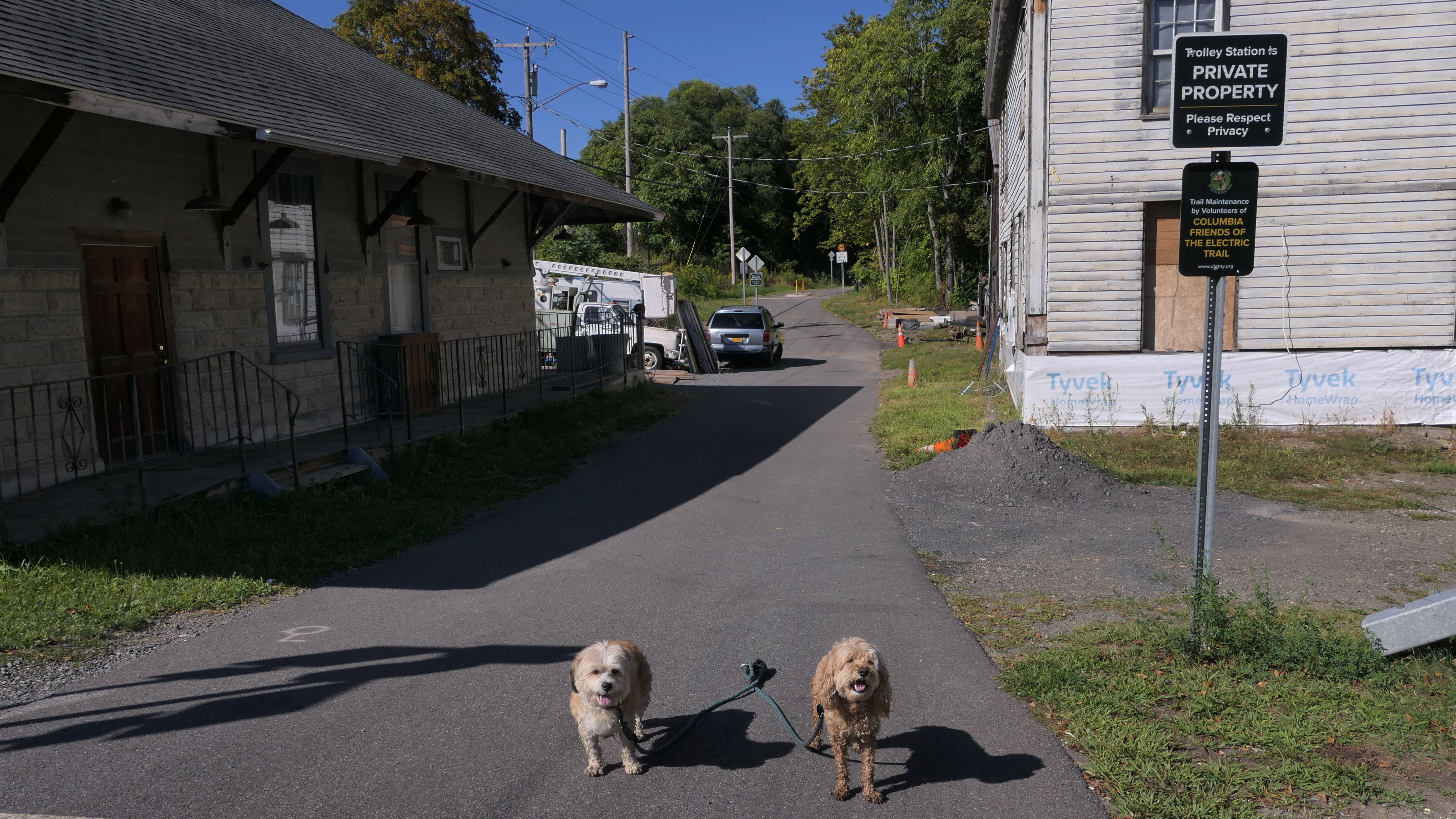 This is part of the Empire State Trail bike trail that runs through New York. This section is known as the "Albany Hudson Electric Trail", named that way because it runs along an old electric trolley corridor. We parked at the commuter lot at the corner of US 9 and NY Route 9H, and headed along the trail to the center of Valatie Village. We also went to River Street Park and Beaver Cotton Mill Overlook, as part of our 4.5 mile walk through the village. We actually only covered a short section of the bike trail, from the trail head near the commuter lot to Main Street.