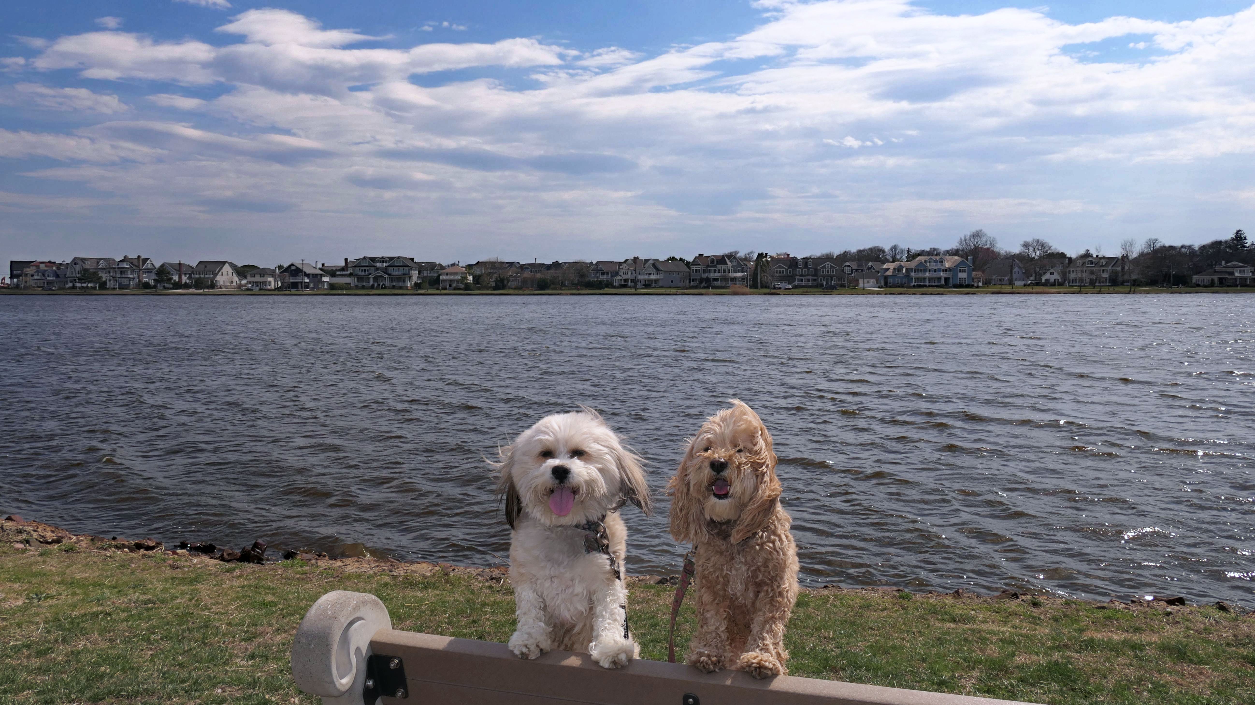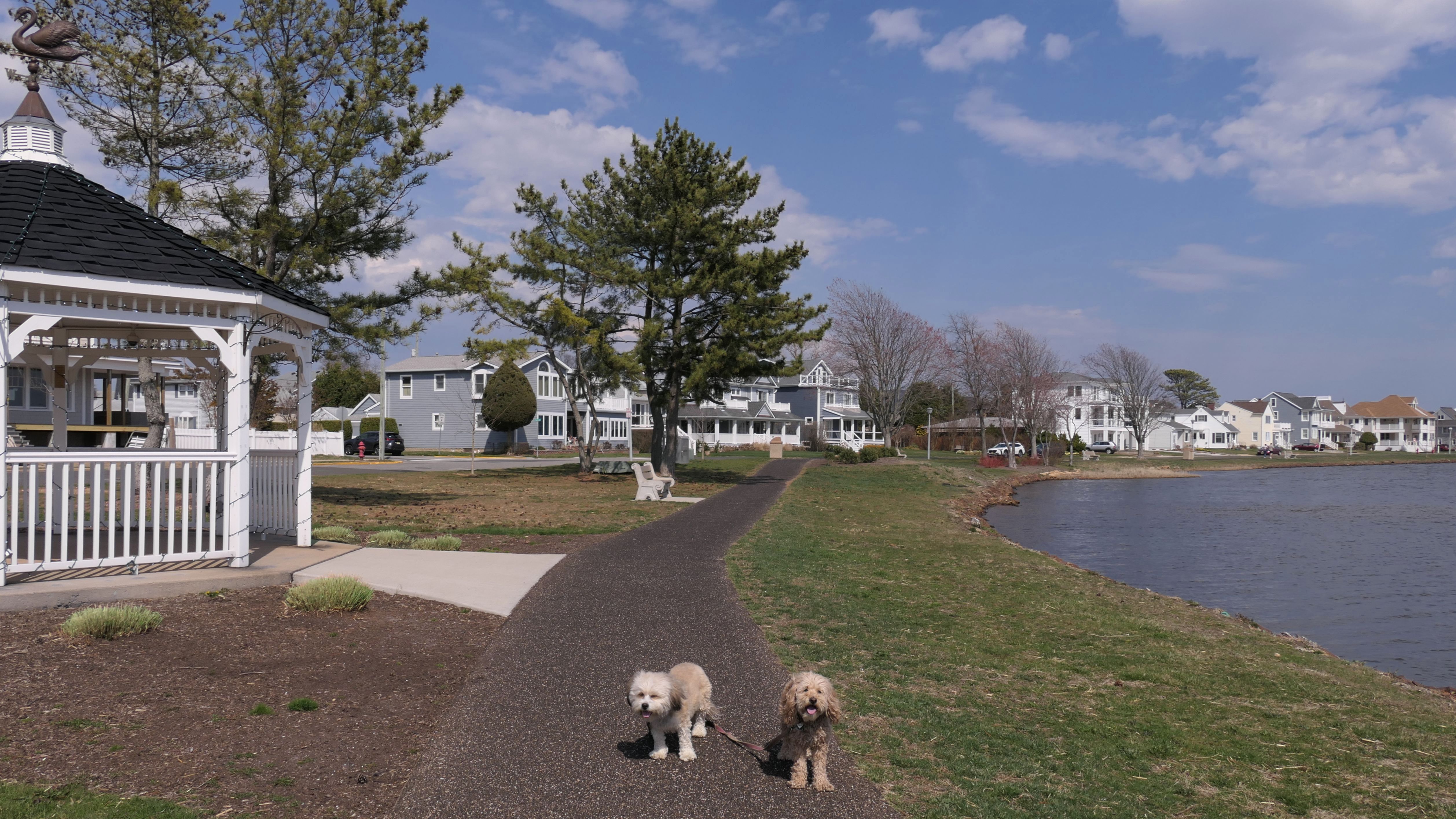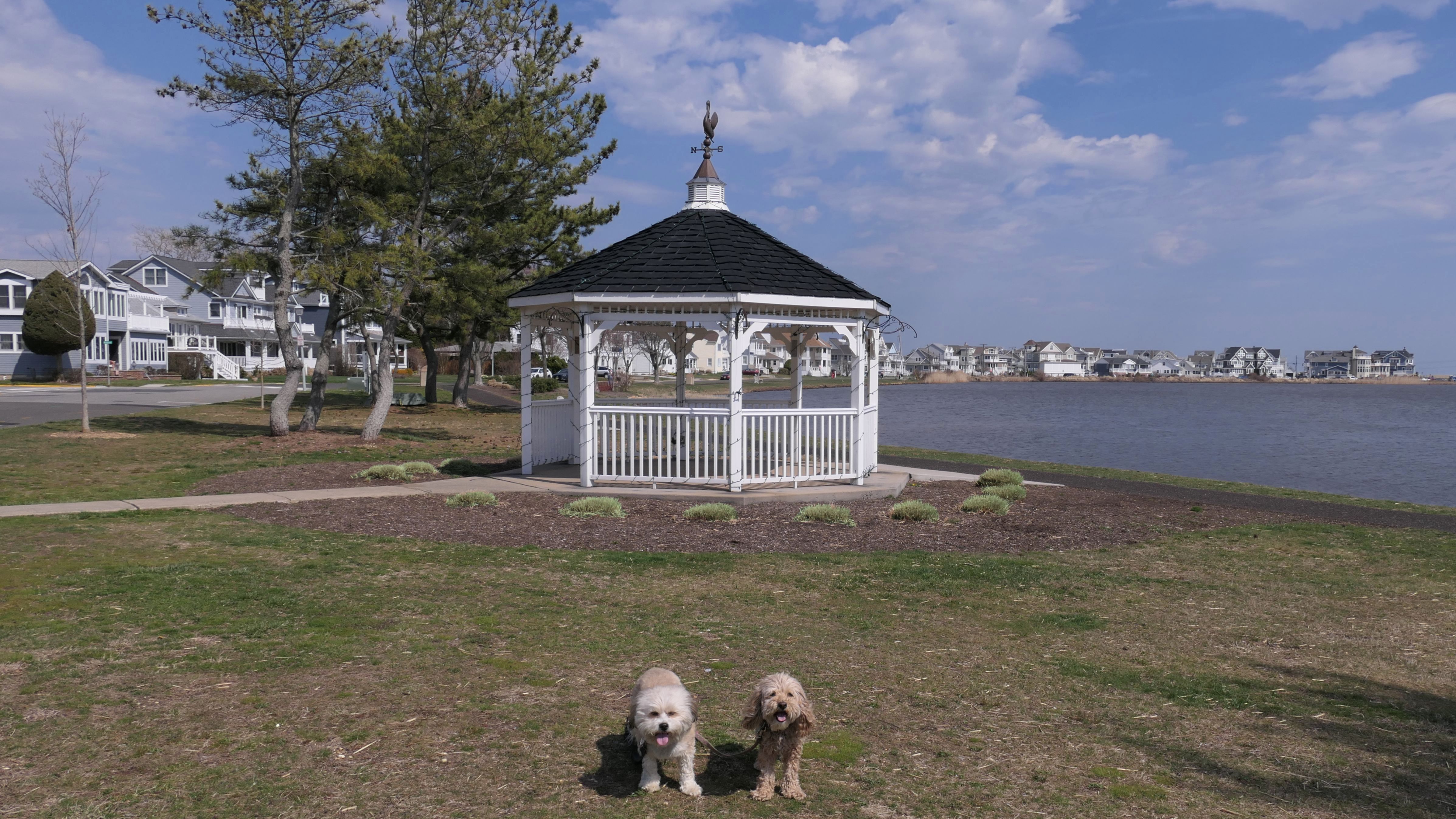 We were nearby, walking through Spring Lake Beach, and decided to take a break from the beach to check out this lake. There's a walking path around the lake, which sits on the corner of Lake Como, Belmar, and Spring Lake. We were going to walk the whole path, but it was too hot for Mandy. (Yes, I realize it was March, but the temp was in the mid-80's). We only walked up to the gazebo area, took a water break, and then headed back to the Spring Lake Dog Beach, where Mandy could get in the water and cool off.