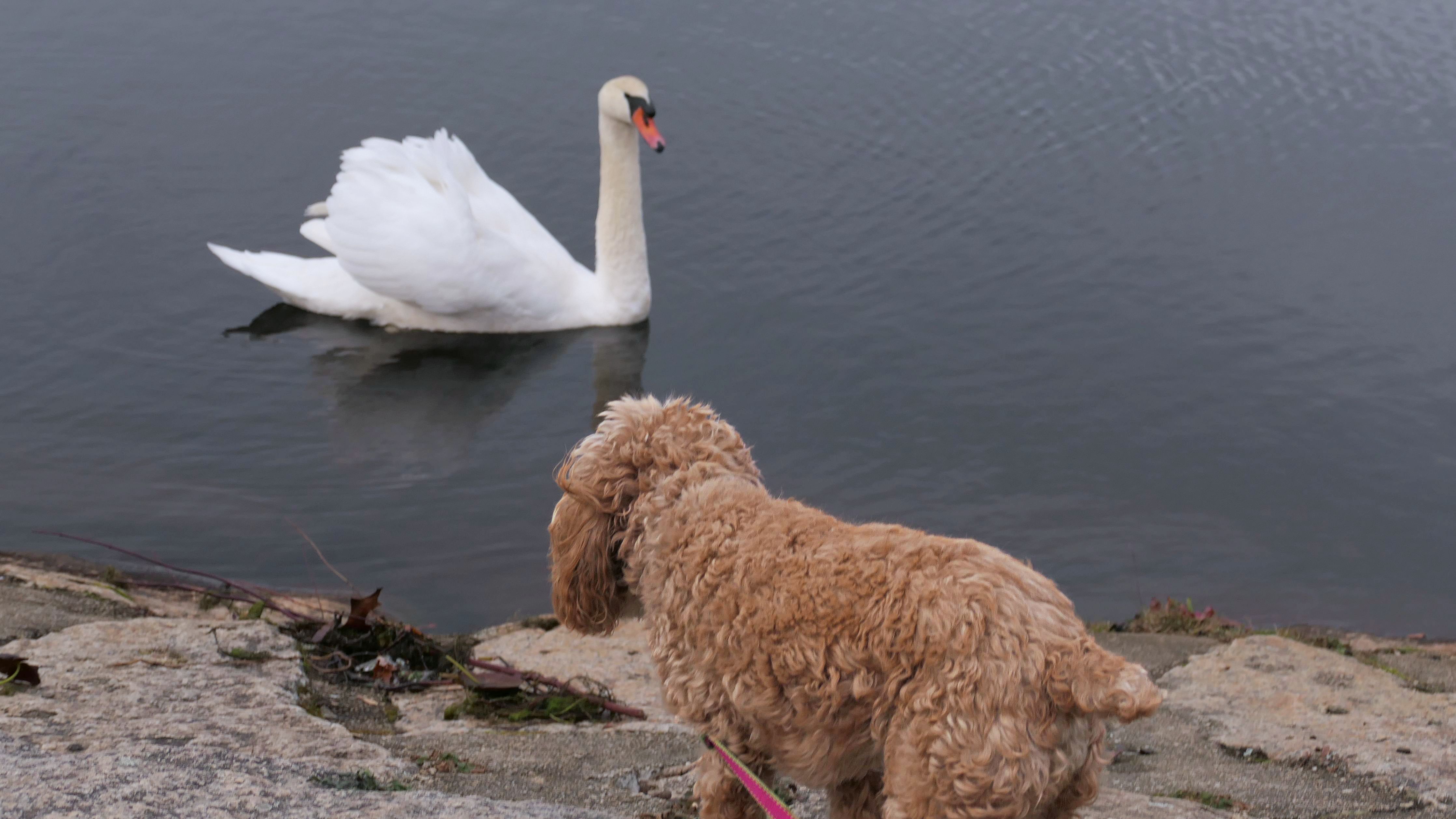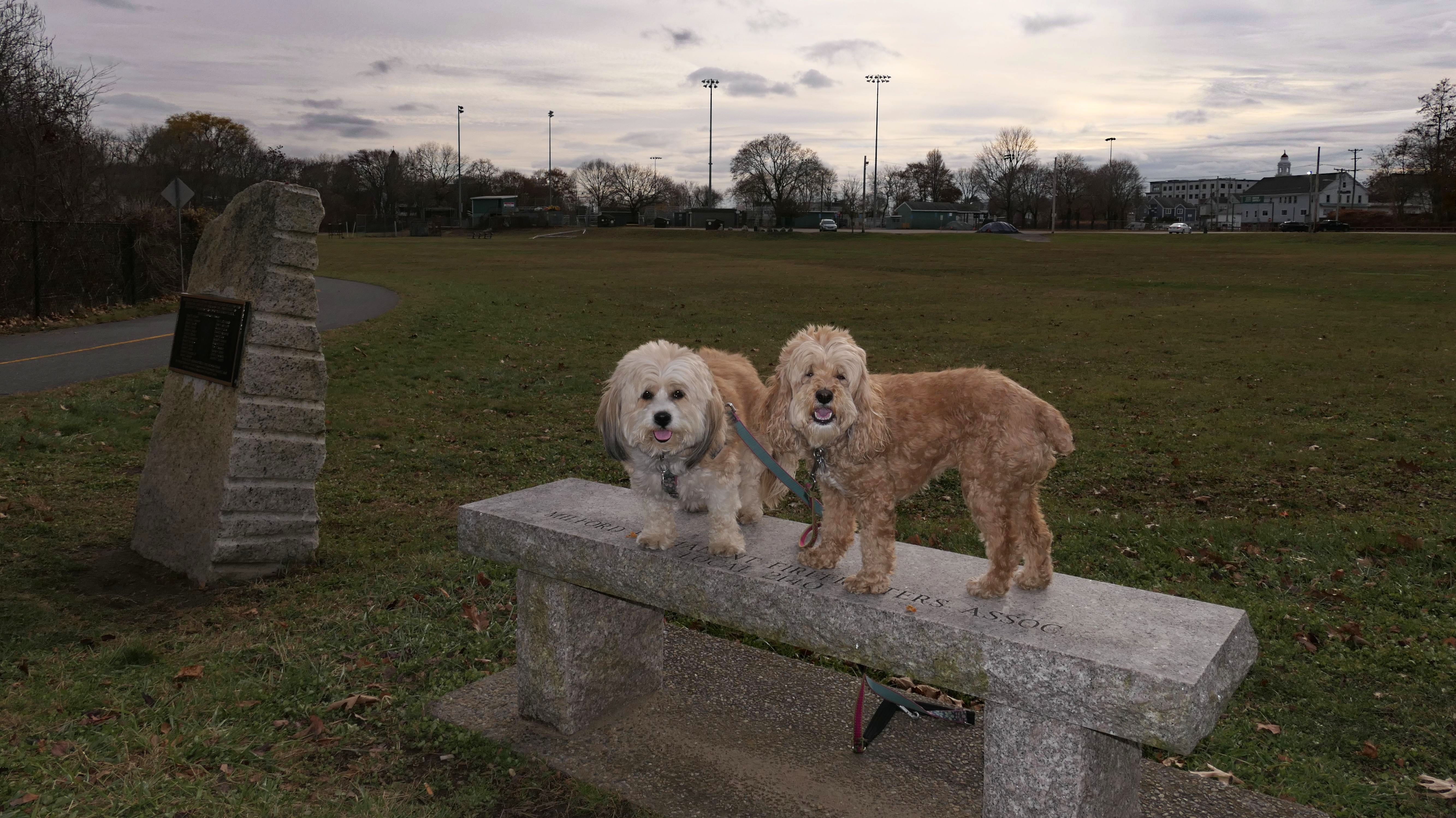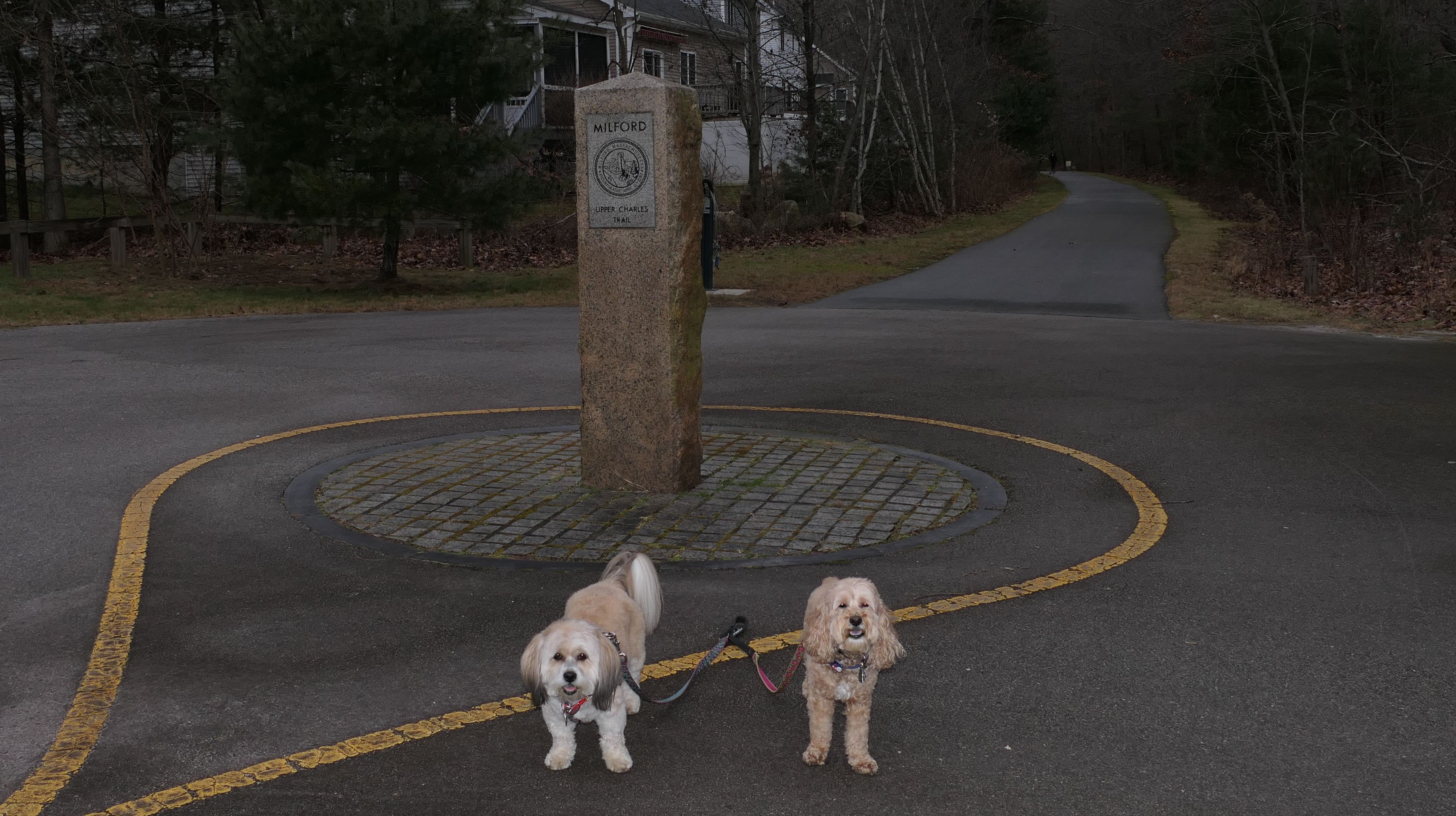 The Upper Charles Rail Trail runs through this park. The park features a pavilion, a gazebo, picnic tables, benches, a disc golf course and a fishing area. It's a nice spot to stop for a break along the trail. Lexi found the swans in the lake very interesting.